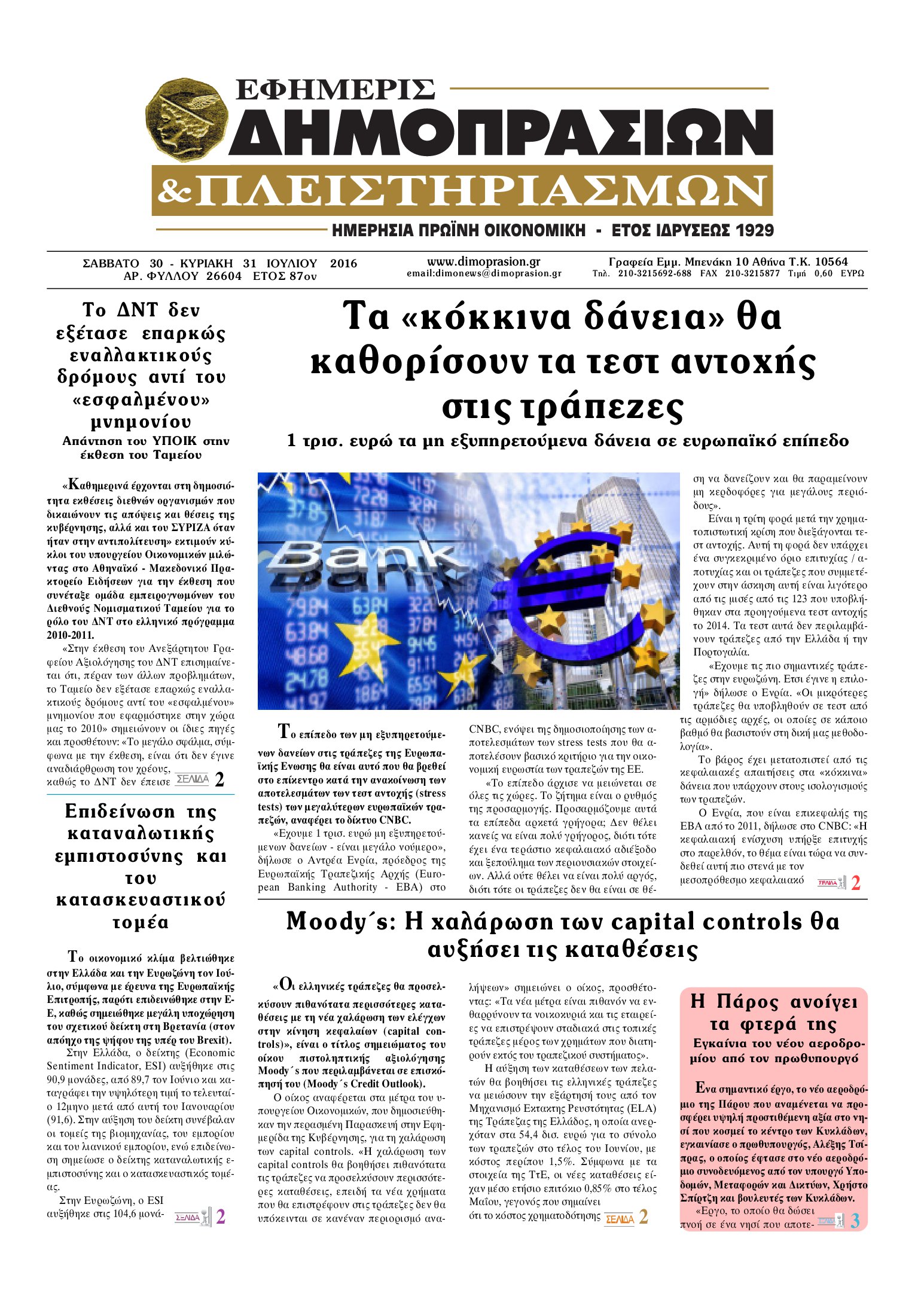 Οι οικονομικές εφημερίδες 1/8/2016 Enikos Newsroom 07:22, Δευτέρα 01 Αυγούστου 2016 Media Διαβάστε τα σημερινά πρωτοσέλιδα των οικονομικών εφημερίδων, ΟΙΚΟΝΟΜΙΚΕΣ ΕΦΗΜΕΡΙΔΕΣ ΠΡΩΤΟΣΕΛΙΔΑ Μοιράσου το: σχολίασε κι εσύ (0 σχόλια) Ακολουθήστε το enikos.gr στο Google News και μάθετε πρώτοι όλες τις ειδήσεις Δείτε όλες τις τελευταίες ειδήσεις από την Ελλάδα και τον Κόσμο στο enikos.gr Ειδήσεις Ροή Ειδήσεων 4 ώρες πριν Εκτός ευρωομάδας ΣΥΡΙΖΑ ο Νίκος Παππάς μετά την επίθεση στον δημοσιογράφο Νίκο Γιαννόπουλο – Η μήνυση και οι νέες δηλώσεις 5 ώρες πριν «Αγριεύουν» οι αγρότες: «Δεν συντρέχει λόγος συνάντησης με τον πρωθυπουργό» – Ώρα αποφάσεων στη σύσκεψη της Πέμπτης 5 ώρες πριν Κυψέλη: Χωρίς την οικογένειά της δίπλα της απολογήθηκε η 16χρονη – «Της είχε επιτεθεί κάποιος για να την βιάσει, φοβήθηκε και κυκλοφορούσε με μαχαίρι» 4 ώρες πριν Politico: Το πρόβλημα της Ευρώπης δεν είναι το Βέλγιο αλλά ο Ντόναλντ Τραμπ 6 ώρες πριν Αλεξανδρούπολη: Πολυοργανική ανεπάρκεια λόγω υποσιτισμού η αιτία θανάτου του 3χρονου αγοριού 4 ώρες πριν Μυστήριο με τεράστιες κυκλικές πέτρες 200 κιλών – Ανακαλύφθηκαν τυχαία κατά τη διάρκεια οδικών έργων και κανείς δεν ξέρει από πού προέρχονται 5 ώρες πριν Ύπνος: Ειδικός εξηγεί τον πραγματικό λόγο που ξυπνάτε στις 4 τα ξημερώματα – Ο ρόλος των ορμονών και του κιρκάδιου ρυθμού 6 ώρες πριν Αριθμολογία: Οι άνθρωποι που έχουν γεννηθεί αυτές τις 4 ημερομηνίες, είναι τρυφεροί και αγαπούν ανιδιοτελώς 18 ώρες πριν 20 χρόνια τα Χριστούγεννα ξεκινούν στα Public με μεγάλη ποικιλία σε δώρα! 12 λεπτά πριν Βραζιλία: Το Κογκρέσο ενέκρινε σχέδιο νόμου για τη μείωση της ποινής του πρώην προέδρου Μπολσονάρου 26 λεπτά πριν Ένταση στο περιφερειακό συμβούλιο Δυτικής Μακεδονίας: Φωνές, σπρωξιές και διακοπή – Δείτε βίντεο 41 λεπτά πριν Σουδάν: Επιδρομή drone σε χωριό του Νότιου Κορντοφάν – Οκτώ νεκροί 57 λεπτά πριν Αλ Τσαντίρι Νιουζ: Η κόρη της Πάολα στο κοινό – Η ατάκα Λαζόπουλου που την έκανε να «κοκκινήσει» 1 ώρα πριν Ρωσία: Ουκρανικές δυνάμεις έπληξαν πλοίο στο λιμάνι του Ροστόφ – Αναφορές για θύματα ENIKOS NETWORK Αϋπνία: Το κόλπο που θα σας βοηθήσει να κοιμηθείτε απόψε – Είναι απλό και έχει αποτέλεσμα 2,6 εκατομμύρια πολίτες έχουν ήδη εμβολιαστεί κατά της γρίπης ΕΛΣΤΑΤ: Τι δείχνουν τα νέα στοιχεία για τις ηλεκτρονικές παραγγελίες των επιχειρήσεων ΚΕΠΕ: Οι 3 διακριτές συμβολές των ΜμΕ και της μεταποίησης στην ελληνική οικονομία Χαρτογραφώντας το «σημείο χωρίς επιστροφή»: Για πρώτη φορά αποκαλύπτεται με λεπτομέρεια το ακανθώδες όριο της ατμόσφαιρας τ... Η Google καταργεί τη λειτουργία «dark web report» – Πώς θα μπορούν οι χρήστες να διαγράφουν τα δεδομένα τους περισσότερα 02:30 , Πέμπτη 18 Δεκεμβρίου 2025 Αλ Τσαντίρι Νιουζ: Η κόρη της Πάολα στο κοινό – Η ατάκα Λαζόπουλου που την έκανε να «κοκκινήσει» Γιορτινή διάθεση και ευχάριστες στιγμές γέμισε η αποψινή, τελευταία για το 2025, εκπομπή του «... 22:24 , Τετάρτη 17 Δεκεμβρίου 2025 Το Σπίτι Δίπλα Στο Ποτάμι: Σε κίνδυνο η υγεία του Απόστολου – Τι θα δούμε απόψε “Το Σπίτι Δίπλα στο Ποτάμι” ξετυλίγει το νήμα της ζωής των πέντε αδελφών με καταισ... 21:14 , Τετάρτη 17 Δεκεμβρίου 2025 Παιχνίδια Εκδίκησης: Θα καταφέρει ο Χρήστος να κλονίσει την εμπιστοσύνη της Μάγιας απέναντι στον Άγη; Τα «Παιχνίδια Εκδίκησης» έρχονται απόψε στις 22:30, στον Αντ1, με το τελευταίο επεισόδιο της χ... 20:57 , Τετάρτη 17 Δεκεμβρίου 2025 Άγιος Έρωτας: Η Χλόη καταθέτει εναντίον του πατέρα της και ο Χάρης αποκαλύπτει