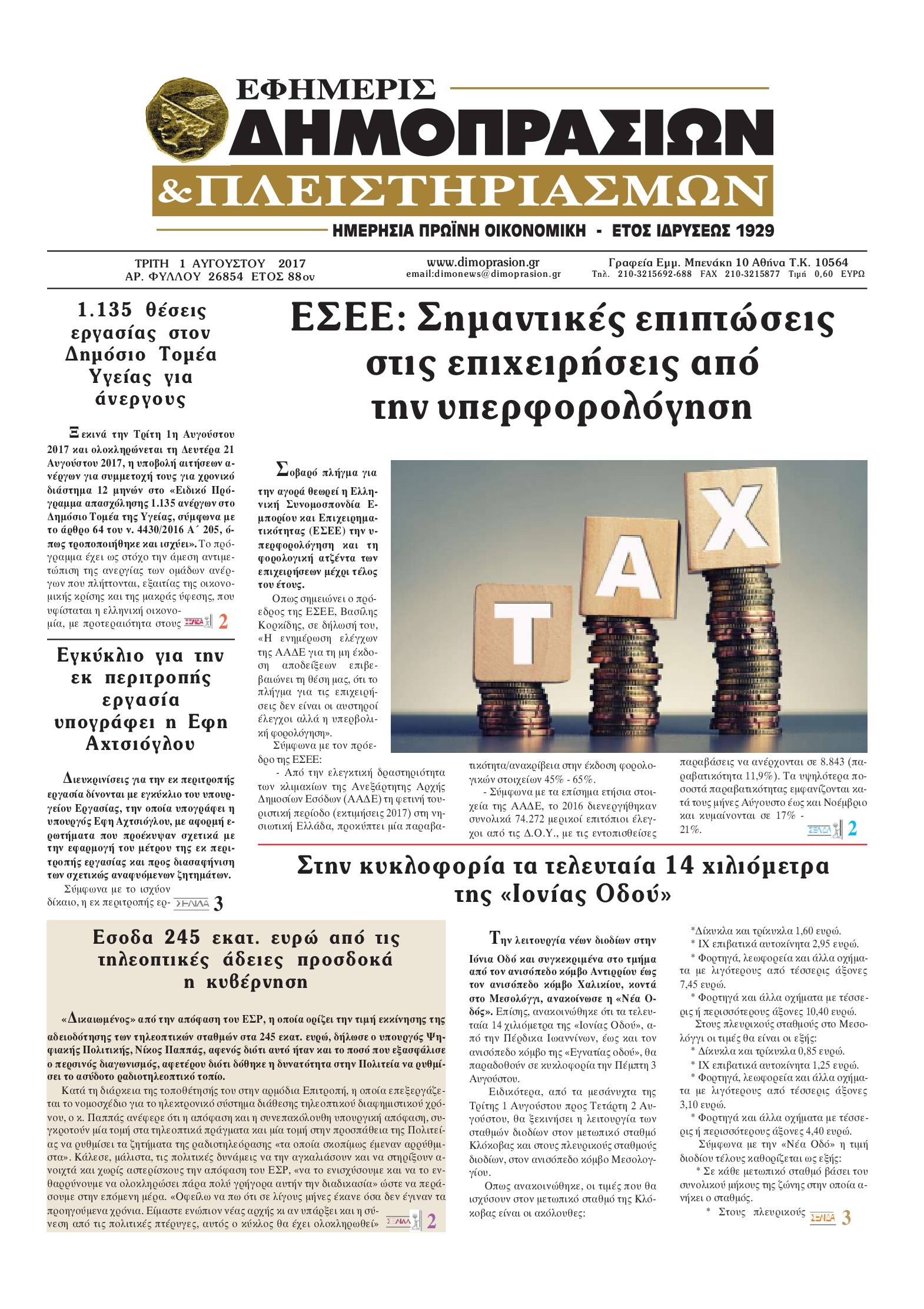 Οι οικονομικές εφημερίδες 1/8/2017 Κώστας Τεό 06:48, Τρίτη 01 Αυγούστου 2017 Media Διαβάστε τα σημερινά πρωτοσέλιδα των οικονομικών εφημερίδων: ΟΙΚΟΝΟΜΙΚΕΣ ΕΦΗΜΕΡΙΔΕΣ ΠΡΩΤΟΣΕΛΙΔΑ Μοιράσου το: σχολίασε κι εσύ (0 σχόλια) Ακολουθήστε το enikos.gr στο Google News και μάθετε πρώτοι όλες τις ειδήσεις Δείτε όλες τις τελευταίες ειδήσεις από την Ελλάδα και τον Κόσμο στο enikos.gr Ειδήσεις Ροή Ειδήσεων 3 ώρες πριν Αυξάνουν την πίεση προς την κυβέρνηση οι αγρότες: Κλείνουν παρακαμπτήριους και ανοίγουν διόδια – Τι θα γίνει τις γιορτές 1 ώρα πριν ΟΠΕΚΕΠΕ: Προφυλακιστέος ο φερόμενος αρχηγός και ο λογιστής της εγκληματικής οργάνωσης 2 ώρες πριν Φοινικούντα: Το Σάββατο απολογείται ο 30χρονος γιος γνωστού επιχειρηματία της Πλάκας που παραδόθηκε – Όσα είπε στους αστυνομικούς και ο ρόλος του στο έγκλημα 2 ώρες πριν Μπορεί ο Μαδούρο να αντέξει τον αποκλεισμό του Τραμπ; Τι θα χρειαστεί η Ουάσινγκτον για να τον ανατρέψει 4 ώρες πριν Πρίγκιπας Ουίλιαμ – Κέιτ: Η νέα οικογενειακή φωτογραφία για τις Χριστουγεννιάτικες κάρτες του 2025 3 ώρες πριν Ύπνος: Η απλή βραδινή ρουτίνα για να προστατεύσετε τα μαλλιά σας από το κρύο κατά τη διάρκεια του χειμώνα 4 ώρες πριν Manifesting: Πώς να συναντήσετε τον σύντροφο της ζωής σας, ανάλογα με τον μήνα γέννησής σας 2 ημέρες πριν 20 χρόνια τα Χριστούγεννα ξεκινούν στα Public με μεγάλη ποικιλία σε δώρα! 2 ώρες πριν Αρχαιολόγοι ανακάλυψαν ρωμαϊκά τεχνουργήματα από μια πόλη που δεν υπήρξε ποτέ – Τα τρία εντυπωσιακά κτίρια και ο αμφορέας με τις… σαρδέλες 3 λεπτά πριν Νέος πρέσβης της Μεγάλης Βρετανίας στις ΗΠΑ ο Κρίστιαν Τέρνερ 7 λεπτά πριν Conference League: Με Νόα, Ντρίτα, Άλκμααρ ή Τσέλιε στους «16» η ΑΕΚ 15 λεπτά πριν Conference League: Απευθείας στους «16» η ΑΕΚ Λάρνακας και η Ρακόβ των Σβάρνα και Κωνσταντόπουλου – Τα αποτελέσματα και η βαθμολογία, 3η η ΑΕΚ 25 λεπτά πριν Σε ομάδες που συνδέονται με το ρωσικό κράτος αποδίδει η Δανία δύο κυβερνοεπιθέσεις που δέχθηκε 40 λεπτά πριν Βαθμολογία UEFA: Η Πολωνία προσπέρασε την Ελλάδα ENIKOS NETWORK Σε περίοδο αυξημένης δραστηριότητας η γρίπη στην Ελλάδα-Μέτρα προστασίας από τον ΕΟΔΥ Σκέφτεστε συνέχεια συζητήσεις που έχετε κάνει; Τι σημαίνει αυτό, σύμφωνα με ειδικό Στεγαστικό: Τι λέει η ΠΟΜΙΔΑ για τα νέα μέτρα που ανακοίνωσε ο Κυριάκος Μητσοτάκης Λαγκάρντ: Αισιόδοξη για την ανάπτυξη της Ευρωζώνης, αβέβαιη για τον πληθωρισμό Χαρτογραφώντας το «σημείο χωρίς επιστροφή»: Για πρώτη φορά αποκαλύπτεται με λεπτομέρεια το ακανθώδες όριο της ατμόσφαιρας τ... Η Google καταργεί τη λειτουργία «dark web report» – Πώς θα μπορούν οι χρήστες να διαγράφουν τα δεδομένα τους περισσότερα 17:45 , Πέμπτη 18 Δεκεμβρίου 2025 ROUK ZOUK: Εορταστικό επεισόδιο με καλεσμένους τους πρωταγωνιστές του «Γιατί ρε πατέρα» Το Σάββατο 20 Δεκεμβρίου στις 21:00, η Ζέτα Μακρυπούλια υποδέχεται εκλεκτούς ηθοποιούς που όλο... 17:20 , Πέμπτη 18 Δεκεμβρίου 2025 Άγιος έρωτας: Η Χριστίνα εξομολογείται στον πατέρα Νικόλαο, απόψε στις 21:00 στον Alpha Η Νότα αποφασίζει να εκδικηθεί τον Πέτρο και τον Στέφανο, για χάρη του Λούη, όμως τα πράγματα ... 16:50 , Πέμπτη 18 Δεκεμβρίου 2025 Να μ’ αγαπάς: Ζωή και Φωτεινή συμφιλιώνονται ως μάνα με κόρη, απόψε στις 20:00 Η ταυτότητα του Άγγελου αποκαλύπτεται στο νέο επεισόδιο της σειράς “Να μ’ αγαπάς... 15:52 , Πέμπτη 18 Δεκεμβρίου 2025 Το Σπίτι Δίπλα Στο Ποτάμι: Το καθηλωτικό τελευταίο επεισόδιο για το 2025 απόψε στις 22:30 Καθηλώνει το σημερινό επεισόδιο της σειράς “Το Σπίτι Δίπλα Στο Ποτάμι” που έρχεται... ΤΕΛΕΥΤΑ