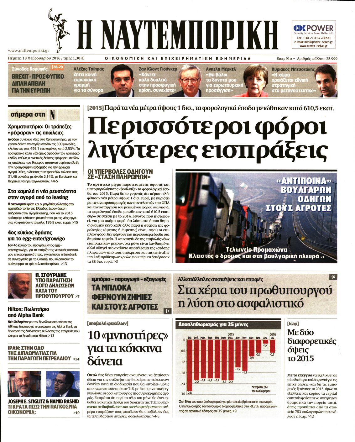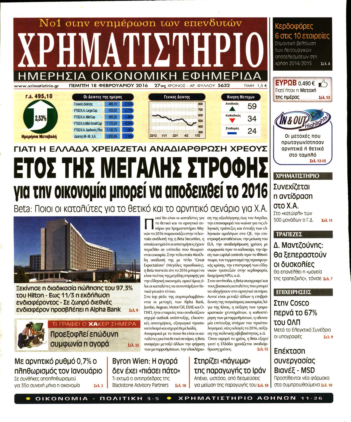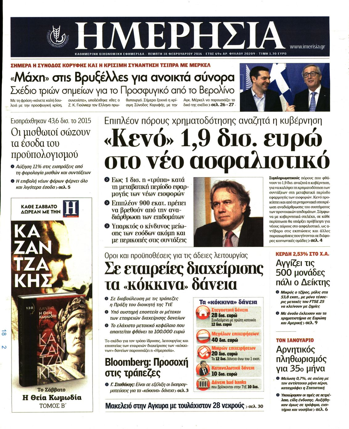 Οι οικονομικές εφημερίδες 18/2/2016 Enikos Newsroom 05:41, Πέμπτη 18 Φεβρουαρίου 2016 Media Διαβάστε τα σημερινά πρωτοσέλιδα των οικονομικών εφημερίδων: ΟΙΚΟΝΟΜΙΚΕΣ ΕΦΗΜΕΡΙΔΕΣ ΠΡΩΤΟΣΕΛΙΔΑ Μοιράσου το: σχολίασε κι εσύ (0 σχόλια) Ακολουθήστε το enikos.gr στο Google News και μάθετε πρώτοι όλες τις ειδήσεις Δείτε όλες τις τελευταίες ειδήσεις από την Ελλάδα και τον Κόσμο στο enikos.gr Ειδήσεις Ροή Ειδήσεων 2 ώρες πριν ΑΑΔΕ: Στον Εισαγγελέα οι πρώτες 50 μαζικές διαγραφές αγρών στο Ε9 – Εξετάζονται συνολικά 3.000 περιπτώσεις 5 ώρες πριν Καιρός: Νέο έκτακτο δελτίο επιδείνωσης από την ΕΜΥ – Ποιες περιοχές θα «χτυπήσει» η κακοκαιρία τα Χριστούγεννα 1 ώρα πριν Ζελένσκι: Πέρασε στην αντεπίθεση με το σχέδιο ειρήνης – Ζητεί συνάντηση με Τραμπ για το εδαφικό 6 ώρες πριν Live – Έξοδος Χριστουγέννων: Αυξημένη η κίνηση στις Εθνικές Οδούς – Εικόνα αποσυμφόρησης με νέες λωρίδες κυκλοφορίας στα αγροτικά μπλόκα 5 ώρες πριν Αεροπορικό δυστύχημα στην Τουρκία: Στο μικροσκόπιο ο καταγραφέας ήχου και το μαύρο κουτί – Η αεροσυνοδός Maria Pappa ανάμεσα στα θύματα 1 ώρα πριν Τα 5 ζώδια που έχουν μεγάλες πιθανότητες να πλουτίσουν το 2026 – «Οι οικονομικές δυσκολίες ανήκουν στο παρελθόν» 2 ώρες πριν Επιστήμονες ανακάλυψαν κάτι συγκλονιστικό – Η μάζα μπορεί να προέρχεται από αόρατες διαστάσεις 6 ώρες πριν Γυναίκα που έχασε 30 κιλά αποκαλύπτει τα μυστικά της επιτυχίας της – «Οι υδατάνθρακες είναι καύσιμο του οργανισμού, όχι εχθρός» 5 ώρες πριν Οι άνθρωποι που αποφεύγουν να γιορτάσουν τα Χριστούγεννα με την οικογένειά τους, συνήθως είχαν αυτές τις 8 εμπειρίες στην παιδική ηλικία 6 λεπτά πριν Greek Mafia: Στον ανακριτή ο 35χρονος συνεργός του «Εντίκ» – Σε δύο δόσεις η απολογία του 13 λεπτά πριν Κουίζ για την παλιά Αθήνα: Αναγνωρίζετε την περιοχή; Είναι από τις πιο γνωστές 20 λεπτά πριν Νετανιάχου: Κατηγορεί τη Χαμάς για παραβίαση της συμφωνίας – 110 δισ. δολάρια για ανεξάρτητη βιομηχανία όπλων 26 λεπτά πριν Θεσσαλονίκη: Άναψαν οι ψησταριές παρά τη βροχή στη Βασιλέως Ηρακλείου – Δείτε βίντεο 32 λεπτά πριν Σούπερ προσφορές* για Boxing Day, Super League, NBA και EuroLeague από το Pamestoixima.gr ENIKOS NETWORK ΕΟΔΥ: Οι «χρυσές» συμβουλές για να απολαύσουμε το Χριστουγεννιάτικο τραπέζι χωρίς υπερβολές New Year’s Resolutions: Μικρές αποφάσεις για μια καλή χρονιά ΑΑΔΕ: Στον Εισαγγελέα οι πρώτες 50 μαζικές διαγραφές αγρών στο Ε9 – Η λίστα με 3.000 «ιδιοκτήτες» για επιδοτήσεις ΟΠΕΚΕΠΕ Αλλάζουν οι διατάξεις του Κτιριοδομικού του Κτιριοδομικού Κανονισμού – Τι είπε ο Ταγαράς Ο Google Assistant θα παραμείνει λίγο περισσότερο για ορισμένους χρήστες Android Τεστ προσωπικότητας: Το βάζο που θα επιλέξετε αποκαλύπτει πώς λύνετε προβλήματα στη ζωή σας περισσότερα 16:12 , Τετάρτη 24 Δεκεμβρίου 2025 ALPHA: Παραμονή Χριστουγέννων με τον Κωνσταντίνο Αργυρό Ο Alpha παρουσιάζει απόψε σε πρώτη τηλεοπτική μετάδοση τη συναρπαστική και sold out εμφάνιση ... 15:51 , Τετάρτη 24 Δεκεμβρίου 2025 ‘Αγιος Έρωτας: Ο σεισμός που έκοψε την ανάσα – Δείτε τις συγκλονιστικές σκηνές Με έναν συγκλονιστικό τρόπο έκλεισε χθες βράδυ το τελευταίο επεισόδιο του 2025 της σειράς R... 13:27 , Τετάρτη 24 Δεκεμβρίου 2025 Ο Χριστουγεννιάτικος Τηλεμαραθώνιος του ΑΝΤ1 ένωσε τους πολιτικούς αρχηγούς – Τα εγκωμιαστικά σχόλια για τον Θοδωρή Κυριακού Σπάνια ομοφωνία: Όλοι οι πολιτικοί αρχηγοί αποθεώνουν τον Θοδωρή Κυριακού Ο Χριστουγεννιάτικος... 12:05 , Τετάρτη 24 Δεκεμβρίου 2025 Έξοδος εκδρομέων για τα Χριστούγεννα: Στείλε βίντεο ή φωτογραφίες στο enikos.gr – Αποθ