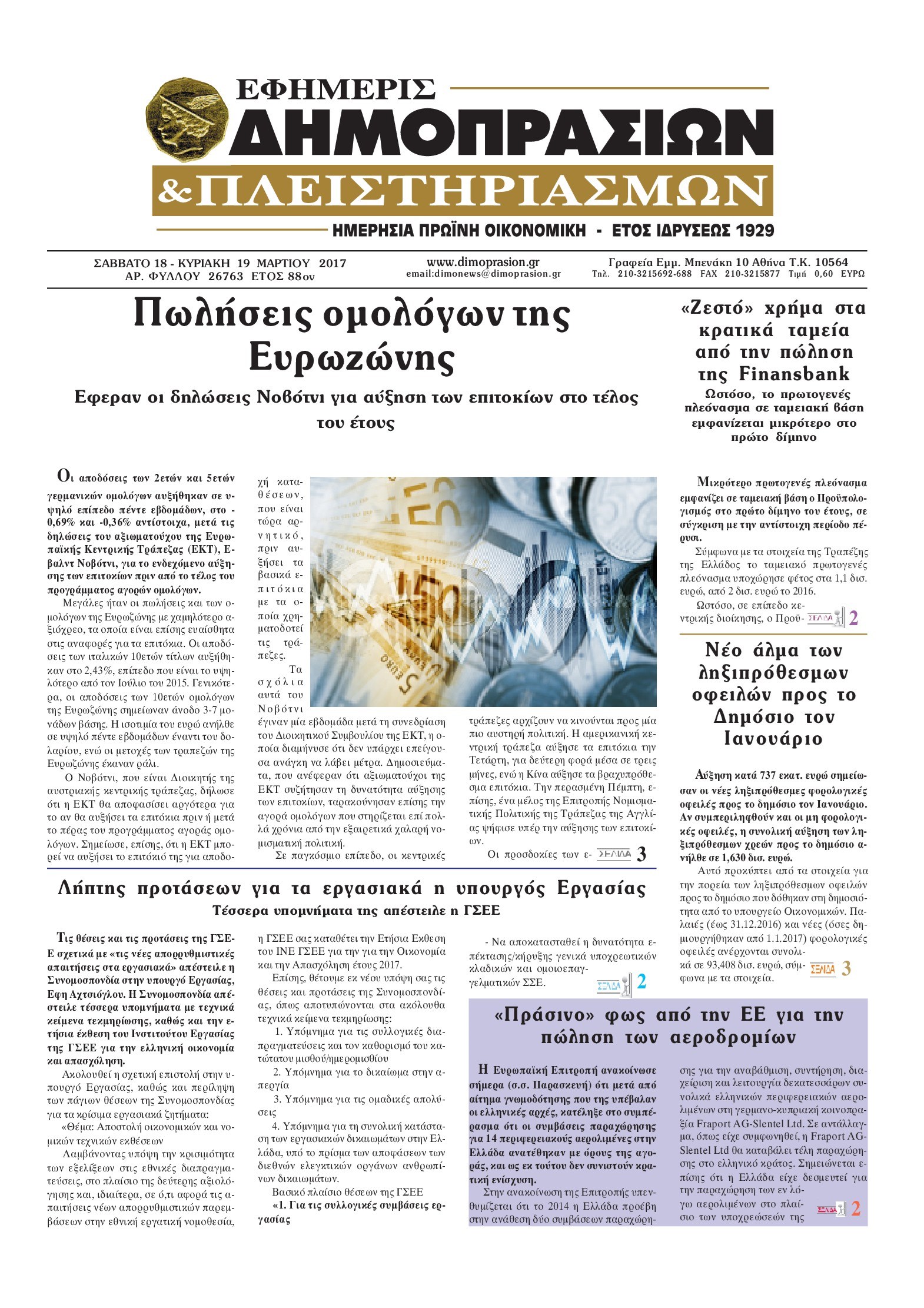 Διαβάστε τα σημερινά πρωτοσέλιδα των οικονομικών εφημερίδων: