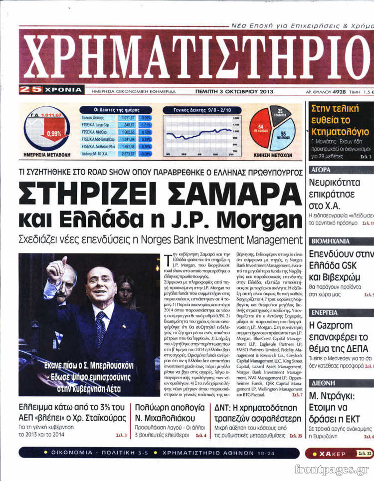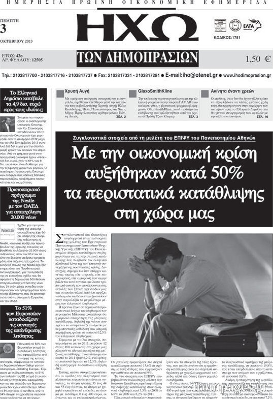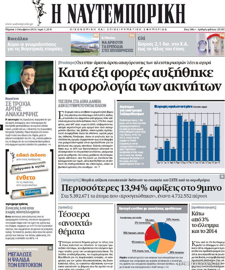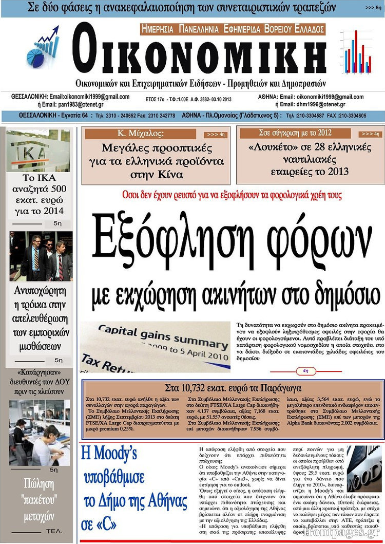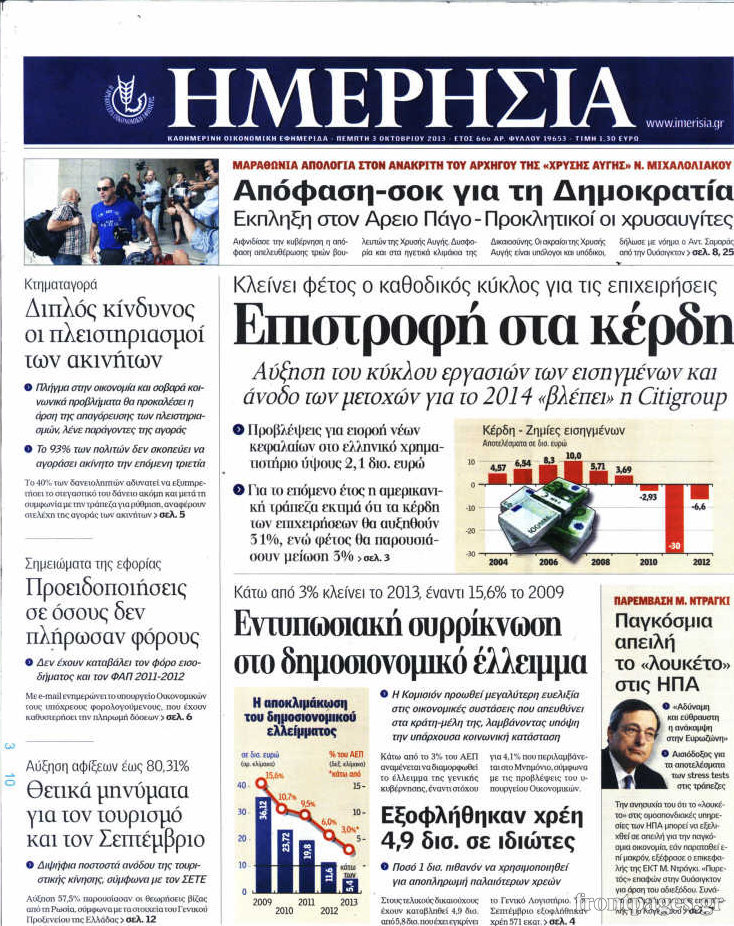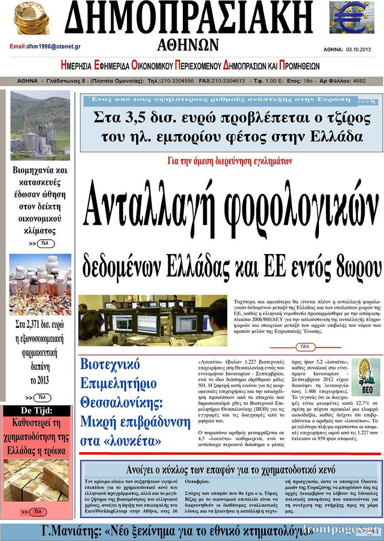 Οι oικονομικές εφημερίδες Enikos Newsroom 08:55, Πέμπτη 03 Οκτωβρίου 2013 Media Οι oικονομικές εφημερίδες Διαβάστε τα πρωτοσέλιδα των οικονομικών εφημερίδων: ΕΦΗΜΕΡΙΔΕΣ ΟΙΚΟΝΟΜΙΚΕΣ ΕΦΗΜΕΡΙΔΕΣ ΠΡΩΤΟΣΕΛΙΔΑ Μοιράσου το: σχολίασε κι εσύ (0 σχόλια) Ακολουθήστε το enikos.gr στο Google News και μάθετε πρώτοι όλες τις ειδήσεις Δείτε όλες τις τελευταίες ειδήσεις από την Ελλάδα και τον Κόσμο στο enikos.gr Ειδήσεις Ροή Ειδήσεων 22 λεπτά πριν Αγρότες: Πολύωροι αποκλεισμοί και σήμερα στα τελωνεία Ευζώνων, Νίκης, Προμαχώνα και Εξοχής 3 ώρες πριν Στεγαστικό: Όλο το σχέδιο για περισσότερα και φθηνότερα ενοικιαζόμενα σπίτια 38 λεπτά πριν Κυψέλη: Μαθητές κλείδωσαν τους καθηγητές μέσα στο Γυμνάσιο μετά την επίθεση με μαχαίρι 1 ώρα πριν Προϋπολογισμός 2026: Τα μηνύματα από την ομιλία Μητσοτάκη και τα «καρφιά» με πολλαπλούς αποδέκτες 1 ώρα πριν Ρομπ Ράινερ: Το δείπνο με τους Ομπάμα που δεν έγινε ποτέ και νέα στοιχεία για τον «καβγά» στο πάρτι – Βίντεο με τον γιο του να περιφέρεται κοντά στο σπίτι της τραγωδίας 4 ώρες πριν Οπτική ψευδαίσθηση: Μόνο αν είσαι ο Σέρλοκ Χολμς θα βρεις τον σκύλο σε 15 δευτερόλεπτα 4 ώρες πριν Τα ζώδια σήμερα, Τετάρτη 17 Δεκεμβρίου: Κριοί, η αυτοπεποίθησή σας ενισχύεται 2 ώρες πριν Νεολιθικός σκύλος βρέθηκε προσεκτικά θαμμένος στον βυθό λίμνης – Δίπλα του βρέθηκε ένα στιλέτο 54 λεπτά πριν Έλαβε τελεσίγραφο από τη σύντροφό του – «Μου είπε πως ή θα της κάνω πρόταση στα δύο χρόνια σχέσης ή θα με χωρίσει» 2 λεπτά πριν Αταμάν: Ξέσπασε μετά τη νίκη του Παναθηναϊκού για τα συνθήματα των οπαδών της Φενέρμπαχτσε – «10.000 αμόρφωτοι Τούρκοι έβριζαν τη μάνα μου» 8 λεπτά πριν Καιρός: Αλλάζει το σκηνικό – Βροχερά τα Χριστούγεννα, κρύο και χιόνια την Πρωτοχρονιά 12 λεπτά πριν Ανδρέας Παναγιωτόπουλος: Δεν ψήφισε στον προϋπολογισμό για να πάει στην εκδήλωση του Αλέξη Τσίπρα – «Μείζονος πολιτικής σημασίας η μεγάλη συγκέντρωση που έκανε» 17 λεπτά πριν Ανδρουλάκης: Τα έξι σημεία του σχεδίου για τον πρωτογενή τομέα που κατέθεσε στη Βουλή 22 λεπτά πριν Αγρότες: Πολύωροι αποκλεισμοί και σήμερα στα τελωνεία Ευζώνων, Νίκης, Προμαχώνα και Εξοχής ENIKOS NETWORK Δύο συστατικά που είναι καλό να βάλετε στον πρωινό σας καφέ – Βοηθούν στην απώλεια βάρους και τη ρύθμιση του σακχάρου Πρωτοποριακή θεραπεία για το Αλτσχάιμερ: Φως και ήχος μπορεί να επιβραδύνουν την εξέλιξη της νόσου Λεωφορεία: Στάση εργασίας πραγματοποιούν σήμερα οι εργαζόμενοι-Δείτε τις ώρες Έρχεται «νοικοκύρεμα » στα ακίνητα- Τι πρέπει να γνωρίζουν οι πολίτες Σύγχρονος Νοστράδαμος: Προειδοποιεί για «μεγάλο γεγονός» τους επόμενους μήνες που θα συγκλονίσει τη Βρετανία και τον κόσμο Τεστ παρατηρητικότητας: Μπορείτε να βρείτε τις 3 διαφορές στις εικόνες με έναν πιγκουίνο σε 14 δευτερόλεπτα περισσότερα 09:08 , Τετάρτη 17 Δεκεμβρίου 2025 Τηλεθέαση (16/12): Ανακατατάξεις στην πρωινή ψυχαγωγική ζώνη Ξεκάθαρη πρωτιά στην τηλεθέαση για την «Super Κατερίνα» στο δυναμικό κοινό με ποσοστό 18,5%, α... 08:00 , Τετάρτη 17 Δεκεμβρίου 2025 Την Κυριακή με τη Realnews: Δωροεπιταγή 10€ Δωροεπιταγή αξίας 10€ για αγορές άνω των 60€ από τα πολυκαταστήματα FactoryOutlet H προσφορά ι... 07:00 , Τετάρτη 17 Δεκεμβρίου 2025 Την Κυριακή με τη Realnews: Ό,τι και αν αγοράσεις, σκανάρεις και κερδίζεις! Την Κυριακή με τη Realnews: Ό,τι και αν αγοράσεις, σκανάρεις και κερδίζεις! Με το PADU app, το... 05:48 , Τετάρτη 17 Δεκεμβρίου 2025 Οι οικονομικές εφημερίδες 17/12/2025 Διαβάστε τα πρωτοσέλιδα από τις οικονομικές εφημερίδες, σήμερα 17/12/202