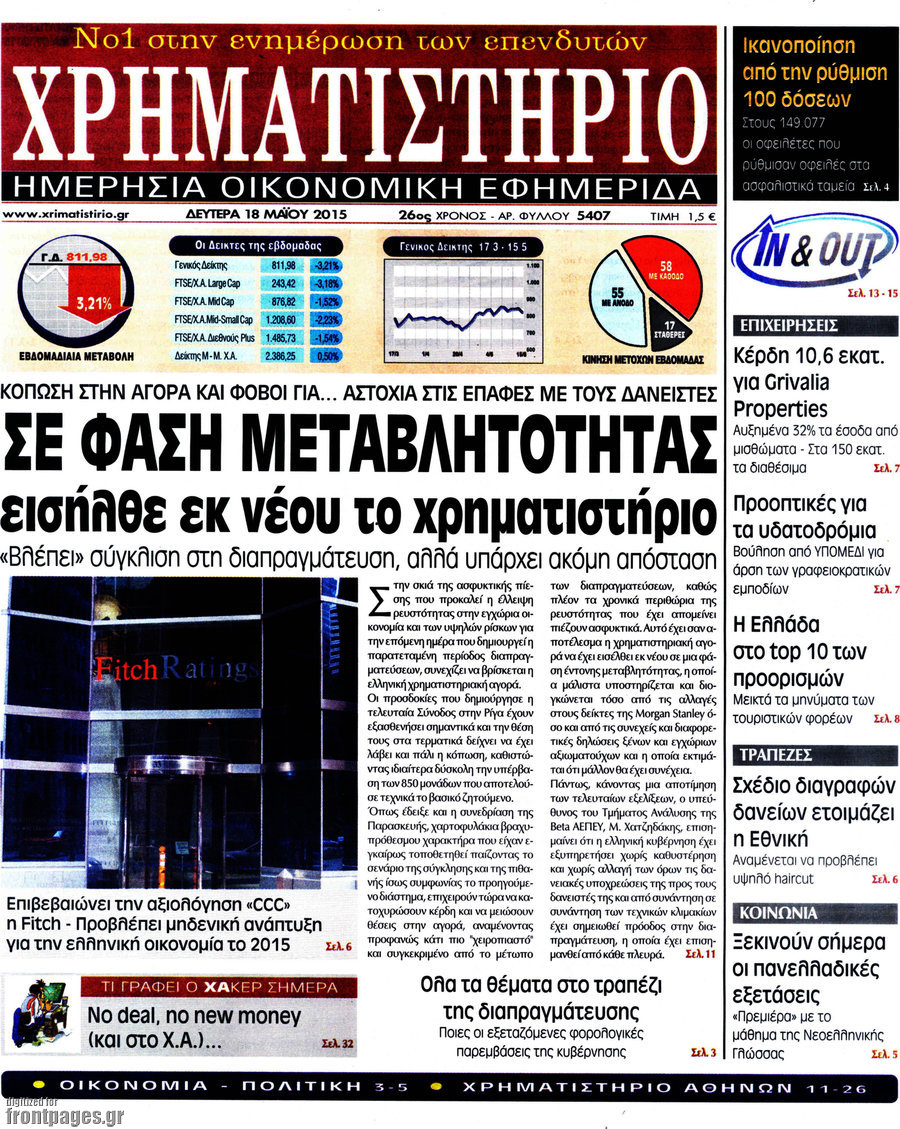 Οι οικονομικές εφημερίδες 18/5/2015 Enikos Newsroom 07:49, Δευτέρα 18 Μαΐου 2015 Media Διαβάστε τα σημερινά πρωτοσέλιδα των οικονομικών εφημερίδων: ΟΙΚΟΝΟΜΙΚΕΣ ΕΦΗΜΕΡΙΔΕΣ ΠΡΩΤΟΣΕΛΙΔΑ Μοιράσου το: σχολίασε κι εσύ (0 σχόλια) Ακολουθήστε το enikos.gr στο Google News και μάθετε πρώτοι όλες τις ειδήσεις Δείτε όλες τις τελευταίες ειδήσεις από την Ελλάδα και τον Κόσμο στο enikos.gr Ειδήσεις Ροή Ειδήσεων 7 ώρες πριν Μητσοτάκης: Αναγκαία η μεταρρύθμιση του πρωτογενούς τομέα – Τα 6 νέα μέτρα για το στεγαστικό και οι αναφορές σε «Ιθάκη» και «πολιτικούς του καναπέ» 6 ώρες πριν Δάνεια σε ελβετικό φράγκο: Τα βασικά σημεία της ρύθμισης – ανάσας για 40.000 δανειολήπτες – Αναλυτικός οδηγός με ερωτήσεις και απαντήσεις 6 ώρες πριν Κυψέλη: Εξιτήριο πήρε η 14χρονη μαθήτρια που μαχαιρώθηκε από την 16χρονη σε σχολείο – «Θέλω να βοηθήσω το παιδί, έχει μπλέξει με κακές παρέες» 6 ώρες πριν Τραμπ: Γιατί κατέθεσε τώρα την αγωγή κατά του BBC – Πώς η κίνησή του εξυπηρετεί το νέο δόγμα του για «αντίσταση» στην Ευρώπη, υπέρ των συντηρητικών 7 ώρες πριν ΟΠΕΚΕΠΕ – Παράνομες επιδοτήσεις: Ελεύθεροι με περιοριστικούς όρους και οι 7 κατηγορούμενοι που απολογήθηκαν σήμερα 6 ώρες πριν Ανακαλύφθηκε βυθισμένη πέτρινη κατασκευή ανοιχτά της Κριμαίας – Αποτελεί μέρος αρχαίας ελληνικής αποικίας 7 ώρες πριν Ύπνος: Αυτό μπορεί να είναι το χειρότερο λάθος για το βιολογικό ρολόι σας, σύμφωνα με ειδικό 8 ώρες πριν Αριθμολογία: Οι άνθρωποι που έχουν γεννηθεί αυτές τις 3 ημερομηνίες, προσελκύουν μεγάλη τύχη πριν από το τέλος του 2025 10 ώρες πριν Οι 7 συμπεριφορές που μαρτυρούν ότι ένας άνδρας επενδύει μακροπρόθεσμα σε μια σχέση 7 λεπτά πριν Ελένη Καρακάση: «Ένιωθα πολύ αδικημένη, δεν μπορούσα να ελέγξω τον εαυτό μου σε δύσκολες στιγμές» 15 λεπτά πριν Κλαούδια Σέινμπαουμ προς Ντόναλντ Τραμπ για φαιντανύλη: Να επιτεθούμε στα αίτια κατανάλωσης αντί να την κατατάσσουμε στα «όπλα μαζικής καταστροφής» 23 λεπτά πριν Ρωσία: Ουκρανική επίθεση με drones στο Κρασνοντάρ – Δύο τραυματίες, ζημιές σε σπίτια και διακοπή ρεύματος 31 λεπτά πριν Αντόνιο Ταγιάνι: Νομικά εμπόδια για τη χρήση των ρωσικών κεφαλαίων υπέρ της Ουκρανίας 39 λεπτά πριν Pornhub: «Χτυπήθηκε» από χάκερς -Υπέκλεψαν ευαίσθητα δεδομένα από premium χρήστες ENIKOS NETWORK Αίτημα ΙΣΑ για την εξαίρεση των προσωπικών γιατρών από τις κατ’ οίκον επισκέψεις Η σκανδιναβική μέθοδος στον ύπνο που μπορεί να σώσει έναν γάμο Πιερρακάκης: Ο προϋπολογισμός συμβάλλει ουσιαστικά στην ενίσχυση της αγοραστικής δύναμης της πλειονότητας των εργαζομένων e-ΕΦΚΑ: Παρατείνεται η προθεσμία για την υποβολή ΑΠΔ – Ποιους αφορά Σύγχρονος Νοστράδαμος: Προειδοποιεί για «μεγάλο γεγονός» τους επόμενους μήνες που θα συγκλονίσει τη Βρετανία και τον κόσμο Τεστ παρατηρητικότητας: Μπορείτε να βρείτε τις 3 διαφορές στις εικόνες με έναν πιγκουίνο σε 14 δευτερόλεπτα περισσότερα 20:06 , Τρίτη 16 Δεκεμβρίου 2025 Ο ΣΚΑΙ καταγγέλλει τον ΕΚΚΟΜΕΔ Επιστολή με την οποία καταγράφει την έντονη διαμαρτυρία του προς τον διευθύνοντα σύμβουλο του... 17:40 , Τρίτη 16 Δεκεμβρίου 2025 Eurovision: Στις 4 Ιανουαρίου αποκαλύπτονται τα 28 τραγούδια του ελληνικού τελικού Η αγωνία τελειώνει, η γιορτή της Eurovision αρχίζει στην ΕΡΤ από τις πρώτες ημέρες της νέας χρ... 17:09 , Τρίτη 16 Δεκεμβρίου 2025 Alter Ego Media: Βαθύτατη θλίψη και ειλικρινή συλλυπητήρια για την απώλεια της Ειρήνης Μαρινάκη Τη βαθύτατη θλίψη και τα ειλικρινή συλλυπητήριά της εκφράζει η Alter Ego Media για τον θάνατο ... 13:00 , Τρ