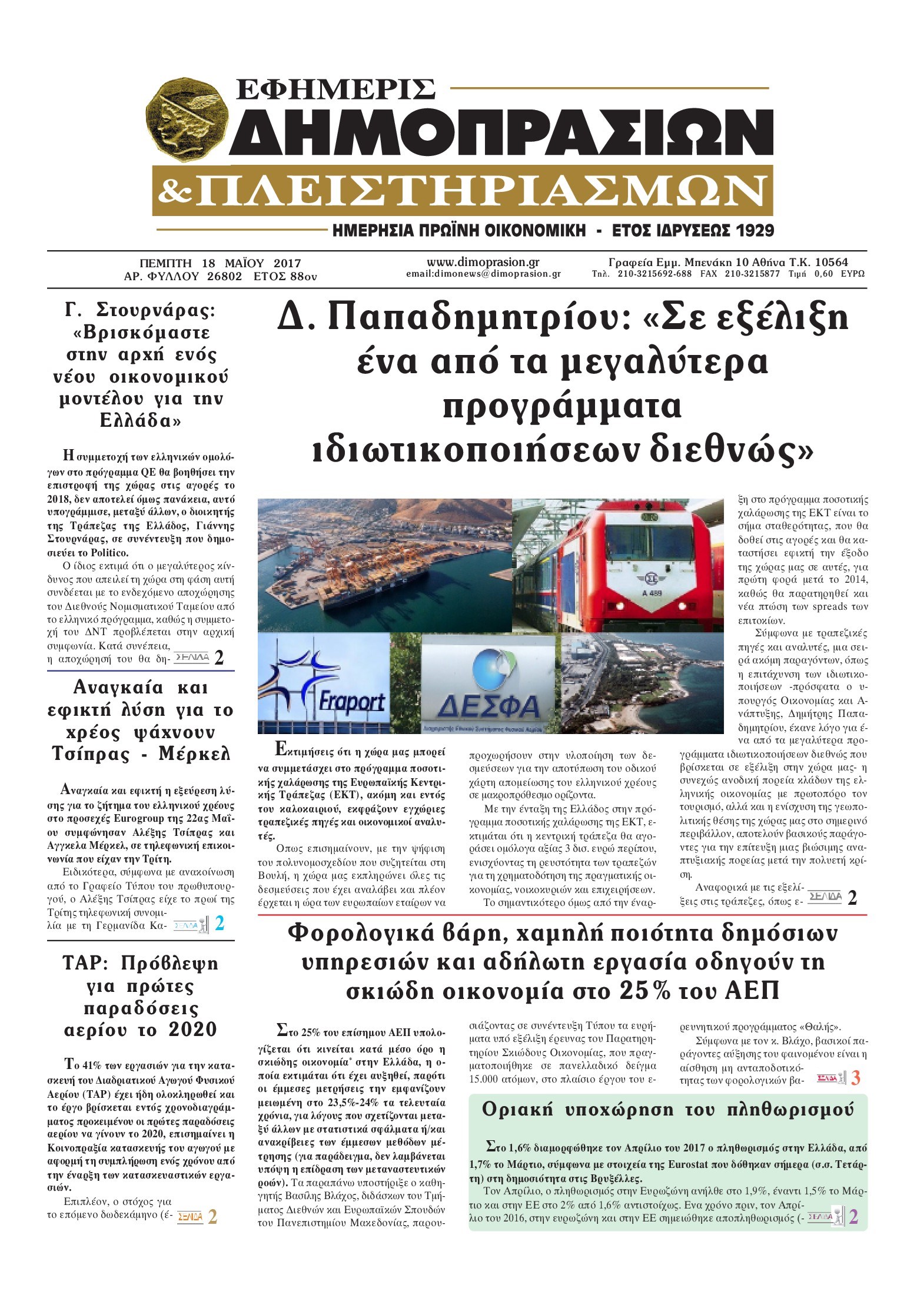 Οι οικονομικές εφημερίδες 18/5/2017 Enikos Newsroom 06:59, Πέμπτη 18 Μαΐου 2017 Media Διαβάστε τα σημερινά πρωτοσέλιδα των οικονομικών εφημερίδων: ΟΙΚΟΝΟΜΙΚΕΣ ΕΦΗΜΕΡΙΔΕΣ ΠΡΩΤΟΣΕΛΙΔΑ Μοιράσου το: σχολίασε κι εσύ (0 σχόλια) Ακολουθήστε το enikos.gr στο Google News και μάθετε πρώτοι όλες τις ειδήσεις Δείτε όλες τις τελευταίες ειδήσεις από την Ελλάδα και τον Κόσμο στο enikos.gr Ειδήσεις Ροή Ειδήσεων 2 ώρες πριν Αυξάνουν την πίεση προς την κυβέρνηση οι αγρότες: Κλείνουν παρακαμπτήριους και ανοίγουν διόδια – Τι θα γίνει τις γιορτές 1 ώρα πριν ΟΠΕΚΕΠΕ: Προφυλακιστέος ο φερόμενος αρχηγός και ο λογιστής της εγκληματικής οργάνωσης 2 ώρες πριν Φοινικούντα: Το Σάββατο απολογείται ο 30χρονος γιος γνωστού επιχειρηματία της Πλάκας που παραδόθηκε – Όσα είπε στους αστυνομικούς και ο ρόλος του στο έγκλημα 2 ώρες πριν Μπορεί ο Μαδούρο να αντέξει τον αποκλεισμό του Τραμπ; Τι θα χρειαστεί η Ουάσινγκτον για να τον ανατρέψει 3 ώρες πριν Πρίγκιπας Ουίλιαμ – Κέιτ: Η νέα οικογενειακή φωτογραφία για τις Χριστουγεννιάτικες κάρτες του 2025 3 ώρες πριν Ύπνος: Η απλή βραδινή ρουτίνα για να προστατεύσετε τα μαλλιά σας από το κρύο κατά τη διάρκεια του χειμώνα 4 ώρες πριν Manifesting: Πώς να συναντήσετε τον σύντροφο της ζωής σας, ανάλογα με τον μήνα γέννησής σας 2 ημέρες πριν 20 χρόνια τα Χριστούγεννα ξεκινούν στα Public με μεγάλη ποικιλία σε δώρα! 2 ώρες πριν Αρχαιολόγοι ανακάλυψαν ρωμαϊκά τεχνουργήματα από μια πόλη που δεν υπήρξε ποτέ – Τα τρία εντυπωσιακά κτίρια και ο αμφορέας με τις… σαρδέλες 3 δευτερόλεπτα πριν Conference League: Με Νόα, Ντρίτα, Άλκμααρ ή Τσέλιε στους «16» η ΑΕΚ 8 λεπτά πριν Conference League: Απευθείας στους «16» η ΑΕΚ Λάρνακας και η Ρακόβ των Σβάρνα και Κωνσταντόπουλου – Τα αποτελέσματα και η βαθμολογία, 3η η ΑΕΚ 18 λεπτά πριν Σε ομάδες που συνδέονται με το ρωσικό κράτος αποδίδει η Δανία δύο κυβερνοεπιθέσεις που δέχθηκε 33 λεπτά πριν Βαθμολογία UEFA: Η Πολωνία προσπέρασε την Ελλάδα 49 λεπτά πριν Conference League: Οι ομάδες που προκρίθηκαν στους «16» και τα «ζευγαρώματα» στα νοκ άουτ ENIKOS NETWORK Σε περίοδο αυξημένης δραστηριότητας η γρίπη στην Ελλάδα-Μέτρα προστασίας από τον ΕΟΔΥ Σκέφτεστε συνέχεια συζητήσεις που έχετε κάνει; Τι σημαίνει αυτό, σύμφωνα με ειδικό Στεγαστικό: Τι λέει η ΠΟΜΙΔΑ για τα νέα μέτρα που ανακοίνωσε ο Κυριάκος Μητσοτάκης Λαγκάρντ: Αισιόδοξη για την ανάπτυξη της Ευρωζώνης, αβέβαιη για τον πληθωρισμό Χαρτογραφώντας το «σημείο χωρίς επιστροφή»: Για πρώτη φορά αποκαλύπτεται με λεπτομέρεια το ακανθώδες όριο της ατμόσφαιρας τ... Η Google καταργεί τη λειτουργία «dark web report» – Πώς θα μπορούν οι χρήστες να διαγράφουν τα δεδομένα τους περισσότερα 17:45 , Πέμπτη 18 Δεκεμβρίου 2025 ROUK ZOUK: Εορταστικό επεισόδιο με καλεσμένους τους πρωταγωνιστές του «Γιατί ρε πατέρα» Το Σάββατο 20 Δεκεμβρίου στις 21:00, η Ζέτα Μακρυπούλια υποδέχεται εκλεκτούς ηθοποιούς που όλο... 17:20 , Πέμπτη 18 Δεκεμβρίου 2025 Άγιος έρωτας: Η Χριστίνα εξομολογείται στον πατέρα Νικόλαο, απόψε στις 21:00 στον Alpha Η Νότα αποφασίζει να εκδικηθεί τον Πέτρο και τον Στέφανο, για χάρη του Λούη, όμως τα πράγματα ... 16:50 , Πέμπτη 18 Δεκεμβρίου 2025 Να μ’ αγαπάς: Ζωή και Φωτεινή συμφιλιώνονται ως μάνα με κόρη, απόψε στις 20:00 Η ταυτότητα του Άγγελου αποκαλύπτεται στο νέο επεισόδιο της σειράς “Να μ’ αγαπάς... 15:52 , Πέμπτη 18 Δεκεμβρίου 2025 Το Σπίτι Δίπλα Στο Ποτάμι: Το καθηλωτικό τελευταίο επεισόδιο για το 2025 απόψε στις 22:30 Καθηλώνει το σημερινό επεισόδιο της σειράς “Το Σπίτι Δίπλα Στο Ποτάμι” π