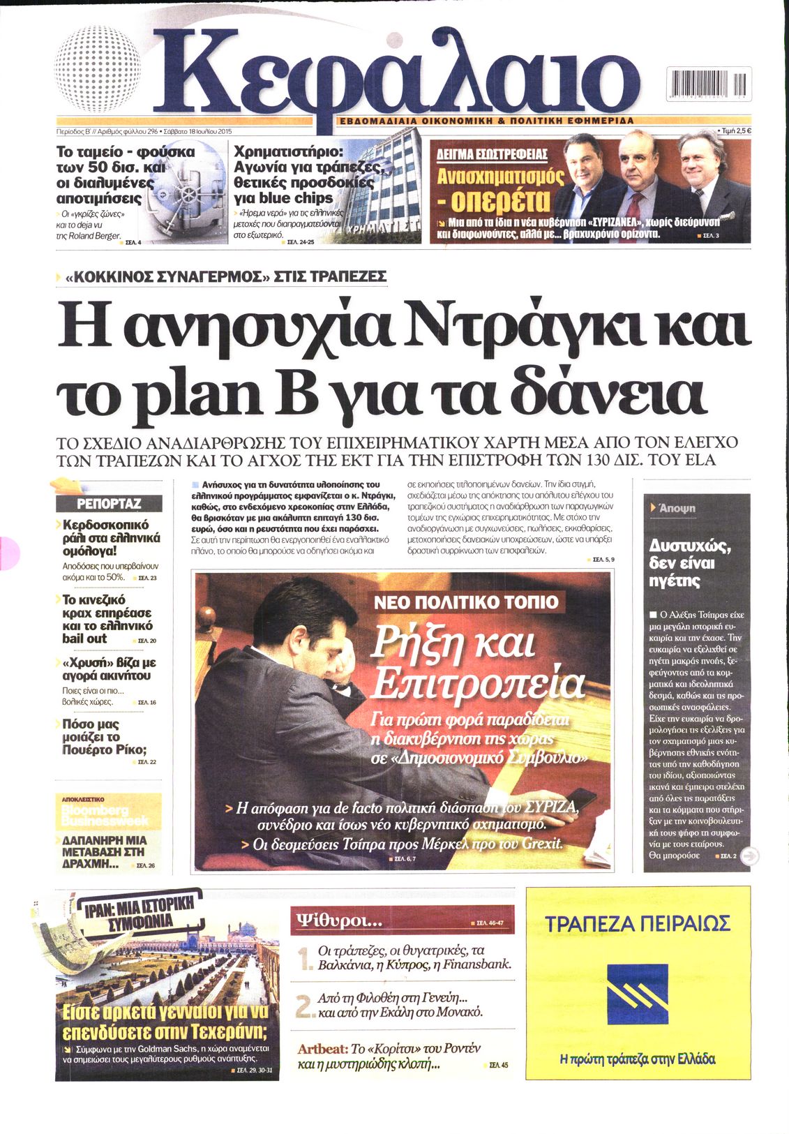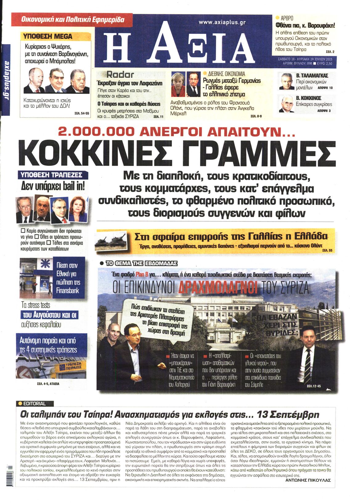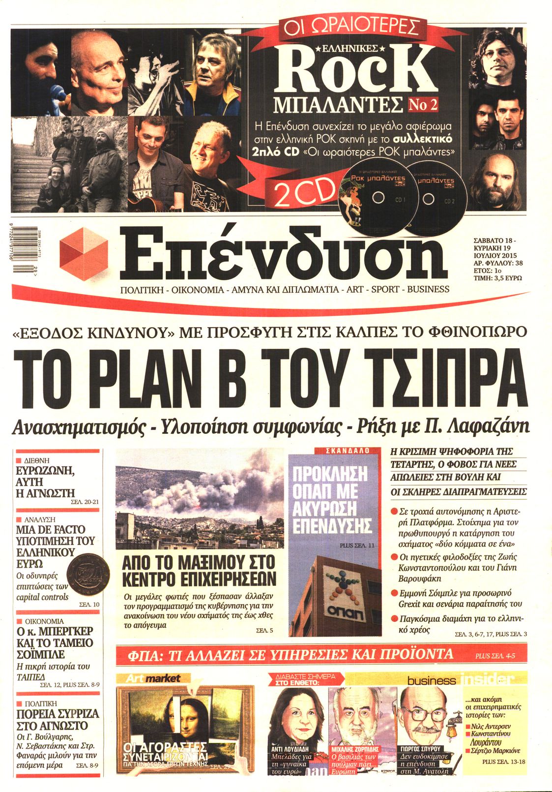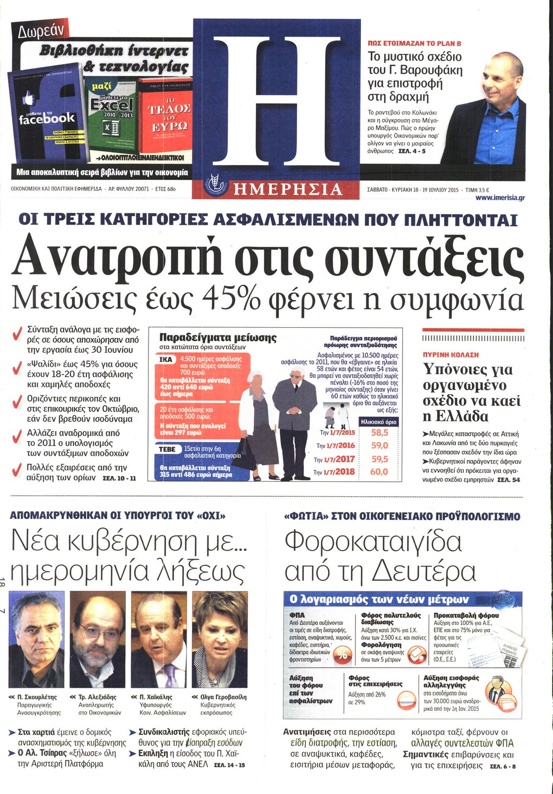 Οι οικονομικές εφημερίδες 18/7/2015 Enikos Newsroom 06:18, Σάββατο 18 Ιουλίου 2015 Media Διαβάστε τα σημερινά πρωτοσέλιδα των οικονομικών εφημερίδων: ΟΙΚΟΝΟΜΙΚΕΣ ΕΦΗΜΕΡΙΔΕΣ ΠΡΩΤΟΣΕΛΙΔΑ Μοιράσου το: σχολίασε κι εσύ (0 σχόλια) Ακολουθήστε το enikos.gr στο Google News και μάθετε πρώτοι όλες τις ειδήσεις Δείτε όλες τις τελευταίες ειδήσεις από την Ελλάδα και τον Κόσμο στο enikos.gr Ειδήσεις Ροή Ειδήσεων 8 ώρες πριν Μητσοτάκης: Αναγκαία η μεταρρύθμιση του πρωτογενούς τομέα – Τα 6 νέα μέτρα για το στεγαστικό και οι αναφορές σε «Ιθάκη» και «πολιτικούς του καναπέ» 7 ώρες πριν Δάνεια σε ελβετικό φράγκο: Τα βασικά σημεία της ρύθμισης – ανάσας για 40.000 δανειολήπτες – Αναλυτικός οδηγός με ερωτήσεις και απαντήσεις 6 ώρες πριν Κυψέλη: Εξιτήριο πήρε η 14χρονη μαθήτρια που μαχαιρώθηκε από την 16χρονη σε σχολείο – «Θέλω να βοηθήσω το παιδί, έχει μπλέξει με κακές παρέες» 6 ώρες πριν Τραμπ: Γιατί κατέθεσε τώρα την αγωγή κατά του BBC – Πώς η κίνησή του εξυπηρετεί το νέο δόγμα του για «αντίσταση» στην Ευρώπη, υπέρ των συντηρητικών 7 ώρες πριν ΟΠΕΚΕΠΕ – Παράνομες επιδοτήσεις: Ελεύθεροι με περιοριστικούς όρους και οι 7 κατηγορούμενοι που απολογήθηκαν σήμερα 6 ώρες πριν Ανακαλύφθηκε βυθισμένη πέτρινη κατασκευή ανοιχτά της Κριμαίας – Αποτελεί μέρος αρχαίας ελληνικής αποικίας 7 ώρες πριν Ύπνος: Αυτό μπορεί να είναι το χειρότερο λάθος για το βιολογικό ρολόι σας, σύμφωνα με ειδικό 8 ώρες πριν Αριθμολογία: Οι άνθρωποι που έχουν γεννηθεί αυτές τις 3 ημερομηνίες, προσελκύουν μεγάλη τύχη πριν από το τέλος του 2025 10 ώρες πριν Οι 7 συμπεριφορές που μαρτυρούν ότι ένας άνδρας επενδύει μακροπρόθεσμα σε μια σχέση 6 λεπτά πριν Κολομβία: Νεκροί τέσσερις αστυνομικοί σε βομβιστικές επιθέσεις ανταρτών 14 λεπτά πριν Στάση εργασίας 11:00 – 17:00 σήμερα στα λεωφορεία του ΟΑΣΑ – Ποιες γραμμές θα λειτουργήσουν 30 λεπτά πριν Παλαιστινιακό: «Η λύση των δύο κρατών είναι ο μόνος βιώσιμος δρόμος», τόνισε η Ελλάδα στο Συμβούλιο Ασφαλείας του ΟΗΕ 37 λεπτά πριν Ελένη Καρακάση: «Ένιωθα πολύ αδικημένη, δεν μπορούσα να ελέγξω τον εαυτό μου σε δύσκολες στιγμές» 45 λεπτά πριν Κλαούδια Σέινμπαουμ προς Ντόναλντ Τραμπ για φαιντανύλη: Να επιτεθούμε στα αίτια κατανάλωσης αντί να την κατατάσσουμε στα «όπλα μαζικής καταστροφής» ENIKOS NETWORK Αίτημα ΙΣΑ για την εξαίρεση των προσωπικών γιατρών από τις κατ’ οίκον επισκέψεις Η σκανδιναβική μέθοδος στον ύπνο που μπορεί να σώσει έναν γάμο Πιερρακάκης: Ο προϋπολογισμός συμβάλλει ουσιαστικά στην ενίσχυση της αγοραστικής δύναμης της πλειονότητας των εργαζομένων e-ΕΦΚΑ: Παρατείνεται η προθεσμία για την υποβολή ΑΠΔ – Ποιους αφορά Σύγχρονος Νοστράδαμος: Προειδοποιεί για «μεγάλο γεγονός» τους επόμενους μήνες που θα συγκλονίσει τη Βρετανία και τον κόσμο Τεστ παρατηρητικότητας: Μπορείτε να βρείτε τις 3 διαφορές στις εικόνες με έναν πιγκουίνο σε 14 δευτερόλεπτα περισσότερα 20:06 , Τρίτη 16 Δεκεμβρίου 2025 Ο ΣΚΑΙ καταγγέλλει τον ΕΚΚΟΜΕΔ Επιστολή με την οποία καταγράφει την έντονη διαμαρτυρία του προς τον διευθύνοντα σύμβουλο του... 17:40 , Τρίτη 16 Δεκεμβρίου 2025 Eurovision: Στις 4 Ιανουαρίου αποκαλύπτονται τα 28 τραγούδια του ελληνικού τελικού Η αγωνία τελειώνει, η γιορτή της Eurovision αρχίζει στην ΕΡΤ από τις πρώτες ημέρες της νέας χρ... 17:09 , Τρίτη 16 Δεκεμβρίου 2025 Alter Ego Media: Βαθύτατη θλίψη και ειλικρινή συλλυπητήρια για την απώλεια της Ειρήνης Μαρινάκη Τη βαθύτατη θλίψη και τα ειλικρινή συλλυπητήριά της εκφράζει η Alter Ego Media για τον