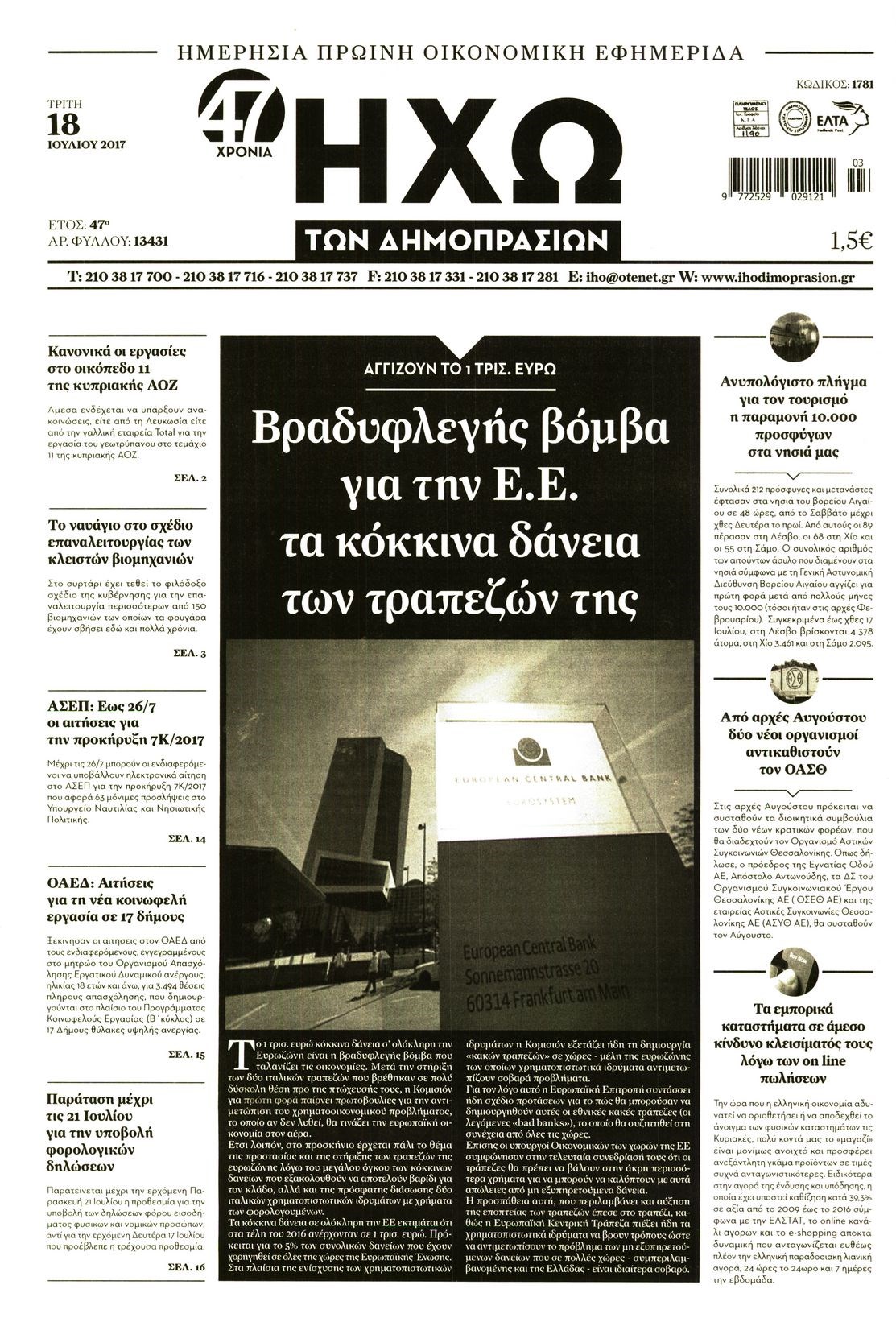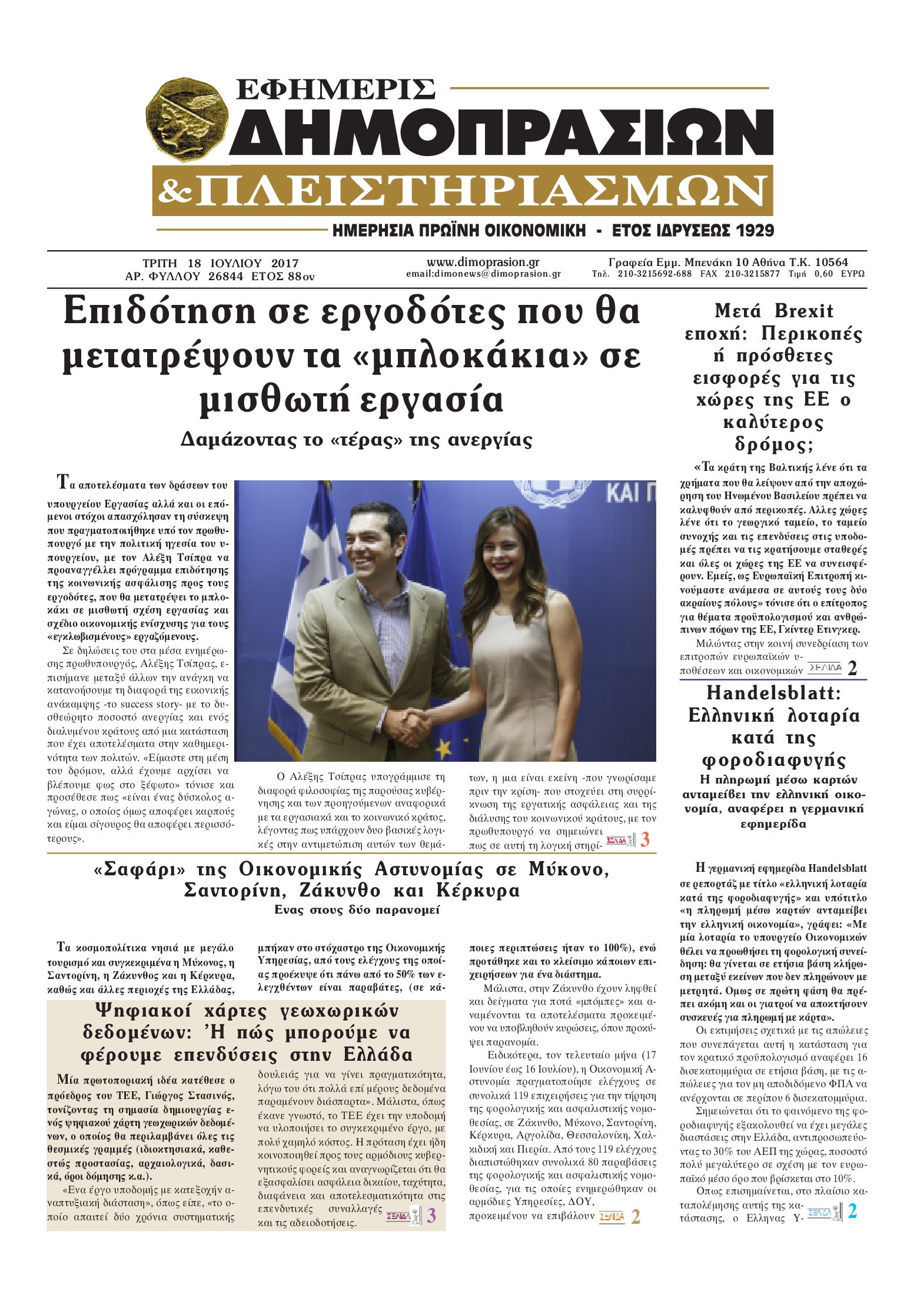 Οι οικονομικές εφημερίδες 18/7/2017 Enikos Newsroom 07:29, Τρίτη 18 Ιουλίου 2017 Media Διαβάστε τα σημερινά πρωτοσέλιδα των οικονομικών εφημερίδων: ΟΙΚΟΝΟΜΙΚΕΣ ΕΦΗΜΕΡΙΔΕΣ ΠΡΩΤΟΣΕΛΙΔΑ Μοιράσου το: σχολίασε κι εσύ (0 σχόλια) Ακολουθήστε το enikos.gr στο Google News και μάθετε πρώτοι όλες τις ειδήσεις Δείτε όλες τις τελευταίες ειδήσεις από την Ελλάδα και τον Κόσμο στο enikos.gr Ειδήσεις Ροή Ειδήσεων 1 ώρα πριν Ευρωπαϊκή Ένωση: Συμφωνία για δάνειο 90 δισ. ευρώ στην Ουκρανία τη διετία 2026-2027 6 ώρες πριν ΟΠΕΚΕΠΕ: Προφυλακιστέος ο φερόμενος αρχηγός και ο λογιστής της εγκληματικής οργάνωσης 7 ώρες πριν Αυξάνουν την πίεση προς την κυβέρνηση οι αγρότες: Κλείνουν παρακαμπτήριους και ανοίγουν διόδια – Τι θα γίνει τις γιορτές 7 ώρες πριν Φοινικούντα: Το Σάββατο απολογείται ο 30χρονος γιος γνωστού επιχειρηματία της Πλάκας που παραδόθηκε – Όσα είπε στους αστυνομικούς και ο ρόλος του στο έγκλημα 5 ώρες πριν ΑΕΚ – Κραϊόβα 3-2: Επική ανατροπή και πρόκριση στους «16» του Conference League η Ένωση 6 ώρες πριν Αρχαιολόγοι ανακάλυψαν ρωμαϊκά τεχνουργήματα από μια πόλη που δεν υπήρξε ποτέ – Τα τρία εντυπωσιακά κτίρια και ο αμφορέας με τις… σαρδέλες 7 ώρες πριν Ύπνος: Η απλή βραδινή ρουτίνα για να προστατεύσετε τα μαλλιά σας από το κρύο κατά τη διάρκεια του χειμώνα 8 ώρες πριν Manifesting: Πώς να συναντήσετε τον σύντροφο της ζωής σας, ανάλογα με τον μήνα γέννησής σας 2 ημέρες πριν 20 χρόνια τα Χριστούγεννα ξεκινούν στα Public με μεγάλη ποικιλία σε δώρα! 22 δευτερόλεπτα πριν Εφημερεύοντα φαρμακεία σε Αθήνα και Θεσσαλονίκη (19/12) 7 λεπτά πριν Η TikTok στις ΗΠΑ πωλείται σε Oracle, Silver Lake και MGX – Οι λεπτομέρειες του «deal» 15 λεπτά πριν Αλεξάντερ Λουκασένκο: Η Λευκορωσία βρίσκεται κοντά στην αποκατάσταση των σχέσεών της με τις ΗΠΑ 31 λεπτά πριν Αυστραλία: Κήρυξε την Κυριακή (21/12) ημέρα εθνικού πένθους για τη φονική επίθεση στην παραλία Μπόνταϊ 41 λεπτά πριν Ρόδος: Δάσκαλος καράτε καταδικάστηκε για ασέλγεια σε ανήλικες αθλήτριες – Μαρτυρίες για αγγίγματα σε ευαίσθητα σημεία ENIKOS NETWORK Σε περίοδο αυξημένης δραστηριότητας η γρίπη στην Ελλάδα-Μέτρα προστασίας από τον ΕΟΔΥ Σκέφτεστε συνέχεια συζητήσεις που έχετε κάνει; Τι σημαίνει αυτό, σύμφωνα με ειδικό Στεγαστικό: Τι λέει η ΠΟΜΙΔΑ για τα νέα μέτρα που ανακοίνωσε ο Κυριάκος Μητσοτάκης Λαγκάρντ: Αισιόδοξη για την ανάπτυξη της Ευρωζώνης, αβέβαιη για τον πληθωρισμό Χαρτογραφώντας το «σημείο χωρίς επιστροφή»: Για πρώτη φορά αποκαλύπτεται με λεπτομέρεια το ακανθώδες όριο της ατμόσφαιρας τ... Η Google καταργεί τη λειτουργία «dark web report» – Πώς θα μπορούν οι χρήστες να διαγράφουν τα δεδομένα τους περισσότερα 02:50 , Παρασκευή 19 Δεκεμβρίου 2025 GNTM: «Κλείδωσαν» οι τέσσερις φιναλίστ – Μεγάλη ανατροπή στις τελευταίες αποχωρήσεις Για προτελευταία φορά εμφανίστηκαν στο πλατό του GNTM οι φιναλίστ του φετινού κύκλου, το βράδυ... 17:45 , Πέμπτη 18 Δεκεμβρίου 2025 ROUK ZOUK: Εορταστικό επεισόδιο με καλεσμένους τους πρωταγωνιστές του «Γιατί ρε πατέρα» Το Σάββατο 20 Δεκεμβρίου στις 21:00, η Ζέτα Μακρυπούλια υποδέχεται εκλεκτούς ηθοποιούς που όλο... 17:20 , Πέμπτη 18 Δεκεμβρίου 2025 Άγιος έρωτας: Η Χριστίνα εξομολογείται στον πατέρα Νικόλαο, απόψε στις 21:00 στον Alpha Η Νότα αποφασίζει να εκδικηθεί τον Πέτρο και τον Στέφανο, για χάρη του Λούη, όμως τα πράγματα ... 16:50 , Πέμπτη 18 Δεκεμβρίου 2025 Να μ’ αγαπάς: Ζωή και Φωτεινή συμφιλιώνονται ως μάνα με κόρη, απόψε στις 20:00 Η ταυτότητα του Άγγελου αποκαλύπτεται στο νέο επεισόδιο της σειράς “Να μ’ αγα
