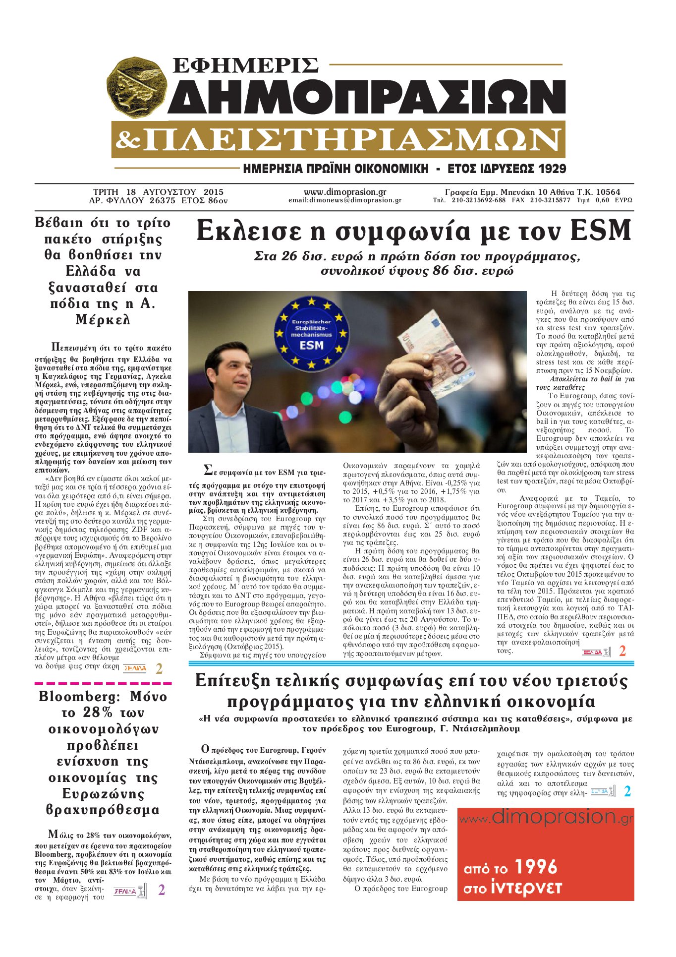 Οι οικονομικές εφημερίδες 18/8/2015 Enikos Newsroom 06:59, Τρίτη 18 Αυγούστου 2015 Media Διαβάστε τα σημερινά πρωτοσέλιδα των οικονομικών εφημερίδων: ΟΙΚΟΝΟΜΙΚΕΣ ΕΦΗΜΕΡΙΔΕΣ ΠΡΩΤΟΣΕΛΙΔΑ Μοιράσου το: σχολίασε κι εσύ (0 σχόλια) Ακολουθήστε το enikos.gr στο Google News και μάθετε πρώτοι όλες τις ειδήσεις Δείτε όλες τις τελευταίες ειδήσεις από την Ελλάδα και τον Κόσμο στο enikos.gr Ειδήσεις Ροή Ειδήσεων 22 λεπτά πριν Αγρότες: Πολύωροι αποκλεισμοί και σήμερα στα τελωνεία Ευζώνων, Νίκης, Προμαχώνα και Εξοχής 3 ώρες πριν Στεγαστικό: Όλο το σχέδιο για περισσότερα και φθηνότερα ενοικιαζόμενα σπίτια 38 λεπτά πριν Κυψέλη: Μαθητές κλείδωσαν τους καθηγητές μέσα στο Γυμνάσιο μετά την επίθεση με μαχαίρι 1 ώρα πριν Προϋπολογισμός 2026: Τα μηνύματα από την ομιλία Μητσοτάκη και τα «καρφιά» με πολλαπλούς αποδέκτες 1 ώρα πριν Ρομπ Ράινερ: Το δείπνο με τους Ομπάμα που δεν έγινε ποτέ και νέα στοιχεία για τον «καβγά» στο πάρτι – Βίντεο με τον γιο του να περιφέρεται κοντά στο σπίτι της τραγωδίας 4 ώρες πριν Οπτική ψευδαίσθηση: Μόνο αν είσαι ο Σέρλοκ Χολμς θα βρεις τον σκύλο σε 15 δευτερόλεπτα 4 ώρες πριν Τα ζώδια σήμερα, Τετάρτη 17 Δεκεμβρίου: Κριοί, η αυτοπεποίθησή σας ενισχύεται 2 ώρες πριν Νεολιθικός σκύλος βρέθηκε προσεκτικά θαμμένος στον βυθό λίμνης – Δίπλα του βρέθηκε ένα στιλέτο 55 λεπτά πριν Έλαβε τελεσίγραφο από τη σύντροφό του – «Μου είπε πως ή θα της κάνω πρόταση στα δύο χρόνια σχέσης ή θα με χωρίσει» 3 λεπτά πριν Αταμάν: Ξέσπασε μετά τη νίκη του Παναθηναϊκού για τα συνθήματα των οπαδών της Φενέρμπαχτσε – «10.000 αμόρφωτοι Τούρκοι έβριζαν τη μάνα μου» 8 λεπτά πριν Καιρός: Αλλάζει το σκηνικό – Βροχερά τα Χριστούγεννα, κρύο και χιόνια την Πρωτοχρονιά 13 λεπτά πριν Ανδρέας Παναγιωτόπουλος: Δεν ψήφισε στον προϋπολογισμό για να πάει στην εκδήλωση του Αλέξη Τσίπρα – «Μείζονος πολιτικής σημασίας η μεγάλη συγκέντρωση που έκανε» 18 λεπτά πριν Ανδρουλάκης: Τα έξι σημεία του σχεδίου για τον πρωτογενή τομέα που κατέθεσε στη Βουλή 22 λεπτά πριν Αγρότες: Πολύωροι αποκλεισμοί και σήμερα στα τελωνεία Ευζώνων, Νίκης, Προμαχώνα και Εξοχής ENIKOS NETWORK Δύο συστατικά που είναι καλό να βάλετε στον πρωινό σας καφέ – Βοηθούν στην απώλεια βάρους και τη ρύθμιση του σακχάρου Πρωτοποριακή θεραπεία για το Αλτσχάιμερ: Φως και ήχος μπορεί να επιβραδύνουν την εξέλιξη της νόσου Λεωφορεία: Στάση εργασίας πραγματοποιούν σήμερα οι εργαζόμενοι-Δείτε τις ώρες Έρχεται «νοικοκύρεμα » στα ακίνητα- Τι πρέπει να γνωρίζουν οι πολίτες Σύγχρονος Νοστράδαμος: Προειδοποιεί για «μεγάλο γεγονός» τους επόμενους μήνες που θα συγκλονίσει τη Βρετανία και τον κόσμο Τεστ παρατηρητικότητας: Μπορείτε να βρείτε τις 3 διαφορές στις εικόνες με έναν πιγκουίνο σε 14 δευτερόλεπτα περισσότερα 09:08 , Τετάρτη 17 Δεκεμβρίου 2025 Τηλεθέαση (16/12): Ανακατατάξεις στην πρωινή ψυχαγωγική ζώνη Ξεκάθαρη πρωτιά στην τηλεθέαση για την «Super Κατερίνα» στο δυναμικό κοινό με ποσοστό 18,5%, α... 08:00 , Τετάρτη 17 Δεκεμβρίου 2025 Την Κυριακή με τη Realnews: Δωροεπιταγή 10€ Δωροεπιταγή αξίας 10€ για αγορές άνω των 60€ από τα πολυκαταστήματα FactoryOutlet H προσφορά ι... 07:00 , Τετάρτη 17 Δεκεμβρίου 2025 Την Κυριακή με τη Realnews: Ό,τι και αν αγοράσεις, σκανάρεις και κερδίζεις! Την Κυριακή με τη Realnews: Ό,τι και αν αγοράσεις, σκανάρεις και κερδίζεις! Με το PADU app, το... 05:48 , Τετάρτη 17 Δεκεμβρίου 2025 Οι οικονομικές εφημερίδες 17/12/2025 Διαβάστε τα πρωτοσέλιδα από τις οικονομικές εφημερίδες, σήμερα 17/12/2025. ΤΕΛΕΥΤΑΙΕΣ ΕΙΔΗΣΕΙΣ 3 