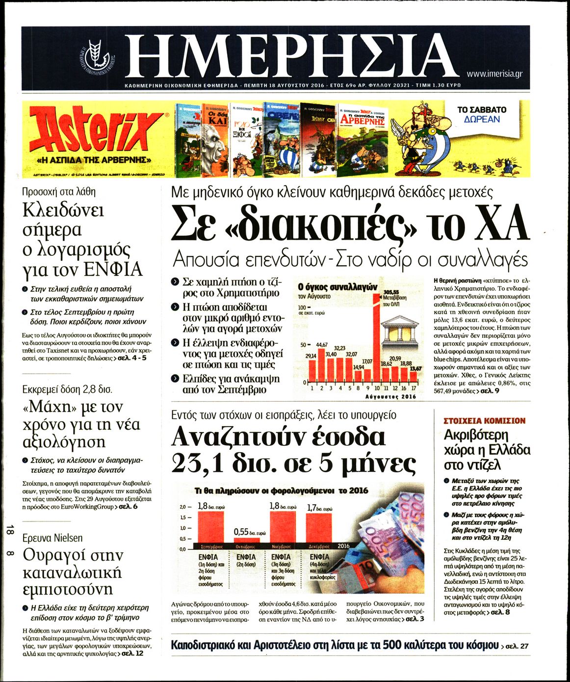 Οι οικονομικές εφημερίδες 18/8/2016 Enikos Newsroom 05:13, Πέμπτη 18 Αυγούστου 2016 Media Διαβάστε τα σημερινά πρωτοσέλιδα των οικονομικών εφημερίδων: ΟΙΚΟΝΟΜΙΚΕΣ ΕΦΗΜΕΡΙΔΕΣ ΠΡΩΤΟΣΕΛΙΔΑ Μοιράσου το: σχολίασε κι εσύ (0 σχόλια) Ακολουθήστε το enikos.gr στο Google News και μάθετε πρώτοι όλες τις ειδήσεις Δείτε όλες τις τελευταίες ειδήσεις από την Ελλάδα και τον Κόσμο στο enikos.gr Ειδήσεις Ροή Ειδήσεων 3 ώρες πριν ΣΥΡΙΖΑ: Διαγράφεται ο ευρωβουλευτής Νίκος Παππάς μετά την μήνυση δημοσιογράφου για ξυλοδαρμό 1 ώρα πριν Τουρκία: Επιδιώκει την επιστροφή των S-400 στη Ρωσία – Οι αμερικανικές πιέσεις 2 ώρες πριν ΟΠΕΚΕΠΕ: Ελεύθερες με όρους η σύζυγος και η αδελφή του φερόμενου αρχηγού – Τι υποστήριξαν 4 ώρες πριν Πώς στήθηκε η επιχείρηση «Ίπαλλος» που οδήγησε στη σύλληψη του «Έλληνα Εσκομπάρ» – «Ο πόλεμος ενάντια στους εμπόρους ναρκωτικών θα συνεχιστεί» 4 ώρες πριν Κυψέλη: Στη φυλακή η 16χρονη που μαχαίρωσε συμμαθήτριά της 4 ώρες πριν Τα 3 ζώδια που θα δουν τη ζωή τους να αλλάζει ριζικά το 2026 – «Όλα γίνονται καλύτερα σταδιακά» 9 ώρες πριν «Δεν είχα κλάψει από τότε που διαγνώστηκα με καρκίνο, ώσπου ένα τηλεφώνημα με έκανε να λυγίσω» – Η συγκλονιστική εξομολόγηση ενός άνδρα 5 ώρες πριν Ο σπάνιος σεισμός που έλυσε τα χέρια των επιστημόνων – Αποκάλυψε ακριβώς όσα αναζητούσαν 10 ώρες πριν 20 χρόνια τα Χριστούγεννα ξεκινούν στα Public με μεγάλη ποικιλία σε δώρα! 6 λεπτά πριν Εξεταστική για ΟΠΕΚΕΠΕ – Σκέρτσος: Διαχρονικά τα θέματα του οργανισμού – Δεν έγινε καμία αναφορά μου σε ποινικές διαδικασίες 11 λεπτά πριν Συγκλονιστικό βίντεο: Τρόμος για τουρίστες που σώθηκαν την τελευταία στιγμή από λεωφορείο που κατρακυλούσε σε φαράγγι 16 λεπτά πριν Χριστίνα Μπόμπα: Η αποκάλυψη για το περιστατικό με την κόρη της – «Σκαρφάλωνε και μίλαγε μόνη της…» 21 λεπτά πριν Εξεταστική για ΟΠΕΚΕΠΕ: Μεγάλη ένταση μεταξύ Κωνσταντοπούλου και Λαζαρίδη – ΒΙΝΤΕΟ 26 λεπτά πριν Νίκος Γιαννόπουλος: «Τα γεγονότα μιλούν από μόνα τους» – Η ανάρτηση του δημοσιογράφου που μήνυσε τον Νίκο Παππά για ξυλοδαρμό ENIKOS NETWORK 2,6 εκατομμύρια πολίτες έχουν ήδη εμβολιαστεί κατά της γρίπης Σοβαροί κίνδυνοι από τη λάθος χορήγηση φαρμάκου για τις αιμορραγίες-Συστάσεις προς τους γιατρούς Προκήρυξη ΑΣΕΠ για 4.276 μόνιμες προσλήψεις στο Δημόσιο: Βγήκαν τα προσωρινά αποτελέσματα – Ποιοι μπορούν να υποβάλουν ένσ... Υπουργείο Εργασίας: Ο οδικός χάρτης για την ενίσχυση του πλαισίου των Συλλογικών Διαπραγματεύσεων – Οι 5 άξονες του σχεδίου... Χαρτογραφώντας το «σημείο χωρίς επιστροφή»: Για πρώτη φορά αποκαλύπτεται με λεπτομέρεια το ακανθώδες όριο της ατμόσφαιρας τ... Η Google καταργεί τη λειτουργία «dark web report» – Πώς θα μπορούν οι χρήστες να διαγράφουν τα δεδομένα τους περισσότερα 12:35 , Τετάρτη 17 Δεκεμβρίου 2025 Μίρκα Παπακωνσταντίνου: «Δεν ήμουν αισιόδοξη για τα νούμερα – Είμαι ρεαλίστρια» Στα γυρίσματα του εορταστικού επεισοδίου της αγαπημένης σειράς “Το Σόι Σου”, βρέθηκε η κάμερα ... 12:12 , Τετάρτη 17 Δεκεμβρίου 2025 Ακούστε την εκπομπή του Νίκου Χατζηνικολάου 17/12/2025 Ακούστε την εκπομπή του Νίκου Χατζηνικολάου στον ραδιοφωνικό σταθμό RealFm 97,8, την Τετάρτη 1... 11:35 , Τετάρτη 17 Δεκεμβρίου 2025 Home Alone: Το σπίτι της ταινίας θα ανακαινιστεί – Επιστροφή στην αισθητική της δεκαετίας του ’90 Οι νέοι ιδιοκτήτες του πραγματικού σπιτιού που παρουσιάζεται στην κλασική ταινία του 1990 «Hom... 11:25 , Τετάρτη 17 Δεκεμβρίου 2025 Grand Hotel: Απόψε το τελευταίο επεισόδιο της χρονιάς – Όλα τα μ