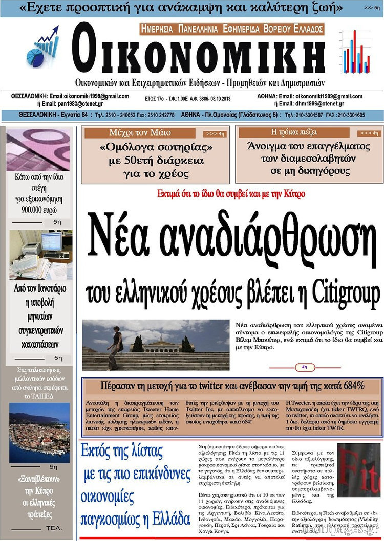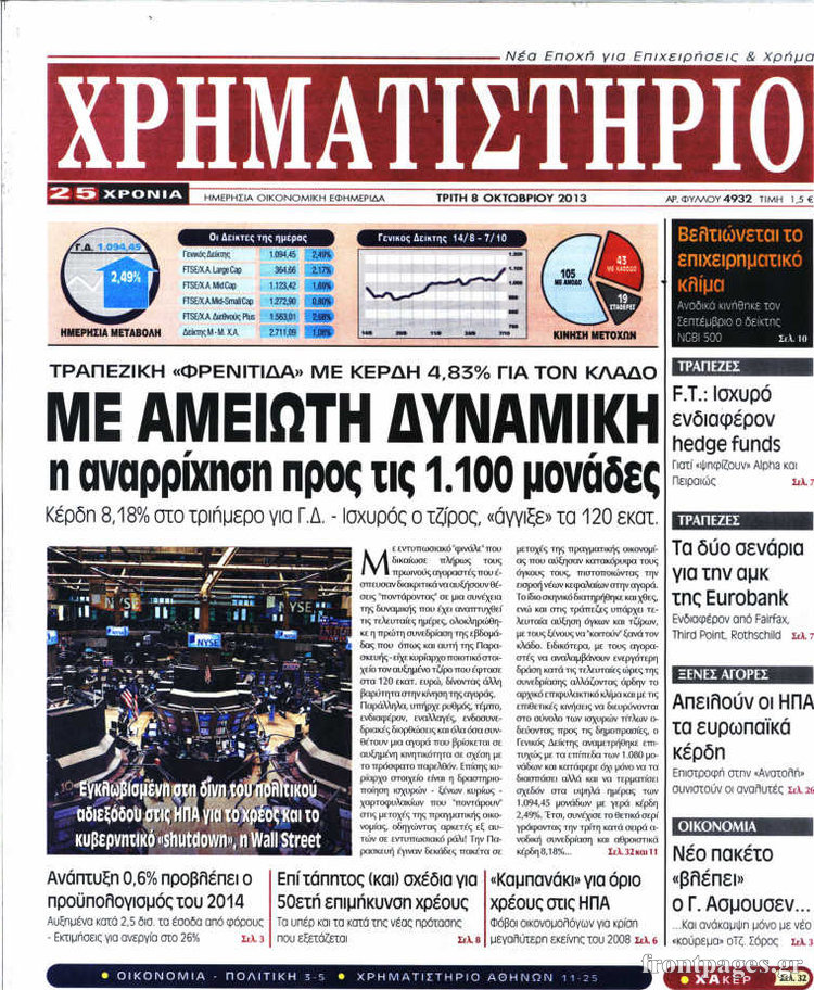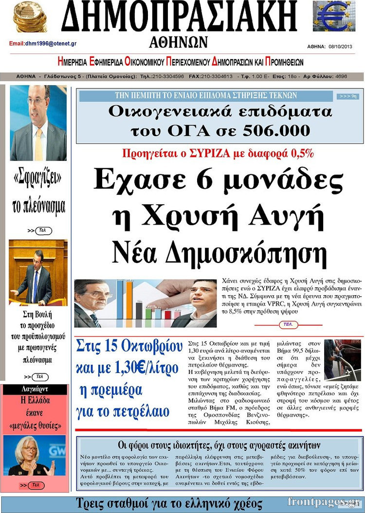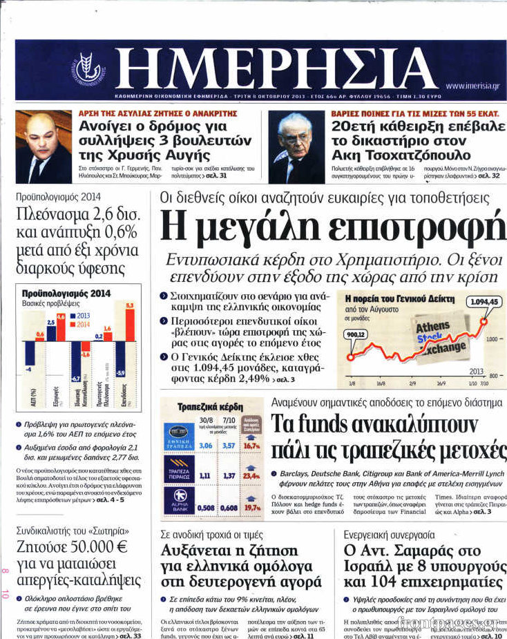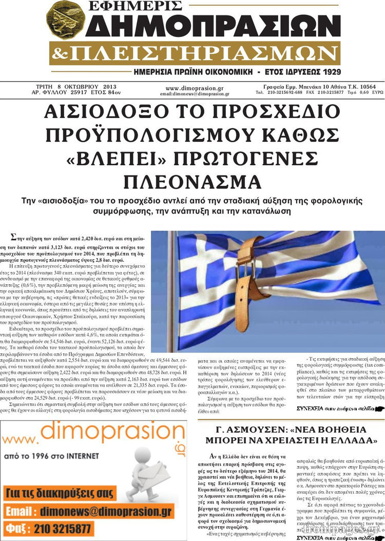 Οι oικονομικές εφημερίδες Enikos Newsroom 08:43, Τρίτη 08 Οκτωβρίου 2013 Media Οι oικονομικές εφημερίδες Διαβάστε τα πρωτοσέλιδα των οικονομικών εφημερίδων: ΕΦΗΜΕΡΙΔΕΣ ΟΙΚΟΝΟΜΙΚΕΣ ΕΦΗΜΕΡΙΔΕΣ ΠΡΩΤΟΣΕΛΙΔΑ Μοιράσου το: σχολίασε κι εσύ (0 σχόλια) Ακολουθήστε το enikos.gr στο Google News και μάθετε πρώτοι όλες τις ειδήσεις Δείτε όλες τις τελευταίες ειδήσεις από την Ελλάδα και τον Κόσμο στο enikos.gr Ειδήσεις Ροή Ειδήσεων 15 λεπτά πριν Εκτός ευρωομάδας ΣΥΡΙΖΑ ο Νίκος Παππάς μετά την επίθεση στον δημοσιογράφο Νίκο Γιαννόπουλο – Η μήνυση και οι νέες δηλώσεις 44 λεπτά πριν «Αγριεύουν» οι αγρότες: «Δεν συντρέχει λόγος συνάντησης με τον πρωθυπουργό» – Ώρα αποφάσεων στη σύσκεψη της Πέμπτης 38 λεπτά πριν Κυψέλη: Χωρίς την οικογένειά της δίπλα της απολογήθηκε η 16χρονη – «Της είχε επιτεθεί κάποιος για να την βιάσει, φοβήθηκε και κυκλοφορούσε με μαχαίρι» 10 λεπτά πριν Politico: Το πρόβλημα της Ευρώπης δεν είναι το Βέλγιο αλλά ο Ντόναλντ Τραμπ 2 ώρες πριν Αλεξανδρούπολη: Πολυοργανική ανεπάρκεια λόγω υποσιτισμού η αιτία θανάτου του 3χρονου αγοριού 28 λεπτά πριν Μυστήριο με τεράστιες κυκλικές πέτρες 200 κιλών – Ανακαλύφθηκαν τυχαία κατά τη διάρκεια οδικών έργων και κανείς δεν ξέρει από πού προέρχονται 1 ώρα πριν Ύπνος: Ειδικός εξηγεί τον πραγματικό λόγο που ξυπνάτε στις 4 τα ξημερώματα – Ο ρόλος των ορμονών και του κιρκάδιου ρυθμού 2 ώρες πριν Αριθμολογία: Οι άνθρωποι που έχουν γεννηθεί αυτές τις 4 ημερομηνίες, είναι τρυφεροί και αγαπούν ανιδιοτελώς 14 ώρες πριν 20 χρόνια τα Χριστούγεννα ξεκινούν στα Public με μεγάλη ποικιλία σε δώρα! 10 λεπτά πριν Politico: Το πρόβλημα της Ευρώπης δεν είναι το Βέλγιο αλλά ο Ντόναλντ Τραμπ 15 λεπτά πριν Εκτός ευρωομάδας ΣΥΡΙΖΑ ο Νίκος Παππάς μετά την επίθεση στον δημοσιογράφο Νίκο Γιαννόπουλο – Η μήνυση και οι νέες δηλώσεις 15 λεπτά πριν Κύπελλο Ελλάδας: Η Μαρκό έστειλε τον ΠΑΟΚ στον Ολυμπιακό… μέσω Ατρόμητου 19 λεπτά πριν Άκης Σκέρτσος: Μήνυση και αγωγή κατά της Ζωής Κωνσταντοπούλου θα καταθέσει ο υπουργός Επικρατείας 28 λεπτά πριν Μυστήριο με τεράστιες κυκλικές πέτρες 200 κιλών – Ανακαλύφθηκαν τυχαία κατά τη διάρκεια οδικών έργων και κανείς δεν ξέρει από πού προέρχονται ENIKOS NETWORK Αϋπνία: Το κόλπο που θα σας βοηθήσει να κοιμηθείτε απόψε – Είναι απλό και έχει αποτέλεσμα 2,6 εκατομμύρια πολίτες έχουν ήδη εμβολιαστεί κατά της γρίπης ΕΛΣΤΑΤ: Τι δείχνουν τα νέα στοιχεία για τις ηλεκτρονικές παραγγελίες των επιχειρήσεων ΚΕΠΕ: Οι 3 διακριτές συμβολές των ΜμΕ και της μεταποίησης στην ελληνική οικονομία Χαρτογραφώντας το «σημείο χωρίς επιστροφή»: Για πρώτη φορά αποκαλύπτεται με λεπτομέρεια το ακανθώδες όριο της ατμόσφαιρας τ... Η Google καταργεί τη λειτουργία «dark web report» – Πώς θα μπορούν οι χρήστες να διαγράφουν τα δεδομένα τους περισσότερα 22:24 , Τετάρτη 17 Δεκεμβρίου 2025 Το Σπίτι Δίπλα Στο Ποτάμι: Σε κίνδυνο η υγεία του Απόστολου – Τι θα δούμε απόψε “Το Σπίτι Δίπλα στο Ποτάμι” ξετυλίγει το νήμα της ζωής των πέντε αδελφών με καταισ... 21:14 , Τετάρτη 17 Δεκεμβρίου 2025 Παιχνίδια Εκδίκησης: Θα καταφέρει ο Χρήστος να κλονίσει την εμπιστοσύνη της Μάγιας απέναντι στον Άγη; Τα «Παιχνίδια Εκδίκησης» έρχονται απόψε στις 22:30, στον Αντ1, με το τελευταίο επεισόδιο της χ... 20:57 , Τετάρτη 17 Δεκεμβρίου 2025 Άγιος Έρωτας: Η Χλόη καταθέτει εναντίον του πατέρα της και ο Χάρης αποκαλύπτει στον Κλεάνθη ότι δεν είναι ο βιολογικός του πατέρας. Γεμάτο αποκαλύψεις είναι το νέο επεισόδιο της σειράς “Άγιος Έρωτας”