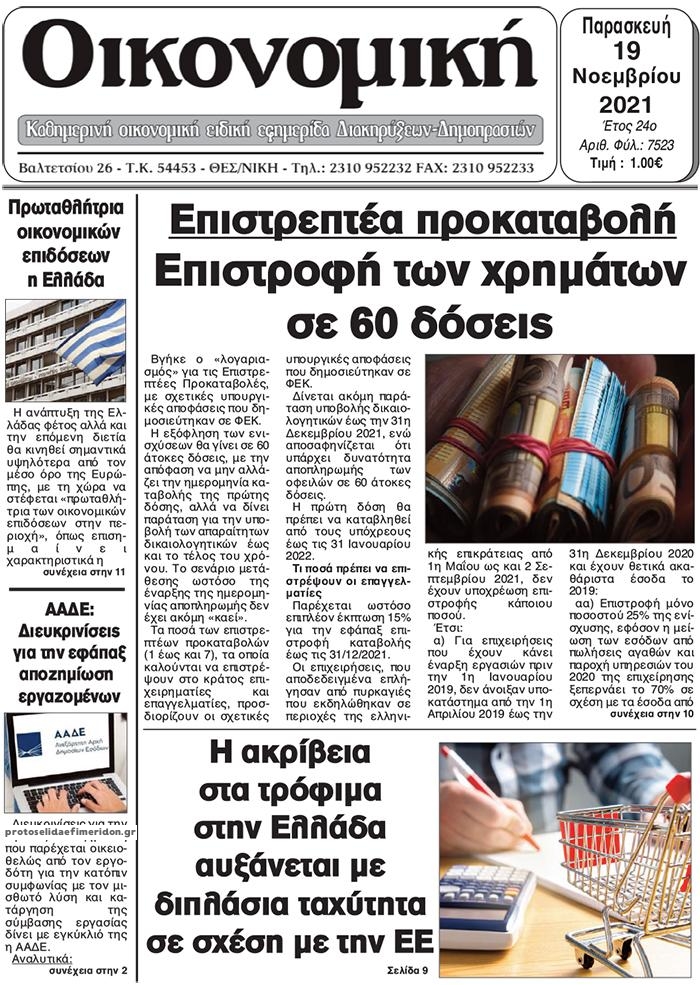 Οι οικονομικές εφημερίδες 19/11/2021 Διονύσης Νίκκας 06:50, Παρασκευή 19 Νοεμβρίου 2021 Media Διαβάστε τα πρωτοσέλιδα από τις οικονομικές εφημερίδες… ΟΙΚΟΝΟΜΙΚΕΣ ΕΦΗΜΕΡΙΔΕΣ Μοιράσου το: σχολίασε κι εσύ (0 σχόλια) Ακολουθήστε το enikos.gr στο Google News και μάθετε πρώτοι όλες τις ειδήσεις Δείτε όλες τις τελευταίες ειδήσεις από την Ελλάδα και τον Κόσμο στο enikos.gr Ειδήσεις Ροή Ειδήσεων 51 λεπτά πριν Αγρότες: Πολύωροι αποκλεισμοί στα τελωνεία Προμαχώνα, Εξοχής, Ευζώνων και Νίκης – Κλείνουν τον κόμβο Φιλώτα οι παραγωγοί στη Δυτική Μακεδονία 22 λεπτά πριν Νίκος Παππάς: Ζητώ συγγνώμη για αυτό το επεισόδιο – Δεν τον γρονθοκόπησα 3 ώρες πριν Ευρωπαϊκό Συμβούλιο: Όλες οι λεπτομέρειες για το δάνειο των 90 δισ. ευρώ στην Ουκρανία – Τα συμπεράσματα της Συνόδου Κορυφής 2 ώρες πριν Αίγιο: 22χρονη κατήγγειλε ότι έπεσε θύμα βιασμού και ληστείας από συγγενικά της πρόσωπα 2 ώρες πριν Σφοδρές βροχές και καταιγίδες πλήττουν τα Ηνωμένα Αραβικά Εμιράτα: Ακυρώσεις πτήσεων, προβλήματα στην κυκλοφορία 1 ώρα πριν Αλλαγή σελίδας για 3 ζώδια – «Μία δύσκολη περίοδος φτάνει στο τέλος της» 3 ώρες πριν Πώς το αρχαίο DNA του κυνηγού – συλλέκτη ξεκλείδωσε τα μυστικά της μακροζωίας 2 ημέρες πριν 20 χρόνια τα Χριστούγεννα ξεκινούν στα Public με μεγάλη ποικιλία σε δώρα! 2 ώρες πριν Ο σύζυγός της συμπεριφέρεται όπως το παιδί τους – «Χρησιμοποιεί αστείες δικαιολογίες για να μην κάνει δουλειές και να ξοδεύει λεφτά» 4 λεπτά πριν Τομ Κρουζ: Χορεύει με ένα φτυάρι στη νέα ταινία του Αλεχάντρο Γκονζάλες Ινιάριτου, «Digger» 10 λεπτά πριν Γεμάτος νεροχύτης; 5 σοβαρές ευθύνες που «φοβίζουν» όσους αφήνουν άπλυτα πιάτα 14 λεπτά πριν Ρόδος: Επεισόδιο μεταξύ ανηλίκων έξω από σχολείο – Απείλησαν με σουγιά 12χρονο 19 λεπτά πριν Γιώργος Μαζωνάκης: Η πρώτη αντίδραση της οικογένειάς του μετά τη μήνυση του Στέφανου Παπαδόπουλου 22 λεπτά πριν Νίκος Παππάς: Ζητώ συγγνώμη για αυτό το επεισόδιο – Δεν τον γρονθοκόπησα ENIKOS NETWORK Καρκίνος του πνεύμονα: Έως 8.000 ζωές μπορούν να σωθούν με την έγκαιρη διάγνωση Καρδιοπαθείς: Οι νέες συστάσεις για τα εμβόλια που πρέπει να κάνουν τον χειμώνα Απειλή για τον Προϋπολογισμό τα ληξιπρόθεσμα χρέη των ιδιωτών προς την εφορία – Τι δείχνουν τα στοιχεία Συντάξεις: Οι κερδισμένοι και οι χαμένοι από τις αυξήσεις – Αναλυτικός οδηγός Χαρτογραφώντας το «σημείο χωρίς επιστροφή»: Για πρώτη φορά αποκαλύπτεται με λεπτομέρεια το ακανθώδες όριο της ατμόσφαιρας τ... Η Google καταργεί τη λειτουργία «dark web report» – Πώς θα μπορούν οι χρήστες να διαγράφουν τα δεδομένα τους περισσότερα 08:00 , Παρασκευή 19 Δεκεμβρίου 2025 Την Κυριακή με τη Realnews: Δωροεπιταγή 10€ Δωροεπιταγή αξίας 10€ για αγορές άνω των 60€ από τα πολυκαταστήματα FactoryOutlet H προσφορά ι... 05:48 , Παρασκευή 19 Δεκεμβρίου 2025 Οι οικονομικές εφημερίδες 19/12/2025 Διαβάστε τα πρωτοσέλιδα από τις οικονομικές εφημερίδες, σήμερα 19/12/2025. 05:43 , Παρασκευή 19 Δεκεμβρίου 2025 Οι αθλητικές εφημερίδες 19/12/2025 Διαβάστε τα πρωτοσέλιδα από τις αθλητικές εφημερίδες, σήμερα 19/12/2025. 05:38 , Παρασκευή 19 Δεκεμβρίου 2025 Οι πολιτικές εφημερίδες 19/12/2025 Διαβάστε τα πρωτοσέλιδα από τις πολιτικές εφημερίδες, σήμερα 19/12/2025. ΤΕΛΕΥΤΑΙΕΣ ΕΙΔΗΣΕΙΣ 4 λεπτά πριν Τομ Κρουζ: Χορεύει με ένα φτυάρι στη νέα ταινία του... 10 λεπτά πριν Γεμάτος νεροχύτης; 5 σοβαρές ευθύνες που «φοβίζουν»... 14 λεπτά πριν Ρόδος: Επεισόδιο μεταξύ ανηλίκων έξω από σχολείο –... 19 λεπτά πριν Γιώργος Μαζωνάκης: Η πρώτη αντίδραση της οικογένειάς... 22 λεπτά πριν