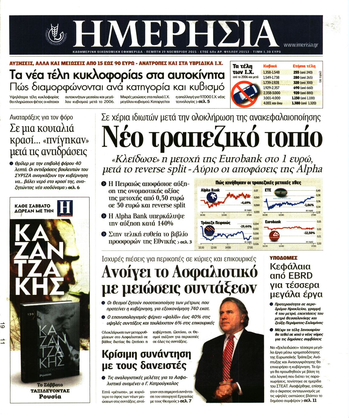 Οι οικονομικές εφημερίδες 19/11/2015 Enikos Newsroom 05:39, Πέμπτη 19 Νοεμβρίου 2015 Media Διαβάστε τα σημερινά πρωτοσέλιδα των οικονομικών εφημερίδων: ΟΙΚΟΝΟΜΙΚΕΣ ΕΦΗΜΕΡΙΔΕΣ ΠΡΩΤΟΣΕΛΙΔΑ Μοιράσου το: σχολίασε κι εσύ (0 σχόλια) Ακολουθήστε το enikos.gr στο Google News και μάθετε πρώτοι όλες τις ειδήσεις Δείτε όλες τις τελευταίες ειδήσεις από την Ελλάδα και τον Κόσμο στο enikos.gr Ειδήσεις Ροή Ειδήσεων 3 ώρες πριν Αγρότες: «Όχι στον διάλογο, μας εμπαίζει η κυβέρνηση» – Αποφάσισαν κλιμάκωση των κινητοποιήσεων, τι θα γίνει τα Χριστούγεννα 3 ώρες πριν Την πρώτη Belharra παρέλαβε η χώρα μας, υψώθηκε η ελληνική σημαία στη φρεγάτα «Κίμων» – Δένδιας: «Το ισχυρότερο Πολεμικό Ναυτικό που είχε ποτέ ο ελληνισμός» 57 λεπτά πριν Γιώργος Μαζωνάκης: «Έχει υποστεί ένα σωρό εκβιαστικές πρακτικές – Του είπαν ότι θα του βάλουν τον συγκεκριμένο άνθρωπο να τον καταγγείλει» 2 ώρες πριν Μιχάλης Χουρδάκης: «Είμαι διαθέσιμος να συμβάλω στην προσωρινή κάλυψη του ιατρείου της Ψερίμου» – Η επιστολή στον Άδωνι Γεωργιάδη 3 ώρες πριν Εξώδικο Γεωργιάδη στην Κωνσταντοπούλου – «Με κατηγόρησε ότι έχω καταδικαστεί για παιδεραστία» 26 λεπτά πριν Γάμος: 11 ψυχρές αλλά ευγενικές φράσεις, που λέει ένας άνδρας όταν σκέφτεται τον χωρισμό 3 ώρες πριν Τα 5 ζώδια που θα ευνοηθούν στα οικονομικά τους το 2026 – «Τραβούν το χρήμα σαν μαγνήτες» 4 ώρες πριν Αυτό που κρύβεται κάτω από τη Γροιλανδία θα μπορούσε να ανατρέψει όσα γνωρίζουμε για την άνοδο της στάθμης των θαλασσών 1 ημέρα πριν 20 χρόνια τα Χριστούγεννα ξεκινούν στα Public με μεγάλη ποικιλία σε δώρα! 1 λεπτό πριν Live η κίνηση: Στο «κόκκινο» Κηφισός, Κηφισίας και οι δρόμοι στο κέντρο – Καθυστερήσεις και στην Αττική Οδό 6 λεπτά πριν Εξεταστική για ΟΠΕΚΕΠΕ: Νέο επεισόδιο Κωνσταντοπούλου με Λαζαρίδη και Συρεγγέλα – ΒΙΝΤΕΟ 12 λεπτά πριν Συνάντηση Γεραπετρίτη με την Βρετανή ομόλογό του – Έθεσε και το θέμα των Γλυπτών του Παρθενώνα 17 λεπτά πριν ΗΠΑ: Συντριβή ιδιωτικού αεροσκάφους στη Βόρεια Καρολίνα – «Υπάρχουν νεκροί» 21 λεπτά πριν Ρία Ελληνίδου: Πώς απέφυγε να απαντήσει για την προσωπική της ζωή – «Δεν έχουμε να πούμε κάτι» ENIKOS NETWORK Ξεκίνησε η «επέλαση» της γρίπης στην Ελλάδα-Ποιοι κινδυνεύουν ΕΟΔΥ: Δωρεάν τεστ για HIV, Ηπατίτιδες, Σύφιλη, Χλαμύδια, Γονόρροια Ευλογιά αιγοπροβάτων: Νέες αποζημιώσεις ύψους 26,02 εκατ. ευρώ σε κτηνοτρόφους – Η κατανομή ανά Περιφέρεια Προσλήψεις σε Δήμο: Ποιοι μπορούν να κάνουν αίτηση έως αύριο – Οι ειδικότητες Χαρτογραφώντας το «σημείο χωρίς επιστροφή»: Για πρώτη φορά αποκαλύπτεται με λεπτομέρεια το ακανθώδες όριο της ατμόσφαιρας τ... Η Google καταργεί τη λειτουργία «dark web report» – Πώς θα μπορούν οι χρήστες να διαγράφουν τα δεδομένα τους περισσότερα 17:45 , Πέμπτη 18 Δεκεμβρίου 2025 ROUK ZOUK: Εορταστικό επεισόδιο με καλεσμένους τους πρωταγωνιστές του «Γιατί ρε πατέρα» Το Σάββατο 20 Δεκεμβρίου στις 21:00, η Ζέτα Μακρυπούλια υποδέχεται εκλεκτούς ηθοποιούς που όλο... 17:20 , Πέμπτη 18 Δεκεμβρίου 2025 Άγιος έρωτας: Η Χριστίνα εξομολογείται στον πατέρα Νικόλαο, απόψε στις 21:00 στον Alpha Η Νότα αποφασίζει να εκδικηθεί τον Πέτρο και τον Στέφανο, για χάρη του Λούη, όμως τα πράγματα ... 16:50 , Πέμπτη 18 Δεκεμβρίου 2025 Να μ’ αγαπάς: Ζωή και Φωτεινή συμφιλιώνονται ως μάνα με κόρη, απόψε στις 20:00 Η ταυτότητα του Άγγελου αποκαλύπτεται στο νέο επεισόδιο της σειράς “Να μ’ αγαπάς... 15:52 , Πέμπτη 18 Δεκεμβρίου 2025 Το Σπίτι Δίπλα Στο Ποτάμι: Το καθηλωτικό τελευταίο επεισόδιο για το 2025 απόψε στις 22:30 Κα