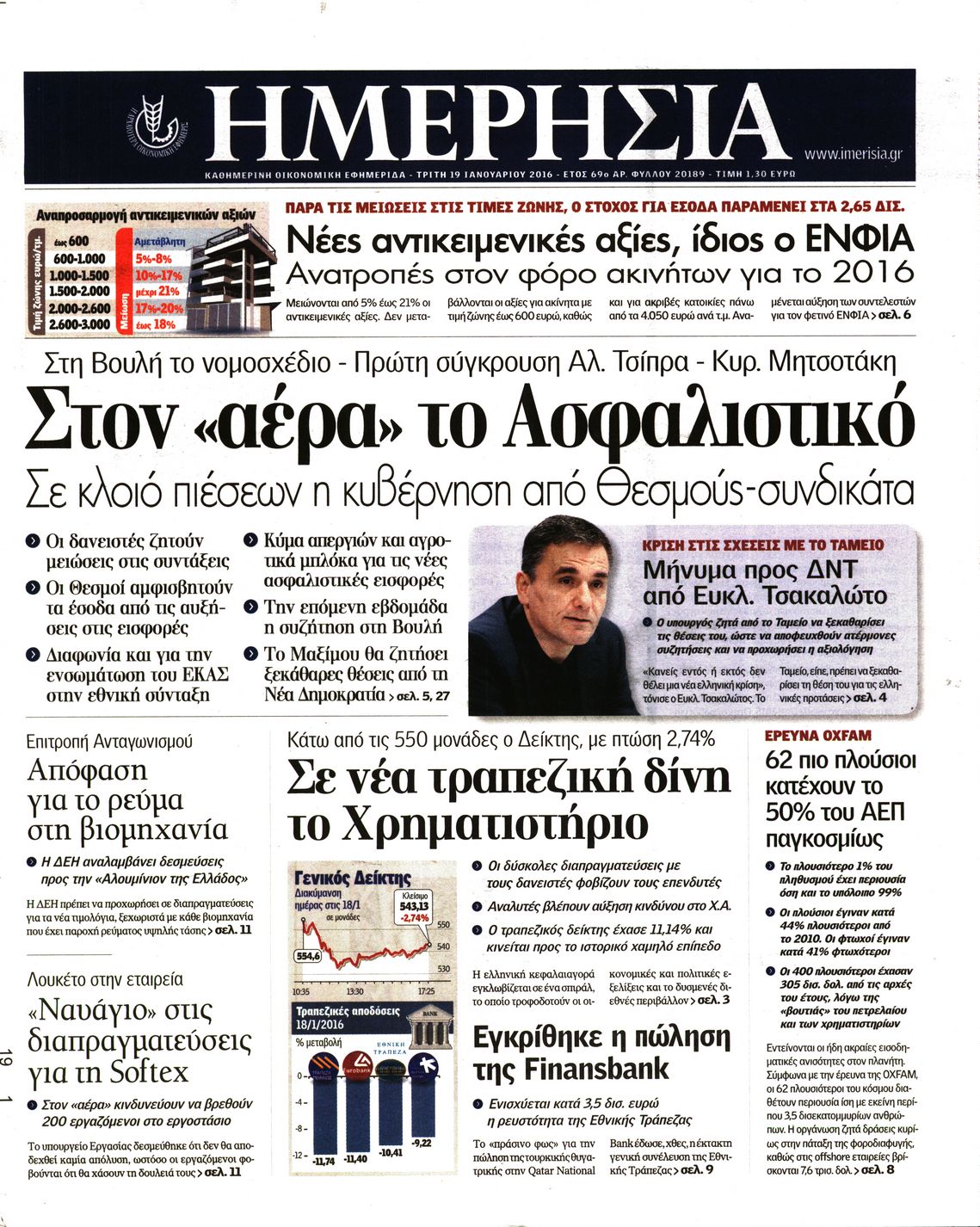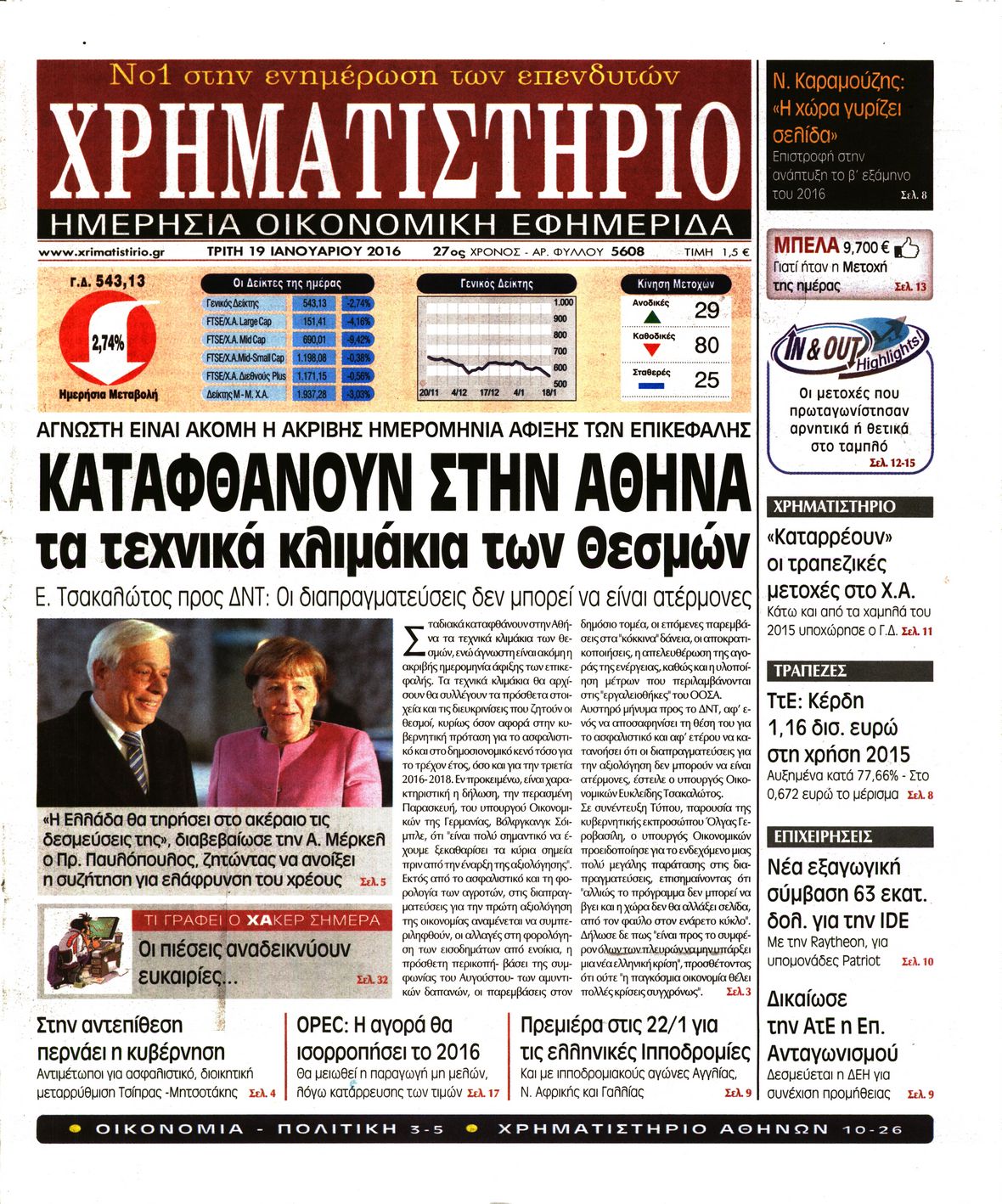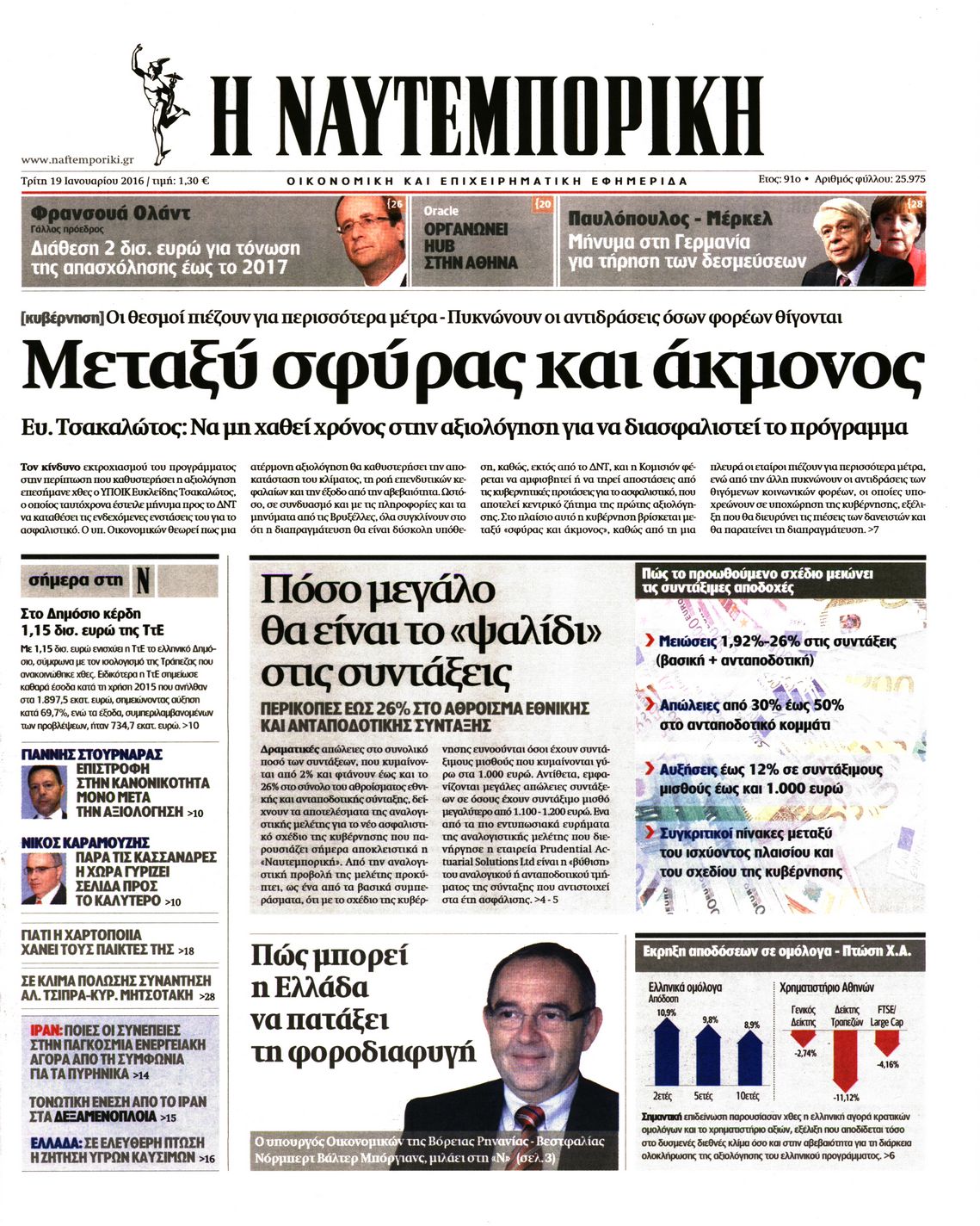Οι οικονομικές εφημερίδες 19/1/2026 Enikos Newsroom 05:54, Τρίτη 19 Ιανουαρίου 2016 Media Διαβάστε τα σημερινά πρωτοσέλιδα των οικονομικών εφημερίδων: ΟΙΚΟΝΟΜΙΚΕΣ ΕΦΗΜΕΡΙΔΕΣ ΠΡΩΤΟΣΕΛΙΔΑ Μοιράσου το: σχολίασε κι εσύ (0 σχόλια) Ακολουθήστε το enikos.gr στο Google News και μάθετε πρώτοι όλες τις ειδήσεις Δείτε όλες τις τελευταίες ειδήσεις από την Ελλάδα και τον Κόσμο στο enikos.gr Ειδήσεις Ροή Ειδήσεων 1 ώρα πριν Δημοσκόπηση Metron Analysis: Στις 10 μονάδες η διαφορά ΝΔ-ΠΑΣΟΚ, στην 3η θέση η Πλεύση Ελευθερίας – 8 στους 10 στηρίζουν τον αγώνα των αγροτών 6 ώρες πριν Αγρότες: «Όχι στον διάλογο, μας εμπαίζει η κυβέρνηση» – Αποφάσισαν κλιμάκωση των κινητοποιήσεων, τι θα γίνει τα Χριστούγεννα 1 ώρα πριν Νίκος Παππάς στον ΑΝΤ1: «Δεν κρύβομαι – Μετά το συμβάν ακολούθησα κανονικά το πρόγραμμά μου» – ΒΙΝΤΕΟ 3 ώρες πριν Αθήνα: Εξαρθρώθηκε εγκληματική οργάνωση που διακινούσε ναρκωτικά σε μορφή σοκολάτας – Δύο τράπερ ανάμεσα στους 4 συλληφθέντες – ΒΙΝΤΕΟ 1 ώρα πριν Διαμαντής Καραναστάσης: Οδηγούσε υπό την επήρεια αλκοόλ – Του αφαιρέθηκε το δίπλωμα και του επιβλήθηκε πρόστιμο 350 ευρώ 2 ώρες πριν Manifesting: Πώς να συναντήσετε τον σύντροφο της ζωής σας, ανάλογα με τον μήνα γέννησής σας 4 ώρες πριν Γάμος: 11 ψυχρές αλλά ευγενικές φράσεις, που λέει ένας άνδρας όταν σκέφτεται τον χωρισμό 3 ώρες πριν Σφουγγάρισμα: Η συνήθεια που θα σας βοηθήσει να διατηρήσετε το σπίτι σας καθαρό και τακτοποιημένο 2 ημέρες πριν 20 χρόνια τα Χριστούγεννα ξεκινούν στα Public με μεγάλη ποικιλία σε δώρα! 3 λεπτά πριν Ελισάβετ Κωνσταντινίδου για τον Γεράσιμο Μιχελή και την Πόπη Χριστοδούλου: «Ξέρω ότι έχουν πάει απλώς κάπου αλλού, ότι δεν είναι ο θάνατος έτσι όπως τον έχουμε στο μυαλό μας» 8 λεπτά πριν Κρήτη: Νέες αποκαλύψεις για τον 54χρονο που κατηγορείται ότι εξαπάτησε τους γονείς του 33χρονου – Ζητούσε τρίχες αγνοουμένων 15 λεπτά πριν Τσιάρας: Δεν θα κινδυνέψουν οι πληρωμές των αγροτών – Χρειαζόμαστε μια νέα πολιτική, ένα restart 21 λεπτά πριν Δέσποινα Βανδή: Το βίντεο που δημοσίευσε με τον Γιώργο Νικολαΐδη – «Έχουμε καταστραφεί από τα μελομακάρονά σου» 27 λεπτά πριν Κλήρωση ΤΖΟΚΕΡ 18/12/2025: Αυτοί είναι οι τυχεροί αριθμοί ENIKOS NETWORK Σε περίοδο αυξημένης δραστηριότητας η γρίπη στην Ελλάδα-Μέτρα προστασίας από τον ΕΟΔΥ Σκέφτεστε συνέχεια συζητήσεις που έχετε κάνει; Τι σημαίνει αυτό, σύμφωνα με ειδικό ΑΣΕΠ 2ΓΒ/2025: Σήμερα αρχίζει η υποβολή ενστάσεων – Πότε θα βγουν τα οριστικά αποτελέσματα ΕΛΤΑ: Αυτό είναι το νέο σχέδιο μετασχηματισμού του Οργανισμού- Τι δήλωσαν Πιερρακάκης και Παπαστεργίου Χαρτογραφώντας το «σημείο χωρίς επιστροφή»: Για πρώτη φορά αποκαλύπτεται με λεπτομέρεια το ακανθώδες όριο της ατμόσφαιρας τ... Η Google καταργεί τη λειτουργία «dark web report» – Πώς θα μπορούν οι χρήστες να διαγράφουν τα δεδομένα τους περισσότερα 17:45 , Πέμπτη 18 Δεκεμβρίου 2025 ROUK ZOUK: Εορταστικό επεισόδιο με καλεσμένους τους πρωταγωνιστές του «Γιατί ρε πατέρα» Το Σάββατο 20 Δεκεμβρίου στις 21:00, η Ζέτα Μακρυπούλια υποδέχεται εκλεκτούς ηθοποιούς που όλο... 17:20 , Πέμπτη 18 Δεκεμβρίου 2025 Άγιος έρωτας: Η Χριστίνα εξομολογείται στον πατέρα Νικόλαο, απόψε στις 21:00 στον Alpha Η Νότα αποφασίζει να εκδικηθεί τον Πέτρο και τον Στέφανο, για χάρη του Λούη, όμως τα πράγματα ... 16:50 , Πέμπτη 18 Δεκεμβρίου 2025 Να μ’ αγαπάς: Ζωή και Φωτεινή συμφιλιώνονται ως μάνα με κόρη, απόψε στις 20:00 Η ταυτότητα του Άγγελου αποκαλύπτεται στο νέο επεισόδιο της σειράς “Να μ’ αγαπάς... 15:52 , Πέμπτη 18 Δεκεμβρίου 2025 Τ