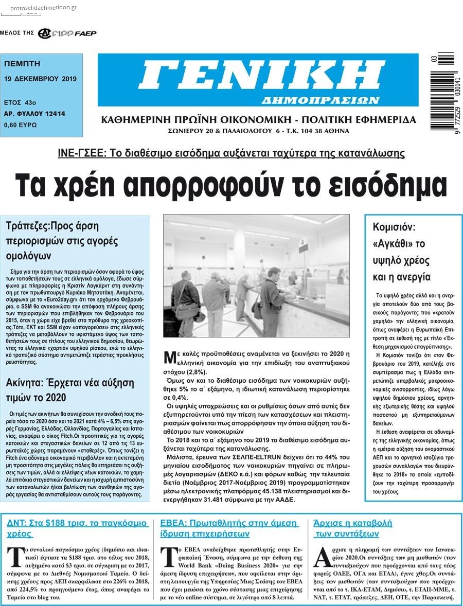 Οι οικονομικές εφημερίδες 19/12/19 Διονύσης Νίκκας 06:50, Πέμπτη 19 Δεκεμβρίου 2019 Media Διαβάστε τα πρωτοσέλιδα των οικονομικών εφημερίδων… ΕΦΗΜΕΡΙΔΕΣ ΟΙΚΟΝΟΜΙΚΕΣ ΠΡΩΤΟΣΕΛΙΔΑ Μοιράσου το: σχολίασε κι εσύ (0 σχόλια) Ακολουθήστε το enikos.gr στο Google News και μάθετε πρώτοι όλες τις ειδήσεις Δείτε όλες τις τελευταίες ειδήσεις από την Ελλάδα και τον Κόσμο στο enikos.gr Ειδήσεις Ροή Ειδήσεων 4 ώρες πριν Εκτός ευρωομάδας ΣΥΡΙΖΑ ο Νίκος Παππάς μετά την επίθεση στον δημοσιογράφο Νίκο Γιαννόπουλο – Η μήνυση και οι νέες δηλώσεις 4 ώρες πριν «Αγριεύουν» οι αγρότες: «Δεν συντρέχει λόγος συνάντησης με τον πρωθυπουργό» – Ώρα αποφάσεων στη σύσκεψη της Πέμπτης 4 ώρες πριν Κυψέλη: Χωρίς την οικογένειά της δίπλα της απολογήθηκε η 16χρονη – «Της είχε επιτεθεί κάποιος για να την βιάσει, φοβήθηκε και κυκλοφορούσε με μαχαίρι» 4 ώρες πριν Politico: Το πρόβλημα της Ευρώπης δεν είναι το Βέλγιο αλλά ο Ντόναλντ Τραμπ 6 ώρες πριν Αλεξανδρούπολη: Πολυοργανική ανεπάρκεια λόγω υποσιτισμού η αιτία θανάτου του 3χρονου αγοριού 4 ώρες πριν Μυστήριο με τεράστιες κυκλικές πέτρες 200 κιλών – Ανακαλύφθηκαν τυχαία κατά τη διάρκεια οδικών έργων και κανείς δεν ξέρει από πού προέρχονται 5 ώρες πριν Ύπνος: Ειδικός εξηγεί τον πραγματικό λόγο που ξυπνάτε στις 4 τα ξημερώματα – Ο ρόλος των ορμονών και του κιρκάδιου ρυθμού 6 ώρες πριν Αριθμολογία: Οι άνθρωποι που έχουν γεννηθεί αυτές τις 4 ημερομηνίες, είναι τρυφεροί και αγαπούν ανιδιοτελώς 18 ώρες πριν 20 χρόνια τα Χριστούγεννα ξεκινούν στα Public με μεγάλη ποικιλία σε δώρα! 22 λεπτά πριν Σουδάν: Επιδρομή drone σε χωριό του Νότιου Κορντοφάν – Οκτώ νεκροί 38 λεπτά πριν Αλ Τσαντίρι Νιουζ: Η κόρη της Πάολα στο κοινό – Η ατάκα Λαζόπουλου που την έκανε να «κοκκινήσει» 52 λεπτά πριν Ρωσία: Ουκρανικές δυνάμεις έπληξαν πλοίο στο λιμάνι του Ροστόφ – Αναφορές για θύματα 1 ώρα πριν Βρυξέλλες: Νυχτερινό… μπλόκο αγροτών μπροστά από το κτίριο της Ευρωπαϊκής Επιτροπής – Πάνω από 100 τρακτέρ απέκλεισαν την λεωφόρο 1 ώρα πριν Euroleague: Απρόσμενη ήττα για την Μονακό του Βασίλη Σπανούλη – Η βαθμολογία μετά το τέλος της 16ης αγωνιστικής ENIKOS NETWORK Αϋπνία: Το κόλπο που θα σας βοηθήσει να κοιμηθείτε απόψε – Είναι απλό και έχει αποτέλεσμα 2,6 εκατομμύρια πολίτες έχουν ήδη εμβολιαστεί κατά της γρίπης ΕΛΣΤΑΤ: Τι δείχνουν τα νέα στοιχεία για τις ηλεκτρονικές παραγγελίες των επιχειρήσεων ΚΕΠΕ: Οι 3 διακριτές συμβολές των ΜμΕ και της μεταποίησης στην ελληνική οικονομία Χαρτογραφώντας το «σημείο χωρίς επιστροφή»: Για πρώτη φορά αποκαλύπτεται με λεπτομέρεια το ακανθώδες όριο της ατμόσφαιρας τ... Η Google καταργεί τη λειτουργία «dark web report» – Πώς θα μπορούν οι χρήστες να διαγράφουν τα δεδομένα τους περισσότερα 02:30 , Πέμπτη 18 Δεκεμβρίου 2025 Αλ Τσαντίρι Νιουζ: Η κόρη της Πάολα στο κοινό – Η ατάκα Λαζόπουλου που την έκανε να «κοκκινήσει» Γιορτινή διάθεση και ευχάριστες στιγμές γέμισε η αποψινή, τελευταία για το 2025, εκπομπή του «... 22:24 , Τετάρτη 17 Δεκεμβρίου 2025 Το Σπίτι Δίπλα Στο Ποτάμι: Σε κίνδυνο η υγεία του Απόστολου – Τι θα δούμε απόψε “Το Σπίτι Δίπλα στο Ποτάμι” ξετυλίγει το νήμα της ζωής των πέντε αδελφών με καταισ... 21:14 , Τετάρτη 17 Δεκεμβρίου 2025 Παιχνίδια Εκδίκησης: Θα καταφέρει ο Χρήστος να κλονίσει την εμπιστοσύνη της Μάγιας απέναντι στον Άγη; Τα «Παιχνίδια Εκδίκησης» έρχονται απόψε στις 22:30, στον Αντ1, με το τελευταίο επεισόδιο της χ... 20:57 , Τετάρτη 17 Δεκεμβρίου 2025 Άγιος Έρωτας: Η Χλόη καταθέτει εναντίον του 