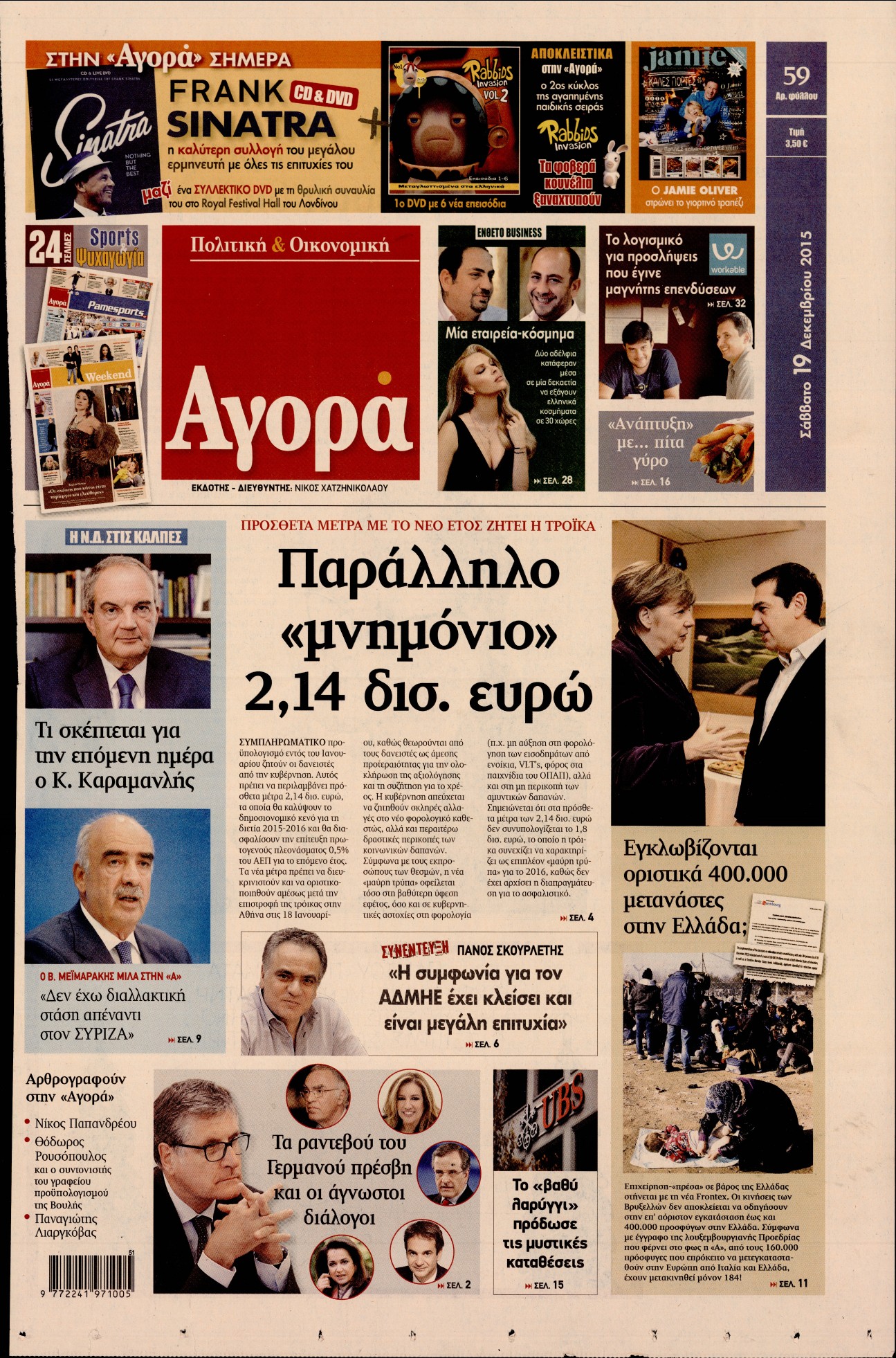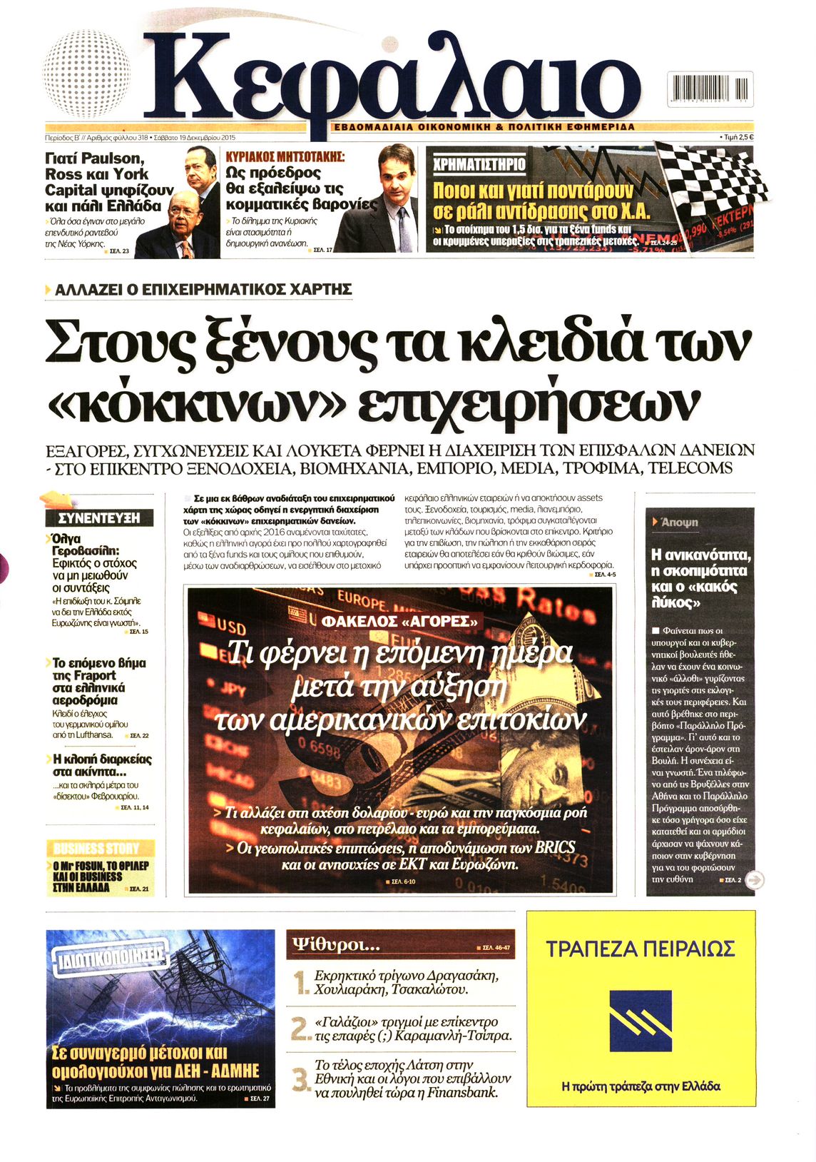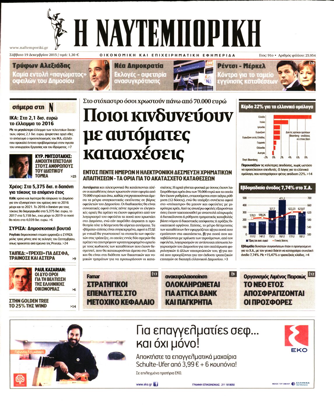 Οι οικονομικές εφημερίδες 19/12/2015 Enikos Newsroom 06:56, Σάββατο 19 Δεκεμβρίου 2015 Media Διαβάστε τα σημερινά πρωτοσέλιδα των οικονομικών εφημερίδων. ΕΦΗΜΕΡΙΔΕΣ ΟΙΚΟΝΟΜΙΚΕΣ ΕΦΗΜΕΡΙΔΕΣ Μοιράσου το: σχολίασε κι εσύ (0 σχόλια) Ακολουθήστε το enikos.gr στο Google News και μάθετε πρώτοι όλες τις ειδήσεις Δείτε όλες τις τελευταίες ειδήσεις από την Ελλάδα και τον Κόσμο στο enikos.gr Ειδήσεις Ροή Ειδήσεων 1 ώρα πριν Ευρωπαϊκή Ένωση: Συμφωνία για δάνειο 90 δισ. ευρώ στην Ουκρανία τη διετία 2026-2027 6 ώρες πριν ΟΠΕΚΕΠΕ: Προφυλακιστέος ο φερόμενος αρχηγός και ο λογιστής της εγκληματικής οργάνωσης 7 ώρες πριν Αυξάνουν την πίεση προς την κυβέρνηση οι αγρότες: Κλείνουν παρακαμπτήριους και ανοίγουν διόδια – Τι θα γίνει τις γιορτές 7 ώρες πριν Φοινικούντα: Το Σάββατο απολογείται ο 30χρονος γιος γνωστού επιχειρηματία της Πλάκας που παραδόθηκε – Όσα είπε στους αστυνομικούς και ο ρόλος του στο έγκλημα 5 ώρες πριν ΑΕΚ – Κραϊόβα 3-2: Επική ανατροπή και πρόκριση στους «16» του Conference League η Ένωση 6 ώρες πριν Αρχαιολόγοι ανακάλυψαν ρωμαϊκά τεχνουργήματα από μια πόλη που δεν υπήρξε ποτέ – Τα τρία εντυπωσιακά κτίρια και ο αμφορέας με τις… σαρδέλες 7 ώρες πριν Ύπνος: Η απλή βραδινή ρουτίνα για να προστατεύσετε τα μαλλιά σας από το κρύο κατά τη διάρκεια του χειμώνα 8 ώρες πριν Manifesting: Πώς να συναντήσετε τον σύντροφο της ζωής σας, ανάλογα με τον μήνα γέννησής σας 2 ημέρες πριν 20 χρόνια τα Χριστούγεννα ξεκινούν στα Public με μεγάλη ποικιλία σε δώρα! 2 λεπτά πριν Εφημερεύοντα φαρμακεία σε Αθήνα και Θεσσαλονίκη (19/12) 8 λεπτά πριν Η TikTok στις ΗΠΑ πωλείται σε Oracle, Silver Lake και MGX – Οι λεπτομέρειες του «deal» 17 λεπτά πριν Αλεξάντερ Λουκασένκο: Η Λευκορωσία βρίσκεται κοντά στην αποκατάσταση των σχέσεών της με τις ΗΠΑ 32 λεπτά πριν Αυστραλία: Κήρυξε την Κυριακή (21/12) ημέρα εθνικού πένθους για τη φονική επίθεση στην παραλία Μπόνταϊ 42 λεπτά πριν Ρόδος: Δάσκαλος καράτε καταδικάστηκε για ασέλγεια σε ανήλικες αθλήτριες – Μαρτυρίες για αγγίγματα σε ευαίσθητα σημεία ENIKOS NETWORK Σε περίοδο αυξημένης δραστηριότητας η γρίπη στην Ελλάδα-Μέτρα προστασίας από τον ΕΟΔΥ Σκέφτεστε συνέχεια συζητήσεις που έχετε κάνει; Τι σημαίνει αυτό, σύμφωνα με ειδικό Στεγαστικό: Τι λέει η ΠΟΜΙΔΑ για τα νέα μέτρα που ανακοίνωσε ο Κυριάκος Μητσοτάκης Λαγκάρντ: Αισιόδοξη για την ανάπτυξη της Ευρωζώνης, αβέβαιη για τον πληθωρισμό Χαρτογραφώντας το «σημείο χωρίς επιστροφή»: Για πρώτη φορά αποκαλύπτεται με λεπτομέρεια το ακανθώδες όριο της ατμόσφαιρας τ... Η Google καταργεί τη λειτουργία «dark web report» – Πώς θα μπορούν οι χρήστες να διαγράφουν τα δεδομένα τους περισσότερα 02:50 , Παρασκευή 19 Δεκεμβρίου 2025 GNTM: «Κλείδωσαν» οι τέσσερις φιναλίστ – Μεγάλη ανατροπή στις τελευταίες αποχωρήσεις Για προτελευταία φορά εμφανίστηκαν στο πλατό του GNTM οι φιναλίστ του φετινού κύκλου, το βράδυ... 17:45 , Πέμπτη 18 Δεκεμβρίου 2025 ROUK ZOUK: Εορταστικό επεισόδιο με καλεσμένους τους πρωταγωνιστές του «Γιατί ρε πατέρα» Το Σάββατο 20 Δεκεμβρίου στις 21:00, η Ζέτα Μακρυπούλια υποδέχεται εκλεκτούς ηθοποιούς που όλο... 17:20 , Πέμπτη 18 Δεκεμβρίου 2025 Άγιος έρωτας: Η Χριστίνα εξομολογείται στον πατέρα Νικόλαο, απόψε στις 21:00 στον Alpha Η Νότα αποφασίζει να εκδικηθεί τον Πέτρο και τον Στέφανο, για χάρη του Λούη, όμως τα πράγματα ... 16:50 , Πέμπτη 18 Δεκεμβρίου 2025 Να μ’ αγαπάς: Ζωή και Φωτεινή συμφιλιώνονται ως μάνα με κόρη, απόψε στις 20:00 Η ταυτότητα του Άγγελου αποκαλύπτεται στο νέο επεισόδιο της σειράς “Να μ’ αγαπάς