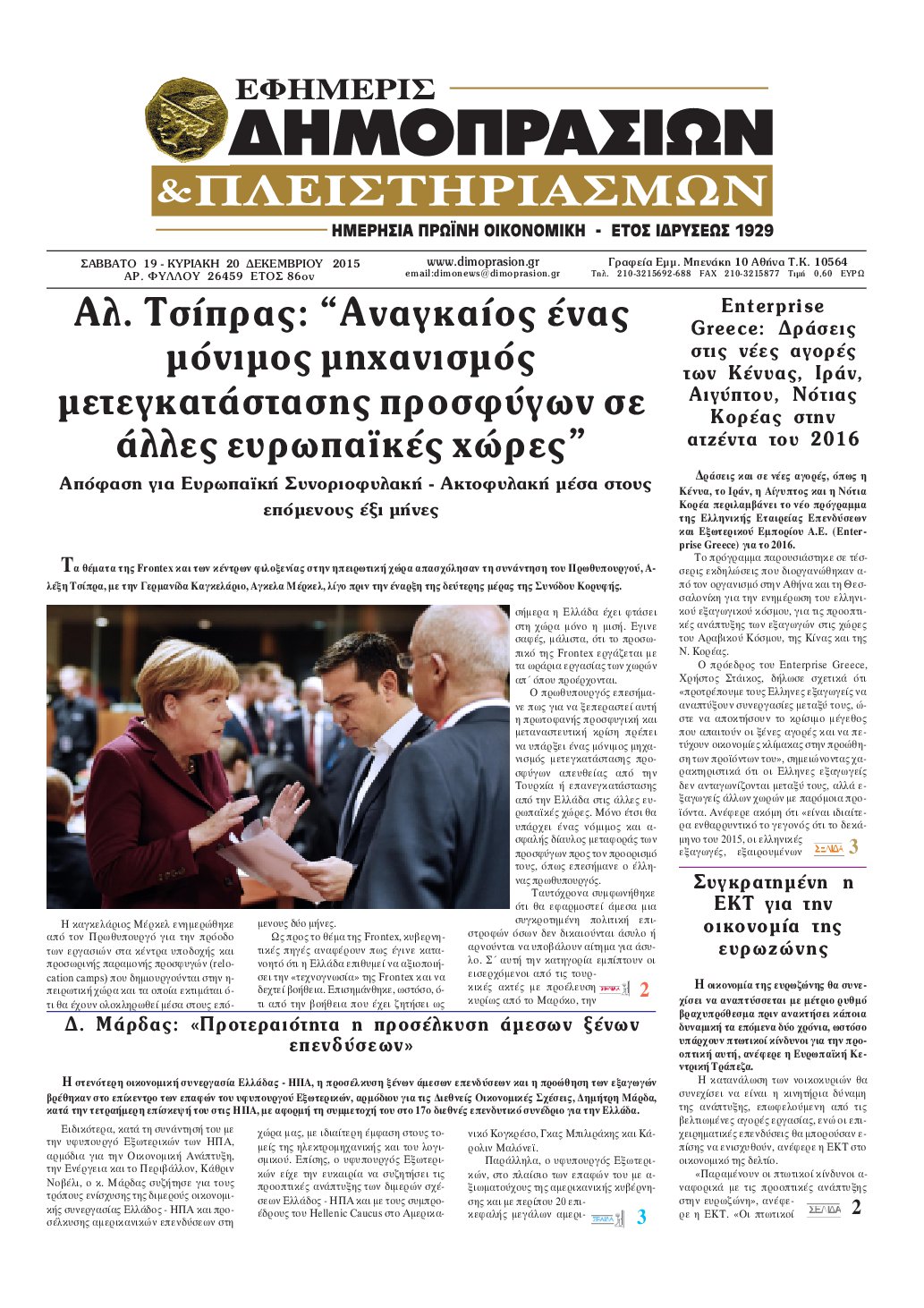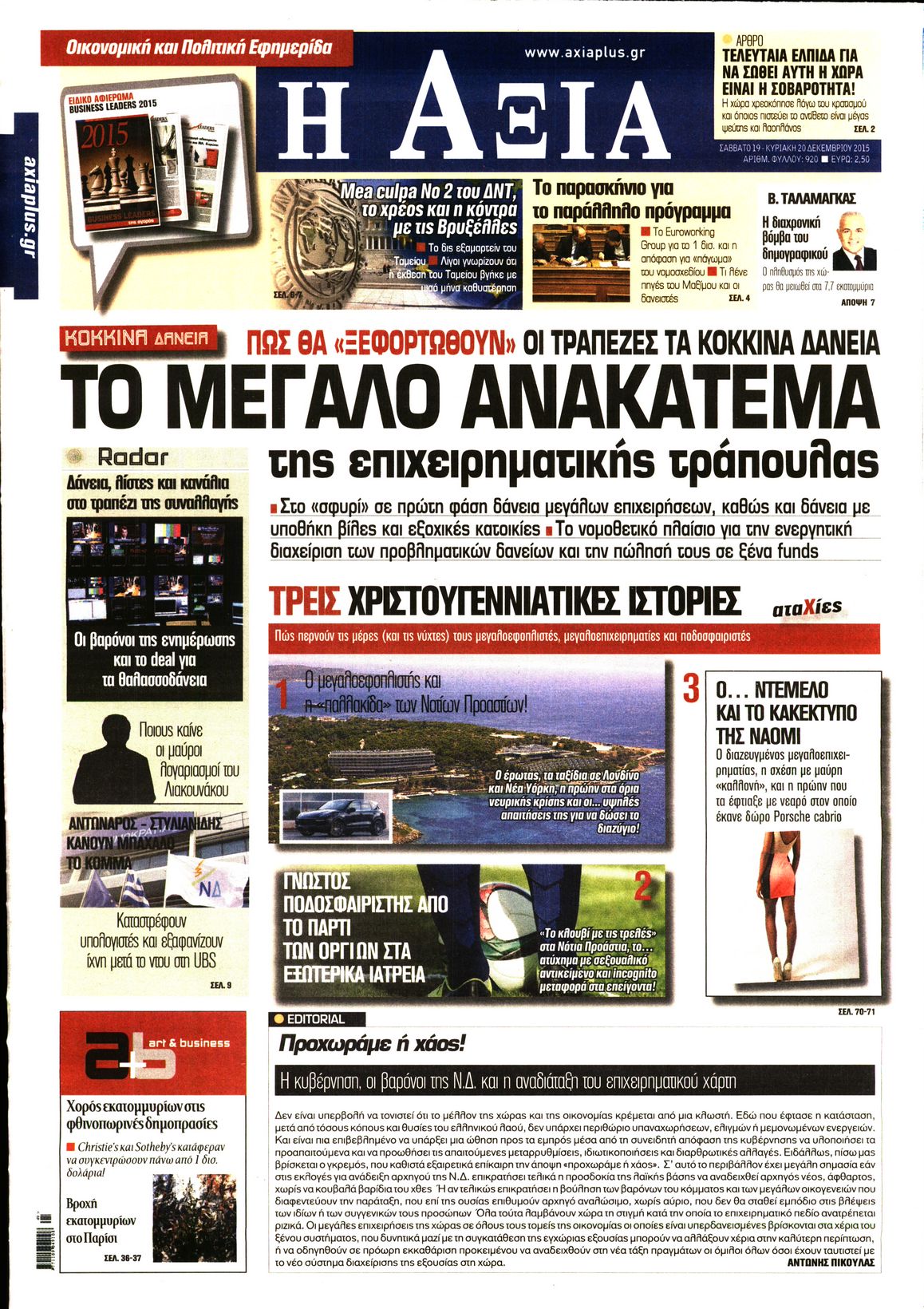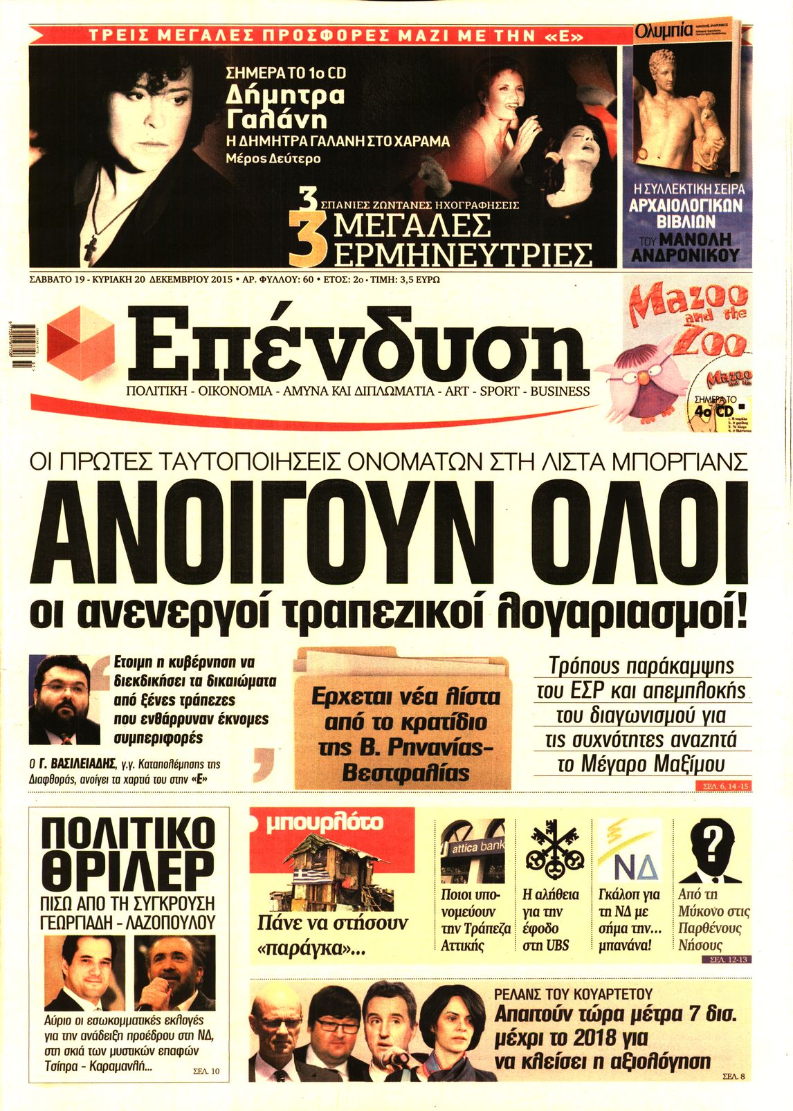 Οι οικονομικές εφημερίδες 19/12/2015 Enikos Newsroom 06:56, Σάββατο 19 Δεκεμβρίου 2015 Media Διαβάστε τα σημερινά πρωτοσέλιδα των οικονομικών εφημερίδων. ΕΦΗΜΕΡΙΔΕΣ ΟΙΚΟΝΟΜΙΚΕΣ ΕΦΗΜΕΡΙΔΕΣ Μοιράσου το: σχολίασε κι εσύ (0 σχόλια) Ακολουθήστε το enikos.gr στο Google News και μάθετε πρώτοι όλες τις ειδήσεις Δείτε όλες τις τελευταίες ειδήσεις από την Ελλάδα και τον Κόσμο στο enikos.gr Ειδήσεις Ροή Ειδήσεων 1 ώρα πριν Ευρωπαϊκή Ένωση: Συμφωνία για δάνειο 90 δισ. ευρώ στην Ουκρανία τη διετία 2026-2027 6 ώρες πριν ΟΠΕΚΕΠΕ: Προφυλακιστέος ο φερόμενος αρχηγός και ο λογιστής της εγκληματικής οργάνωσης 7 ώρες πριν Αυξάνουν την πίεση προς την κυβέρνηση οι αγρότες: Κλείνουν παρακαμπτήριους και ανοίγουν διόδια – Τι θα γίνει τις γιορτές 7 ώρες πριν Φοινικούντα: Το Σάββατο απολογείται ο 30χρονος γιος γνωστού επιχειρηματία της Πλάκας που παραδόθηκε – Όσα είπε στους αστυνομικούς και ο ρόλος του στο έγκλημα 5 ώρες πριν ΑΕΚ – Κραϊόβα 3-2: Επική ανατροπή και πρόκριση στους «16» του Conference League η Ένωση 6 ώρες πριν Αρχαιολόγοι ανακάλυψαν ρωμαϊκά τεχνουργήματα από μια πόλη που δεν υπήρξε ποτέ – Τα τρία εντυπωσιακά κτίρια και ο αμφορέας με τις… σαρδέλες 7 ώρες πριν Ύπνος: Η απλή βραδινή ρουτίνα για να προστατεύσετε τα μαλλιά σας από το κρύο κατά τη διάρκεια του χειμώνα 8 ώρες πριν Manifesting: Πώς να συναντήσετε τον σύντροφο της ζωής σας, ανάλογα με τον μήνα γέννησής σας 2 ημέρες πριν 20 χρόνια τα Χριστούγεννα ξεκινούν στα Public με μεγάλη ποικιλία σε δώρα! 2 λεπτά πριν Εφημερεύοντα φαρμακεία σε Αθήνα και Θεσσαλονίκη (19/12) 8 λεπτά πριν Η TikTok στις ΗΠΑ πωλείται σε Oracle, Silver Lake και MGX – Οι λεπτομέρειες του «deal» 17 λεπτά πριν Αλεξάντερ Λουκασένκο: Η Λευκορωσία βρίσκεται κοντά στην αποκατάσταση των σχέσεών της με τις ΗΠΑ 32 λεπτά πριν Αυστραλία: Κήρυξε την Κυριακή (21/12) ημέρα εθνικού πένθους για τη φονική επίθεση στην παραλία Μπόνταϊ 42 λεπτά πριν Ρόδος: Δάσκαλος καράτε καταδικάστηκε για ασέλγεια σε ανήλικες αθλήτριες – Μαρτυρίες για αγγίγματα σε ευαίσθητα σημεία ENIKOS NETWORK Σε περίοδο αυξημένης δραστηριότητας η γρίπη στην Ελλάδα-Μέτρα προστασίας από τον ΕΟΔΥ Σκέφτεστε συνέχεια συζητήσεις που έχετε κάνει; Τι σημαίνει αυτό, σύμφωνα με ειδικό Στεγαστικό: Τι λέει η ΠΟΜΙΔΑ για τα νέα μέτρα που ανακοίνωσε ο Κυριάκος Μητσοτάκης Λαγκάρντ: Αισιόδοξη για την ανάπτυξη της Ευρωζώνης, αβέβαιη για τον πληθωρισμό Χαρτογραφώντας το «σημείο χωρίς επιστροφή»: Για πρώτη φορά αποκαλύπτεται με λεπτομέρεια το ακανθώδες όριο της ατμόσφαιρας τ... Η Google καταργεί τη λειτουργία «dark web report» – Πώς θα μπορούν οι χρήστες να διαγράφουν τα δεδομένα τους περισσότερα 02:50 , Παρασκευή 19 Δεκεμβρίου 2025 GNTM: «Κλείδωσαν» οι τέσσερις φιναλίστ – Μεγάλη ανατροπή στις τελευταίες αποχωρήσεις Για προτελευταία φορά εμφανίστηκαν στο πλατό του GNTM οι φιναλίστ του φετινού κύκλου, το βράδυ... 17:45 , Πέμπτη 18 Δεκεμβρίου 2025 ROUK ZOUK: Εορταστικό επεισόδιο με καλεσμένους τους πρωταγωνιστές του «Γιατί ρε πατέρα» Το Σάββατο 20 Δεκεμβρίου στις 21:00, η Ζέτα Μακρυπούλια υποδέχεται εκλεκτούς ηθοποιούς που όλο... 17:20 , Πέμπτη 18 Δεκεμβρίου 2025 Άγιος έρωτας: Η Χριστίνα εξομολογείται στον πατέρα Νικόλαο, απόψε στις 21:00 στον Alpha Η Νότα αποφασίζει να εκδικηθεί τον Πέτρο και τον Στέφανο, για χάρη του Λούη, όμως τα πράγματα ... 16:50 , Πέμπτη 18 Δεκεμβρίου 2025 Να μ’ αγαπάς: Ζωή και Φωτεινή συμφιλιώνονται ως μάνα με κόρη, απόψε στις 20:00 Η ταυτότητα του Άγγελου αποκαλύπτεται στο νέο επεισόδιο της σειράς “Να μ’ αγαπάς