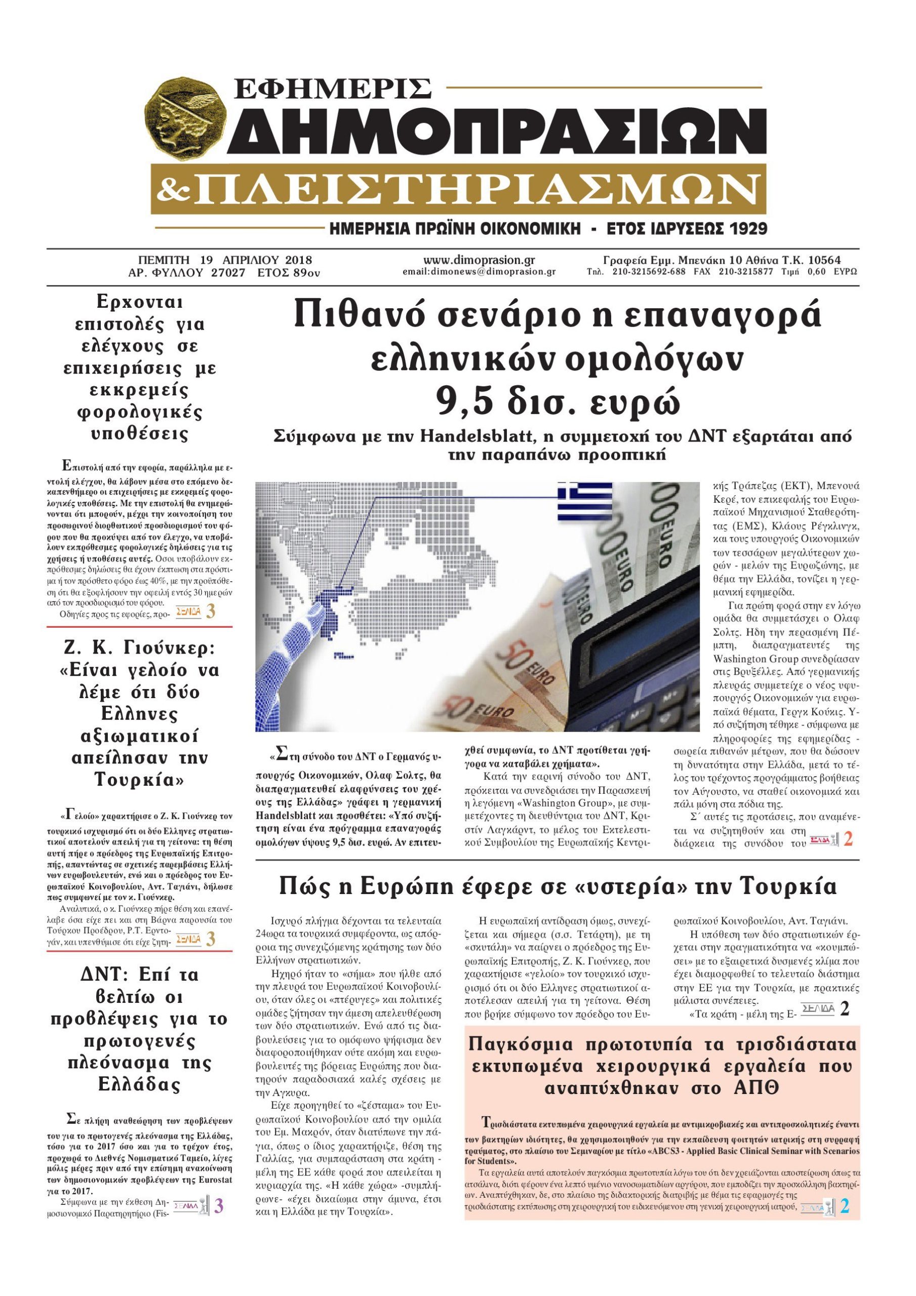 Οι οικονομικές εφημερίδες 19/4/2018 Enikos Newsroom 07:12, Πέμπτη 19 Απριλίου 2018 Media Διαβάστε τα σημερινά πρωτοσέλιδα των οικονομικών εφημερίδων: ΟΙΚΟΝΟΜΙΚΕΣ ΕΦΗΜΕΡΙΔΕΣ ΠΡΩΤΟΣΕΛΙΔΑ Μοιράσου το: σχολίασε κι εσύ (0 σχόλια) Ακολουθήστε το enikos.gr στο Google News και μάθετε πρώτοι όλες τις ειδήσεις Δείτε όλες τις τελευταίες ειδήσεις από την Ελλάδα και τον Κόσμο στο enikos.gr Ειδήσεις Ροή Ειδήσεων 1 ώρα πριν Δημοσκόπηση Metron Analysis: Στις 10 μονάδες η διαφορά ΝΔ-ΠΑΣΟΚ, στην 3η θέση η Πλεύση Ελευθερίας – 8 στους 10 στηρίζουν τον αγώνα των αγροτών 6 ώρες πριν Αγρότες: «Όχι στον διάλογο, μας εμπαίζει η κυβέρνηση» – Αποφάσισαν κλιμάκωση των κινητοποιήσεων, τι θα γίνει τα Χριστούγεννα 1 ώρα πριν Νίκος Παππάς στον ΑΝΤ1: «Δεν κρύβομαι – Μετά το συμβάν ακολούθησα κανονικά το πρόγραμμά μου» – ΒΙΝΤΕΟ 3 ώρες πριν Αθήνα: Εξαρθρώθηκε εγκληματική οργάνωση που διακινούσε ναρκωτικά σε μορφή σοκολάτας – Δύο τράπερ ανάμεσα στους 4 συλληφθέντες – ΒΙΝΤΕΟ 1 ώρα πριν Διαμαντής Καραναστάσης: Οδηγούσε υπό την επήρεια αλκοόλ – Του αφαιρέθηκε το δίπλωμα και του επιβλήθηκε πρόστιμο 350 ευρώ 2 ώρες πριν Manifesting: Πώς να συναντήσετε τον σύντροφο της ζωής σας, ανάλογα με τον μήνα γέννησής σας 4 ώρες πριν Γάμος: 11 ψυχρές αλλά ευγενικές φράσεις, που λέει ένας άνδρας όταν σκέφτεται τον χωρισμό 3 ώρες πριν Σφουγγάρισμα: Η συνήθεια που θα σας βοηθήσει να διατηρήσετε το σπίτι σας καθαρό και τακτοποιημένο 2 ημέρες πριν 20 χρόνια τα Χριστούγεννα ξεκινούν στα Public με μεγάλη ποικιλία σε δώρα! 4 λεπτά πριν Ελισάβετ Κωνσταντινίδου για τον Γεράσιμο Μιχελή και την Πόπη Χριστοδούλου: «Ξέρω ότι έχουν πάει απλώς κάπου αλλού, ότι δεν είναι ο θάνατος έτσι όπως τον έχουμε στο μυαλό μας» 8 λεπτά πριν Κρήτη: Νέες αποκαλύψεις για τον 54χρονο που κατηγορείται ότι εξαπάτησε τους γονείς του 33χρονου – Ζητούσε τρίχες αγνοουμένων 15 λεπτά πριν Τσιάρας: Δεν θα κινδυνέψουν οι πληρωμές των αγροτών – Χρειαζόμαστε μια νέα πολιτική, ένα restart 22 λεπτά πριν Δέσποινα Βανδή: Το βίντεο που δημοσίευσε με τον Γιώργο Νικολαΐδη – «Έχουμε καταστραφεί από τα μελομακάρονά σου» 27 λεπτά πριν Κλήρωση ΤΖΟΚΕΡ 18/12/2025: Αυτοί είναι οι τυχεροί αριθμοί ENIKOS NETWORK Σε περίοδο αυξημένης δραστηριότητας η γρίπη στην Ελλάδα-Μέτρα προστασίας από τον ΕΟΔΥ Σκέφτεστε συνέχεια συζητήσεις που έχετε κάνει; Τι σημαίνει αυτό, σύμφωνα με ειδικό ΑΣΕΠ 2ΓΒ/2025: Σήμερα αρχίζει η υποβολή ενστάσεων – Πότε θα βγουν τα οριστικά αποτελέσματα ΕΛΤΑ: Αυτό είναι το νέο σχέδιο μετασχηματισμού του Οργανισμού- Τι δήλωσαν Πιερρακάκης και Παπαστεργίου Χαρτογραφώντας το «σημείο χωρίς επιστροφή»: Για πρώτη φορά αποκαλύπτεται με λεπτομέρεια το ακανθώδες όριο της ατμόσφαιρας τ... Η Google καταργεί τη λειτουργία «dark web report» – Πώς θα μπορούν οι χρήστες να διαγράφουν τα δεδομένα τους περισσότερα 17:45 , Πέμπτη 18 Δεκεμβρίου 2025 ROUK ZOUK: Εορταστικό επεισόδιο με καλεσμένους τους πρωταγωνιστές του «Γιατί ρε πατέρα» Το Σάββατο 20 Δεκεμβρίου στις 21:00, η Ζέτα Μακρυπούλια υποδέχεται εκλεκτούς ηθοποιούς που όλο... 17:20 , Πέμπτη 18 Δεκεμβρίου 2025 Άγιος έρωτας: Η Χριστίνα εξομολογείται στον πατέρα Νικόλαο, απόψε στις 21:00 στον Alpha Η Νότα αποφασίζει να εκδικηθεί τον Πέτρο και τον Στέφανο, για χάρη του Λούη, όμως τα πράγματα ... 16:50 , Πέμπτη 18 Δεκεμβρίου 2025 Να μ’ αγαπάς: Ζωή και Φωτεινή συμφιλιώνονται ως μάνα με κόρη, απόψε στις 20:00 Η ταυτότητα του Άγγελου αποκαλύπτεται στο νέο επεισόδιο της σειράς “Να μ’ αγαπάς... 15:52 , Πέμπτη 18 Δεκεμβρίου 2025 Το