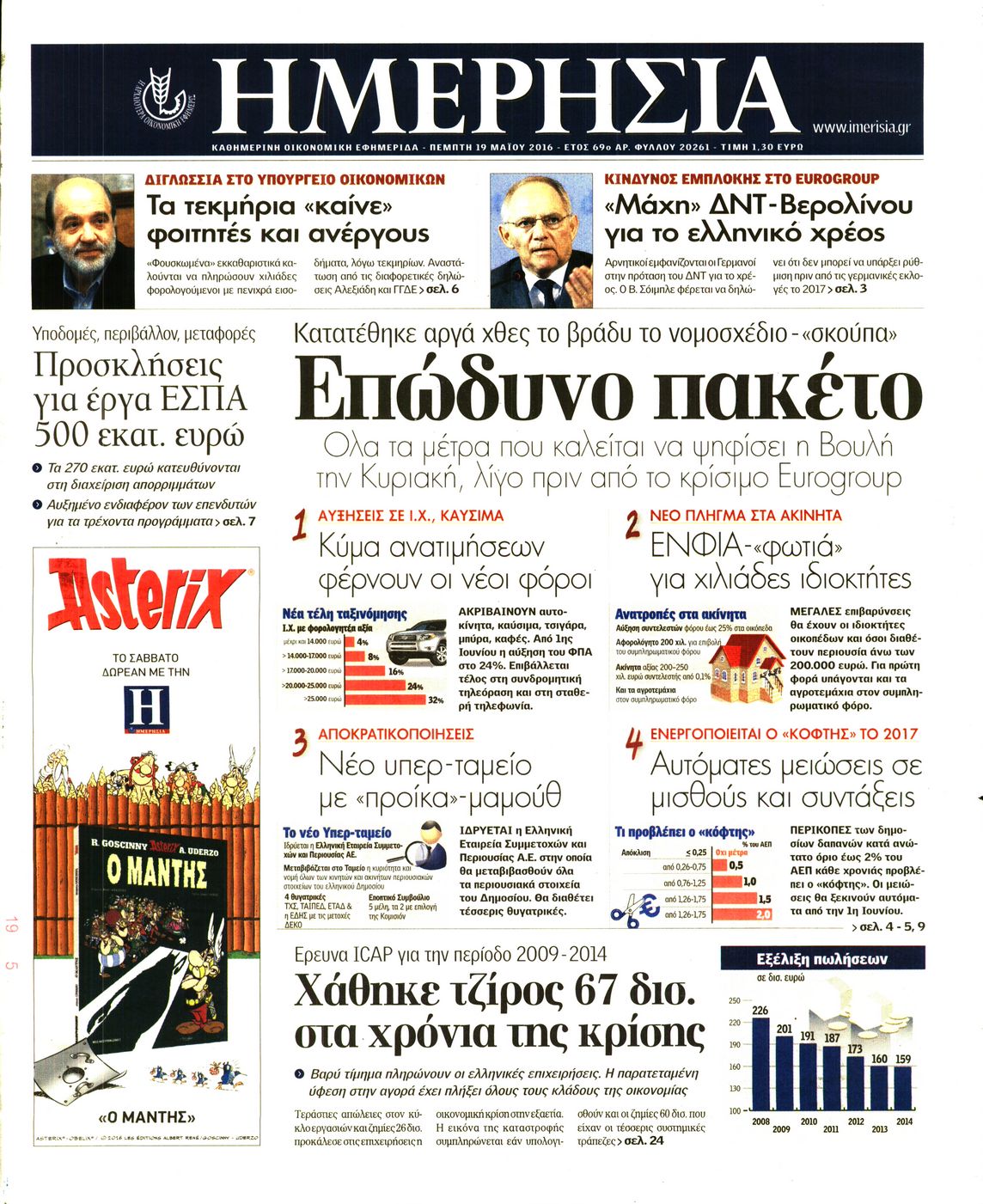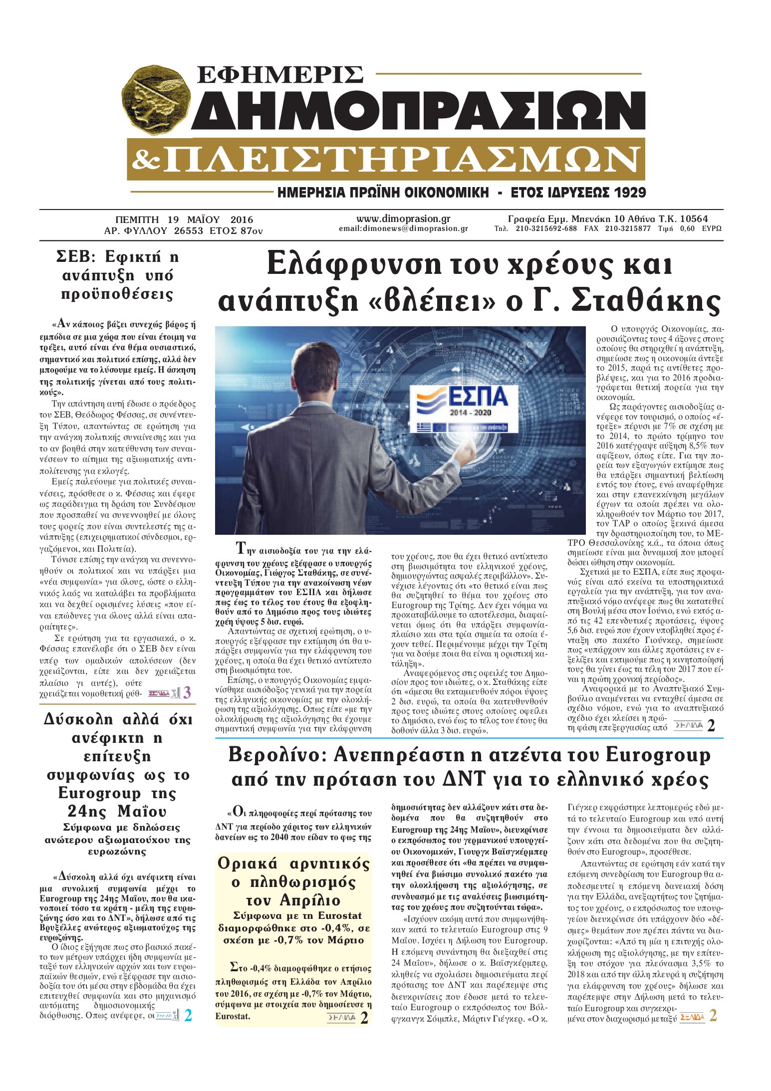 Oι οικονομικές εφημερίδες 19/5/2016 Enikos Newsroom 05:21, Πέμπτη 19 Μαΐου 2016 Media Διαβάστε τα σημερινά πρωτοσέλιδα των οικονομικών εφημερίδων: ΠΡΩΤΟΣΕΛΙΔΑ Μοιράσου το: σχολίασε κι εσύ (0 σχόλια) Ακολουθήστε το enikos.gr στο Google News και μάθετε πρώτοι όλες τις ειδήσεις Δείτε όλες τις τελευταίες ειδήσεις από την Ελλάδα και τον Κόσμο στο enikos.gr Ειδήσεις Ροή Ειδήσεων 26 λεπτά πριν Αγρότες: Πολύωροι αποκλεισμοί στα τελωνεία Προμαχώνα, Εξοχής, Ευζώνων και Νίκης – Κλείνουν τον κόμβο Φιλώτα οι παραγωγοί στη Δυτική Μακεδονία 2 ώρες πριν Ευρωπαϊκό Συμβούλιο: Όλες οι λεπτομέρειες για το δάνειο των 90 δισ. ευρώ στην Ουκρανία – Τα συμπεράσματα της Συνόδου Κορυφής 1 ώρα πριν Αίγιο: 22χρονη κατήγγειλε ότι έπεσε θύμα βιασμού και ληστείας από συγγενικά της πρόσωπα 2 ώρες πριν Νίκος Παππάς: Δρομολογήθηκαν οι διαδικασίες για τη διαγραφή του από τον ΣΥΡΙΖΑ μέσα στις γιορτές 1 ώρα πριν Σφοδρές βροχές και καταιγίδες πλήττουν τα Ηνωμένα Αραβικά Εμιράτα: Ακυρώσεις πτήσεων, προβλήματα στην κυκλοφορία 44 λεπτά πριν Αλλαγή σελίδας για 3 ζώδια – «Μία δύσκολη περίοδος φτάνει στο τέλος της» 3 ώρες πριν Πώς το αρχαίο DNA του κυνηγού – συλλέκτη ξεκλείδωσε τα μυστικά της μακροζωίας 2 ημέρες πριν 20 χρόνια τα Χριστούγεννα ξεκινούν στα Public με μεγάλη ποικιλία σε δώρα! 2 ώρες πριν Ο σύζυγός της συμπεριφέρεται όπως το παιδί τους – «Χρησιμοποιεί αστείες δικαιολογίες για να μην κάνει δουλειές και να ξοδεύει λεφτά» 4 λεπτά πριν Τρομακτικό βίντεο: Η στιγμή της έκρηξης στο τζετ που μετέφερε τον οδηγό του NASCAR, Γκρεγκ Μπιφλ και την οικογένειά του 15 λεπτά πριν Έρχονται νέες κακοκαιρίες από αύριο – «Παρέλαση» βαρομετρικών χαμηλών φέρνει βροχές τα Χριστούγεννα και χιόνια την Πρωτοχρονιά 19 λεπτά πριν Εργατικό δυστύχημα στην Ελασσόνα – Νεκρός 59χρονος που έπεσε από ύψος 20 μέτρων 24 λεπτά πριν Ed Sheeran: Η εντυπωσιακή αλλαγή στο σώμα του – «Κάτω από όλα αυτά είμαι ένας καπνιστής που τρώει πίτσα και πίνει μπύρα» 26 λεπτά πριν Αγρότες: Πολύωροι αποκλεισμοί στα τελωνεία Προμαχώνα, Εξοχής, Ευζώνων και Νίκης – Κλείνουν τον κόμβο Φιλώτα οι παραγωγοί στη Δυτική Μακεδονία ENIKOS NETWORK Πότε μπορεί το χλωμό δέρμα να σχετίζεται με σοβαρή νόσο Ενίσχυση του μεταβολισμού: Η Νο1 άσκηση που πρέπει να κάνουν οι γυναίκες μετά τα 35 Απειλή για τον Προϋπολογισμό τα ληξιπρόθεσμα χρέη των ιδιωτών προς την εφορία – Τι δείχνουν τα στοιχεία Συντάξεις: Οι κερδισμένοι και οι χαμένοι από τις αυξήσεις – Αναλυτικός οδηγός Χαρτογραφώντας το «σημείο χωρίς επιστροφή»: Για πρώτη φορά αποκαλύπτεται με λεπτομέρεια το ακανθώδες όριο της ατμόσφαιρας τ... Η Google καταργεί τη λειτουργία «dark web report» – Πώς θα μπορούν οι χρήστες να διαγράφουν τα δεδομένα τους περισσότερα 08:00 , Παρασκευή 19 Δεκεμβρίου 2025 Την Κυριακή με τη Realnews: Δωροεπιταγή 10€ Δωροεπιταγή αξίας 10€ για αγορές άνω των 60€ από τα πολυκαταστήματα FactoryOutlet H προσφορά ι... 05:48 , Παρασκευή 19 Δεκεμβρίου 2025 Οι οικονομικές εφημερίδες 19/12/2025 Διαβάστε τα πρωτοσέλιδα από τις οικονομικές εφημερίδες, σήμερα 19/12/2025. 05:43 , Παρασκευή 19 Δεκεμβρίου 2025 Οι αθλητικές εφημερίδες 19/12/2025 Διαβάστε τα πρωτοσέλιδα από τις αθλητικές εφημερίδες, σήμερα 19/12/2025. 05:38 , Παρασκευή 19 Δεκεμβρίου 2025 Οι πολιτικές εφημερίδες 19/12/2025 Διαβάστε τα πρωτοσέλιδα από τις πολιτικές εφημερίδες, σήμερα 19/12/2025. ΤΕΛΕΥΤΑΙΕΣ ΕΙΔΗΣΕΙΣ 4 λεπτά πριν Τρομακτικό βίντεο: Η στιγμή της έκρηξης στο τζετ που... 15 λεπτά πριν Έρχονται νέες κακοκαιρίες από αύριο – «Παρέλαση»... 19