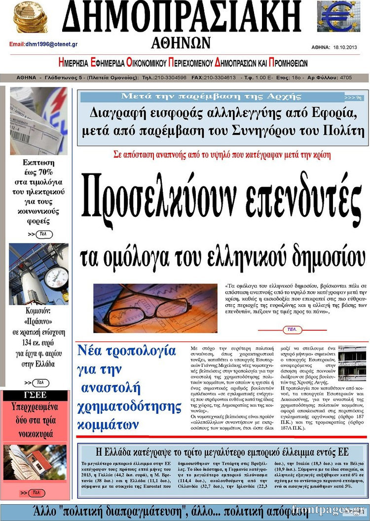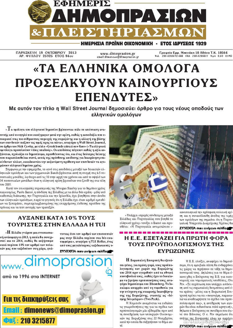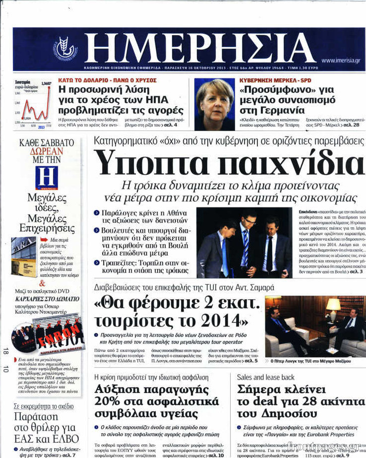 Οι oικονομικές εφημερίδες Enikos Newsroom 08:46, Παρασκευή 18 Οκτωβρίου 2013 Media Οι oικονομικές εφημερίδες Διαβάστε τα πρωτοσέλιδα των οικονομικών εφημερίδων: ΕΦΗΜΕΡΙΔΕΣ ΟΙΚΟΝΟΜΙΚΕΣ ΕΦΗΜΕΡΙΔΕΣ ΠΡΩΤΟΣΕΛΙΔΑ Μοιράσου το: σχολίασε κι εσύ (0 σχόλια) Ακολουθήστε το enikos.gr στο Google News και μάθετε πρώτοι όλες τις ειδήσεις Δείτε όλες τις τελευταίες ειδήσεις από την Ελλάδα και τον Κόσμο στο enikos.gr Ειδήσεις Ροή Ειδήσεων 1 ώρα πριν Ρομπ και Μισέλ Ράινερ: Φωτογραφίες από τη στιγμή που οι αρχές συλλαμβάνουν τον γιο τους – Ο «μεγάλος καβγάς» πριν από την τραγωδία 50 λεπτά πριν Προϋπολογισμός 2026: Σήμερα η ομιλία Μητσοτάκη στη Βουλή – Μέτρα για νέους, μεσαία τάξη και στεγαστικό 2 ώρες πριν Χριστούγεννα: Τι περιμένουν οι έμποροι για να «ζεσταθεί» η αγορά 2 ώρες πριν Κρίσιμη ημέρα για τους αγρότες: Σήμερα θα δώσουν την απάντησή τους στην κυβέρνηση μετά το νέο κάλεσμα για διάλογο 2 ώρες πριν Οι Τούρκοι θέλουν να παρακολουθούν την Αθήνα από την Σμύρνη με Drones – Δείτε βίντεο 3 ώρες πριν Οπτική ψευδαίσθηση: Μόνο 1 στους 10 ανθρώπους θα βρει το κόκκινο αυγό σε 7 δευτερόλεπτα 3 ώρες πριν Υψηλή χοληστερίνη: Γιατρός αποκαλύπτει δύο τρόπους για να την μειώσετε χωρίς φαρμακευτική αγωγή 4 ώρες πριν Τα ζώδια σήμερα, Τρίτη 16 Δεκεμβρίου: Ιχθύες, δεν χρειάζεται να έχετε όλες τις απαντήσεις 1 ώρα πριν Ανακαλύφθηκε περίτεχνη μαρμάρινη μπανιέρα που επαναχρησιμοποιήθηκε ως κρήνη 4 λεπτά πριν «Το θαύμα των Χριστουγέννων»: Σκύλος που εξαφανίστηκε το 2021 βρέθηκε σε καταφύγιο ζώων σε απόσταση 3.200 χιλιομέτρων – ΒΙΝΤΕΟ 9 λεπτά πριν Ευγενία Σαμαρά – Οδυσσέας Παπασπηλιόπουλος: Τίτλοι τέλους 15 λεπτά πριν Η πεθερά της την κατηγορεί πως δεν την ταΐζει σωστά – «Δεν παραπονιέται όμως στον γιο της» 18 λεπτά πριν Δολοφονία στο Νέο Ψυχικό: «Δεν είχαμε κόντρα με τον τοπογράφο» λέει ο μεσίτης της Μυκόνου 24 λεπτά πριν Σίδνεϊ: Βίντεο με ηλικιωμένο ζευγάρι που όρμησε για να σταματήσει τον έναν δράστη – Συγκλονιστικές μαρτυρίες για τους «ήρωες μέχρι τέλους» ENIKOS NETWORK Η Νο1 άσκηση για σμιλεμένους γλουτούς – Την κάνετε στο σπίτι και διαρκεί 1 λεπτό 54χρονη που νόμιζε ότι είχε ιγμορίτιδα έλαβε διάγνωση για σπάνιο καρκίνο – Η συγκλονιστική μαρτυρία της Φορολογικές δηλώσεις 2026: Στις 16 Μαρτίου αρχίζει η υποβολή – Νέες κατηγορίες στις προσυμπληρωμένες Χριστούγεννα: Τι περιμένουν οι έμποροι για να «ζεσταθεί» η αγορά Σύγχρονος Νοστράδαμος: Προειδοποιεί για «μεγάλο γεγονός» τους επόμενους μήνες που θα συγκλονίσει τη Βρετανία και τον κόσμο Τεστ παρατηρητικότητας: Μπορείτε να βρείτε τις 3 διαφορές στις εικόνες με έναν πιγκουίνο σε 14 δευτερόλεπτα περισσότερα 08:00 , Τρίτη 16 Δεκεμβρίου 2025 Την Κυριακή με τη Realnews: Δωροεπιταγή 10€ Δωροεπιταγή αξίας 10€ για αγορές άνω των 60€ από τα πολυκαταστήματα FactoryOutlet H προσφορά ι... 05:48 , Τρίτη 16 Δεκεμβρίου 2025 Οι οικονομικές εφημερίδες 16/12/2025 Διαβάστε τα πρωτοσέλιδα από τις οικονομικές εφημερίδες, σήμερα 16/12/2025. 05:43 , Τρίτη 16 Δεκεμβρίου 2025 Οι αθλητικές εφημερίδες 16/12/2025 Διαβάστε τα πρωτοσέλιδα από τις αθλητικές εφημερίδες, σήμερα 16/12/2025. 05:38 , Τρίτη 16 Δεκεμβρίου 2025 Οι πολιτικές εφημερίδες 16/12/2025 Διαβάστε τα πρωτοσέλιδα από τις πολιτικές εφημερίδες, σήμερα 16/12/2025. ΤΕΛΕΥΤΑΙΕΣ ΕΙΔΗΣΕΙΣ 4 λεπτά πριν «Το θαύμα των Χριστουγέννων»: Σκύλος που εξαφανίστηκε... 9 λεπτά πριν Ευγενία Σαμαρά – Οδυσσέας Παπασπηλιόπουλος: Τίτλοι... 15 λεπτά πριν Η πεθερά της την κατηγορεί πως δεν την ταΐζει σωστά... 18 λεπτά πριν Δολοφονία 