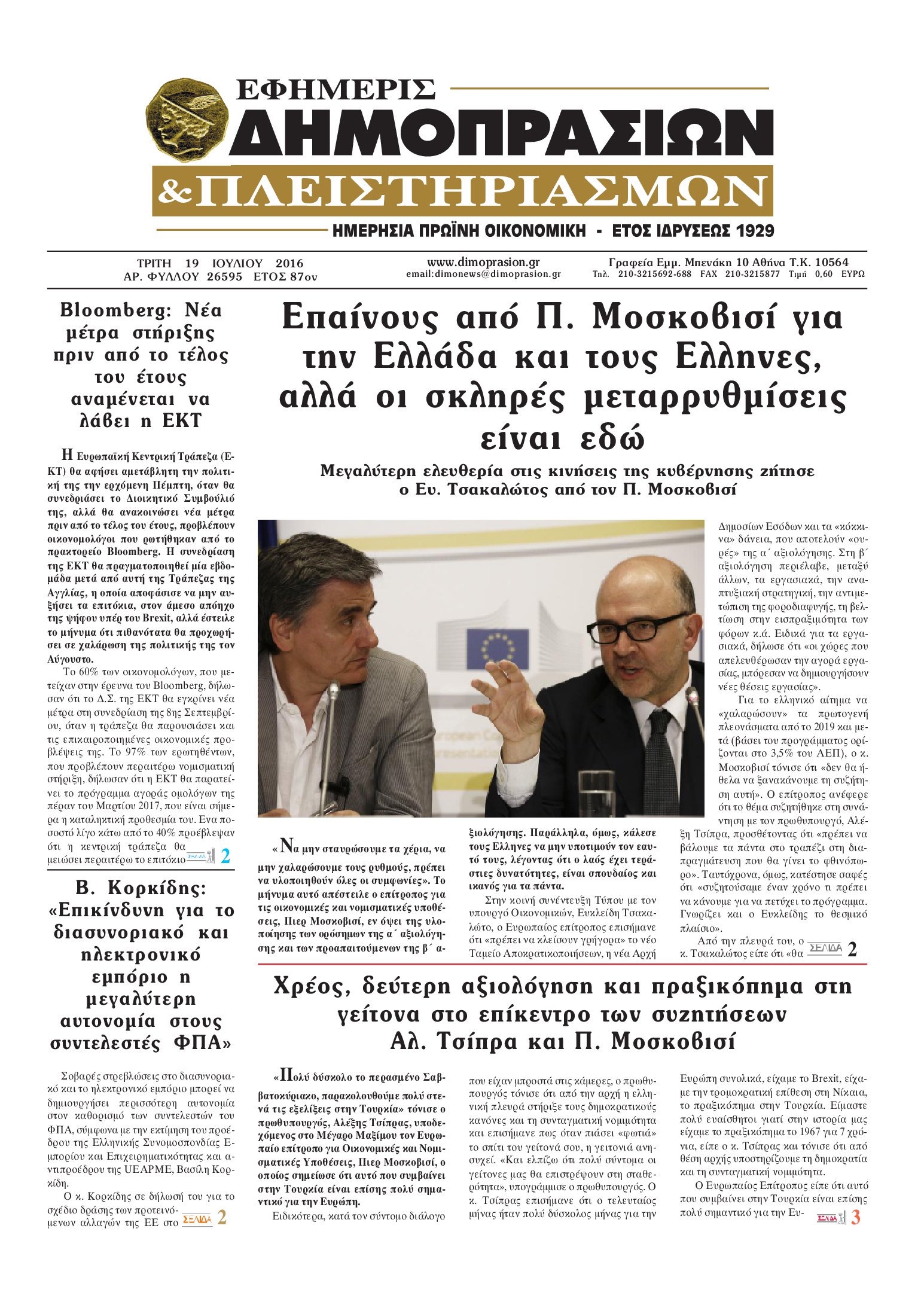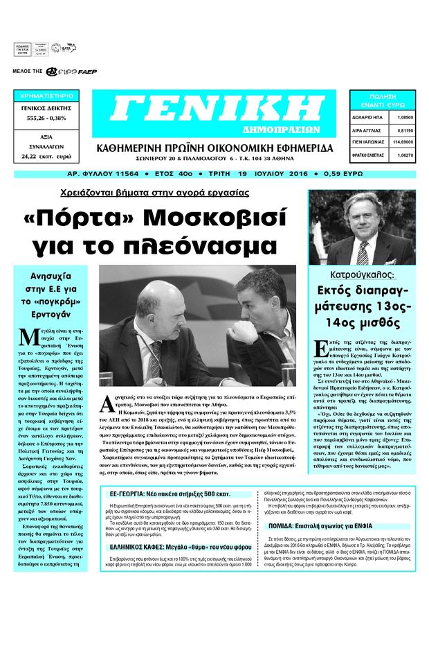 Oι οικονομικές εφημερίδες 19/7/2016 Enikos Newsroom 06:08, Τρίτη 19 Ιουλίου 2016 Media Διαβάστε τα σημερινά πρωτοσέλιδα των οικονομικών εφημερίδων: ΟΙΚΟΝΟΜΙΚΕΣ ΕΦΗΜΕΡΙΔΕΣ ΠΡΩΤΟΣΕΛΙΔΑ Μοιράσου το: σχολίασε κι εσύ (0 σχόλια) Ακολουθήστε το enikos.gr στο Google News και μάθετε πρώτοι όλες τις ειδήσεις Δείτε όλες τις τελευταίες ειδήσεις από την Ελλάδα και τον Κόσμο στο enikos.gr Ειδήσεις Ροή Ειδήσεων 6 ώρες πριν Εκτός ευρωομάδας ΣΥΡΙΖΑ ο Νίκος Παππάς μετά την επίθεση στον δημοσιογράφο Νίκο Γιαννόπουλο – Η μήνυση και οι νέες δηλώσεις 6 ώρες πριν «Αγριεύουν» οι αγρότες: «Δεν συντρέχει λόγος συνάντησης με τον πρωθυπουργό» – Ώρα αποφάσεων στη σύσκεψη της Πέμπτης 6 ώρες πριν Κυψέλη: Χωρίς την οικογένειά της δίπλα της απολογήθηκε η 16χρονη – «Της είχε επιτεθεί κάποιος για να την βιάσει, φοβήθηκε και κυκλοφορούσε με μαχαίρι» 6 ώρες πριν Politico: Το πρόβλημα της Ευρώπης δεν είναι το Βέλγιο αλλά ο Ντόναλντ Τραμπ 7 ώρες πριν Αλεξανδρούπολη: Πολυοργανική ανεπάρκεια λόγω υποσιτισμού η αιτία θανάτου του 3χρονου αγοριού 6 ώρες πριν Μυστήριο με τεράστιες κυκλικές πέτρες 200 κιλών – Ανακαλύφθηκαν τυχαία κατά τη διάρκεια οδικών έργων και κανείς δεν ξέρει από πού προέρχονται 7 ώρες πριν Ύπνος: Ειδικός εξηγεί τον πραγματικό λόγο που ξυπνάτε στις 4 τα ξημερώματα – Ο ρόλος των ορμονών και του κιρκάδιου ρυθμού 8 ώρες πριν Αριθμολογία: Οι άνθρωποι που έχουν γεννηθεί αυτές τις 4 ημερομηνίες, είναι τρυφεροί και αγαπούν ανιδιοτελώς 19 ώρες πριν 20 χρόνια τα Χριστούγεννα ξεκινούν στα Public με μεγάλη ποικιλία σε δώρα! 6 λεπτά πριν Ντόναλντ Τραμπ: Παρουσίασε τα επιτεύγματα της διακυβέρνησής του – Σκληρή κριτική στον Τζο Μπάιντεν 21 λεπτά πριν Κτηνοτρόφοι: Με δάκρυα στα μάτια ζουν τον εφιάλτη των άδειων στάβλων – «Καταστράφηκαν οι ζωές μας» 36 λεπτά πριν Νέο αμερικανικό πλήγμα σε σκάφος που φέρεται να μετέφερε ναρκωτικά στον Ειρηνικό – Τέσσερις νεκροί 51 λεπτά πριν Αλ Τσαντίρι Νιουζ: «Λύγισε» ο Δημήτρης Λάλος για τον Δημήτρη Ήμελλο – «Τον μνημονεύω, να ‘ναι καλά εκεί που είναι» 1 ώρα πριν GNTM: Με δάκρυα τον αποχαιρέτησε η Ηλιάνα Παπαγεωργίου πριν από τον ημιτελικό – «Αισθάνομαι πολύ παράξενα» ENIKOS NETWORK Αϋπνία: Το κόλπο που θα σας βοηθήσει να κοιμηθείτε απόψε – Είναι απλό και έχει αποτέλεσμα 2,6 εκατομμύρια πολίτες έχουν ήδη εμβολιαστεί κατά της γρίπης ΕΛΣΤΑΤ: Τι δείχνουν τα νέα στοιχεία για τις ηλεκτρονικές παραγγελίες των επιχειρήσεων ΚΕΠΕ: Οι 3 διακριτές συμβολές των ΜμΕ και της μεταποίησης στην ελληνική οικονομία Χαρτογραφώντας το «σημείο χωρίς επιστροφή»: Για πρώτη φορά αποκαλύπτεται με λεπτομέρεια το ακανθώδες όριο της ατμόσφαιρας τ... Η Google καταργεί τη λειτουργία «dark web report» – Πώς θα μπορούν οι χρήστες να διαγράφουν τα δεδομένα τους περισσότερα 02:30 , Πέμπτη 18 Δεκεμβρίου 2025 Αλ Τσαντίρι Νιουζ: Η κόρη της Πάολα στο κοινό – Η ατάκα Λαζόπουλου που την έκανε να «κοκκινήσει» Γιορτινή διάθεση και ευχάριστες στιγμές γέμισε η αποψινή, τελευταία για το 2025, εκπομπή του «... 22:24 , Τετάρτη 17 Δεκεμβρίου 2025 Το Σπίτι Δίπλα Στο Ποτάμι: Σε κίνδυνο η υγεία του Απόστολου – Τι θα δούμε απόψε “Το Σπίτι Δίπλα στο Ποτάμι” ξετυλίγει το νήμα της ζωής των πέντε αδελφών με καταισ... 21:14 , Τετάρτη 17 Δεκεμβρίου 2025 Παιχνίδια Εκδίκησης: Θα καταφέρει ο Χρήστος να κλονίσει την εμπιστοσύνη της Μάγιας απέναντι στον Άγη; Τα «Παιχνίδια Εκδίκησης» έρχονται απόψε στις 22:30, στον Αντ1, με το τελευταίο επεισόδιο της χ... 20:57 , Τετάρτη 17 Δεκεμβρίου 2025 Άγιος Έ