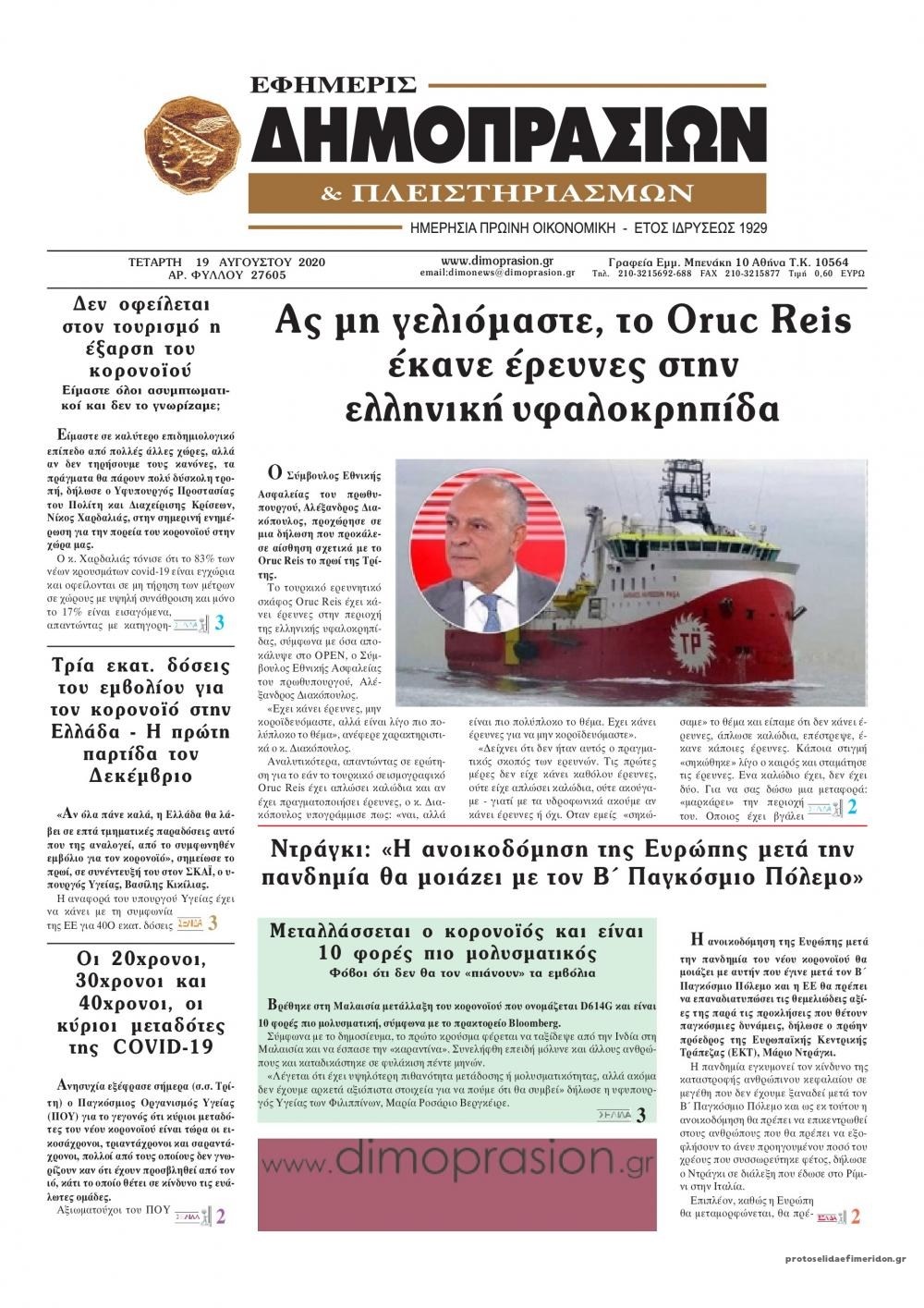 Οι οικονομικές εφημερίδες 19/8/2020 Διονύσης Νίκκας 06:42, Τετάρτη 19 Αυγούστου 2020 Media Διαβάστε τα πρωτοσέλιδα των οικονομικών εφημερίδων… ΟΙΚΟΝΟΜΙΚΕΣ ΕΦΗΜΕΡΙΔΕΣ Μοιράσου το: σχολίασε κι εσύ (0 σχόλια) Ακολουθήστε το enikos.gr στο Google News και μάθετε πρώτοι όλες τις ειδήσεις Δείτε όλες τις τελευταίες ειδήσεις από την Ελλάδα και τον Κόσμο στο enikos.gr Ειδήσεις Ροή Ειδήσεων 3 ώρες πριν Αγρότες: Πολύωροι αποκλεισμοί στα τελωνεία Προμαχώνα, Εξοχής, Ευζώνων και Νίκης – Κλείνουν τον κόμβο Φιλώτα οι παραγωγοί στη Δυτική Μακεδονία 3 ώρες πριν Νίκος Παππάς: Ζητώ συγγνώμη για αυτό το επεισόδιο – Δεν τον γρονθοκόπησα 2 ώρες πριν Πούτιν: Η Ουκρανία δεν είναι έτοιμη για ειρηνευτικές συνομιλίες – ο ρωσικός στρατός προελαύνει σε όλα τα μέτωπα 10 λεπτά πριν Θεσσαλονίκη: Άφησαν τα ανήλικα παιδιά τους να κοιμούνται στην αυλή – Κάτοικος ειδοποίησε το «Χαμόγελο του Παιδιού» 3 ώρες πριν Τρομακτικό βίντεο: Η στιγμή της έκρηξης στο τζετ που μετέφερε τον οδηγό του NASCAR, Γκρεγκ Μπιφλ και την οικογένειά του 3 ώρες πριν Αλλαγή σελίδας για 3 ζώδια – «Μία δύσκολη περίοδος φτάνει στο τέλος της» 2 ημέρες πριν 20 χρόνια τα Χριστούγεννα ξεκινούν στα Public με μεγάλη ποικιλία σε δώρα! 2 ώρες πριν Γεμάτος νεροχύτης; 5 σοβαρές ευθύνες που «φοβίζουν» όσους αφήνουν άπλυτα πιάτα 1 ώρα πριν Ειδικός μοιράζεται 6 κόλπα για να διατηρείστε σε φόρμα με πάνω από 40 ώρες εργασίας την εβδομάδα: «Προπονηθείτε πριν από τη δουλειά, όχι μετά» 4 λεπτά πριν Γιώργος Γιαννόπουλος: Πάντα έχω σχέση – Ψάχνω αγάπη και χιούμορ 9 λεπτά πριν Μεσολόγγι: Συνελήφθησαν δύο ανήλικοι για bullying σε 14χρονο – Τον ανάγκασαν να γονατίσει και τραβούσαν βίντεο 10 λεπτά πριν Θεσσαλονίκη: Άφησαν τα ανήλικα παιδιά τους να κοιμούνται στην αυλή – Κάτοικος ειδοποίησε το «Χαμόγελο του Παιδιού» 14 λεπτά πριν Μετρό και λεωφορεία του ΟΑΣΘ: Σε 24ωρη λειτουργία για τα Σάββατα των εορτών 19 λεπτά πριν Γιώργος Καπουτζίδης: Το «Παρά Πέντε» ήταν η παρέα που δεν είχα στη μοναχική εφηβεία μου – Όσα αποκάλυψε για το Reunion ENIKOS NETWORK Κίνδυνος παραπλάνησης από διαφημίσεις οδοντικών εμφυτευμάτων Καρκίνος του πνεύμονα: Έως 8.000 ζωές μπορούν να σωθούν με την έγκαιρη διάγνωση e-ΕΦΚΑ: Νέα παράταση της προθεσμίας υποβολής για τις ΑΠΔ – Ποιες επιχειρήσεις αφορά Αγορά πολυτελών κατοικιών: Αυτές είναι οι προτεραιότητες των αγοραστών – Σε ποιες περιοχές στρέφονται και τι επιλέγουν Χαρτογραφώντας το «σημείο χωρίς επιστροφή»: Για πρώτη φορά αποκαλύπτεται με λεπτομέρεια το ακανθώδες όριο της ατμόσφαιρας τ... Η Google καταργεί τη λειτουργία «dark web report» – Πώς θα μπορούν οι χρήστες να διαγράφουν τα δεδομένα τους περισσότερα 08:00 , Παρασκευή 19 Δεκεμβρίου 2025 Την Κυριακή με τη Realnews: Δωροεπιταγή 10€ Δωροεπιταγή αξίας 10€ για αγορές άνω των 60€ από τα πολυκαταστήματα FactoryOutlet H προσφορά ι... 05:48 , Παρασκευή 19 Δεκεμβρίου 2025 Οι οικονομικές εφημερίδες 19/12/2025 Διαβάστε τα πρωτοσέλιδα από τις οικονομικές εφημερίδες, σήμερα 19/12/2025. 05:43 , Παρασκευή 19 Δεκεμβρίου 2025 Οι αθλητικές εφημερίδες 19/12/2025 Διαβάστε τα πρωτοσέλιδα από τις αθλητικές εφημερίδες, σήμερα 19/12/2025. 05:38 , Παρασκευή 19 Δεκεμβρίου 2025 Οι πολιτικές εφημερίδες 19/12/2025 Διαβάστε τα πρωτοσέλιδα από τις πολιτικές εφημερίδες, σήμερα 19/12/2025. ΤΕΛΕΥΤΑΙΕΣ ΕΙΔΗΣΕΙΣ 4 λεπτά πριν Γιώργος Γιαννόπουλος: Πάντα έχω σχέση – Ψάχνω αγάπη... 9 λεπτά πριν Μεσολόγγι: Συνελήφθησαν δύο ανήλικοι για bullying σε... 10 λεπτά πριν Θεσσαλονίκη: Άφησαν τα ανήλικα παιδιά τους να... 14 λεπτ