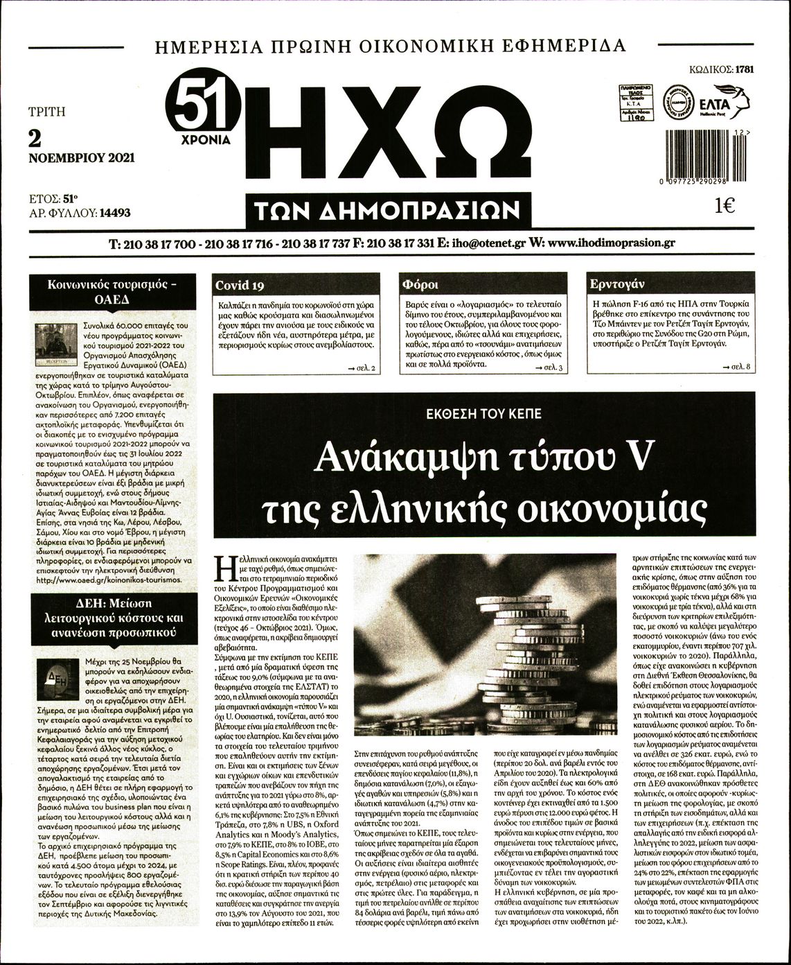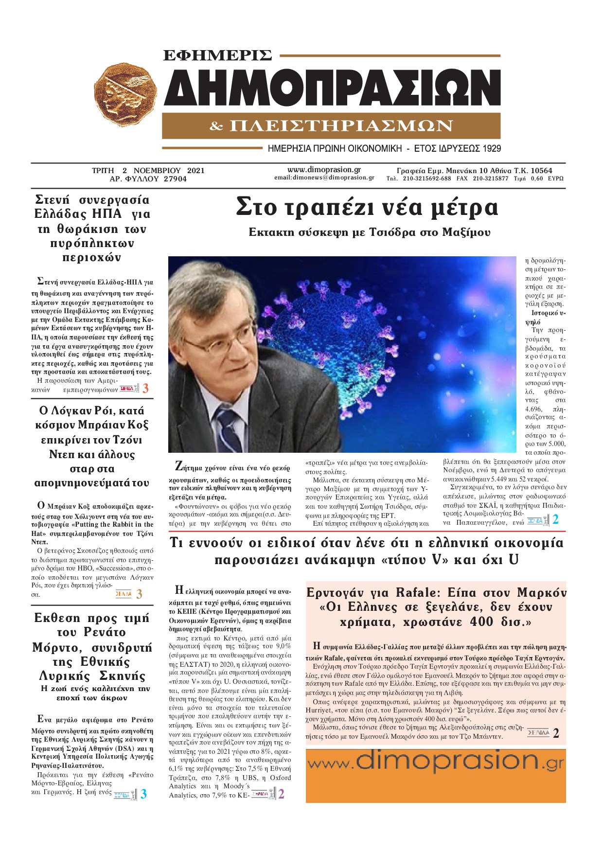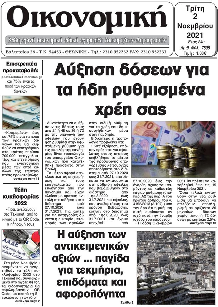 Οι οικονομικές εφημερίδες 2/11/2021 Διονύσης Νίκκας 06:52, Τρίτη 02 Νοεμβρίου 2021 Media Διαβάστε τα πρωτοσέλιδα από τις οικονομικές εφημερίδες… ΟΙΚΟΝΟΜΙΚΕΣ ΕΦΗΜΕΡΙΔΕΣ Μοιράσου το: σχολίασε κι εσύ (0 σχόλια) Ακολουθήστε το enikos.gr στο Google News και μάθετε πρώτοι όλες τις ειδήσεις Δείτε όλες τις τελευταίες ειδήσεις από την Ελλάδα και τον Κόσμο στο enikos.gr Ειδήσεις Ροή Ειδήσεων 20 λεπτά πριν Την πρώτη Belharra παρέλαβε η χώρα μας, υψώθηκε η ελληνική σημαία στη φρεγάτα «Κίμων» – Δένδιας: «Το ισχυρότερο Πολεμικό Ναυτικό που είχε ποτέ ο ελληνισμός» 3 ώρες πριν Γιώργος Μαζωνάκης: «Δεν ζήτησα χρήματα, παρά μόνο ηθική δικαίωση» – Οι πρώτες δηλώσεις του 21χρονου μετά την κατάθεση της μήνυσης 2 ώρες πριν Δίκη Βαλυράκη: Καταθέτει ο βασικός αυτόπτης μάρτυρας – «Δέχτηκα πιέσεις να μη μιλήσω, πήγα να ψωνίσω και αυτοκίνητο με χτύπησε στο πόδι» 1 ώρα πριν Ώρα αποφάσεων για τους αγρότες – Ξεκίνησε η πανελλαδική σύσκεψη μπλόκων στις Σέρρες – ΦΩΤΟ 6 ώρες πριν Συναγερμός και στην Ελλάδα για τη «σούπερ γρίπη»: Πόσο σοβαρή είναι και ποιοι θεωρούνται πιο ευάλωτοι – 3 ειδικοί μιλούν στο enikos.gr 7 ώρες πριν Τα 4 ζώδια που λαμβάνουν ένα ισχυρό σημάδι από το σύμπαν – «Αποκαλύπτεται κάτι που μπορεί να αλλάξει τη ζωή μας» 6 ώρες πριν Αν κάνετε συνεχώς αυτά τα 8 πράγματα με τα κατοικίδιά σας, σας λείπει η ανθρώπινη επαφή 2 ώρες πριν Αυτό που κρύβεται κάτω από τη Γροιλανδία θα μπορούσε να ανατρέψει όσα γνωρίζουμε για την άνοδο της στάθμης των θαλασσών 1 ημέρα πριν 20 χρόνια τα Χριστούγεννα ξεκινούν στα Public με μεγάλη ποικιλία σε δώρα! 5 λεπτά πριν Εξεταστική για ΟΠΕΚΕΠΕ – Μπρατάκος: «Δεν μου τέθηκε ζήτημα για πιέσεις από τον κ. Αυγενάκη ή οποιονδήποτε» – Τι είπε για τον Σημανδράκο 6 λεπτά πριν ΤΕΧΑΝ: 1ο Πανελλήνιο Σχολικό Πρωτάθλημα Ανακύκλωσης Δευτεροβάθμιας Εκπαίδευσης 10 λεπτά πριν Τραυματίστηκε 5χρονο παιδί σε νηπιαγωγείο στο Αγρίνιο – Χτυπήθηκε από αντικείμενο που έπεσε από έπιπλο 15 λεπτά πριν Μεσσηνία: Παρέμβαση εισαγγελέα στο μπλόκο αγροτών στον κόμβο της Θουρίας έπειτα από καταγγελίες για παρακώλυση συγκοινωνιών 20 λεπτά πριν Την πρώτη Belharra παρέλαβε η χώρα μας, υψώθηκε η ελληνική σημαία στη φρεγάτα «Κίμων» – Δένδιας: «Το ισχυρότερο Πολεμικό Ναυτικό που είχε ποτέ ο ελληνισμός» ENIKOS NETWORK 100 χρόνια ΠΙΣ: Ένας αιώνας προσφοράς στην Ιατρική και την κοινωνία Ένα ποτήρι την ημέρα από αυτόν τον χυμό μειώνει τη χοληστερίνη, τη φλεγμονή και την πίεση Κρατική επιχορήγηση έως 14.500 ευρώ: Ποιοι θα λάβουν από σήμερα την προκαταβολή στον τραπεζικό λογαριασμό τους Αυτόματη απόδοση ΦΠΑ: Τα δύο σενάρια που επεξεργάζεται η ΑΑΔΕ Χαρτογραφώντας το «σημείο χωρίς επιστροφή»: Για πρώτη φορά αποκαλύπτεται με λεπτομέρεια το ακανθώδες όριο της ατμόσφαιρας τ... Η Google καταργεί τη λειτουργία «dark web report» – Πώς θα μπορούν οι χρήστες να διαγράφουν τα δεδομένα τους περισσότερα 15:52 , Πέμπτη 18 Δεκεμβρίου 2025 Το Σπίτι Δίπλα Στο Ποτάμι: Το καθηλωτικό τελευταίο επεισόδιο για το 2025 απόψε στις 22:30 Καθηλώνει το σημερινό επεισόδιο της σειράς “Το Σπίτι Δίπλα Στο Ποτάμι” που έρχεται... 15:20 , Πέμπτη 18 Δεκεμβρίου 2025 Άγιος έρωτας – Η Ελευθερία Αρβανιτάκη τραγουδά και ο Γιάννης Τσορτέκης καθηλώνει με τον χορό του Ο Κλεάνθης χορεύει στους ήχους της Ελευθερίας Αρβανιτάκη στη σειρά “Άγιος Έρωτας“.... 08:00 , Πέμπτη 18 Δεκεμβρίου 2025 Την Κυριακή με τη Realnews: Δωροεπιταγή 10€ Δωροεπιταγή αξίας 10€ για αγορές άνω των 60€ από τα πολυκαταστήματα FactoryOutlet H πρ