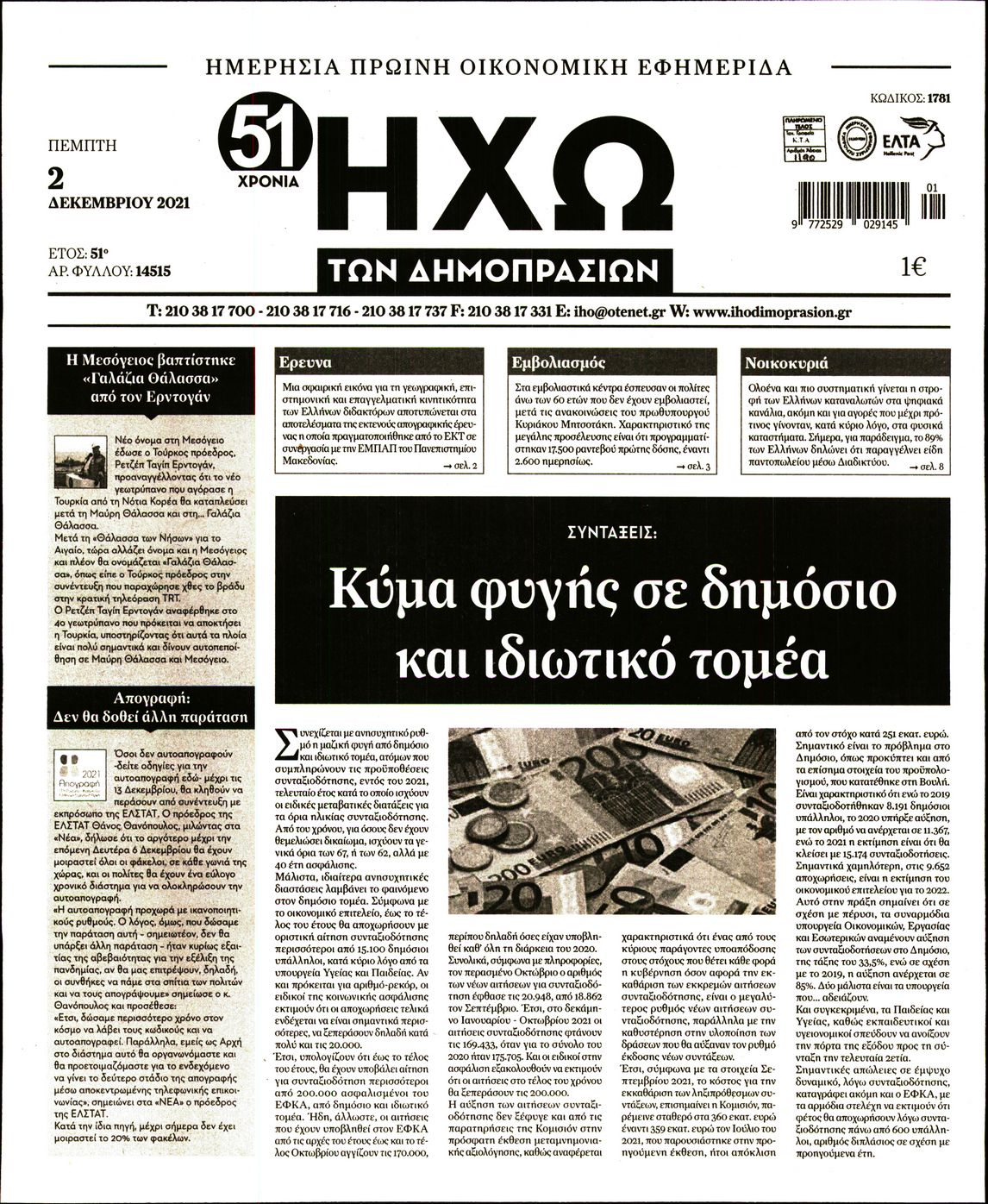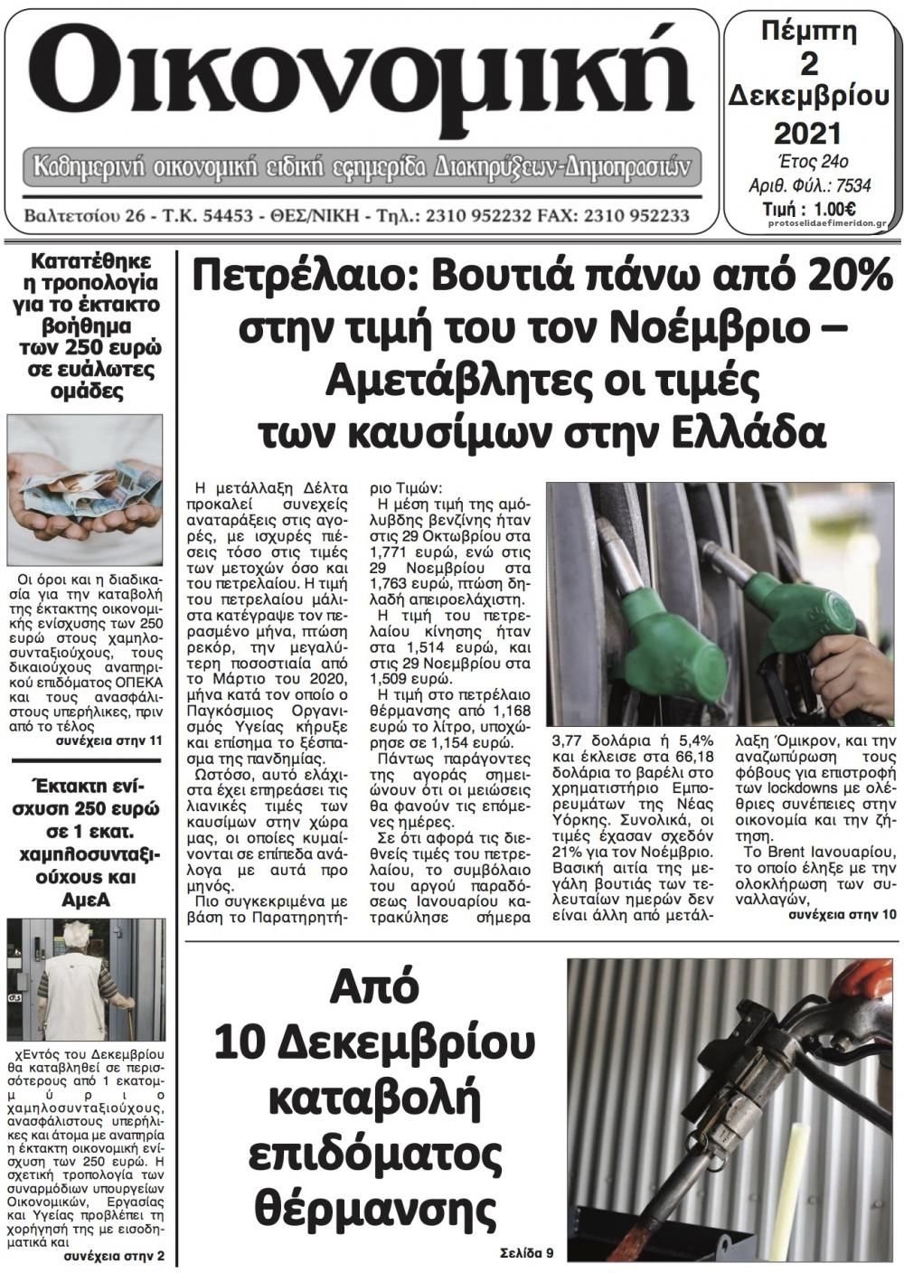 Οι οικονομικές εφημερίδες 2/12/2021 Διονύσης Νίκκας 06:52, Πέμπτη 02 Δεκεμβρίου 2021 Media Διαβάστε τα πρωτοσέλιδα από τις οικονομικές εφημερίδες… ΟΙΚΟΝΟΜΙΚΕΣ ΕΦΗΜΕΡΙΔΕΣ Μοιράσου το: σχολίασε κι εσύ (0 σχόλια) Ακολουθήστε το enikos.gr στο Google News και μάθετε πρώτοι όλες τις ειδήσεις Δείτε όλες τις τελευταίες ειδήσεις από την Ελλάδα και τον Κόσμο στο enikos.gr Ειδήσεις Ροή Ειδήσεων 19 λεπτά πριν Ευρωπαϊκή Ένωση: Συμφωνία για δάνειο 90 δισ. ευρώ στην Ουκρανία τη διετία 2026-2027 5 ώρες πριν ΟΠΕΚΕΠΕ: Προφυλακιστέος ο φερόμενος αρχηγός και ο λογιστής της εγκληματικής οργάνωσης 6 ώρες πριν Αυξάνουν την πίεση προς την κυβέρνηση οι αγρότες: Κλείνουν παρακαμπτήριους και ανοίγουν διόδια – Τι θα γίνει τις γιορτές 6 ώρες πριν Φοινικούντα: Το Σάββατο απολογείται ο 30χρονος γιος γνωστού επιχειρηματία της Πλάκας που παραδόθηκε – Όσα είπε στους αστυνομικούς και ο ρόλος του στο έγκλημα 4 ώρες πριν ΑΕΚ – Κραϊόβα 3-2: Επική ανατροπή και πρόκριση στους «16» του Conference League η Ένωση 6 ώρες πριν Αρχαιολόγοι ανακάλυψαν ρωμαϊκά τεχνουργήματα από μια πόλη που δεν υπήρξε ποτέ – Τα τρία εντυπωσιακά κτίρια και ο αμφορέας με τις… σαρδέλες 7 ώρες πριν Ύπνος: Η απλή βραδινή ρουτίνα για να προστατεύσετε τα μαλλιά σας από το κρύο κατά τη διάρκεια του χειμώνα 8 ώρες πριν Manifesting: Πώς να συναντήσετε τον σύντροφο της ζωής σας, ανάλογα με τον μήνα γέννησής σας 2 ημέρες πριν 20 χρόνια τα Χριστούγεννα ξεκινούν στα Public με μεγάλη ποικιλία σε δώρα! 7 λεπτά πριν Γουατεμάλα: Εξαρθρώθηκε κύκλωμα διακίνησης μεταναστών προς τις ΗΠΑ – Συνελήφθησαν 14 άτομα 12 λεπτά πριν Βουλγαρία: Χιλιάδες πολίτες στους δρόμους κατά της απερχόμενης κυβέρνησης και της διαφθοράς 19 λεπτά πριν Ευρωπαϊκή Ένωση: Συμφωνία για δάνειο 90 δισ. ευρώ στην Ουκρανία τη διετία 2026-2027 43 λεπτά πριν Αιματηρή βομβιστική επίθεση στην Υεμένη: Τουλάχιστον τρεις νεκροί και 13 τραυματίες 46 λεπτά πριν Στη Φλόριντα σήμερα οι διαβουλεύσεις σχετικά με τα επόμενα στάδια για τη Λωρίδα της Γάζας ENIKOS NETWORK Σε περίοδο αυξημένης δραστηριότητας η γρίπη στην Ελλάδα-Μέτρα προστασίας από τον ΕΟΔΥ Σκέφτεστε συνέχεια συζητήσεις που έχετε κάνει; Τι σημαίνει αυτό, σύμφωνα με ειδικό Στεγαστικό: Τι λέει η ΠΟΜΙΔΑ για τα νέα μέτρα που ανακοίνωσε ο Κυριάκος Μητσοτάκης Λαγκάρντ: Αισιόδοξη για την ανάπτυξη της Ευρωζώνης, αβέβαιη για τον πληθωρισμό Χαρτογραφώντας το «σημείο χωρίς επιστροφή»: Για πρώτη φορά αποκαλύπτεται με λεπτομέρεια το ακανθώδες όριο της ατμόσφαιρας τ... Η Google καταργεί τη λειτουργία «dark web report» – Πώς θα μπορούν οι χρήστες να διαγράφουν τα δεδομένα τους περισσότερα 02:50 , Παρασκευή 19 Δεκεμβρίου 2025 GNTM: «Κλείδωσαν» οι τέσσερις φιναλίστ – Μεγάλη ανατροπή στις τελευταίες αποχωρήσεις Για προτελευταία φορά εμφανίστηκαν στο πλατό του GNTM οι φιναλίστ του φετινού κύκλου, το βράδυ... 17:45 , Πέμπτη 18 Δεκεμβρίου 2025 ROUK ZOUK: Εορταστικό επεισόδιο με καλεσμένους τους πρωταγωνιστές του «Γιατί ρε πατέρα» Το Σάββατο 20 Δεκεμβρίου στις 21:00, η Ζέτα Μακρυπούλια υποδέχεται εκλεκτούς ηθοποιούς που όλο... 17:20 , Πέμπτη 18 Δεκεμβρίου 2025 Άγιος έρωτας: Η Χριστίνα εξομολογείται στον πατέρα Νικόλαο, απόψε στις 21:00 στον Alpha Η Νότα αποφασίζει να εκδικηθεί τον Πέτρο και τον Στέφανο, για χάρη του Λούη, όμως τα πράγματα ... 16:50 , Πέμπτη 18 Δεκεμβρίου 2025 Να μ’ αγαπάς: Ζωή και Φωτεινή συμφιλιώνονται ως μάνα με κόρη, απόψε στις 20:00 Η ταυτότητα του Άγγελου αποκαλύπτεται στο νέο επεισόδιο της σειράς “Να μ’ αγαπάς... ΤΕΛΕΥΤΑ
