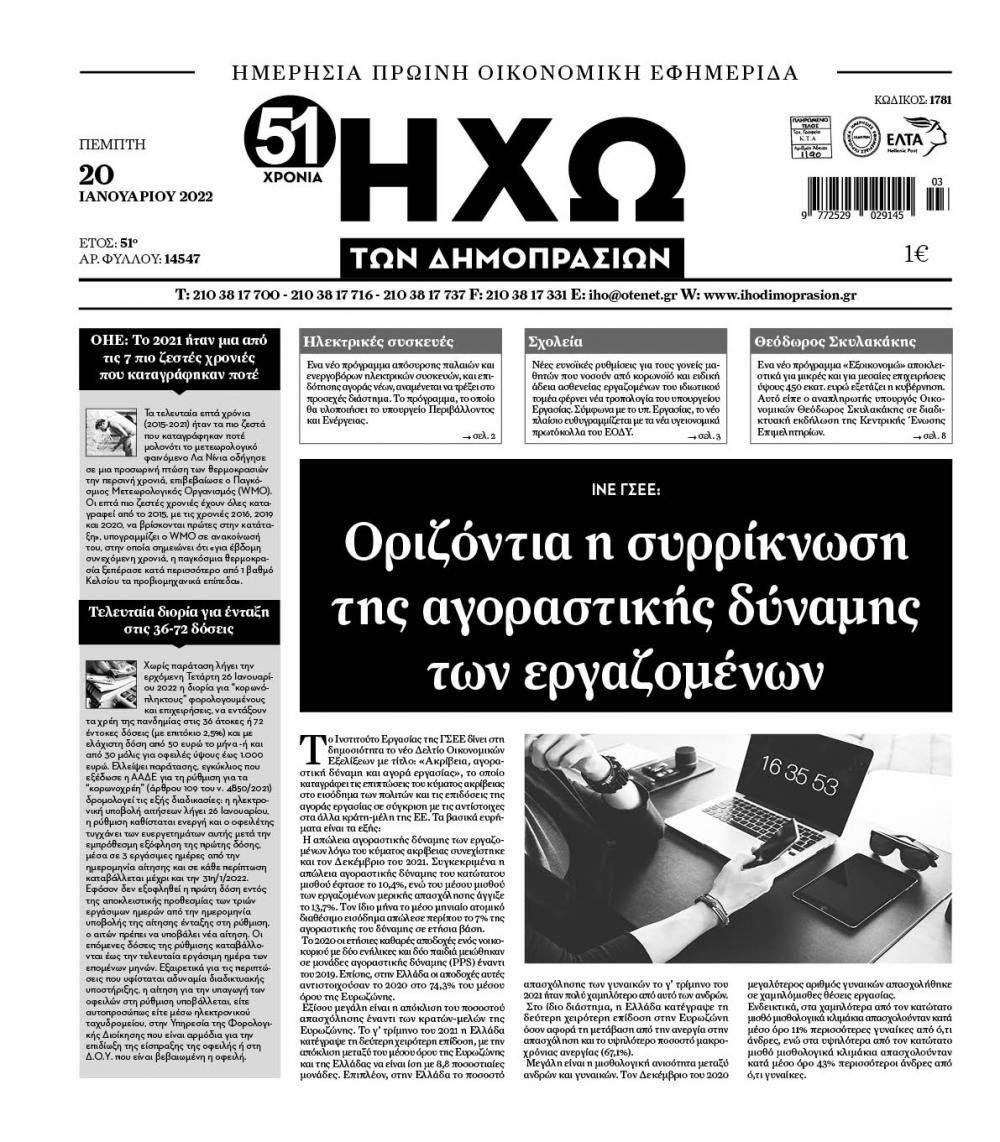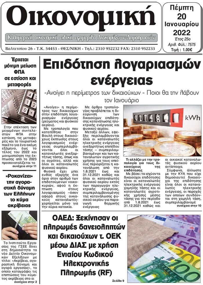 Οι οικονομικές εφημερίδες 20/1/2022 Διονύσης Νίκκας 06:53, Πέμπτη 20 Ιανουαρίου 2022 Media Διαβάστε τα πρωτοσέλιδα από τις οικονομικές εφημερίδες… ΟΙΚΟΝΟΜΙΚΕΣ ΕΦΗΜΕΡΙΔΕΣ Μοιράσου το: σχολίασε κι εσύ (0 σχόλια) Ακολουθήστε το enikos.gr στο Google News και μάθετε πρώτοι όλες τις ειδήσεις Δείτε όλες τις τελευταίες ειδήσεις από την Ελλάδα και τον Κόσμο στο enikos.gr Ειδήσεις Ροή Ειδήσεων 8 ώρες πριν Μητσοτάκης: Αναγκαία η μεταρρύθμιση του πρωτογενούς τομέα – Τα 6 νέα μέτρα για το στεγαστικό και οι αναφορές σε «Ιθάκη» και «πολιτικούς του καναπέ» 7 ώρες πριν Δάνεια σε ελβετικό φράγκο: Τα βασικά σημεία της ρύθμισης – ανάσας για 40.000 δανειολήπτες – Αναλυτικός οδηγός με ερωτήσεις και απαντήσεις 7 ώρες πριν Κυψέλη: Εξιτήριο πήρε η 14χρονη μαθήτρια που μαχαιρώθηκε από την 16χρονη σε σχολείο – «Θέλω να βοηθήσω το παιδί, έχει μπλέξει με κακές παρέες» 7 ώρες πριν Τραμπ: Γιατί κατέθεσε τώρα την αγωγή κατά του BBC – Πώς η κίνησή του εξυπηρετεί το νέο δόγμα του για «αντίσταση» στην Ευρώπη, υπέρ των συντηρητικών 8 ώρες πριν ΟΠΕΚΕΠΕ – Παράνομες επιδοτήσεις: Ελεύθεροι με περιοριστικούς όρους και οι 7 κατηγορούμενοι που απολογήθηκαν σήμερα 7 ώρες πριν Ανακαλύφθηκε βυθισμένη πέτρινη κατασκευή ανοιχτά της Κριμαίας – Αποτελεί μέρος αρχαίας ελληνικής αποικίας 8 ώρες πριν Ύπνος: Αυτό μπορεί να είναι το χειρότερο λάθος για το βιολογικό ρολόι σας, σύμφωνα με ειδικό 9 ώρες πριν Αριθμολογία: Οι άνθρωποι που έχουν γεννηθεί αυτές τις 3 ημερομηνίες, προσελκύουν μεγάλη τύχη πριν από το τέλος του 2025 11 ώρες πριν Οι 7 συμπεριφορές που μαρτυρούν ότι ένας άνδρας επενδύει μακροπρόθεσμα σε μια σχέση 36 δευτερόλεπτα πριν Σαν σήμερα 17 Δεκεμβρίου: Τα σημαντικότερα γεγονότα της ημέρας 5 λεπτά πριν Οι οικονομικές εφημερίδες 17/12/2025 10 λεπτά πριν Οι αθλητικές εφημερίδες 17/12/2025 15 λεπτά πριν Οι πολιτικές εφημερίδες 17/12/2025 23 λεπτά πριν Τα ζώδια σήμερα, Τετάρτη 17 Δεκεμβρίου: Κριοί, η αυτοπεποίθησή σας ενισχύεται ENIKOS NETWORK Αίτημα ΙΣΑ για την εξαίρεση των προσωπικών γιατρών από τις κατ’ οίκον επισκέψεις Η σκανδιναβική μέθοδος στον ύπνο που μπορεί να σώσει έναν γάμο Πιερρακάκης: Ο προϋπολογισμός συμβάλλει ουσιαστικά στην ενίσχυση της αγοραστικής δύναμης της πλειονότητας των εργαζομένων e-ΕΦΚΑ: Παρατείνεται η προθεσμία για την υποβολή ΑΠΔ – Ποιους αφορά Σύγχρονος Νοστράδαμος: Προειδοποιεί για «μεγάλο γεγονός» τους επόμενους μήνες που θα συγκλονίσει τη Βρετανία και τον κόσμο Τεστ παρατηρητικότητας: Μπορείτε να βρείτε τις 3 διαφορές στις εικόνες με έναν πιγκουίνο σε 14 δευτερόλεπτα περισσότερα 05:48 , Τετάρτη 17 Δεκεμβρίου 2025 Οι οικονομικές εφημερίδες 17/12/2025 Διαβάστε τα πρωτοσέλιδα από τις οικονομικές εφημερίδες, σήμερα 17/12/2025. 05:43 , Τετάρτη 17 Δεκεμβρίου 2025 Οι αθλητικές εφημερίδες 17/12/2025 Διαβάστε τα πρωτοσέλιδα από τις αθλητικές εφημερίδες, σήμερα 17/12/2025. 05:38 , Τετάρτη 17 Δεκεμβρίου 2025 Οι πολιτικές εφημερίδες 17/12/2025 Διαβάστε τα πρωτοσέλιδα από τις πολιτικές εφημερίδες, σήμερα 17/12/2025. 20:06 , Τρίτη 16 Δεκεμβρίου 2025 Ο ΣΚΑΙ καταγγέλλει τον ΕΚΚΟΜΕΔ Επιστολή με την οποία καταγράφει την έντονη διαμαρτυρία του προς τον διευθύνοντα σύμβουλο του... ΤΕΛΕΥΤΑΙΕΣ ΕΙΔΗΣΕΙΣ 5 λεπτά πριν Οι οικονομικές εφημερίδες 17/12/2025 10 λεπτά πριν Οι αθλητικές εφημερίδες 17/12/2025 15 λεπτά πριν Οι πολιτικές εφημερίδες 17/12/2025 23 λεπτά πριν Τα ζώδια σήμερα, Τετάρτη 17 Δεκεμβρίου: Κριοί, η... 31 λεπτά πριν Εφημερεύοντα φαρμακεία σε Αθήνα και Θεσσαλονίκη (17/12) 37 λεπτά πριν Κόστ