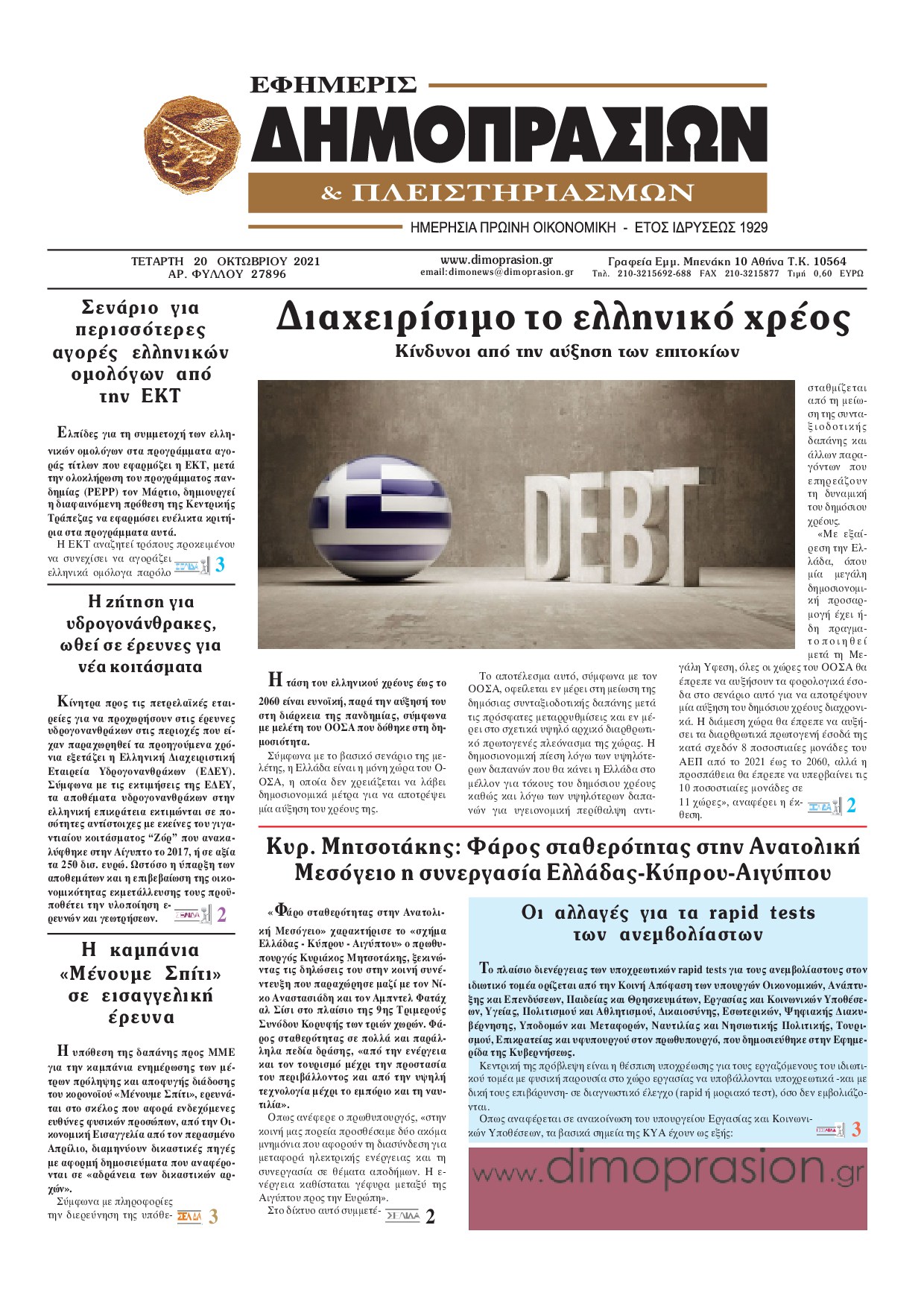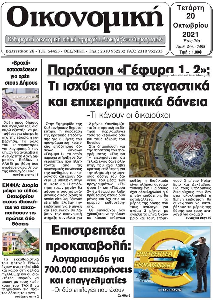Οι οικονομικές εφημερίδες 20/10/2021 Διονύσης Νίκκας 06:53, Τετάρτη 20 Οκτωβρίου 2021 Media Διαβάστε τα πρωτοσέλιδα από τις οικονομικές εφημερίδες… ΟΙΚΟΝΟΜΙΚΕΣ ΕΦΗΜΕΡΙΔΕΣ Μοιράσου το: σχολίασε κι εσύ (0 σχόλια) Ακολουθήστε το enikos.gr στο Google News και μάθετε πρώτοι όλες τις ειδήσεις Δείτε όλες τις τελευταίες ειδήσεις από την Ελλάδα και τον Κόσμο στο enikos.gr Ειδήσεις Ροή Ειδήσεων 2 ώρες πριν Καιρός: Νέο έκτακτο δελτίο επιδείνωσης από την ΕΜΥ – Ποιες περιοχές θα «χτυπήσει» η κακοκαιρία τα Χριστούγεννα 3 ώρες πριν Live – Έξοδος Χριστουγέννων: Αυξημένη η κίνηση στις Εθνικές Οδούς – Εικόνα αποσυμφόρησης με νέες λωρίδες κυκλοφορίας στα αγροτικά μπλόκα 2 ώρες πριν Αεροπορικό δυστύχημα στην Τουρκία: Στο μικροσκόπιο ο καταγραφέας ήχου και το μαύρο κουτί – Η αεροσυνοδός Maria Pappa ανάμεσα στα θύματα 3 ώρες πριν Ο Ζελένσκι παρουσίασε νέο ειρηνευτικό σχέδιο 20 σημείων για τον τερματισμό του πολέμου στην Ουκρανία 4 ώρες πριν Φρίκη στη Θεσσαλονίκη: 13χρονη κατήγγειλε ότι έπεσε θύμα ομαδικού βιασμού από 6 αγόρια 4 ώρες πριν Η ζωή για 3 ζώδια γίνεται πολύ πιο εύκολη από εδώ και πέρα – «Εμπιστευτείτε τη διαίσθηση σας για να πάρετε αποφάσεις» 3 ώρες πριν Γυναίκα που έχασε 30 κιλά αποκαλύπτει τα μυστικά της επιτυχίας της – «Οι υδατάνθρακες είναι καύσιμο του οργανισμού, όχι εχθρός» 2 ώρες πριν Οι άνθρωποι που αποφεύγουν να γιορτάσουν τα Χριστούγεννα με την οικογένειά τους, συνήθως είχαν αυτές τις 8 εμπειρίες στην παιδική ηλικία 1 ημέρα πριν Η Coca-Cola και ο Ελληνικός Ερυθρός Σταυρός μαζί αυτά τα Χριστούγεννα: Μια μεγάλη αγκαλιά για τους συνανθρώπους μας που έχουν ανάγκη 1 λεπτό πριν Χριστουγεννιάτικα κάλαντα από την Πανηπειρωτική Συνομοσπονδία στον Σωκράτη Φάμελλο – Ο χορός του προέδρου του ΣΥΡΙΖΑ 10 λεπτά πριν Ιταλία: Κατασχέθηκαν 435 κιλά κοκαΐνης αξίας περίπου 70 εκατ. ευρώ 17 λεπτά πριν Κρεμλίνο: Ενήμερος ο Πούτιν για τις προτάσεις των ΗΠΑ για το ειρηνευτικό σχέδιο 24 λεπτά πριν Μελομακάρονα της τελευταίας στιγμής: Οι συνταγές από τρεις Έλληνες σεφ και έναν ζαχαροπλάστη, που θα σας ενθουσιάσουν 32 λεπτά πριν Παράσυρση και εγκατάλειψη 14χρονου κοριτσιού που έλεγε τα κάλαντα ENIKOS NETWORK Χριστουγεννιάτικα κάλαντα από εθελοντές του Ερυθρού Σταυρού στον Υπουργό Υγείας Άδωνι Γεωργιάδη Σύνδρομο ευερέθιστου εντέρου: Το Νο1 εορταστικό τρόφιμο που πρέπει να παραλείψετε για να αποφύγετε τα αέρια Σχολές ΔΥΠΑ: Βγήκαν τα αποτελέσματα για τους προσωρινούς αναπληρωτές και ωρομίσθιους εκπαιδευτικούς ΕΛΣΤΑΤ: Ανατιμήσεις 1,9% στις τιμές των οικοδομικών υλικών τον Νοέμβριο – Δείτε αναλυτικά τα στοιχεία Ο Google Assistant θα παραμείνει λίγο περισσότερο για ορισμένους χρήστες Android Τεστ προσωπικότητας: Το βάζο που θα επιλέξετε αποκαλύπτει πώς λύνετε προβλήματα στη ζωή σας περισσότερα 13:27 , Τετάρτη 24 Δεκεμβρίου 2025 Ο Χριστουγεννιάτικος Τηλεμαραθώνιος του ΑΝΤ1 ένωσε τους πολιτικούς αρχηγούς – Τα εγκωμιαστικά σχόλια για τον Θοδωρή Κυριακού Σπάνια ομοφωνία: Όλοι οι πολιτικοί αρχηγοί αποθεώνουν τον Θοδωρή Κυριακού Ο Χριστουγεννιάτικος... 12:05 , Τετάρτη 24 Δεκεμβρίου 2025 Έξοδος εκδρομέων για τα Χριστούγεννα: Στείλε βίντεο ή φωτογραφίες στο enikos.gr – Αποθήκευσε τον αριθμό 6944 05 05 05 Πολλοί έχουν επιλέξει να περάσουν τις γιορτές εκτός πόλης, ωστόσο και φέτος η μαζική έξοδος απ... 10:36 , Τετάρτη 24 Δεκεμβρίου 2025 Τηλεθέαση (23/12): Ποιες πρωινές εκπομπές της ψυχαγωγικής ζώνης πήραν προβάδισμα; Με αμείωτη ένταση συνεχίστηκε η «μάχη» σ