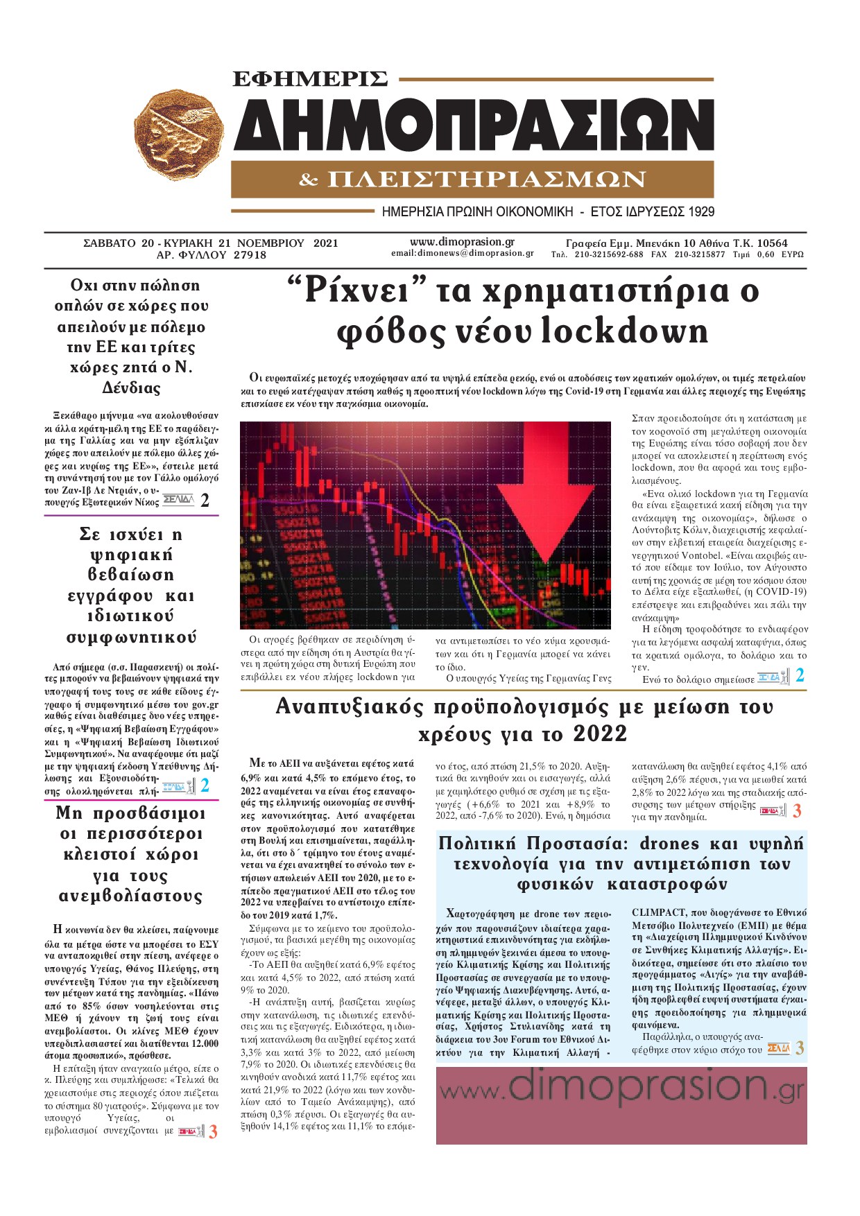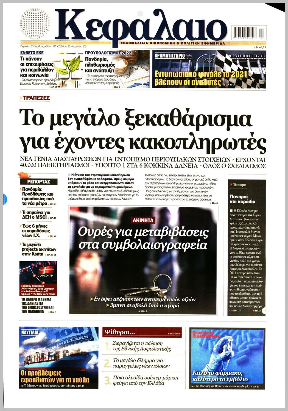 Οι οικονομικές εφημερίδες 20/11/2021 Διονύσης Νίκκας 07:22, Σάββατο 20 Νοεμβρίου 2021 Media Διαβάστε τα πρωτοσέλιδα από τις οικονομικές εφημερίδες… ΟΙΚΟΝΟΜΙΚΕΣ ΕΦΗΜΕΡΙΔΕΣ Μοιράσου το: σχολίασε κι εσύ (0 σχόλια) Ακολουθήστε το enikos.gr στο Google News και μάθετε πρώτοι όλες τις ειδήσεις Δείτε όλες τις τελευταίες ειδήσεις από την Ελλάδα και τον Κόσμο στο enikos.gr Ειδήσεις Ροή Ειδήσεων 7 ώρες πριν Ανυποχώρητοι οι αγρότες: Δεν πάνε στο Μαξίμου, κλιμακώνουν τις κινητοποιήσεις – Ποια είναι τα αιτήματά τους 3 ώρες πριν ΗΠΑ: Ένοπλη επίθεση στο πανεπιστήμιο Μπράουν – Τουλάχιστον 2 νεκροί και 8 τραυματίες – Τραμπ: «Αυτή τη στιγμή είναι να προσευχηθούμε για τα θύματα» 6 ώρες πριν ΟΠΕΚΕΠΕ-Κρήτη: Πώς δρούσε το κύκλωμα με τις παράνομες επιδοτήσεις – Τα ΚΥΔ, οι ψευδείς αιτήσεις και τα… «βράχια της Νορμανδίας» 6 ώρες πριν Διατλαντικό ρήγμα: Οι σχέσεις ΗΠΑ – Ευρώπης επιδεινώνονται λόγω του νέου δόγματος Τραμπ και της πίεσης που ασκεί στην Ουκρανία 7 ώρες πριν Διπλό φονικό στη Φοινικούντα: Δύο νέα πρόσωπα στο «κάδρο» των ερευνών – Οι αντιφάσεις στις καταθέσεις του ανιψιού 7 ώρες πριν Εκπληκτική ανακάλυψη σε αρχαία ελληνική πόλη: Βρέθηκε γυναικείο κεφάλι αγάλματος και οι αρχαιολόγοι εκτιμούν ότι μπορεί να συνδέεται με τη θεά Εστία 8 ώρες πριν Ύπνος: 9 πράγματα που μπορείτε να κάνετε πριν κοιμηθείτε για να ξυπνάτε πιο χαρούμενοι το πρωί, σύμφωνα με ειδικούς 9 ώρες πριν Αριθμολογία: Οι άνθρωποι που έχουν γεννηθεί αυτές τις 4 ημερομηνίες, δεν αντέχουν να κάνουν μία κλασική δουλειά γραφείου 10 ώρες πριν Χριστουγεννιάτικο δέντρο: Το έξυπνο κόλπο με τα στολίδια για να φαίνεται πιο γεμάτο 2 λεπτά πριν Σήμερα με τη Realnews: Δωροεπιταγή 10€ 3 λεπτά πριν Σπλαχνικό λίπος: Γιατρός του Χάρβαρντ αποκαλύπτει 7 τροφές που βοηθούν στη μείωσή του με φυσικό τρόπο 9 λεπτά πριν Σαν σήμερα 14 Δεκεμβρίου: Τα σημαντικότερα γεγονότα της ημέρας 17 λεπτά πριν Οι αθλητικές εφημερίδες 14/12/2025 25 λεπτά πριν Οι πολιτικές εφημερίδες 14/12/2025 ENIKOS NETWORK «Με αυτόν τον τρόπο κατάφερα να απογειώσω τη σεξουαλική μου ζωή» – Τι αποκαλύπτει 40χρονη Πείτε «τέλος» στην ακμή χωρίς φάρμακα – Ειδικός αποκαλύπτει αποτελεσματική ρουτίνα περιποίησης Νέα εποχή για την Εγνατία Οδό – Τι αλλάζει με επενδύσεις 1,8 δισ. ευρώ Στάση εργασίας στα λεωφορεία την Τετάρτη 17 Δεκεμβρίου – Κανονικά τα περιαστικά δρομολόγια Σύγχρονος Νοστράδαμος: Προειδοποιεί για «μεγάλο γεγονός» τους επόμενους μήνες που θα συγκλονίσει τη Βρετανία και τον κόσμο Τεστ παρατηρητικότητας: Μπορείτε να βρείτε τις 3 διαφορές στις εικόνες με έναν πιγκουίνο σε 14 δευτερόλεπτα περισσότερα 05:46 , Κυριακή 14 Δεκεμβρίου 2025 Οι αθλητικές εφημερίδες 14/12/2025 Διαβάστε τα πρωτοσέλιδα από τις αθλητικές εφημερίδες, σήμερα 14/12/2025. 05:38 , Κυριακή 14 Δεκεμβρίου 2025 Οι πολιτικές εφημερίδες 14/12/2025 Διαβάστε τα πρωτοσέλιδα από τις πολιτικές εφημερίδες, σήμερα 14/12/2025. 04:18 , Κυριακή 14 Δεκεμβρίου 2025 Σήμερα με τη Realnews: Σκάναρε & κέρδισε με το PaduApp Τo κορυφαίο app επιβράβευσης στην Ελλάδα που σε ανταμείβει για κάθε αγορά! Κέρδισε με 3 μόνο β... 03:18 , Κυριακή 14 Δεκεμβρίου 2025 Σήμερα με τη Realnews: Food & Travel μαζί Beaute και Μαστορέματα Σήμερα με τη Realnews: Food & Travel μαζί Beaute και Μαστορέματα Food & Travel Ετοιμάζ... ΤΕΛΕΥΤΑΙΕΣ ΕΙΔΗΣΕΙΣ 3 λεπτά πριν Σπλαχνικό λίπος: Γιατρός του Χάρβαρντ αποκαλύπτει 7... 9 λεπτά πριν Σαν σήμερα 14 Δεκεμβρίου: Τα σημαντικότερα γεγονότα... 17 λεπτά πριν Οι αθλητικές εφημερίδες 14/12/2025 25 λεπτά πριν Οι πολιτικές εφημερίδες 