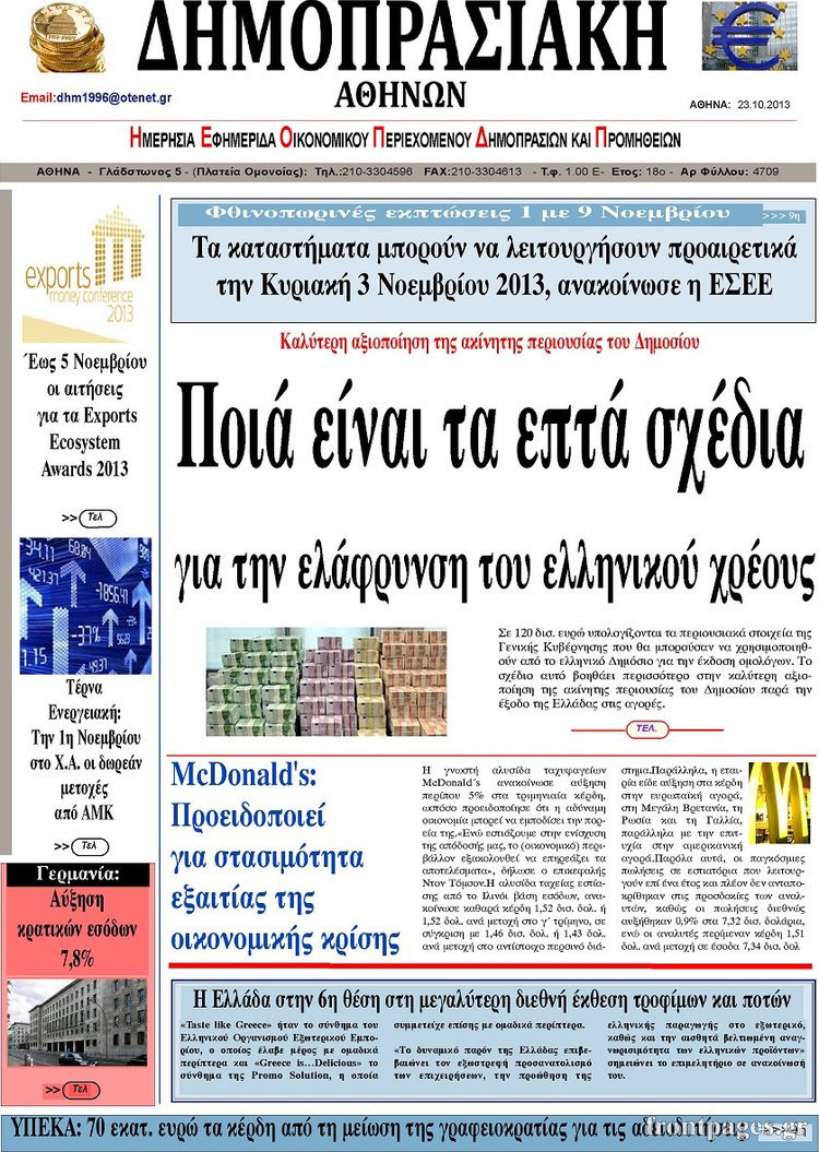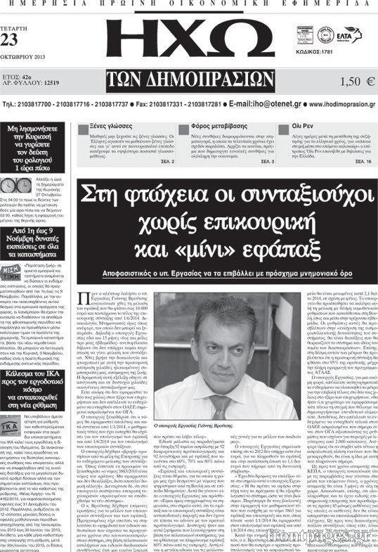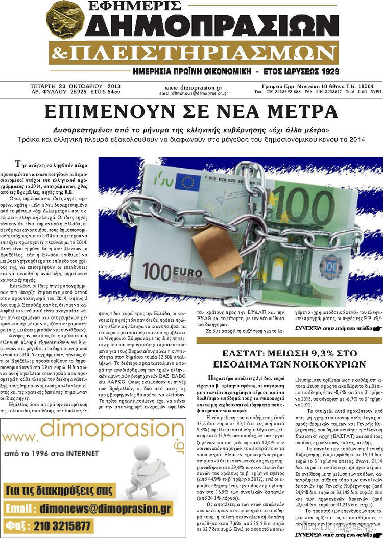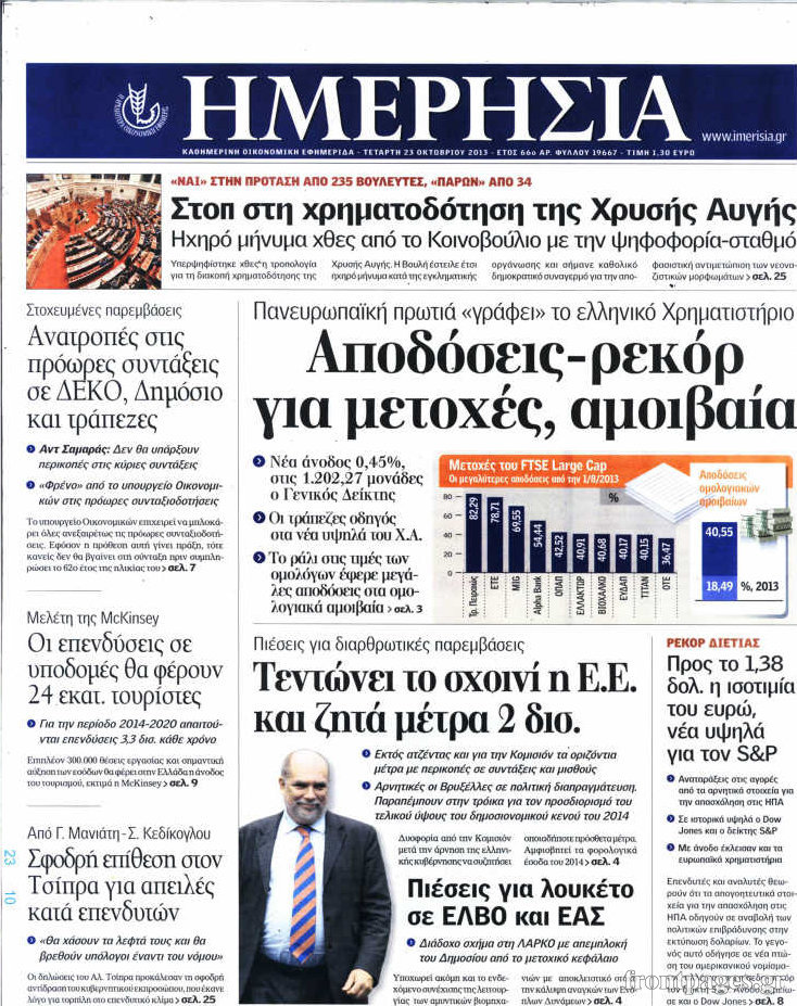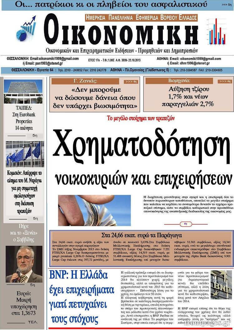 Οι oικονομικές εφημερίδες Enikos Newsroom 08:49, Τετάρτη 23 Οκτωβρίου 2013 Media Οι oικονομικές εφημερίδες Διαβάστε τα πρωτοσέλιδα των αθλητικών εφημερίδων: ΕΦΗΜΕΡΙΔΕΣ ΟΙΚΟΝΟΜΙΚΕΣ ΕΦΗΜΕΡΙΔΕΣ ΠΡΩΤΟΣΕΛΙΔΑ Μοιράσου το: σχολίασε κι εσύ (0 σχόλια) Ακολουθήστε το enikos.gr στο Google News και μάθετε πρώτοι όλες τις ειδήσεις Δείτε όλες τις τελευταίες ειδήσεις από την Ελλάδα και τον Κόσμο στο enikos.gr Ειδήσεις Ροή Ειδήσεων 1 ώρα πριν ΣΥΡΙΖΑ: Διαγράφεται ο ευρωβουλευτής Νίκος Παππάς μετά την μήνυση δημοσιογράφου για ξυλοδαρμό 19 λεπτά πριν Τουρκία: Επιδιώκει την επιστροφή των S-400 στη Ρωσία – Οι αμερικανικές πιέσεις 29 λεπτά πριν ΟΠΕΚΕΠΕ: Ελεύθερες με όρους η σύζυγος και η αδελφή του φερόμενου αρχηγού – Τι υποστήριξαν 2 ώρες πριν Πώς στήθηκε η επιχείρηση «Ίπαλλος» που οδήγησε στη σύλληψη του «Έλληνα Εσκομπάρ» – «Ο πόλεμος ενάντια στους εμπόρους ναρκωτικών θα συνεχιστεί» 3 ώρες πριν Κυψέλη: Στη φυλακή η 16χρονη που μαχαίρωσε συμμαθήτριά της 3 ώρες πριν Τα 3 ζώδια που θα δουν τη ζωή τους να αλλάζει ριζικά το 2026 – «Όλα γίνονται καλύτερα σταδιακά» 8 ώρες πριν «Δεν είχα κλάψει από τότε που διαγνώστηκα με καρκίνο, ώσπου ένα τηλεφώνημα με έκανε να λυγίσω» – Η συγκλονιστική εξομολόγηση ενός άνδρα 4 ώρες πριν Ο σπάνιος σεισμός που έλυσε τα χέρια των επιστημόνων – Αποκάλυψε ακριβώς όσα αναζητούσαν 9 ώρες πριν 20 χρόνια τα Χριστούγεννα ξεκινούν στα Public με μεγάλη ποικιλία σε δώρα! 4 λεπτά πριν Διπλωματικές πηγές: Το πρώτο τρίμηνο του 2026 το Ανώτατο Συμβούλιο Συνεργασίας Ελλάδας-Τουρκίας 8 λεπτά πριν ΟΠΕΚΕΠΕ – ΕΛΓΑ: Ολοκληρώθηκαν πληρωμές 487,9 εκατ. ευρώ – Θα καταβληθούν ακόμα 600 εκατ. έως τις 31 Δεκεμβρίου 13 λεπτά πριν Γκίλφοϊλ για την επιχείρηση «Ίπαλλος»: Μια σημαντική νίκη στον συνεχιζόμενο αγώνα κατά του εμπορίου ναρκωτικών – Βαθιά ευγνώμων ο Τραμπ 19 λεπτά πριν Τουρκία: Επιδιώκει την επιστροφή των S-400 στη Ρωσία – Οι αμερικανικές πιέσεις 24 λεπτά πριν Στις Βρυξέλλες ο Κυριάκος Μητσοτάκης για τη Σύνοδο Κορυφής ΕΕ-Δυτικών Βαλκανίων και τη συνεδρίαση του Ευρωπαϊκού Συμβουλίου ENIKOS NETWORK Γιατί αναζητούμε τα Χριστούγεννα όλο και νωρίτερα; Ποιοι οι ψυχολογικοί και οι συναισθηματικοί λόγοι Σοβαροί κίνδυνοι από τη λάθος χορήγηση φαρμάκου για τις αιμορραγίες-Συστάσεις προς τους γιατρούς Έρχεται νέα ενίσχυση 17.500 ευρώ από τη ΔΥΠΑ για ανέργους- Όλες οι λεπτομέρειες «Αναταράξεις» στην εφοδιαστική αλυσίδα από τα μπλόκα: Επιστολή του Συνδέσμου Θεσσαλικών Βιομηχανιών στον πρωθυπουργό -Τι αν... Χαρτογραφώντας το «σημείο χωρίς επιστροφή»: Για πρώτη φορά αποκαλύπτεται με λεπτομέρεια το ακανθώδες όριο της ατμόσφαιρας τ... Η Google καταργεί τη λειτουργία «dark web report» – Πώς θα μπορούν οι χρήστες να διαγράφουν τα δεδομένα τους περισσότερα 12:35 , Τετάρτη 17 Δεκεμβρίου 2025 Μίρκα Παπακωνσταντίνου: «Δεν ήμουν αισιόδοξη για τα νούμερα – Είμαι ρεαλίστρια» Στα γυρίσματα του εορταστικού επεισοδίου της αγαπημένης σειράς “Το Σόι Σου”, βρέθηκε η κάμερα ... 12:12 , Τετάρτη 17 Δεκεμβρίου 2025 Ακούστε την εκπομπή του Νίκου Χατζηνικολάου 17/12/2025 Ακούστε την εκπομπή του Νίκου Χατζηνικολάου στον ραδιοφωνικό σταθμό RealFm 97,8, την Τετάρτη 1... 11:35 , Τετάρτη 17 Δεκεμβρίου 2025 Home Alone: Το σπίτι της ταινίας θα ανακαινιστεί – Επιστροφή στην αισθητική της δεκαετίας του ’90 Οι νέοι ιδιοκτήτες του πραγματικού σπιτιού που παρουσιάζεται στην κλασική ταινία του 1990 «Hom... 11:25 , Τετάρτη 17 Δεκεμβρίου 2025 Grand Hotel: Απόψε το τελευταίο επεισόδιο της χρονιάς – Όλα τα 