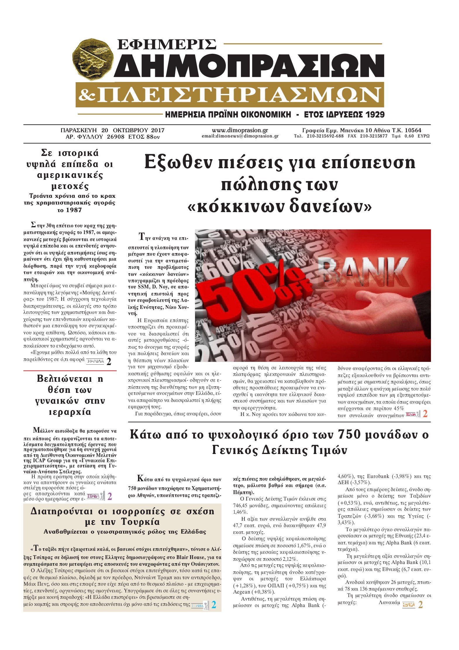 Οι οικονομικές εφημερίδες 20/10/2017 Enikos Newsroom 07:05, Παρασκευή 20 Οκτωβρίου 2017 Media Διαβάστε τα σημερινά πρωτοσέλιδα των οικονομικών εφημερίδων: ΟΙΚΟΝΟΜΙΚΕΣ ΕΦΗΜΕΡΙΔΕΣ ΠΡΩΤΟΣΕΛΙΔΟ Μοιράσου το: σχολίασε κι εσύ (0 σχόλια) Ακολουθήστε το enikos.gr στο Google News και μάθετε πρώτοι όλες τις ειδήσεις Δείτε όλες τις τελευταίες ειδήσεις από την Ελλάδα και τον Κόσμο στο enikos.gr Ειδήσεις Ροή Ειδήσεων 4 ώρες πριν Ανυποχώρητοι οι αγρότες: Δεν πάνε στο Μαξίμου, κλιμακώνουν τις κινητοποιήσεις – Ποια είναι τα αιτήματά τους 1 ώρα πριν ΗΠΑ: Τουλάχιστον δύο νεκροί και αρκετοί τραυματίες ύστερα από ένοπλη επίθεση στο Πανεπιστήμιο Μπράουν 3 ώρες πριν ΟΠΕΚΕΠΕ-Κρήτη: Πώς δρούσε το κύκλωμα με τις παράνομες επιδοτήσεις – Τα ΚΥΔ, οι ψευδείς αιτήσεις και τα… «βράχια της Νορμανδίας» 3 ώρες πριν Διατλαντικό ρήγμα: Οι σχέσεις ΗΠΑ – Ευρώπης επιδεινώνονται λόγω του νέου δόγματος Τραμπ και της πίεσης που ασκεί στην Ουκρανία 4 ώρες πριν Διπλό φονικό στη Φοινικούντα: Δύο νέα πρόσωπα στο «κάδρο» των ερευνών – Οι αντιφάσεις στις καταθέσεις του ανιψιού 4 ώρες πριν Εκπληκτική ανακάλυψη σε αρχαία ελληνική πόλη: Βρέθηκε γυναικείο κεφάλι αγάλματος και οι αρχαιολόγοι εκτιμούν ότι μπορεί να συνδέεται με τη θεά Εστία 5 ώρες πριν Ύπνος: 9 πράγματα που μπορείτε να κάνετε πριν κοιμηθείτε για να ξυπνάτε πιο χαρούμενοι το πρωί, σύμφωνα με ειδικούς 6 ώρες πριν Αριθμολογία: Οι άνθρωποι που έχουν γεννηθεί αυτές τις 4 ημερομηνίες, δεν αντέχουν να κάνουν μία κλασική δουλειά γραφείου 7 ώρες πριν Χριστουγεννιάτικο δέντρο: Το έξυπνο κόλπο με τα στολίδια για να φαίνεται πιο γεμάτο 12 λεπτά πριν Συρία: Η Δαμασκός καταδικάζει την «τρομοκρατική» επίθεση που σκότωσε Αμερικανούς στρατιώτες στη Συρία 27 λεπτά πριν Λευτέρης Πετρούνιας: «Δεν μπορείς να φορτώνεις ένα εξάχρονο με τέτοιο βάρος, σε μένα μπορείς να πεις ό,τι θέλεις» 43 λεπτά πριν Βολοντίμιρ Ζελένσκι: Συναντήσεις με Αμερικανούς και Ευρωπαίους αντιπροσώπους στο Βερολίνο 58 λεπτά πριν Γιώργος Βαγιαννίδης: Δύο ασίστ από τον Έλληνα αμυντικό στη νίκη της «εξάσφαιρης» Σπόρτινγκ – Δείτε βίντεο 1 ώρα πριν ΗΠΑ: Τουλάχιστον δύο νεκροί και αρκετοί τραυματίες ύστερα από ένοπλη επίθεση στο Πανεπιστήμιο Μπράουν ENIKOS NETWORK «Με αυτόν τον τρόπο κατάφερα να απογειώσω τη σεξουαλική μου ζωή» – Τι αποκαλύπτει 40χρονη Πείτε «τέλος» στην ακμή χωρίς φάρμακα – Ειδικός αποκαλύπτει αποτελεσματική ρουτίνα περιποίησης Νέα εποχή για την Εγνατία Οδό – Τι αλλάζει με επενδύσεις 1,8 δισ. ευρώ Στάση εργασίας στα λεωφορεία την Τετάρτη 17 Δεκεμβρίου – Κανονικά τα περιαστικά δρομολόγια Σύγχρονος Νοστράδαμος: Προειδοποιεί για «μεγάλο γεγονός» τους επόμενους μήνες που θα συγκλονίσει τη Βρετανία και τον κόσμο Τεστ παρατηρητικότητας: Μπορείτε να βρείτε τις 3 διαφορές στις εικόνες με έναν πιγκουίνο σε 14 δευτερόλεπτα περισσότερα 22:56 , Σάββατο 13 Δεκεμβρίου 2025 «Το παιδί»: Η Άρτεμις κάνει μια μακάβρια ανακάλυψη – Τι θα δούμε στα επόμενα επεισόδια Μη χάσετε τις εξελίξεις στα νέα επεισόδια της μαύρης κοινωνικής κωμωδίας «Το παιδί», στην ΕΡΤ1... 22:16 , Σάββατο 13 Δεκεμβρίου 2025 Άγιος έρωτας- επόμενα επεισόδια: Ο Αντρέας μαθαίνει ότι ο Χάρης είναι γιος του Μια εβδομάδα γεμάτη καταιγιστικές εξελίξεις στα νέα επεισόδια της σειράς “Άγιος Έρωτας... 20:40 , Σάββατο 13 Δεκεμβρίου 2025 HOTΕΛ ΕΛVIRA: Η Ελβίρα προσπαθεί να βγάλει οριστικά από το μυαλό της τον Χάρι, απόψε στις 21:00 Σε προεκλογικό πυρετό βρίσκεται το νησί, στο νέο ε