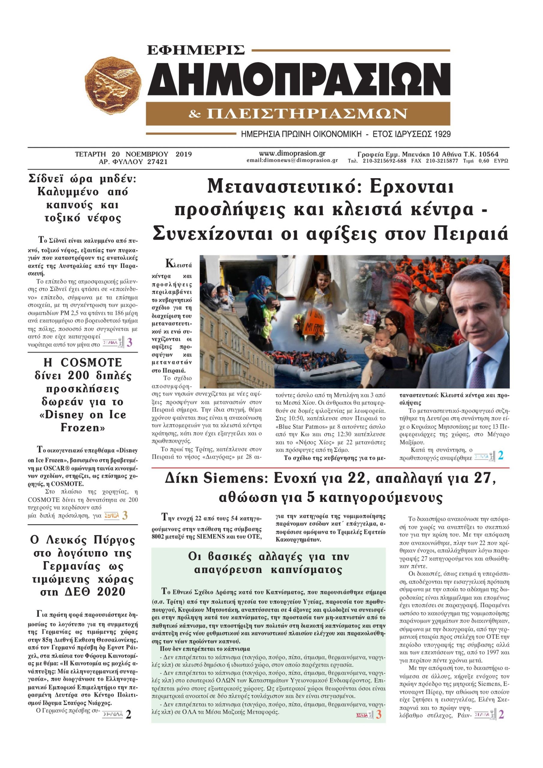 Οι οικονομικές εφημερίδες 20/11/19 Διονύσης Νίκκας 06:44, Τετάρτη 20 Νοεμβρίου 2019 Media Διαβάστε τα πρωτοσέλιδα των οικονομικών εφημερίδων… ΕΦΗΜΕΡΙΔΕΣ ΟΙΚΟΝΟΜΙΚΕΣ Μοιράσου το: σχολίασε κι εσύ (0 σχόλια) Ακολουθήστε το enikos.gr στο Google News και μάθετε πρώτοι όλες τις ειδήσεις Δείτε όλες τις τελευταίες ειδήσεις από την Ελλάδα και τον Κόσμο στο enikos.gr Ειδήσεις Ροή Ειδήσεων 2 ώρες πριν Μητσοτάκης για αγρότες: Ελπίζω πως θα απομακρυνθούν σύντομα από τα μπλόκα 3 ώρες πριν Έρευνα MRB: Η πρόθεση ψήφου και τα σημαντικότερα προβλήματα – Οι «λέξεις» που εκφράζουν τους πολίτες 14 λεπτά πριν Αμοργός: «Θα προσπαθήσω να το κάνω κάθε μέρα» – Ποιος είναι ο αγρότης που έστησε μόνος του το πρώτο μπλόκο στο νησί 50 λεπτά πριν Μισέλ Ομπάμα: Εμφανώς αδυνατισμένη στην εκπομπή του Τζίμι Κίμελ – Οι φήμες για τη χρήση Ozempic και η «φιλία» της με τον Ρομπ Ράινερ 45 λεπτά πριν Αγρότες: Επ’ αόριστον μπλόκο στον σταθμό στον Προμαχώνα για τα φορτηγά – Κλείνει το ρεύμα εισόδου στα Μάλγαρα 3 ώρες πριν Τα 4 ζώδια που ξαναβρίσκουν τον εαυτό τους – «Μπαίνετε επιτέλους στην ουσία των πραγμάτων» 4 ώρες πριν 20 χρόνια τα Χριστούγεννα ξεκινούν στα Public με μεγάλη ποικιλία σε δώρα! 3 ώρες πριν «Δεν είχα κλάψει από τότε που διαγνώστηκα με καρκίνο, ώσπου ένα τηλεφώνημα με έκανε να λυγίσω» – Η συγκλονιστική εξομολόγηση ενός άνδρα 2 ώρες πριν Τα 7 σπάνια χαρακτηριστικά που κάνουν κάποιους ανθρώπους ακαταμάχητους 1 λεπτό πριν Λάκης Γαβαλάς, Σουζάνα Κεγγίτση και Έλενα Γαλύφα μας περιμένουν σήμερα στο πιο stylish Χριστουγεννιάτικο ραντεβού στο Athens Metro Mall – Το Madwalk Gifting Lounge by ΣΚΡΑΤΣ επιστρέφει σήμερα από τις 14:00 έως τις 18:30 7 λεπτά πριν Αγρίνιο: Συνελήφθη μαθητής που απείλησε τον διευθυντή και εκπαιδευτικούς – Χειροπέδες και στη μητέρα του 12 λεπτά πριν Bloomberg: Οι ΗΠΑ ετοιμάζουν νέες κυρώσεις σε βάρος της Ρωσίας εάν ο Πούτιν απορρίψει μια ειρηνευτική συμφωνία 14 λεπτά πριν Αμοργός: «Θα προσπαθήσω να το κάνω κάθε μέρα» – Ποιος είναι ο αγρότης που έστησε μόνος του το πρώτο μπλόκο στο νησί 18 λεπτά πριν Βίντεο: Με γερανό απομακρύνθηκε αυτοκίνητο στο Μαρούσι – Η οδηγός… είχε αργήσει σε ραντεβού ENIKOS NETWORK Ανησυχητική αύξηση της υπέρτασης στα παιδιά – Πώς θα τα προστατέψουμε; Αδενώματα Υπόφυσης: Μια πάθηση καλοήθης, αλλά όχι αθώα Διεθνής Οργανισμός Ενέργειας (ΔΟΕ, IEA): Τι δείχνουν τα νέα στοιχεία για την παγκόσμια κατανάλωση άνθρακα Διευκρινίσεις από το ΥΠΑΑΤ και τον ΟΠΕΚΕΠΕ για την εξόφληση της βασικής ενίσχυσης στους αγρότες Σύγχρονος Νοστράδαμος: Προειδοποιεί για «μεγάλο γεγονός» τους επόμενους μήνες που θα συγκλονίσει τη Βρετανία και τον κόσμο Τεστ παρατηρητικότητας: Μπορείτε να βρείτε τις 3 διαφορές στις εικόνες με έναν πιγκουίνο σε 14 δευτερόλεπτα περισσότερα 12:35 , Τετάρτη 17 Δεκεμβρίου 2025 Μίρκα Παπακωνσταντίνου: «Δεν ήμουν αισιόδοξη για τα νούμερα – Είμαι ρεαλίστρια» Στα γυρίσματα του εορταστικού επεισοδίου της αγαπημένης σειράς “Το Σόι Σου”, βρέθηκε η κάμερα ... 12:12 , Τετάρτη 17 Δεκεμβρίου 2025 Ακούστε την εκπομπή του Νίκου Χατζηνικολάου 17/12/2025 Ακούστε την εκπομπή του Νίκου Χατζηνικολάου στον ραδιοφωνικό σταθμό RealFm 97,8, την Τετάρτη 1... 11:35 , Τετάρτη 17 Δεκεμβρίου 2025 Home Alone: Το σπίτι της ταινίας θα ανακαινιστεί – Επιστροφή στην αισθητική της δεκαετίας του ’90 Οι νέοι ιδιοκτήτες του πραγματικού σπιτιού που παρουσιάζεται στην κλασική ταινία του 1990 «Hom... 11:25 , Τετάρτη 17 Δεκεμβρίου 2025 Grand Hotel: Απόψε το τελευταίο επεισόδιο της χρο
