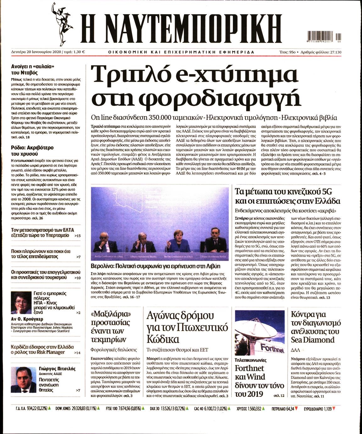 Οι οικονομικές εφημερίδες 20/1/2020 Κώστας Τεό 06:50, Δευτέρα 20 Ιανουαρίου 2020 Media Διαβάστε τα πρωτοσέλιδα των οικονομικών εφημερίδων: ΟΙΚΟΝΟΜΙΚΕΣ ΕΦΗΜΕΡΙΔΕΣ ΠΡΩΤΟΣΕΛΙΔΑ Μοιράσου το: σχολίασε κι εσύ (0 σχόλια) Ακολουθήστε το enikos.gr στο Google News και μάθετε πρώτοι όλες τις ειδήσεις Δείτε όλες τις τελευταίες ειδήσεις από την Ελλάδα και τον Κόσμο στο enikos.gr Ειδήσεις Ροή Ειδήσεων 7 ώρες πριν Χριστούγεννα στα μπλόκα: Επιμένουν στις κινητοποιήσεις τους οι αγρότες – Ανοίγουν τα διόδια το Σαββατοκύριακο 7 ώρες πριν Ουκρανία: Η άνευ προηγουμένου επίθεση σε ρωσικό τάνκερ στη Μεσόγειο και το μήνυμα προς στον Πούτιν – Το «μακρύ χέρι» του Κιέβου 7 ώρες πριν Πούτιν: Τα μηνύματα σε Ευρώπη και ΝΑΤΟ από το μαραθώνιο «σόου» του – Η απαίτηση για «σεβασμό» και η ειρήνη «με τους όρους» της Μόσχας 7 ώρες πριν Τραμπ: Δεν αποκλείει την πιθανότητα ενός πολέμου στη Βενεζουέλα – «Ο Μαδούρο ξέρει καλύτερα από τον καθένα τι ακριβώς θέλω» 8 ώρες πριν Συνεχίζει να προκαλεί ο Μίτσκοσκι: «Για μένα το όνομα Μακεδονία είναι ιερό» 7 ώρες πριν Ανακαλύφθηκαν αρχαία χρυσά νομίσματα 2.200 ετών που απεικονίζουν τον θεό Απόλλωνα – Η άγνωστη σύνδεση με τον Φίλιππο Β΄ της Μακεδονίας 8 ώρες πριν Ύπνος: Μια κρυφή κατάσταση του εγκεφάλου πριν από τον ύπνο μπορεί να είναι το “κλειδί” για υψηλή ευφυΐα και δημιουργικότητα 9 ώρες πριν Αριθμολογία: Οι άνθρωποι που έχουν γεννηθεί αυτές τις 4 ημερομηνίες, συχνά παρεξηγούνται – «Η καλοσύνη τους κρύβει τεράστια δύναμη» 10 ώρες πριν Ξεχάστε το καθάρισμα το Σαββατοκύριακο: Ο «κανόνας των 20 λεπτών» που θα σας λύσει τα χέρια 4 λεπτά πριν Τα ζώδια σήμερα, Σάββατο 20 Δεκεμβρίου: Παρθένοι, το σύμπαν σας δίνει το κλειδί 9 λεπτά πριν Παιανία: Δυο αυτοκίνητα τυλίχτηκαν στις φλόγες – Συναγερμός στην Πυροσβεστική 12 λεπτά πριν Εφημερεύοντα φαρμακεία σε Αθήνα και Θεσσαλονίκη (20/12) 19 λεπτά πριν Γιώργος Μπαρτζώκας: «Για εμένα σημαίνει πάρα πολλά να ακούω το όνομά μου από τον κόσμο του Ολυμπιακού» 28 λεπτά πριν ΟΗΕ: Το Συμβούλιο Ασφαλείας παρατείνει για έναν χρόνο την εντολή της ειρηνευτικής δύναμης στο Κονγκό ENIKOS NETWORK Το ΕΚΑΒ τιμήθηκε από την Ακαδημία Αθηνών για τα 40 χρόνια προσφοράς του Έχετε πραγματικά μεγάλη καρδιά; 10 χαρακτηριστικά όσων έχουν καλοσύνη Αναστολή μέτρων αναγκαστικής εκτέλεσης για κτηνοτρόφους που πλήττονται από την ευλογιά των αιγοπροβάτων Πλήρης επάρκεια προϊόντων στις λαϊκές της Αττικής, παρά τις αγροτικές κινητοποιήσεις – Τι απαντούν οι πωλητές Χαρτογραφώντας το «σημείο χωρίς επιστροφή»: Για πρώτη φορά αποκαλύπτεται με λεπτομέρεια το ακανθώδες όριο της ατμόσφαιρας τ... Η Google καταργεί τη λειτουργία «dark web report» – Πώς θα μπορούν οι χρήστες να διαγράφουν τα δεδομένα τους περισσότερα 04:20 , Σάββατο 20 Δεκεμβρίου 2025 Αγγελική Νικολούλη: Τα συλλυπητήρια για την απώλεια της Ειρήνης Μαρινάκη Τα συλληπητήρια στον πρόεδρο του Mega, τον Βαγγέλη Μαρινάκη, για την απώλεια της μητέρας του Ε... 02:50 , Σάββατο 20 Δεκεμβρίου 2025 GNTM: Η Ξένια Τσίρκοβα αναδείχθηκε μεγάλη νικήτρια και πήρε τις 50.000 ευρώ – Ποιος βρέθηκε σε απόσταση αναπνοής; Με φαντασμαγορικό τρόπο ολοκληρώθηκε το βράδυ της Παρασκευής ο μεγάλος τελικός του GNTM, μέσα ... 22:42 , Παρασκευή 19 Δεκεμβρίου 2025 Γιώργος Γιαννόπουλος για “Το σόι σου”: “Είναι ευτυχία και ευλογία αυτή η σειρά” «Είναι ευτυχία και ευλογία η συγκυρία αυτής της σειράς», θα πει ο Γιώργος Γιαννόπουλος -ο αγαπ... 20:37 , Παρασκευή 19 Δεκεμβρίου 2025 Don’t Forget The Ly