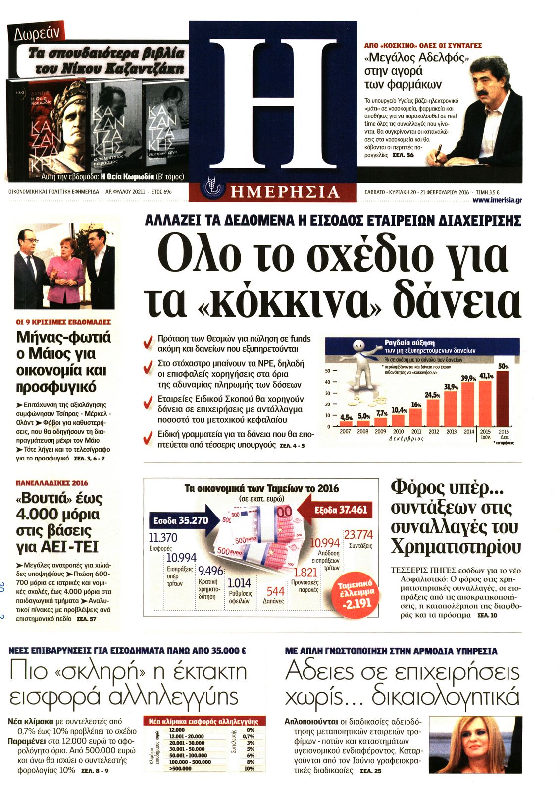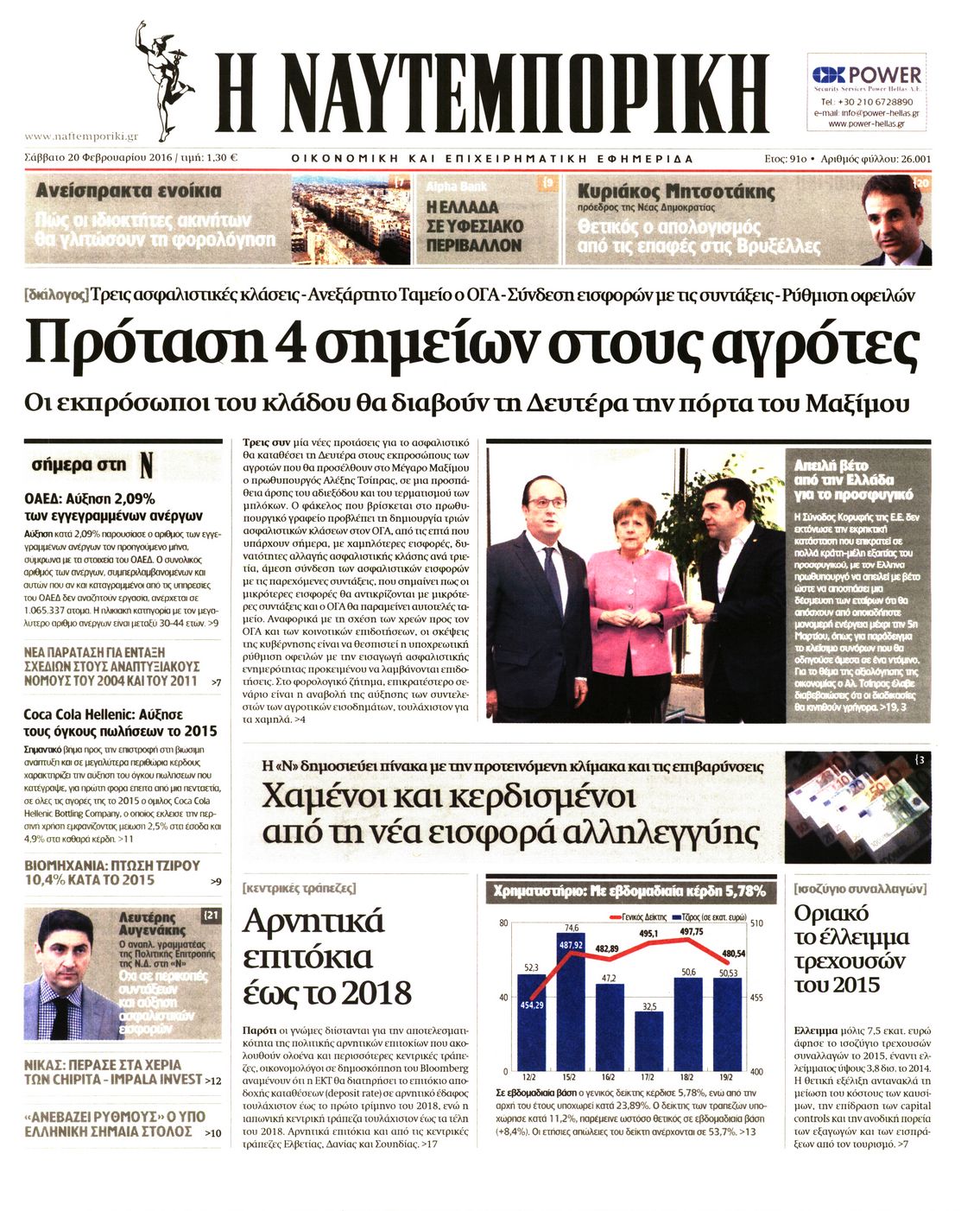 Οι οικονομικές εφημερίδες 20/2/2016 Enikos Newsroom 05:55, Σάββατο 20 Φεβρουαρίου 2016 Media Διαβάστε τα σημερινά πρωτοσέλιδα των οικονομικών εφημερίδων: ΟΙΚΟΝΟΜΙΚΕΣ ΕΦΗΜΕΡΙΔΕΣ ΠΡΩΤΟΣΕΛΙΔΑ Μοιράσου το: σχολίασε κι εσύ (0 σχόλια) Ακολουθήστε το enikos.gr στο Google News και μάθετε πρώτοι όλες τις ειδήσεις Δείτε όλες τις τελευταίες ειδήσεις από την Ελλάδα και τον Κόσμο στο enikos.gr Ειδήσεις Ροή Ειδήσεων 2 ώρες πριν Πούτιν: «Ανοησίες» και «υστερίες» οι ισχυρισμοί της Ευρώπης για πιθανή σύγκρουση με τη Ρωσία – «Κάνουν πλύση εγκεφάλου» 6 ώρες πριν Έρευνα MRB: Η πρόθεση ψήφου και τα σημαντικότερα προβλήματα – Οι «λέξεις» που εκφράζουν τους πολίτες 3 ώρες πριν Αμοργός: «Θα προσπαθήσω να το κάνω κάθε μέρα» – Ποιος είναι ο αγρότης που έστησε μόνος του το πρώτο μπλόκο στο νησί 42 λεπτά πριν Τραγωδία στην Αλεξανδρούπολη: Παιδάκι 3 ετών μεταφέρθηκε νεκρό από τη μητέρα του στο νοσοκομείο 1 ώρα πριν Συνάντηση Μητσοτάκη με την Κ.Ο. της ΝΔ: Οι αφίξεις των βουλευτών, τα γλυκά και τα «πηγαδάκια» 5 ώρες πριν Τα 4 ζώδια που ξαναβρίσκουν τον εαυτό τους – «Μπαίνετε επιτέλους στην ουσία των πραγμάτων» 7 ώρες πριν 20 χρόνια τα Χριστούγεννα ξεκινούν στα Public με μεγάλη ποικιλία σε δώρα! 5 ώρες πριν «Δεν είχα κλάψει από τότε που διαγνώστηκα με καρκίνο, ώσπου ένα τηλεφώνημα με έκανε να λυγίσω» – Η συγκλονιστική εξομολόγηση ενός άνδρα 4 ώρες πριν Τα 7 σπάνια χαρακτηριστικά που κάνουν κάποιους ανθρώπους ακαταμάχητους 3 λεπτά πριν Εξαφάνιση 33χρονου γιατρού στην Κρήτη: Για απάτη κατηγορείται ο ιδιωτικός ερευνητής που συνελήφθη 9 λεπτά πριν Εξεταστική για ΟΠΕΚΕΠΕ-Μυλωνάκης: Διαχρονικές, διακομματικές οι παθογένειες – Τι είπε για Μπουκώρο και Βάρρα 14 λεπτά πριν Παναθηναϊκός: Θέλει τον Κέπα της Άρσεναλ δανεικό για 6 μήνες 20 λεπτά πριν Το Λαϊκό Λαχείο στον ρυθμό των Χριστουγέννων: Μοιράζει μέχρι και 1.000.000 ευρώ στην ειδική κλήρωση της Παρασκευής 19 Δεκεμβρίου 24 λεπτά πριν Πετράλωνα: Εξαφανίστηκε 13χρονος από χώρο φιλοξενίας ασυνόδευτων ανηλίκων ENIKOS NETWORK 5 πράγματα που αποφεύγει γαστρεντερολόγος για να μειώσει τον κίνδυνο καρκίνου του εντέρου Ανησυχητική αύξηση της υπέρτασης στα παιδιά – Πώς θα τα προστατέψουμε; ΕΛΕΤΑΕΝ: Πόσα χρήματα θα δοθούν σε δήμους και νοικοκυριά από τις ΑΠΕ «IRIS Παντού»: Στην κορυφή της Ευρώπης η Ελλάδα με 120 εκατ. ευρώ συναλλαγές το 2025 – Η σύγκριση με τις άλλες χώρες της Ευ... Σύγχρονος Νοστράδαμος: Προειδοποιεί για «μεγάλο γεγονός» τους επόμενους μήνες που θα συγκλονίσει τη Βρετανία και τον κόσμο Τεστ παρατηρητικότητας: Μπορείτε να βρείτε τις 3 διαφορές στις εικόνες με έναν πιγκουίνο σε 14 δευτερόλεπτα περισσότερα 12:35 , Τετάρτη 17 Δεκεμβρίου 2025 Μίρκα Παπακωνσταντίνου: «Δεν ήμουν αισιόδοξη για τα νούμερα – Είμαι ρεαλίστρια» Στα γυρίσματα του εορταστικού επεισοδίου της αγαπημένης σειράς “Το Σόι Σου”, βρέθηκε η κάμερα ... 12:12 , Τετάρτη 17 Δεκεμβρίου 2025 Ακούστε την εκπομπή του Νίκου Χατζηνικολάου 17/12/2025 Ακούστε την εκπομπή του Νίκου Χατζηνικολάου στον ραδιοφωνικό σταθμό RealFm 97,8, την Τετάρτη 1... 11:35 , Τετάρτη 17 Δεκεμβρίου 2025 Home Alone: Το σπίτι της ταινίας θα ανακαινιστεί – Επιστροφή στην αισθητική της δεκαετίας του ’90 Οι νέοι ιδιοκτήτες του πραγματικού σπιτιού που παρουσιάζεται στην κλασική ταινία του 1990 «Hom... 11:25 , Τετάρτη 17 Δεκεμβρίου 2025 Grand Hotel: Απόψε το τελευταίο επεισόδιο της χρονιάς – Όλα τα μυστικά μένουν εδώ Το τελευταίο επεισόδιο της χρονιάς της σειράς «Grand Hotel» θα προβληθεί απόψε στις 21:00. Ο 