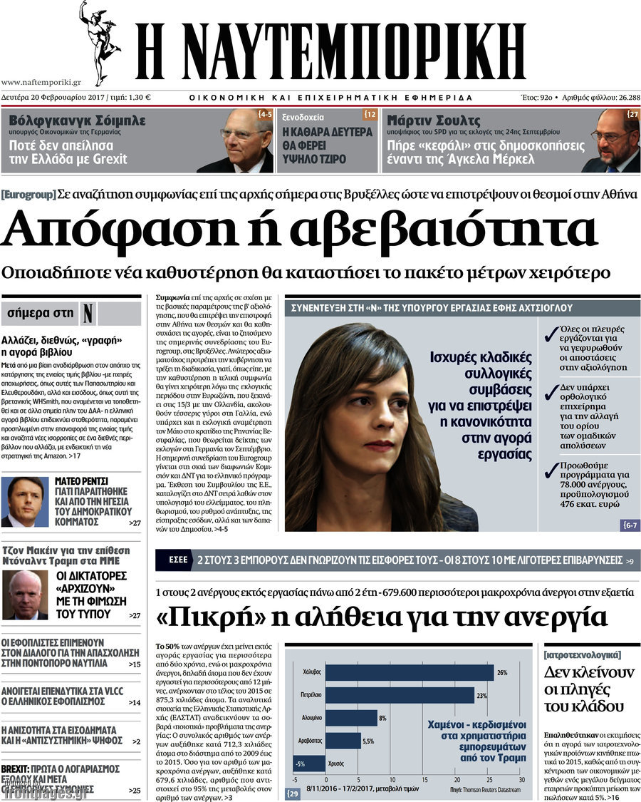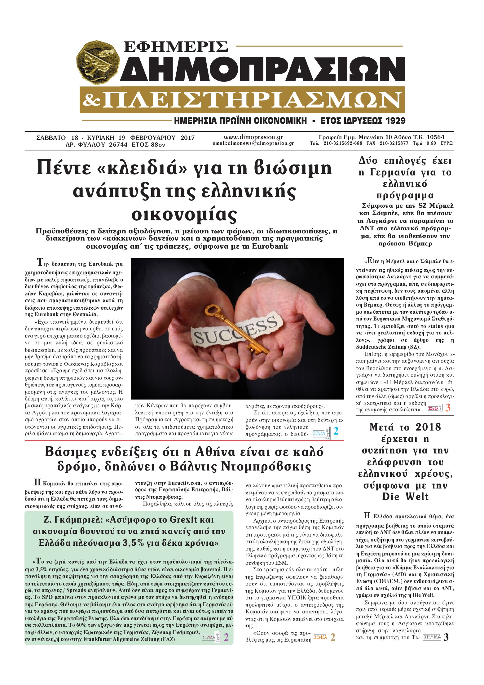 Οι οικονομικές εφημερίδες 20/2/2017 Enikos Newsroom 08:09, Δευτέρα 20 Φεβρουαρίου 2017 Media Διαβάστε τα σημερινά πρωτοσέλιδα των οικονομικών εφημερίδων. ΕΞΩΦΥΛΛΑ ΕΦΗΜΕΡΙΔΕΣ ΟΙΚΟΝΟΜΙΚΕΣ ΟΙΚΟΝΟΜΙΚΕΣ ΕΦΗΜΕΡΙΔΕΣ ΠΡΩΤΟΣΕΛΙΔΑ Μοιράσου το: σχολίασε κι εσύ (0 σχόλια) Ακολουθήστε το enikos.gr στο Google News και μάθετε πρώτοι όλες τις ειδήσεις Δείτε όλες τις τελευταίες ειδήσεις από την Ελλάδα και τον Κόσμο στο enikos.gr Ειδήσεις Ροή Ειδήσεων 1 ώρα πριν Μακελειό στο Σίδνεϊ: Πατέρας και γιος οι δράστες της τρομοκρατικής επίθεσης – Γιατί η Αυστραλία βάζει στο στόχαστρο το Ιράν 2 ώρες πριν Μακελειό στην Αυστραλία: «Πέρασαν οι σφαίρες πάνω από το αυτοκίνητο» – Συγκλονίζει η μαρτυρία Έλληνα που ζει στο Σίδνεϊ 12 λεπτά πριν Όλα τα αιτήματα αγροτών, κτηνοτρόφων και μελισσοκόμων προς την κυβέρνηση – Παραμένουν στα μπλόκα και προαναγγέλλουν κλιμάκωση 5 ώρες πριν Τραγική εξέλιξη στο Αίγιο: Πέθανε ο 43χρονος που γρονθοκόπησε γιατρό στο νοσοκομείο 3 ώρες πριν Λακωνία: Βίντεο ντοκουμέντο από την επιχείρηση διάσωσης της 13χρονης που έπεσε σε πηγάδι – Ποια ήταν τα πρώτα λόγια της 2 ώρες πριν Ύπνος: 5 λόγοι για τους οποίους ξυπνάτε κουρασμένοι το πρωί κατά τη διάρκεια του χειμώνα 5 ώρες πριν Οι 7 βραδινές συνήθειες που μαρτυρούν ότι κάποιος υποφέρει από βαθιά μοναξιά, σύμφωνα με την ψυχολογία 13 ώρες πριν Τα 8 πράγματα που τα ευτυχισμένα ζευγάρια δεν κάνουν ποτέ μπροστά στα παιδιά τους 4 ώρες πριν Κουζίνα: Η καθημερινή συνήθεια των ανθρώπων που την διατηρούν πάντα καθαρή 12 λεπτά πριν Όλα τα αιτήματα αγροτών, κτηνοτρόφων και μελισσοκόμων προς την κυβέρνηση – Παραμένουν στα μπλόκα και προαναγγέλλουν κλιμάκωση 15 λεπτά πριν Λέσβος: Εντυπωσιακή η άφιξη του Άγιου Βασίλη στην Καλλονή – Δείτε φωτογραφίες 30 λεπτά πριν Στιβ Γουίτκοφ: «Σημαντική πρόοδος» στις συνομιλίες Ουκρανίας – ΗΠΑ στο Βερολίνο 38 λεπτά πριν Super League: Στην κορυφή ο Ολυμπιακός, ακολουθεί σε… απόσταση αναπνοής η ΑΕΚ, έπεσε 3ος ο ΠΑΟΚ – Τα αποτελέσματα και η βαθμολογία 52 λεπτά πριν Σύγκρουση Φλωρίδη με Φάμελλο και Χαρίτση στη Βουλή ENIKOS NETWORK 8 κορυφαίες συμβουλές για άνδρες που θέλουν φλογερή σεξουαλική ζωή, σύμφωνα με ειδικό Baby botox: Ποια τα οφέλη και οι κίνδυνοι του να ξεκινήσει κάποιος τις ενέσεις πριν εμφανιστούν ρυτίδες Τέλος οι διώξεις για χρέη σε Εφορία και ΕΦΚΑ – Τι προβλέπει νέα διάταξη μετά την πτώχευση Υπουργείο Αγροτικής Ανάπτυξης: Ενισχύσεις de minimis ύψους 2,1 εκατ. ευρώ – Οι δικαιούχοι Σύγχρονος Νοστράδαμος: Προειδοποιεί για «μεγάλο γεγονός» τους επόμενους μήνες που θα συγκλονίσει τη Βρετανία και τον κόσμο Τεστ παρατηρητικότητας: Μπορείτε να βρείτε τις 3 διαφορές στις εικόνες με έναν πιγκουίνο σε 14 δευτερόλεπτα περισσότερα 21:34 , Κυριακή 14 Δεκεμβρίου 2025 Ο Δικαστής: Η Λέττα είναι αποφασισμένη να αποκαλύψει την αλήθεια για το τροχαίο, απόψε στις 21:45 στον ΑΝΤ1 Ραγδαίες οι εξελίξεις στο νέο επεισόδιο της σειράς “Ο Δικαστής” απόψε στις 21:45 σ... 17:38 , Κυριακή 14 Δεκεμβρίου 2025 Τηλεθέαση (13/12): Τα ποσοστά για το βράδυ του Σαββάτου Η «μάχη» της prime time για την τηλεθέαση, συνεχίστηκε δυναμικά το βράδυ του Σαββάτου (13/12).... 16:32 , Κυριακή 14 Δεκεμβρίου 2025 Τηλεθέαση (13/12): Πώς κινήθηκαν οι εκπομπές στην πρωινή ζώνη το Σάββατο Με αμείωτη ένταση συνεχίστηκε η μάχη για την τηλεθέαση στην πρωινή ζώνη των τηλεοπτικών καναλι... 15:07 , Κυριακή 14 Δεκεμβρίου 2025 IQ160: Η Μαρίνα στέλνει το φούτερ του Τηλέμαχου για το τεστ πατρότητας Η Πηνελόπη αποφασίζει να κάνει αμνιο