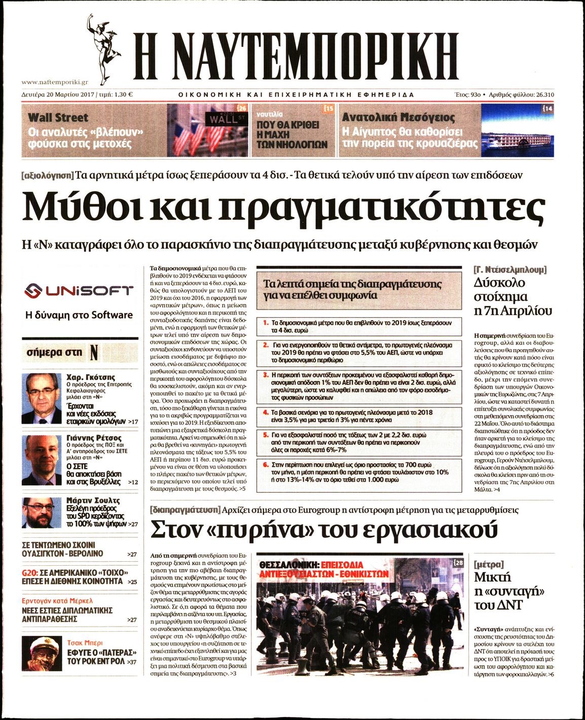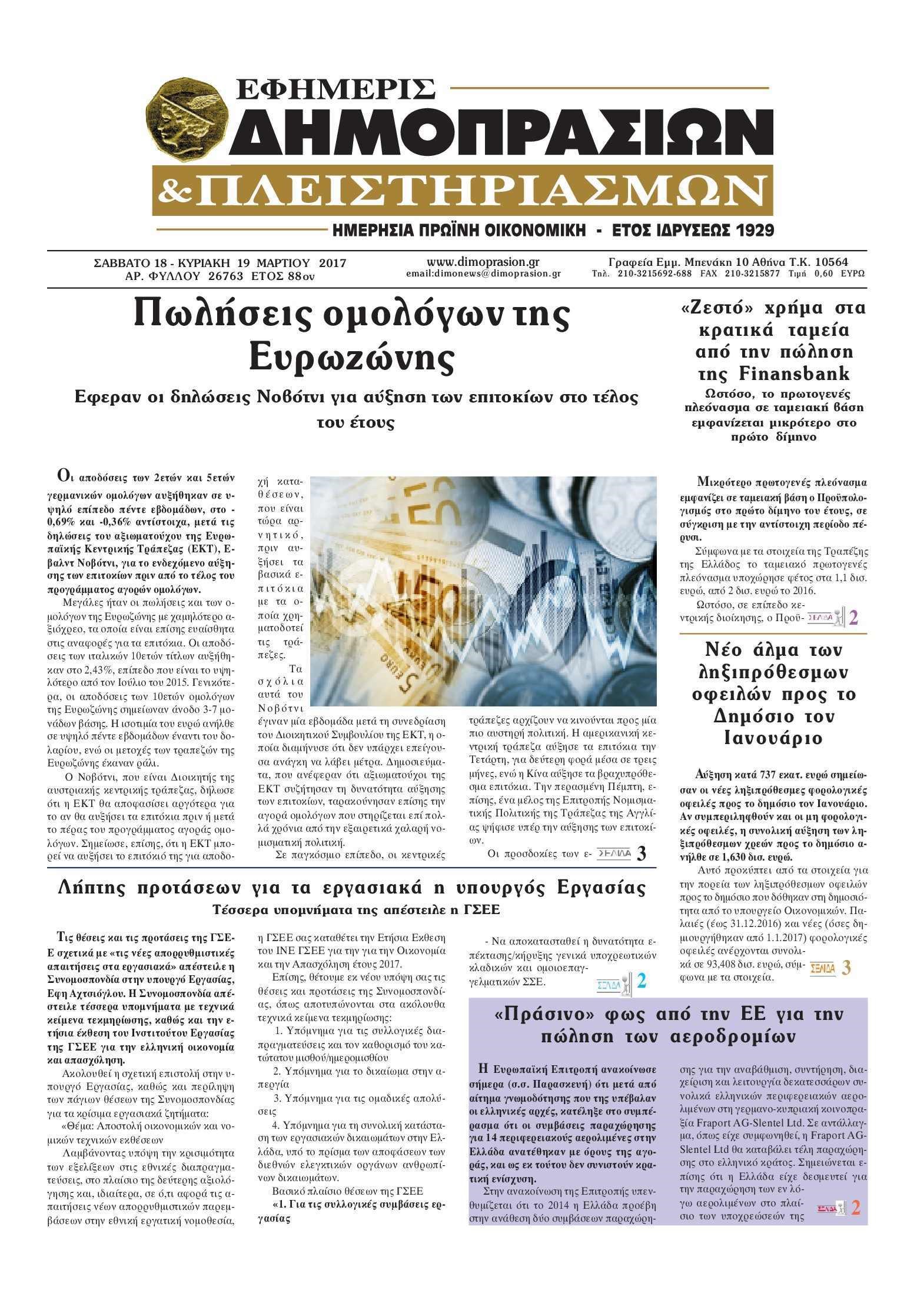 Οι οικονομικές εφημερίδες 20/3/2017
