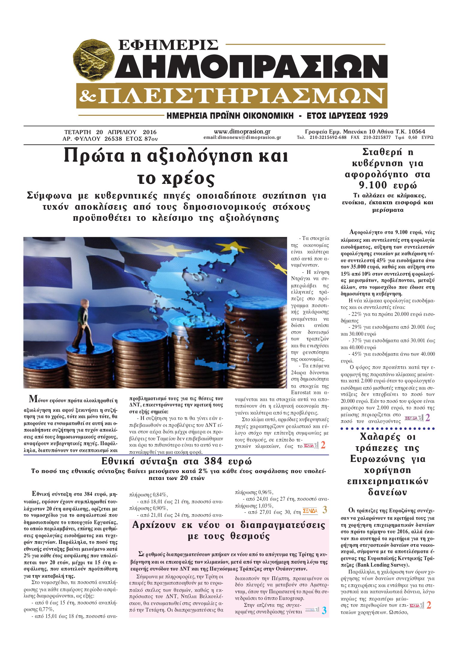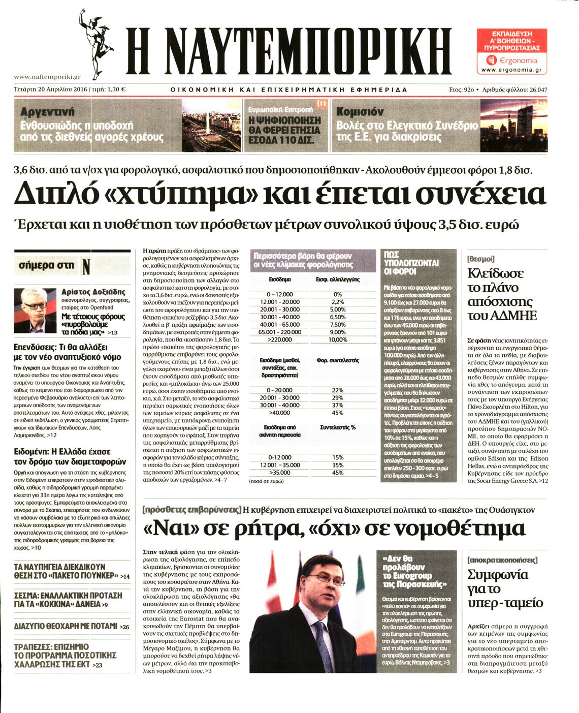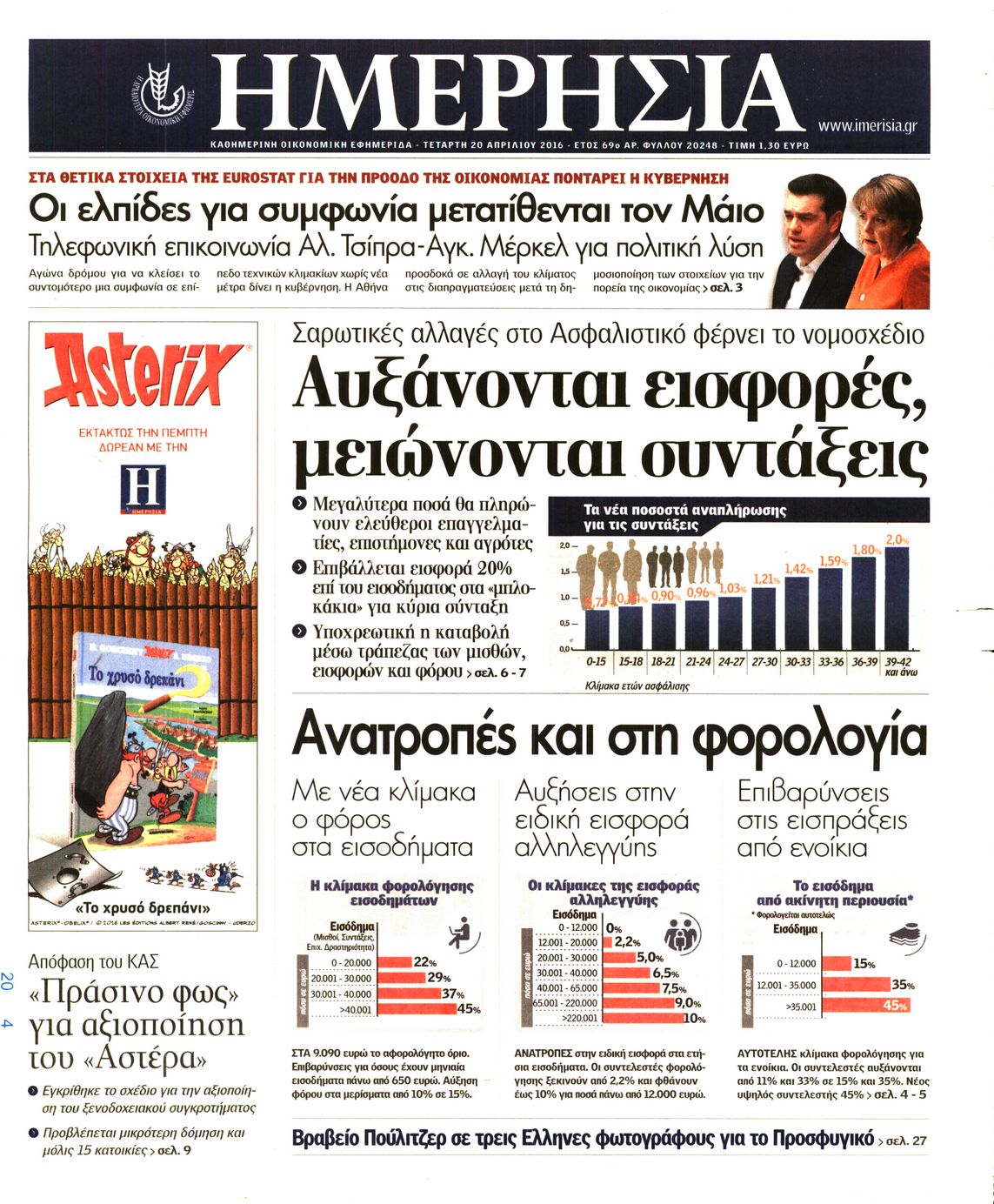Οι οικονομικές εφημερίδες 20/4/2016 Enikos Newsroom 04:57, Τετάρτη 20 Απριλίου 2016 Media Διαβάστε τα σημερινά πρωτοσέλιδα των οικονομικών εφημερίδων: ΟΙΚΟΝΟΜΙΚΕΣ ΕΦΗΜΕΡΙΔΕΣ ΠΡΩΤΟΣΕΛΙΔΑ Μοιράσου το: σχολίασε κι εσύ (0 σχόλια) Ακολουθήστε το enikos.gr στο Google News και μάθετε πρώτοι όλες τις ειδήσεις Δείτε όλες τις τελευταίες ειδήσεις από την Ελλάδα και τον Κόσμο στο enikos.gr Ειδήσεις Ροή Ειδήσεων 6 ώρες πριν Εκτός ευρωομάδας ΣΥΡΙΖΑ ο Νίκος Παππάς μετά την επίθεση στον δημοσιογράφο Νίκο Γιαννόπουλο – Η μήνυση και οι νέες δηλώσεις 6 ώρες πριν «Αγριεύουν» οι αγρότες: «Δεν συντρέχει λόγος συνάντησης με τον πρωθυπουργό» – Ώρα αποφάσεων στη σύσκεψη της Πέμπτης 6 ώρες πριν Κυψέλη: Χωρίς την οικογένειά της δίπλα της απολογήθηκε η 16χρονη – «Της είχε επιτεθεί κάποιος για να την βιάσει, φοβήθηκε και κυκλοφορούσε με μαχαίρι» 6 ώρες πριν Politico: Το πρόβλημα της Ευρώπης δεν είναι το Βέλγιο αλλά ο Ντόναλντ Τραμπ 7 ώρες πριν Αλεξανδρούπολη: Πολυοργανική ανεπάρκεια λόγω υποσιτισμού η αιτία θανάτου του 3χρονου αγοριού 6 ώρες πριν Μυστήριο με τεράστιες κυκλικές πέτρες 200 κιλών – Ανακαλύφθηκαν τυχαία κατά τη διάρκεια οδικών έργων και κανείς δεν ξέρει από πού προέρχονται 7 ώρες πριν Ύπνος: Ειδικός εξηγεί τον πραγματικό λόγο που ξυπνάτε στις 4 τα ξημερώματα – Ο ρόλος των ορμονών και του κιρκάδιου ρυθμού 8 ώρες πριν Αριθμολογία: Οι άνθρωποι που έχουν γεννηθεί αυτές τις 4 ημερομηνίες, είναι τρυφεροί και αγαπούν ανιδιοτελώς 20 ώρες πριν 20 χρόνια τα Χριστούγεννα ξεκινούν στα Public με μεγάλη ποικιλία σε δώρα! 13 λεπτά πριν Ντόναλντ Τραμπ: Παρουσίασε τα επιτεύγματα της διακυβέρνησής του – Σκληρή κριτική στον Τζο Μπάιντεν 28 λεπτά πριν Κτηνοτρόφοι: Με δάκρυα στα μάτια ζουν τον εφιάλτη των άδειων στάβλων – «Καταστράφηκαν οι ζωές μας» 43 λεπτά πριν Νέο αμερικανικό πλήγμα σε σκάφος που φέρεται να μετέφερε ναρκωτικά στον Ειρηνικό – Τέσσερις νεκροί 58 λεπτά πριν Αλ Τσαντίρι Νιουζ: «Λύγισε» ο Δημήτρης Λάλος για τον Δημήτρη Ήμελλο – «Τον μνημονεύω, να ‘ναι καλά εκεί που είναι» 1 ώρα πριν GNTM: Με δάκρυα τον αποχαιρέτησε η Ηλιάνα Παπαγεωργίου πριν από τον ημιτελικό – «Αισθάνομαι πολύ παράξενα» ENIKOS NETWORK Αϋπνία: Το κόλπο που θα σας βοηθήσει να κοιμηθείτε απόψε – Είναι απλό και έχει αποτέλεσμα 2,6 εκατομμύρια πολίτες έχουν ήδη εμβολιαστεί κατά της γρίπης ΕΛΣΤΑΤ: Τι δείχνουν τα νέα στοιχεία για τις ηλεκτρονικές παραγγελίες των επιχειρήσεων ΚΕΠΕ: Οι 3 διακριτές συμβολές των ΜμΕ και της μεταποίησης στην ελληνική οικονομία Χαρτογραφώντας το «σημείο χωρίς επιστροφή»: Για πρώτη φορά αποκαλύπτεται με λεπτομέρεια το ακανθώδες όριο της ατμόσφαιρας τ... Η Google καταργεί τη λειτουργία «dark web report» – Πώς θα μπορούν οι χρήστες να διαγράφουν τα δεδομένα τους περισσότερα 02:30 , Πέμπτη 18 Δεκεμβρίου 2025 Αλ Τσαντίρι Νιουζ: Η κόρη της Πάολα στο κοινό – Η ατάκα Λαζόπουλου που την έκανε να «κοκκινήσει» Γιορτινή διάθεση και ευχάριστες στιγμές γέμισε η αποψινή, τελευταία για το 2025, εκπομπή του «... 22:24 , Τετάρτη 17 Δεκεμβρίου 2025 Το Σπίτι Δίπλα Στο Ποτάμι: Σε κίνδυνο η υγεία του Απόστολου – Τι θα δούμε απόψε “Το Σπίτι Δίπλα στο Ποτάμι” ξετυλίγει το νήμα της ζωής των πέντε αδελφών με καταισ... 21:14 , Τετάρτη 17 Δεκεμβρίου 2025 Παιχνίδια Εκδίκησης: Θα καταφέρει ο Χρήστος να κλονίσει την εμπιστοσύνη της Μάγιας απέναντι στον Άγη; Τα «Παιχνίδια Εκδίκησης» έρχονται απόψε στις 22:30, στον Αντ1, με το τελευταίο επεισόδιο της χ... 20:57 , Τετάρτη 17 Δεκεμβρίου 2025 Άγ