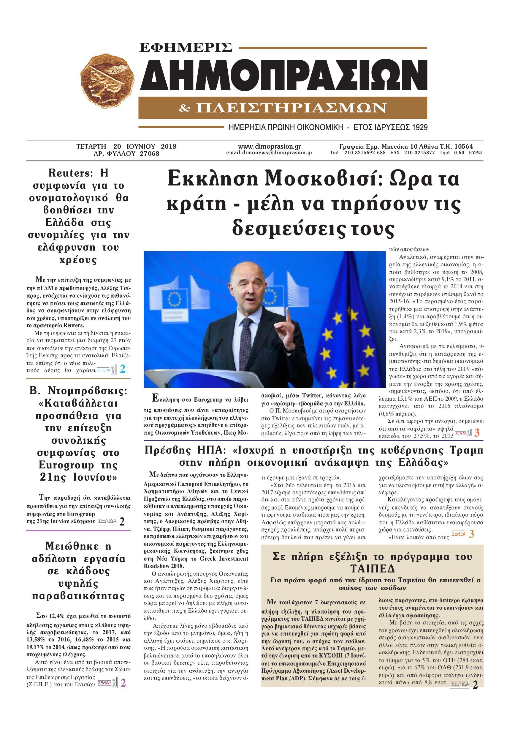 Οι οικονομικές εφημερίδες 20/6/2018 Enikos Newsroom 06:21, Τετάρτη 20 Ιουνίου 2018 Media Διαβάστε τα σημερινά πρωτοσέλιδα των οικονομικών εφημερίδων. ΟΙΚΟΝΟΜΙΚΕΣ ΕΦΗΜΕΡΙΔΕΣ Μοιράσου το: σχολίασε κι εσύ (0 σχόλια) Ακολουθήστε το enikos.gr στο Google News και μάθετε πρώτοι όλες τις ειδήσεις Δείτε όλες τις τελευταίες ειδήσεις από την Ελλάδα και τον Κόσμο στο enikos.gr Ειδήσεις Ροή Ειδήσεων 1 ώρα πριν Σύνοδος Κορυφής: Συνεχίζεται το θρίλερ στις Βρυξέλλες για την χρηματοδότηση της Ουκρανίας 5 ώρες πριν ΟΠΕΚΕΠΕ: Προφυλακιστέος ο φερόμενος αρχηγός και ο λογιστής της εγκληματικής οργάνωσης 6 ώρες πριν Αυξάνουν την πίεση προς την κυβέρνηση οι αγρότες: Κλείνουν παρακαμπτήριους και ανοίγουν διόδια – Τι θα γίνει τις γιορτές 5 ώρες πριν Φοινικούντα: Το Σάββατο απολογείται ο 30χρονος γιος γνωστού επιχειρηματία της Πλάκας που παραδόθηκε – Όσα είπε στους αστυνομικούς και ο ρόλος του στο έγκλημα 4 ώρες πριν ΑΕΚ – Κραϊόβα 3-2: Επική ανατροπή και πρόκριση στους «16» του Conference League η Ένωση 5 ώρες πριν Αρχαιολόγοι ανακάλυψαν ρωμαϊκά τεχνουργήματα από μια πόλη που δεν υπήρξε ποτέ – Τα τρία εντυπωσιακά κτίρια και ο αμφορέας με τις… σαρδέλες 6 ώρες πριν Ύπνος: Η απλή βραδινή ρουτίνα για να προστατεύσετε τα μαλλιά σας από το κρύο κατά τη διάρκεια του χειμώνα 7 ώρες πριν Manifesting: Πώς να συναντήσετε τον σύντροφο της ζωής σας, ανάλογα με τον μήνα γέννησής σας 2 ημέρες πριν 20 χρόνια τα Χριστούγεννα ξεκινούν στα Public με μεγάλη ποικιλία σε δώρα! 24 λεπτά πριν Αιματηρή βομβιστική επίθεση στην Υεμένη: Τουλάχιστον τρεις νεκροί και 13 τραυματίες 27 λεπτά πριν Στη Φλόριντα σήμερα οι διαβουλεύσεις σχετικά με τα επόμενα στάδια για τη Λωρίδα της Γάζας 31 λεπτά πριν Σίσσυ Τουμάση: «Είμαι ασθενοφοβική πάρα πολύ και με πιάνει μια παράνοια μ’ αυτό» 55 λεπτά πριν Ντόναλντ Τραμπ: Δεν χρειάζομαι την έγκριση του Κογκρέσου για να διατάξω στρατιωτικά πλήγματα στη Βενεζουέλα 1 ώρα πριν Σύνοδος Κορυφής: Συνεχίζεται το θρίλερ στις Βρυξέλλες για την χρηματοδότηση της Ουκρανίας ENIKOS NETWORK Σε περίοδο αυξημένης δραστηριότητας η γρίπη στην Ελλάδα-Μέτρα προστασίας από τον ΕΟΔΥ Σκέφτεστε συνέχεια συζητήσεις που έχετε κάνει; Τι σημαίνει αυτό, σύμφωνα με ειδικό Στεγαστικό: Τι λέει η ΠΟΜΙΔΑ για τα νέα μέτρα που ανακοίνωσε ο Κυριάκος Μητσοτάκης Λαγκάρντ: Αισιόδοξη για την ανάπτυξη της Ευρωζώνης, αβέβαιη για τον πληθωρισμό Χαρτογραφώντας το «σημείο χωρίς επιστροφή»: Για πρώτη φορά αποκαλύπτεται με λεπτομέρεια το ακανθώδες όριο της ατμόσφαιρας τ... Η Google καταργεί τη λειτουργία «dark web report» – Πώς θα μπορούν οι χρήστες να διαγράφουν τα δεδομένα τους περισσότερα 02:50 , Παρασκευή 19 Δεκεμβρίου 2025 GNTM: «Κλείδωσαν» οι τέσσερις φιναλίστ – Μεγάλη ανατροπή στις τελευταίες αποχωρήσεις Για προτελευταία φορά εμφανίστηκαν στο πλατό του GNTM οι φιναλίστ του φετινού κύκλου, το βράδυ... 17:45 , Πέμπτη 18 Δεκεμβρίου 2025 ROUK ZOUK: Εορταστικό επεισόδιο με καλεσμένους τους πρωταγωνιστές του «Γιατί ρε πατέρα» Το Σάββατο 20 Δεκεμβρίου στις 21:00, η Ζέτα Μακρυπούλια υποδέχεται εκλεκτούς ηθοποιούς που όλο... 17:20 , Πέμπτη 18 Δεκεμβρίου 2025 Άγιος έρωτας: Η Χριστίνα εξομολογείται στον πατέρα Νικόλαο, απόψε στις 21:00 στον Alpha Η Νότα αποφασίζει να εκδικηθεί τον Πέτρο και τον Στέφανο, για χάρη του Λούη, όμως τα πράγματα ... 16:50 , Πέμπτη 18 Δεκεμβρίου 2025 Να μ’ αγαπάς: Ζωή και Φωτεινή συμφιλιώνονται ως μάνα με κόρη, απόψε στις 20:00 Η ταυτότητα του Άγγελου αποκαλύπτεται στο νέο επεισόδιο της σειράς “