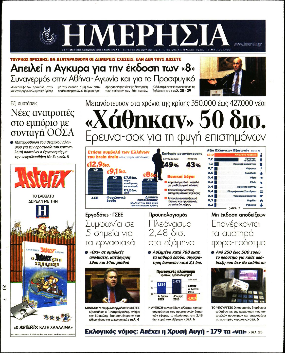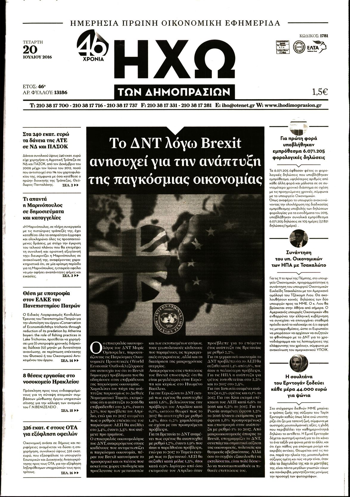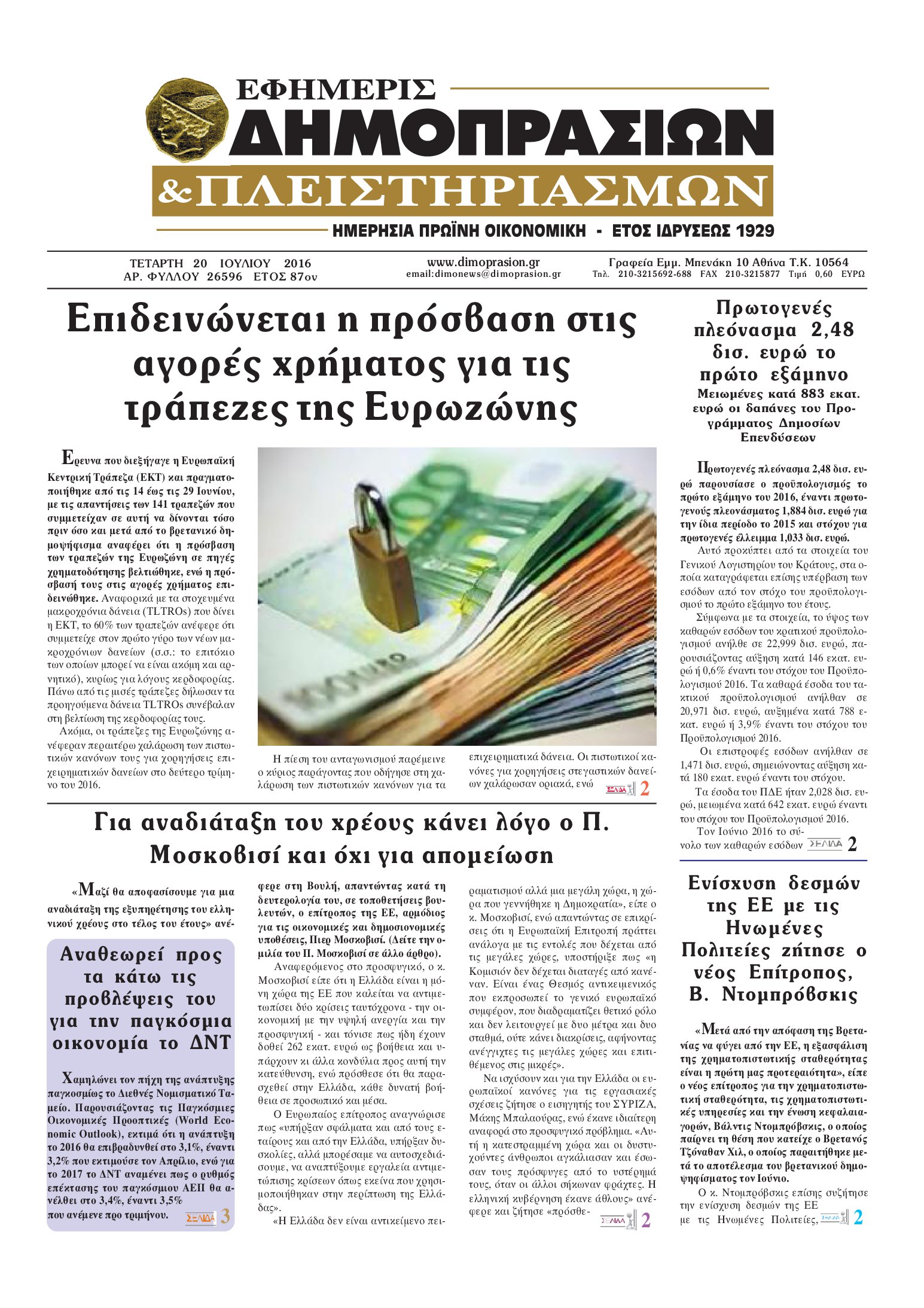 Oι οικονομικές εφημερίδες 20/7/2016 Enikos Newsroom 05:04, Τετάρτη 20 Ιουλίου 2016 Media Διαβάστε τα σημερινά πρωτοσέλιδα των οικονομικών εφημερίδων: ΟΙΚΟΝΟΜΙΚΕΣ ΕΦΗΜΕΡΙΔΕΣ ΠΡΩΤΟΣΕΛΙΔΑ Μοιράσου το: σχολίασε κι εσύ (0 σχόλια) Ακολουθήστε το enikos.gr στο Google News και μάθετε πρώτοι όλες τις ειδήσεις Δείτε όλες τις τελευταίες ειδήσεις από την Ελλάδα και τον Κόσμο στο enikos.gr Ειδήσεις Ροή Ειδήσεων 4 ώρες πριν Εκτός ευρωομάδας ΣΥΡΙΖΑ ο Νίκος Παππάς μετά την επίθεση στον δημοσιογράφο Νίκο Γιαννόπουλο – Η μήνυση και οι νέες δηλώσεις 5 ώρες πριν «Αγριεύουν» οι αγρότες: «Δεν συντρέχει λόγος συνάντησης με τον πρωθυπουργό» – Ώρα αποφάσεων στη σύσκεψη της Πέμπτης 5 ώρες πριν Κυψέλη: Χωρίς την οικογένειά της δίπλα της απολογήθηκε η 16χρονη – «Της είχε επιτεθεί κάποιος για να την βιάσει, φοβήθηκε και κυκλοφορούσε με μαχαίρι» 4 ώρες πριν Politico: Το πρόβλημα της Ευρώπης δεν είναι το Βέλγιο αλλά ο Ντόναλντ Τραμπ 6 ώρες πριν Αλεξανδρούπολη: Πολυοργανική ανεπάρκεια λόγω υποσιτισμού η αιτία θανάτου του 3χρονου αγοριού 4 ώρες πριν Μυστήριο με τεράστιες κυκλικές πέτρες 200 κιλών – Ανακαλύφθηκαν τυχαία κατά τη διάρκεια οδικών έργων και κανείς δεν ξέρει από πού προέρχονται 5 ώρες πριν Ύπνος: Ειδικός εξηγεί τον πραγματικό λόγο που ξυπνάτε στις 4 τα ξημερώματα – Ο ρόλος των ορμονών και του κιρκάδιου ρυθμού 6 ώρες πριν Αριθμολογία: Οι άνθρωποι που έχουν γεννηθεί αυτές τις 4 ημερομηνίες, είναι τρυφεροί και αγαπούν ανιδιοτελώς 18 ώρες πριν 20 χρόνια τα Χριστούγεννα ξεκινούν στα Public με μεγάλη ποικιλία σε δώρα! 12 λεπτά πριν Βραζιλία: Το Κογκρέσο ενέκρινε σχέδιο νόμου για τη μείωση της ποινής του πρώην προέδρου Μπολσονάρου 26 λεπτά πριν Ένταση στο περιφερειακό συμβούλιο Δυτικής Μακεδονίας: Φωνές, σπρωξιές και διακοπή – Δείτε βίντεο 41 λεπτά πριν Σουδάν: Επιδρομή drone σε χωριό του Νότιου Κορντοφάν – Οκτώ νεκροί 56 λεπτά πριν Αλ Τσαντίρι Νιουζ: Η κόρη της Πάολα στο κοινό – Η ατάκα Λαζόπουλου που την έκανε να «κοκκινήσει» 1 ώρα πριν Ρωσία: Ουκρανικές δυνάμεις έπληξαν πλοίο στο λιμάνι του Ροστόφ – Αναφορές για θύματα ENIKOS NETWORK Αϋπνία: Το κόλπο που θα σας βοηθήσει να κοιμηθείτε απόψε – Είναι απλό και έχει αποτέλεσμα 2,6 εκατομμύρια πολίτες έχουν ήδη εμβολιαστεί κατά της γρίπης ΕΛΣΤΑΤ: Τι δείχνουν τα νέα στοιχεία για τις ηλεκτρονικές παραγγελίες των επιχειρήσεων ΚΕΠΕ: Οι 3 διακριτές συμβολές των ΜμΕ και της μεταποίησης στην ελληνική οικονομία Χαρτογραφώντας το «σημείο χωρίς επιστροφή»: Για πρώτη φορά αποκαλύπτεται με λεπτομέρεια το ακανθώδες όριο της ατμόσφαιρας τ... Η Google καταργεί τη λειτουργία «dark web report» – Πώς θα μπορούν οι χρήστες να διαγράφουν τα δεδομένα τους περισσότερα 02:30 , Πέμπτη 18 Δεκεμβρίου 2025 Αλ Τσαντίρι Νιουζ: Η κόρη της Πάολα στο κοινό – Η ατάκα Λαζόπουλου που την έκανε να «κοκκινήσει» Γιορτινή διάθεση και ευχάριστες στιγμές γέμισε η αποψινή, τελευταία για το 2025, εκπομπή του «... 22:24 , Τετάρτη 17 Δεκεμβρίου 2025 Το Σπίτι Δίπλα Στο Ποτάμι: Σε κίνδυνο η υγεία του Απόστολου – Τι θα δούμε απόψε “Το Σπίτι Δίπλα στο Ποτάμι” ξετυλίγει το νήμα της ζωής των πέντε αδελφών με καταισ... 21:14 , Τετάρτη 17 Δεκεμβρίου 2025 Παιχνίδια Εκδίκησης: Θα καταφέρει ο Χρήστος να κλονίσει την εμπιστοσύνη της Μάγιας απέναντι στον Άγη; Τα «Παιχνίδια Εκδίκησης» έρχονται απόψε στις 22:30, στον Αντ1, με το τελευταίο επεισόδιο της χ... 20:57 , Τετάρτη 17 Δεκεμβρίου 2025 Άγιος Έρωτας: Η Χλόη καταθέτει εναντίον του πατέρα της και ο Χάρης αποκαλύπτει σ