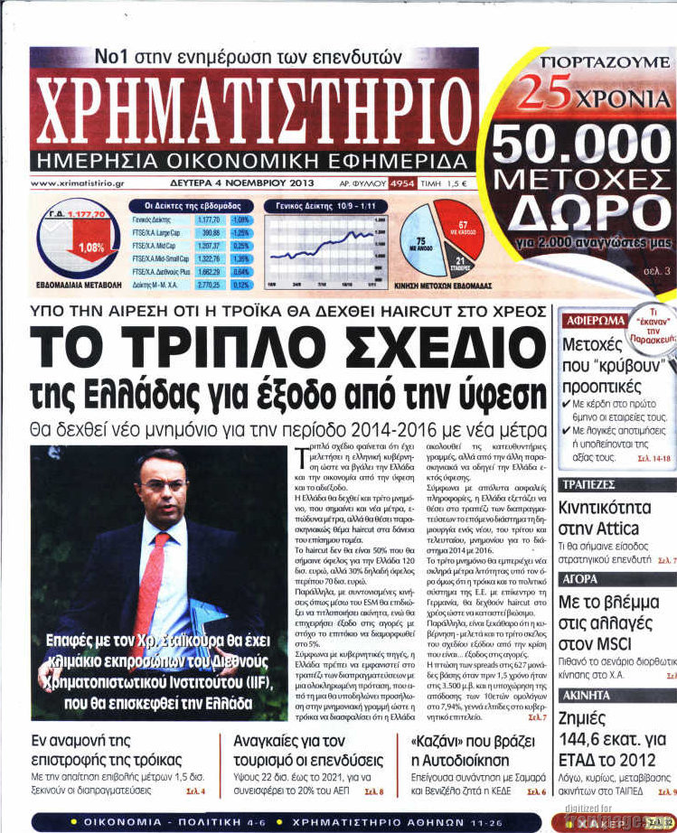Οι oικονομικές εφημερίδες Enikos Newsroom 09:14, Δευτέρα 04 Νοεμβρίου 2013 Media Οι oικονομικές εφημερίδες Διαβάστε τα πρωτοσέλιδα των οικονομικών εφημερίδων: ΕΦΗΜΕΡΙΔΕΣ ΟΙΚΟΝΟΜΙΚΕΣ ΕΦΗΜΕΡΙΔΕΣ ΠΡΩΤΟΣΕΛΙΔΑ Μοιράσου το: σχολίασε κι εσύ (0 σχόλια) Ακολουθήστε το enikos.gr στο Google News και μάθετε πρώτοι όλες τις ειδήσεις Δείτε όλες τις τελευταίες ειδήσεις από την Ελλάδα και τον Κόσμο στο enikos.gr Ειδήσεις Ροή Ειδήσεων 1 ώρα πριν ΣΥΡΙΖΑ: Διαγράφεται ο ευρωβουλευτής Νίκος Παππάς μετά την μήνυση δημοσιογράφου για ξυλοδαρμό 15 λεπτά πριν Τουρκία: Επιδιώκει την επιστροφή των S-400 στη Ρωσία – Οι αμερικανικές πιέσεις 26 λεπτά πριν ΟΠΕΚΕΠΕ: Ελεύθερες με όρους η σύζυγος και η αδελφή του φερόμενου αρχηγού – Τι υποστήριξαν 2 ώρες πριν Πώς στήθηκε η επιχείρηση «Ίπαλλος» που οδήγησε στη σύλληψη του «Έλληνα Εσκομπάρ» – «Ο πόλεμος ενάντια στους εμπόρους ναρκωτικών θα συνεχιστεί» 2 ώρες πριν Κυψέλη: Στη φυλακή η 16χρονη που μαχαίρωσε συμμαθήτριά της 3 ώρες πριν Τα 3 ζώδια που θα δουν τη ζωή τους να αλλάζει ριζικά το 2026 – «Όλα γίνονται καλύτερα σταδιακά» 8 ώρες πριν «Δεν είχα κλάψει από τότε που διαγνώστηκα με καρκίνο, ώσπου ένα τηλεφώνημα με έκανε να λυγίσω» – Η συγκλονιστική εξομολόγηση ενός άνδρα 3 ώρες πριν Ο σπάνιος σεισμός που έλυσε τα χέρια των επιστημόνων – Αποκάλυψε ακριβώς όσα αναζητούσαν 9 ώρες πριν 20 χρόνια τα Χριστούγεννα ξεκινούν στα Public με μεγάλη ποικιλία σε δώρα! 5 λεπτά πριν ΟΠΕΚΕΠΕ – ΕΛΓΑ: Ολοκληρώθηκαν πληρωμές 487,9 εκατ. ευρώ – Θα καταβληθούν ακόμα 600 εκατ. έως τις 31 Δεκεμβρίου 10 λεπτά πριν Γκίλφοϊλ για την επιχείρηση «Ίπαλλος»: Μια σημαντική νίκη στον συνεχιζόμενο αγώνα κατά του εμπορίου ναρκωτικών – Βαθιά ευγνώμων ο Τραμπ 15 λεπτά πριν Τουρκία: Επιδιώκει την επιστροφή των S-400 στη Ρωσία – Οι αμερικανικές πιέσεις 20 λεπτά πριν Στις Βρυξέλλες ο Κυριάκος Μητσοτάκης για τη Σύνοδο Κορυφής ΕΕ-Δυτικών Βαλκανίων και τη συνεδρίαση του Ευρωπαϊκού Συμβουλίου 26 λεπτά πριν ΟΠΕΚΕΠΕ: Ελεύθερες με όρους η σύζυγος και η αδελφή του φερόμενου αρχηγού – Τι υποστήριξαν ENIKOS NETWORK Γιατί αναζητούμε τα Χριστούγεννα όλο και νωρίτερα; Ποιοι οι ψυχολογικοί και οι συναισθηματικοί λόγοι Σοβαροί κίνδυνοι από τη λάθος χορήγηση φαρμάκου για τις αιμορραγίες-Συστάσεις προς τους γιατρούς Έρχεται νέα ενίσχυση 17.500 ευρώ από τη ΔΥΠΑ για ανέργους- Όλες οι λεπτομέρειες «Αναταράξεις» στην εφοδιαστική αλυσίδα από τα μπλόκα: Επιστολή του Συνδέσμου Θεσσαλικών Βιομηχανιών στον πρωθυπουργό -Τι αν... Χαρτογραφώντας το «σημείο χωρίς επιστροφή»: Για πρώτη φορά αποκαλύπτεται με λεπτομέρεια το ακανθώδες όριο της ατμόσφαιρας τ... Η Google καταργεί τη λειτουργία «dark web report» – Πώς θα μπορούν οι χρήστες να διαγράφουν τα δεδομένα τους περισσότερα 12:35 , Τετάρτη 17 Δεκεμβρίου 2025 Μίρκα Παπακωνσταντίνου: «Δεν ήμουν αισιόδοξη για τα νούμερα – Είμαι ρεαλίστρια» Στα γυρίσματα του εορταστικού επεισοδίου της αγαπημένης σειράς “Το Σόι Σου”, βρέθηκε η κάμερα ... 12:12 , Τετάρτη 17 Δεκεμβρίου 2025 Ακούστε την εκπομπή του Νίκου Χατζηνικολάου 17/12/2025 Ακούστε την εκπομπή του Νίκου Χατζηνικολάου στον ραδιοφωνικό σταθμό RealFm 97,8, την Τετάρτη 1... 11:35 , Τετάρτη 17 Δεκεμβρίου 2025 Home Alone: Το σπίτι της ταινίας θα ανακαινιστεί – Επιστροφή στην αισθητική της δεκαετίας του ’90 Οι νέοι ιδιοκτήτες του πραγματικού σπιτιού που παρουσιάζεται στην κλασική ταινία του 1990 «Hom... 11:25 , Τετάρτη 17 Δεκεμβρίου 2025 Grand Hotel: Απόψε το τελευταίο επεισόδιο της χρονιάς – Όλα τα μυ