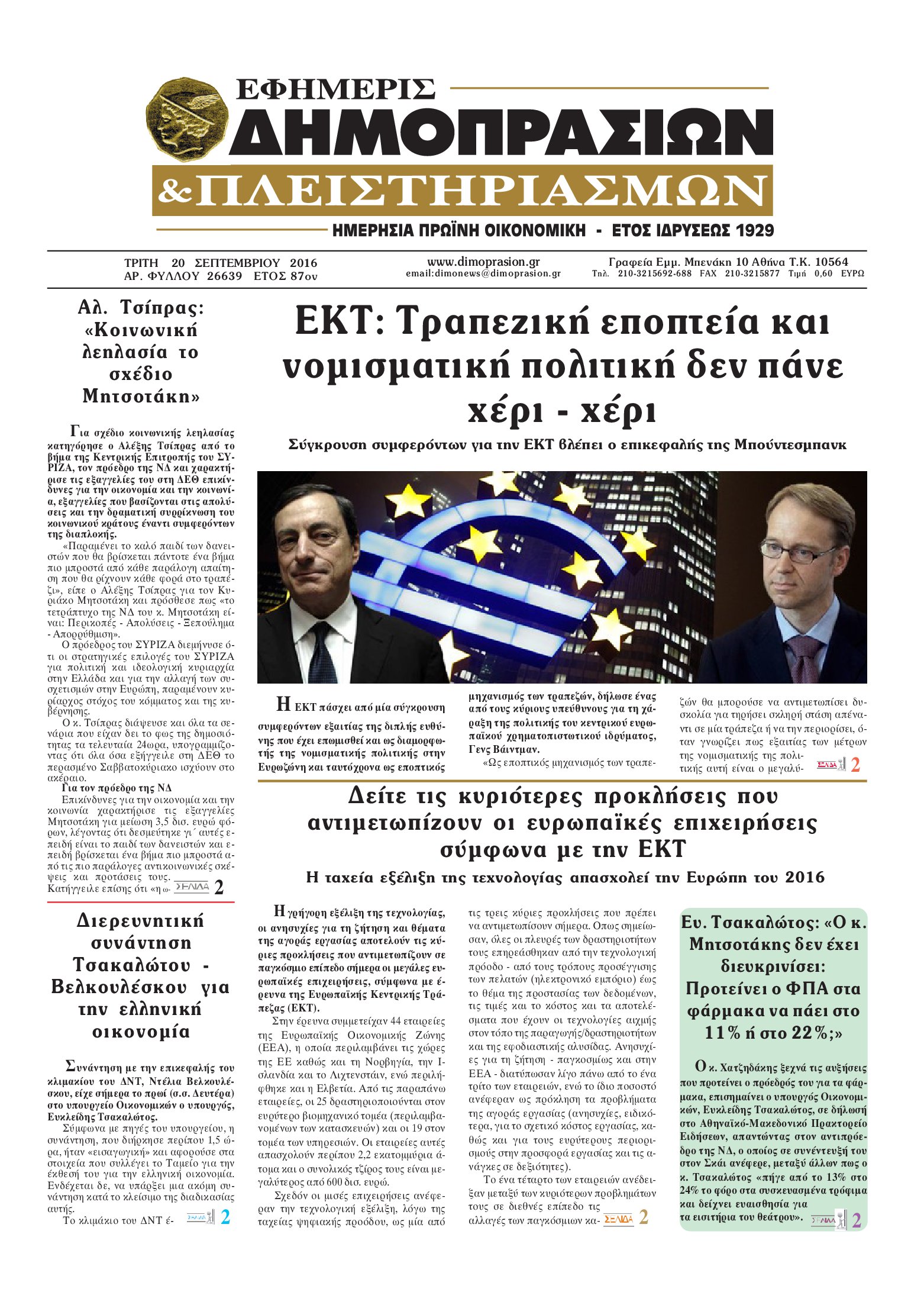 Oι οικονομικές εφημερίδες 20/9/2016 Enikos Newsroom 04:42, Τρίτη 20 Σεπτεμβρίου 2016 Media Διαβάστε τα σημερινά πρωτοσέλιδα των οικονομικών εφημερίδων: ΟΙΚΟΝΟΜΙΚΕΣ ΕΦΗΜΕΡΙΔΕΣ ΠΡΩΤΟΣΕΛΙΔΑ Μοιράσου το: σχολίασε κι εσύ (0 σχόλια) Ακολουθήστε το enikos.gr στο Google News και μάθετε πρώτοι όλες τις ειδήσεις Δείτε όλες τις τελευταίες ειδήσεις από την Ελλάδα και τον Κόσμο στο enikos.gr Ειδήσεις Ροή Ειδήσεων 2 ώρες πριν Στεγαστικό: Όλο το σχέδιο για περισσότερα και φθηνότερα ενοικιαζόμενα σπίτια 34 λεπτά πριν Προϋπολογισμός 2026: Τα μηνύματα από την ομιλία Μητσοτάκη και τα «καρφιά» με πολλαπλούς αποδέκτες 1 ώρα πριν Αγρότες: Ορισμένοι ζητούν πιο σκληρή μορφή κινητοποιήσεων – Κρίσιμη η αυριανή σύσκεψη στις Σέρρες 35 λεπτά πριν Ρομπ Ράινερ: Το δείπνο με τους Ομπάμα που δεν έγινε ποτέ και νέα στοιχεία για τον «καβγά» στο πάρτι – Βίντεο με τον γιο του να περιφέρεται κοντά στο σπίτι της τραγωδίας 2 ώρες πριν Κανόνια λέιζερ σε φρεγάτες – Το επόμενο άλμα στις ναυτικές επιχειρήσεις – Δείτε βίντεο 3 ώρες πριν Οπτική ψευδαίσθηση: Μόνο αν είσαι ο Σέρλοκ Χολμς θα βρεις τον σκύλο σε 15 δευτερόλεπτα 3 ώρες πριν Υγεία του εντέρου: Προσθέστε 1 superfood στα scrambled eggs για καλύτερη πέψη και ευεξία 4 ώρες πριν Τα ζώδια σήμερα, Τετάρτη 17 Δεκεμβρίου: Κριοί, η αυτοπεποίθησή σας ενισχύεται 55 λεπτά πριν Νεολιθικός σκύλος βρέθηκε προσεκτικά θαμμένος στον βυθό λίμνης – Δίπλα του βρέθηκε ένα στιλέτο 10 λεπτά πριν Αγγελική Ηλιάδη: «Έχω βιώσει άρρωστη και κακοποιητική ζήλεια, δεν θα ήθελα ποτέ στη ζωή μου να το ξαναπεράσω αυτό» 18 λεπτά πριν Θεσσαλονίκη: Διέρρηξαν το σπίτι του προέδρου του δημοτικού συμβουλίου, Σπύρου Βούγια 25 λεπτά πριν Καρυστιανού: Δεν θα αυτοπροταθώ ως ηγέτης, παραποιούν τα λόγια μου για να με αποδομήσουν 30 λεπτά πριν Η μοναδική συνταγή της Μάρθα Στιούαρτ για gingerbread cookies 34 λεπτά πριν Προϋπολογισμός 2026: Τα μηνύματα από την ομιλία Μητσοτάκη και τα «καρφιά» με πολλαπλούς αποδέκτες ENIKOS NETWORK Δύο συστατικά που είναι καλό να βάλετε στον πρωινό σας καφέ – Βοηθούν στην απώλεια βάρους και τη ρύθμιση του σακχάρου Πρωτοποριακή θεραπεία για το Αλτσχάιμερ: Φως και ήχος μπορεί να επιβραδύνουν την εξέλιξη της νόσου Έρχεται «νοικοκύρεμα » στα ακίνητα- Τι πρέπει να γνωρίζουν οι πολίτες Στεγαστικό: Όλο το σχέδιο για περισσότερα και φθηνότερα ενοικιαζόμενα σπίτια Σύγχρονος Νοστράδαμος: Προειδοποιεί για «μεγάλο γεγονός» τους επόμενους μήνες που θα συγκλονίσει τη Βρετανία και τον κόσμο Τεστ παρατηρητικότητας: Μπορείτε να βρείτε τις 3 διαφορές στις εικόνες με έναν πιγκουίνο σε 14 δευτερόλεπτα περισσότερα 08:00 , Τετάρτη 17 Δεκεμβρίου 2025 Την Κυριακή με τη Realnews: Δωροεπιταγή 10€ Δωροεπιταγή αξίας 10€ για αγορές άνω των 60€ από τα πολυκαταστήματα FactoryOutlet H προσφορά ι... 07:00 , Τετάρτη 17 Δεκεμβρίου 2025 Την Κυριακή με τη Realnews: Ό,τι και αν αγοράσεις, σκανάρεις και κερδίζεις! Την Κυριακή με τη Realnews: Ό,τι και αν αγοράσεις, σκανάρεις και κερδίζεις! Με το PADU app, το... 05:48 , Τετάρτη 17 Δεκεμβρίου 2025 Οι οικονομικές εφημερίδες 17/12/2025 Διαβάστε τα πρωτοσέλιδα από τις οικονομικές εφημερίδες, σήμερα 17/12/2025. 05:43 , Τετάρτη 17 Δεκεμβρίου 2025 Οι αθλητικές εφημερίδες 17/12/2025 Διαβάστε τα πρωτοσέλιδα από τις αθλητικές εφημερίδες, σήμερα 17/12/2025. ΤΕΛΕΥΤΑΙΕΣ ΕΙΔΗΣΕΙΣ 10 λεπτά πριν Αγγελική Ηλιάδη: «Έχω βιώσει άρρωστη και κακοποιητική... 18 λεπτά πριν Θεσσαλονίκη: Διέρρηξαν το σπίτι του προέδρου του... 25 λεπτά πριν Καρυστιανού: Δεν θα αυτοπροταθώ ως ηγέτις, παραποιούν... 30 λ