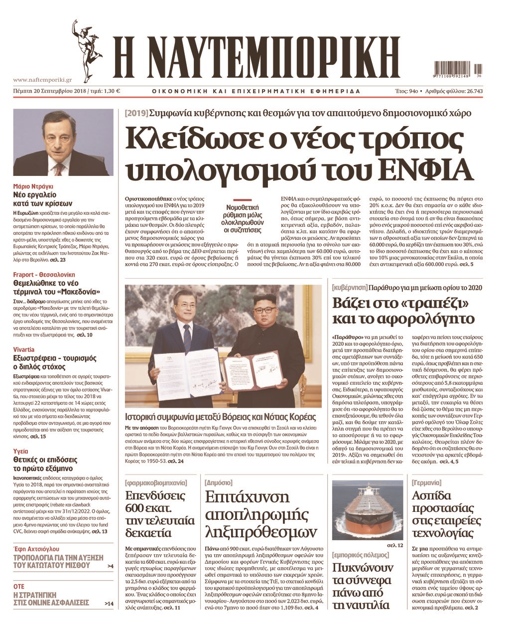 Οι οικονομικές εφημερίδες 20/9/2018 Enikos Newsroom 06:45, Πέμπτη 20 Σεπτεμβρίου 2018 Media Διαβάστε τα πρωτοσέλιδα ΟΙΚΟΝΟΜΙΚΕΣ ΕΦΗΜΕΡΙΔΕΣ Μοιράσου το: σχολίασε κι εσύ (0 σχόλια) Ακολουθήστε το enikos.gr στο Google News και μάθετε πρώτοι όλες τις ειδήσεις Δείτε όλες τις τελευταίες ειδήσεις από την Ελλάδα και τον Κόσμο στο enikos.gr Ειδήσεις Ροή Ειδήσεων 45 λεπτά πριν Ευρωπαϊκή Ένωση: Χωρίς συμφωνία, για την μακροπρόθεσμη χρηματοδότηση της Ουκρανίας, ολοκληρώθηκε η Σύνοδος Κορυφής στις Βρυξέλλες 4 ώρες πριν ΟΠΕΚΕΠΕ: Προφυλακιστέος ο φερόμενος αρχηγός και ο λογιστής της εγκληματικής οργάνωσης 5 ώρες πριν Αυξάνουν την πίεση προς την κυβέρνηση οι αγρότες: Κλείνουν παρακαμπτήριους και ανοίγουν διόδια – Τι θα γίνει τις γιορτές 5 ώρες πριν Φοινικούντα: Το Σάββατο απολογείται ο 30χρονος γιος γνωστού επιχειρηματία της Πλάκας που παραδόθηκε – Όσα είπε στους αστυνομικούς και ο ρόλος του στο έγκλημα 4 ώρες πριν ΑΕΚ – Κραϊόβα 3-2: Επική ανατροπή και πρόκριση στους «16» του Conference League η Ένωση 5 ώρες πριν Αρχαιολόγοι ανακάλυψαν ρωμαϊκά τεχνουργήματα από μια πόλη που δεν υπήρξε ποτέ – Τα τρία εντυπωσιακά κτίρια και ο αμφορέας με τις… σαρδέλες 6 ώρες πριν Ύπνος: Η απλή βραδινή ρουτίνα για να προστατεύσετε τα μαλλιά σας από το κρύο κατά τη διάρκεια του χειμώνα 7 ώρες πριν Manifesting: Πώς να συναντήσετε τον σύντροφο της ζωής σας, ανάλογα με τον μήνα γέννησής σας 2 ημέρες πριν 20 χρόνια τα Χριστούγεννα ξεκινούν στα Public με μεγάλη ποικιλία σε δώρα! 41 δευτερόλεπτα πριν Στη Φλόριντα σήμερα οι διαβουλεύσεις σχετικά με τα επόμενα στάδια για τη Λωρίδα της Γάζας 5 λεπτά πριν Σίσσυ Τουμάση: «Είμαι ασθενοφοβική πάρα πολύ και με πιάνει μια παράνοια μ’ αυτό» 29 λεπτά πριν Ντόναλντ Τραμπ: Δεν χρειάζομαι την έγκριση του Κογκρέσου για να διατάξω στρατιωτικά πλήγματα στη Βενεζουέλα 45 λεπτά πριν Ευρωπαϊκή Ένωση: Χωρίς συμφωνία, για την μακροπρόθεσμη χρηματοδότηση της Ουκρανίας, ολοκληρώθηκε η Σύνοδος Κορυφής στις Βρυξέλλες 1 ώρα πριν GNTM: «Κλείδωσαν» οι τέσσερις φιναλίστ – Μεγάλη ανατροπή στις τελευταίες αποχωρήσεις ENIKOS NETWORK Σε περίοδο αυξημένης δραστηριότητας η γρίπη στην Ελλάδα-Μέτρα προστασίας από τον ΕΟΔΥ Σκέφτεστε συνέχεια συζητήσεις που έχετε κάνει; Τι σημαίνει αυτό, σύμφωνα με ειδικό Στεγαστικό: Τι λέει η ΠΟΜΙΔΑ για τα νέα μέτρα που ανακοίνωσε ο Κυριάκος Μητσοτάκης Λαγκάρντ: Αισιόδοξη για την ανάπτυξη της Ευρωζώνης, αβέβαιη για τον πληθωρισμό Χαρτογραφώντας το «σημείο χωρίς επιστροφή»: Για πρώτη φορά αποκαλύπτεται με λεπτομέρεια το ακανθώδες όριο της ατμόσφαιρας τ... Η Google καταργεί τη λειτουργία «dark web report» – Πώς θα μπορούν οι χρήστες να διαγράφουν τα δεδομένα τους περισσότερα 02:50 , Παρασκευή 19 Δεκεμβρίου 2025 GNTM: «Κλείδωσαν» οι τέσσερις φιναλίστ – Μεγάλη ανατροπή στις τελευταίες αποχωρήσεις Για προτελευταία φορά εμφανίστηκαν στο πλατό του GNTM οι φιναλίστ του φετινού κύκλου, το βράδυ... 17:45 , Πέμπτη 18 Δεκεμβρίου 2025 ROUK ZOUK: Εορταστικό επεισόδιο με καλεσμένους τους πρωταγωνιστές του «Γιατί ρε πατέρα» Το Σάββατο 20 Δεκεμβρίου στις 21:00, η Ζέτα Μακρυπούλια υποδέχεται εκλεκτούς ηθοποιούς που όλο... 17:20 , Πέμπτη 18 Δεκεμβρίου 2025 Άγιος έρωτας: Η Χριστίνα εξομολογείται στον πατέρα Νικόλαο, απόψε στις 21:00 στον Alpha Η Νότα αποφασίζει να εκδικηθεί τον Πέτρο και τον Στέφανο, για χάρη του Λούη, όμως τα πράγματα ... 16:50 , Πέμπτη 18 Δεκεμβρίου 2025 Να μ’ αγαπάς: Ζωή και Φωτεινή συμφιλιώνονται ως μάνα με κόρη, απόψε στις 20:00 Η ταυτότητα τ