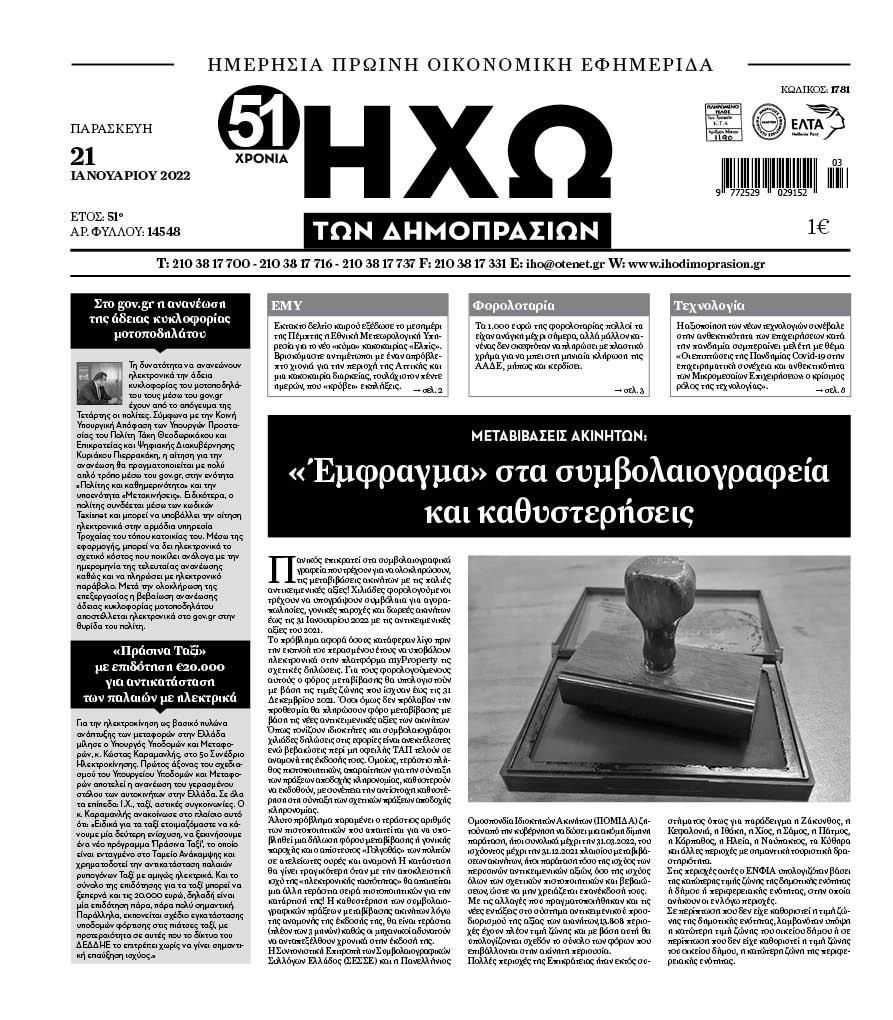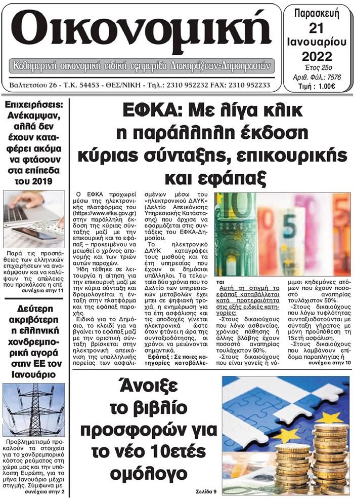 Οι οικονομικές εφημερίδες 21/1/2022 Διονύσης Νίκκας 06:44, Παρασκευή 21 Ιανουαρίου 2022 Media Διαβάστε τα πρωτοσέλιδα από τις οικονομικές εφημερίδες… ΟΙΚΟΝΟΜΙΚΕΣ ΕΦΗΜΕΡΙΔΕΣ Μοιράσου το: σχολίασε κι εσύ (0 σχόλια) Ακολουθήστε το enikos.gr στο Google News και μάθετε πρώτοι όλες τις ειδήσεις Δείτε όλες τις τελευταίες ειδήσεις από την Ελλάδα και τον Κόσμο στο enikos.gr Ειδήσεις Ροή Ειδήσεων 1 ώρα πριν Σύνοδος Κορυφής: Συνεχίζεται το θρίλερ στις Βρυξέλλες για την χρηματοδότηση της Ουκρανίας 4 ώρες πριν ΟΠΕΚΕΠΕ: Προφυλακιστέος ο φερόμενος αρχηγός και ο λογιστής της εγκληματικής οργάνωσης 6 ώρες πριν Αυξάνουν την πίεση προς την κυβέρνηση οι αγρότες: Κλείνουν παρακαμπτήριους και ανοίγουν διόδια – Τι θα γίνει τις γιορτές 5 ώρες πριν Φοινικούντα: Το Σάββατο απολογείται ο 30χρονος γιος γνωστού επιχειρηματία της Πλάκας που παραδόθηκε – Όσα είπε στους αστυνομικούς και ο ρόλος του στο έγκλημα 4 ώρες πριν ΑΕΚ – Κραϊόβα 3-2: Επική ανατροπή και πρόκριση στους «16» του Conference League η Ένωση 5 ώρες πριν Αρχαιολόγοι ανακάλυψαν ρωμαϊκά τεχνουργήματα από μια πόλη που δεν υπήρξε ποτέ – Τα τρία εντυπωσιακά κτίρια και ο αμφορέας με τις… σαρδέλες 6 ώρες πριν Ύπνος: Η απλή βραδινή ρουτίνα για να προστατεύσετε τα μαλλιά σας από το κρύο κατά τη διάρκεια του χειμώνα 7 ώρες πριν Manifesting: Πώς να συναντήσετε τον σύντροφο της ζωής σας, ανάλογα με τον μήνα γέννησής σας 2 ημέρες πριν 20 χρόνια τα Χριστούγεννα ξεκινούν στα Public με μεγάλη ποικιλία σε δώρα! 19 λεπτά πριν Αιματηρή βομβιστική επίθεση στην Υεμένη: Τουλάχιστον τρεις νεκροί και 13 τραυματίες 23 λεπτά πριν Στη Φλόριντα σήμερα οι διαβουλεύσεις σχετικά με τα επόμενα στάδια για τη Λωρίδα της Γάζας 27 λεπτά πριν Σίσσυ Τουμάση: «Είμαι ασθενοφοβική πάρα πολύ και με πιάνει μια παράνοια μ’ αυτό» 51 λεπτά πριν Ντόναλντ Τραμπ: Δεν χρειάζομαι την έγκριση του Κογκρέσου για να διατάξω στρατιωτικά πλήγματα στη Βενεζουέλα 1 ώρα πριν Σύνοδος Κορυφής: Συνεχίζεται το θρίλερ στις Βρυξέλλες για την χρηματοδότηση της Ουκρανίας ENIKOS NETWORK Σε περίοδο αυξημένης δραστηριότητας η γρίπη στην Ελλάδα-Μέτρα προστασίας από τον ΕΟΔΥ Σκέφτεστε συνέχεια συζητήσεις που έχετε κάνει; Τι σημαίνει αυτό, σύμφωνα με ειδικό Στεγαστικό: Τι λέει η ΠΟΜΙΔΑ για τα νέα μέτρα που ανακοίνωσε ο Κυριάκος Μητσοτάκης Λαγκάρντ: Αισιόδοξη για την ανάπτυξη της Ευρωζώνης, αβέβαιη για τον πληθωρισμό Χαρτογραφώντας το «σημείο χωρίς επιστροφή»: Για πρώτη φορά αποκαλύπτεται με λεπτομέρεια το ακανθώδες όριο της ατμόσφαιρας τ... Η Google καταργεί τη λειτουργία «dark web report» – Πώς θα μπορούν οι χρήστες να διαγράφουν τα δεδομένα τους περισσότερα 02:50 , Παρασκευή 19 Δεκεμβρίου 2025 GNTM: «Κλείδωσαν» οι τέσσερις φιναλίστ – Μεγάλη ανατροπή στις τελευταίες αποχωρήσεις Για προτελευταία φορά εμφανίστηκαν στο πλατό του GNTM οι φιναλίστ του φετινού κύκλου, το βράδυ... 17:45 , Πέμπτη 18 Δεκεμβρίου 2025 ROUK ZOUK: Εορταστικό επεισόδιο με καλεσμένους τους πρωταγωνιστές του «Γιατί ρε πατέρα» Το Σάββατο 20 Δεκεμβρίου στις 21:00, η Ζέτα Μακρυπούλια υποδέχεται εκλεκτούς ηθοποιούς που όλο... 17:20 , Πέμπτη 18 Δεκεμβρίου 2025 Άγιος έρωτας: Η Χριστίνα εξομολογείται στον πατέρα Νικόλαο, απόψε στις 21:00 στον Alpha Η Νότα αποφασίζει να εκδικηθεί τον Πέτρο και τον Στέφανο, για χάρη του Λούη, όμως τα πράγματα ... 16:50 , Πέμπτη 18 Δεκεμβρίου 2025 Να μ’ αγαπάς: Ζωή και Φωτεινή συμφιλιώνονται ως μάνα με κόρη, απόψε στις 20:00 Η ταυτότητα του Άγγελου αποκαλύπτεται στο νέο επεισόδιο της 