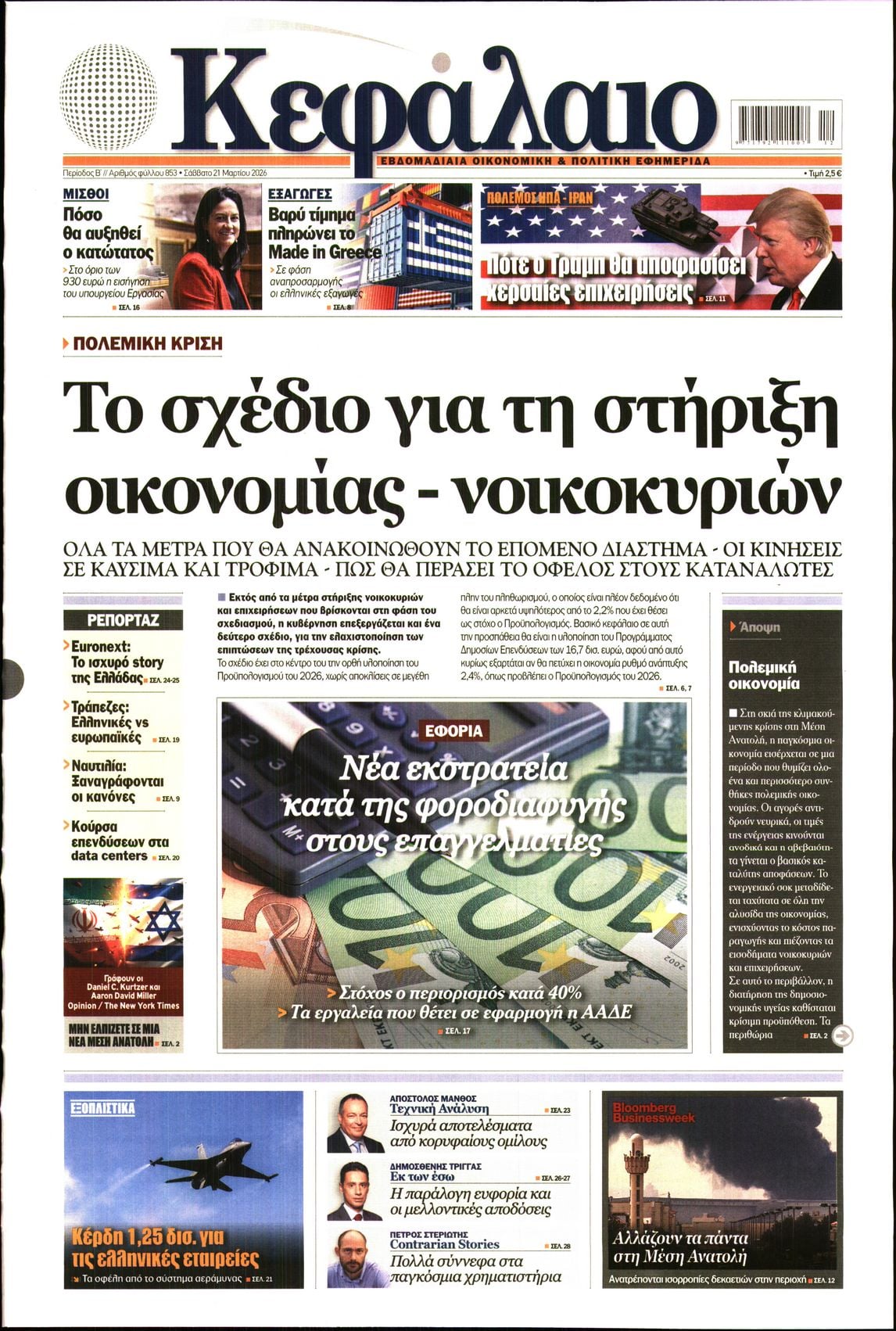 Οι οικονομικές εφημερίδες 21/3/2026 Enikos Newsroom 2 ώρες ago Media ΕΦΗΜΕΡΙΔΕΣ ΟΙΚΟΝΟΜΙΚΕΣ ΕΦΗΜΕΡΙΔΕΣ ΠΡΩΤΟΣΕΛΙΔΑ Διαβάστε τα πρωτοσέλιδα από τις οικονομικές εφημερίδες, σήμερα 21/3/2026.