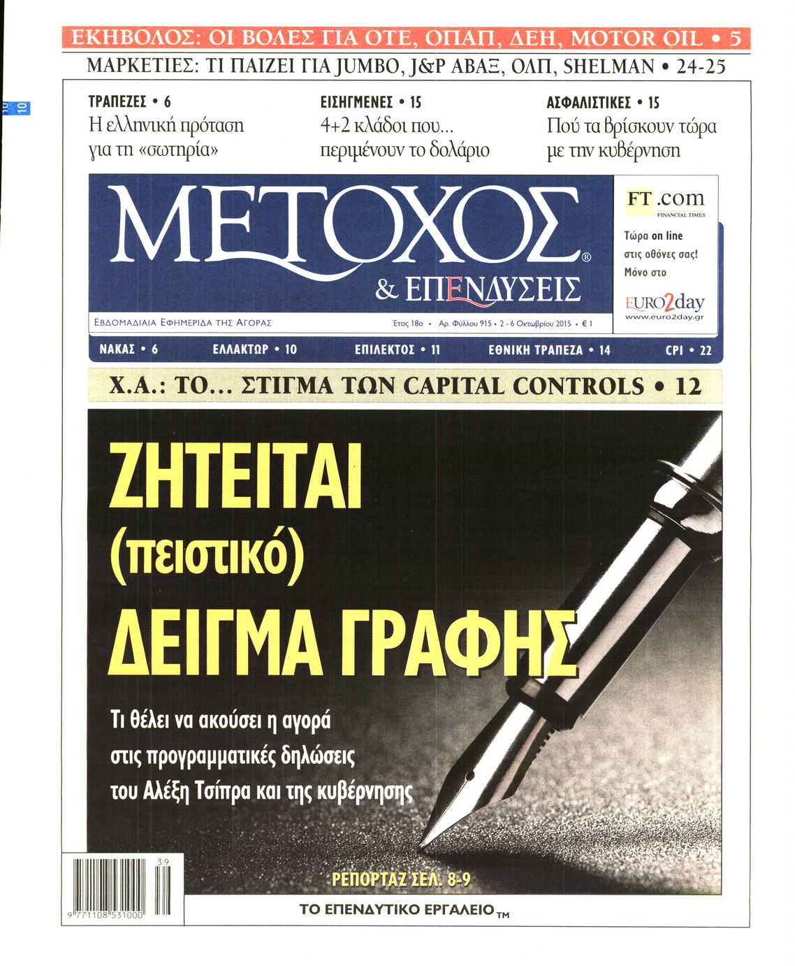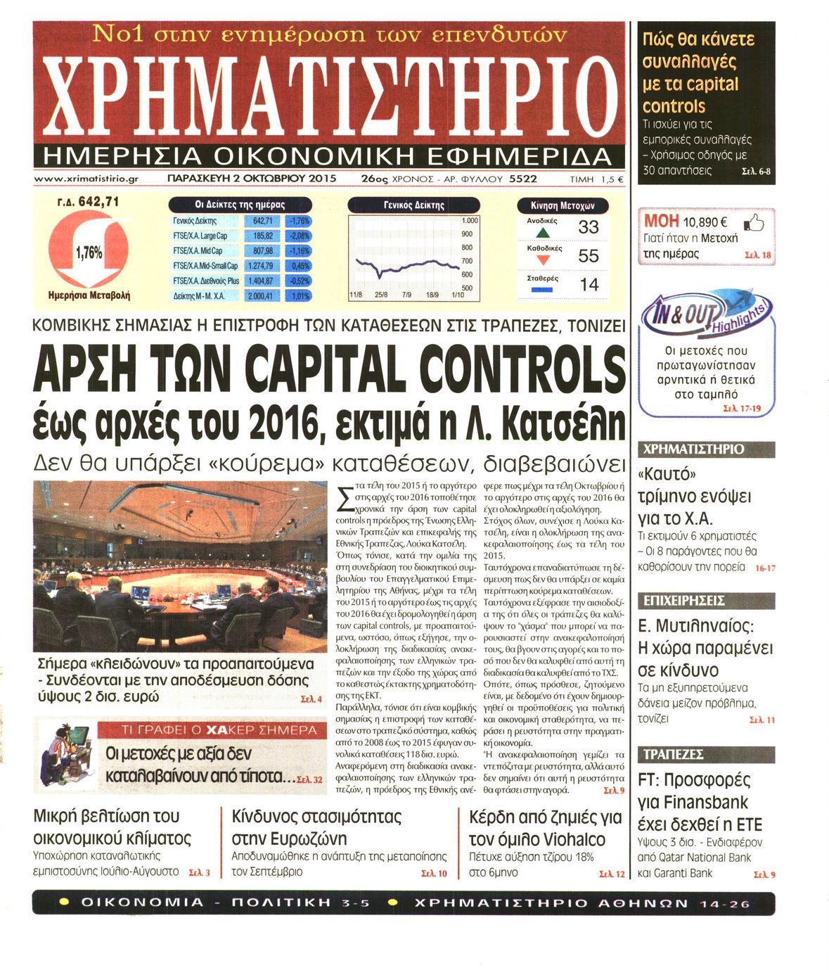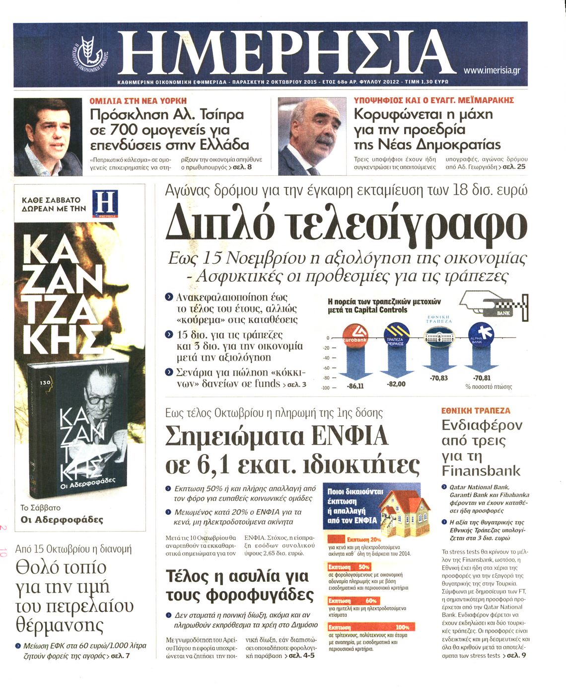 Οι οικονομικές εφημερίδες 2/10/2015 Enikos Newsroom 06:46, Παρασκευή 02 Οκτωβρίου 2015 Media Διαβάστε τα σημερινά πρωτοσέλιδα των οικονομικών εφημερίδων: ΟΙΚΟΝΟΜΙΚΕΣ ΕΦΗΜΕΡΙΔΕΣ ΠΡΩΤΟΣΕΛΙΔΑ Μοιράσου το: σχολίασε κι εσύ (0 σχόλια) Ακολουθήστε το enikos.gr στο Google News και μάθετε πρώτοι όλες τις ειδήσεις Δείτε όλες τις τελευταίες ειδήσεις από την Ελλάδα και τον Κόσμο στο enikos.gr Ειδήσεις Ροή Ειδήσεων 1 ώρα πριν Ευρωπαϊκή Ένωση: Συμφωνία για δάνειο 90 δισ. ευρώ στην Ουκρανία τη διετία 2026-2027 6 ώρες πριν ΟΠΕΚΕΠΕ: Προφυλακιστέος ο φερόμενος αρχηγός και ο λογιστής της εγκληματικής οργάνωσης 7 ώρες πριν Αυξάνουν την πίεση προς την κυβέρνηση οι αγρότες: Κλείνουν παρακαμπτήριους και ανοίγουν διόδια – Τι θα γίνει τις γιορτές 7 ώρες πριν Φοινικούντα: Το Σάββατο απολογείται ο 30χρονος γιος γνωστού επιχειρηματία της Πλάκας που παραδόθηκε – Όσα είπε στους αστυνομικούς και ο ρόλος του στο έγκλημα 5 ώρες πριν ΑΕΚ – Κραϊόβα 3-2: Επική ανατροπή και πρόκριση στους «16» του Conference League η Ένωση 6 ώρες πριν Αρχαιολόγοι ανακάλυψαν ρωμαϊκά τεχνουργήματα από μια πόλη που δεν υπήρξε ποτέ – Τα τρία εντυπωσιακά κτίρια και ο αμφορέας με τις… σαρδέλες 7 ώρες πριν Ύπνος: Η απλή βραδινή ρουτίνα για να προστατεύσετε τα μαλλιά σας από το κρύο κατά τη διάρκεια του χειμώνα 8 ώρες πριν Manifesting: Πώς να συναντήσετε τον σύντροφο της ζωής σας, ανάλογα με τον μήνα γέννησής σας 2 ημέρες πριν 20 χρόνια τα Χριστούγεννα ξεκινούν στα Public με μεγάλη ποικιλία σε δώρα! 6 λεπτά πριν Η TikTok στις ΗΠΑ πωλείται σε Oracle, Silver Lake και MGX – Οι λεπτομέρειες του «deal» 14 λεπτά πριν Αλεξάντερ Λουκασένκο: Η Λευκορωσία βρίσκεται κοντά στην αποκατάσταση των σχέσεών της με τις ΗΠΑ 29 λεπτά πριν Αυστραλία: Κήρυξε την Κυριακή (21/12) ημέρα εθνικού πένθους για τη φονική επίθεση στην παραλία Μπόνταϊ 39 λεπτά πριν Ρόδος: Δάσκαλος καράτε καταδικάστηκε για ασέλγεια σε ανήλικες αθλήτριες – Μαρτυρίες για αγγίγματα σε ευαίσθητα σημεία 54 λεπτά πριν Γουατεμάλα: Εξαρθρώθηκε κύκλωμα διακίνησης μεταναστών προς τις ΗΠΑ – Συνελήφθησαν 14 άτομα ENIKOS NETWORK Σε περίοδο αυξημένης δραστηριότητας η γρίπη στην Ελλάδα-Μέτρα προστασίας από τον ΕΟΔΥ Σκέφτεστε συνέχεια συζητήσεις που έχετε κάνει; Τι σημαίνει αυτό, σύμφωνα με ειδικό Στεγαστικό: Τι λέει η ΠΟΜΙΔΑ για τα νέα μέτρα που ανακοίνωσε ο Κυριάκος Μητσοτάκης Λαγκάρντ: Αισιόδοξη για την ανάπτυξη της Ευρωζώνης, αβέβαιη για τον πληθωρισμό Χαρτογραφώντας το «σημείο χωρίς επιστροφή»: Για πρώτη φορά αποκαλύπτεται με λεπτομέρεια το ακανθώδες όριο της ατμόσφαιρας τ... Η Google καταργεί τη λειτουργία «dark web report» – Πώς θα μπορούν οι χρήστες να διαγράφουν τα δεδομένα τους περισσότερα 02:50 , Παρασκευή 19 Δεκεμβρίου 2025 GNTM: «Κλείδωσαν» οι τέσσερις φιναλίστ – Μεγάλη ανατροπή στις τελευταίες αποχωρήσεις Για προτελευταία φορά εμφανίστηκαν στο πλατό του GNTM οι φιναλίστ του φετινού κύκλου, το βράδυ... 17:45 , Πέμπτη 18 Δεκεμβρίου 2025 ROUK ZOUK: Εορταστικό επεισόδιο με καλεσμένους τους πρωταγωνιστές του «Γιατί ρε πατέρα» Το Σάββατο 20 Δεκεμβρίου στις 21:00, η Ζέτα Μακρυπούλια υποδέχεται εκλεκτούς ηθοποιούς που όλο... 17:20 , Πέμπτη 18 Δεκεμβρίου 2025 Άγιος έρωτας: Η Χριστίνα εξομολογείται στον πατέρα Νικόλαο, απόψε στις 21:00 στον Alpha Η Νότα αποφασίζει να εκδικηθεί τον Πέτρο και τον Στέφανο, για χάρη του Λούη, όμως τα πράγματα ... 16:50 , Πέμπτη 18 Δεκεμβρίου 2025 Να μ’ αγαπάς: Ζωή και Φωτεινή συμφιλιώνονται ως μάνα με κόρη, απόψε στις 20:00 Η ταυτότητα του Άγγελου αποκαλύπτεται στ