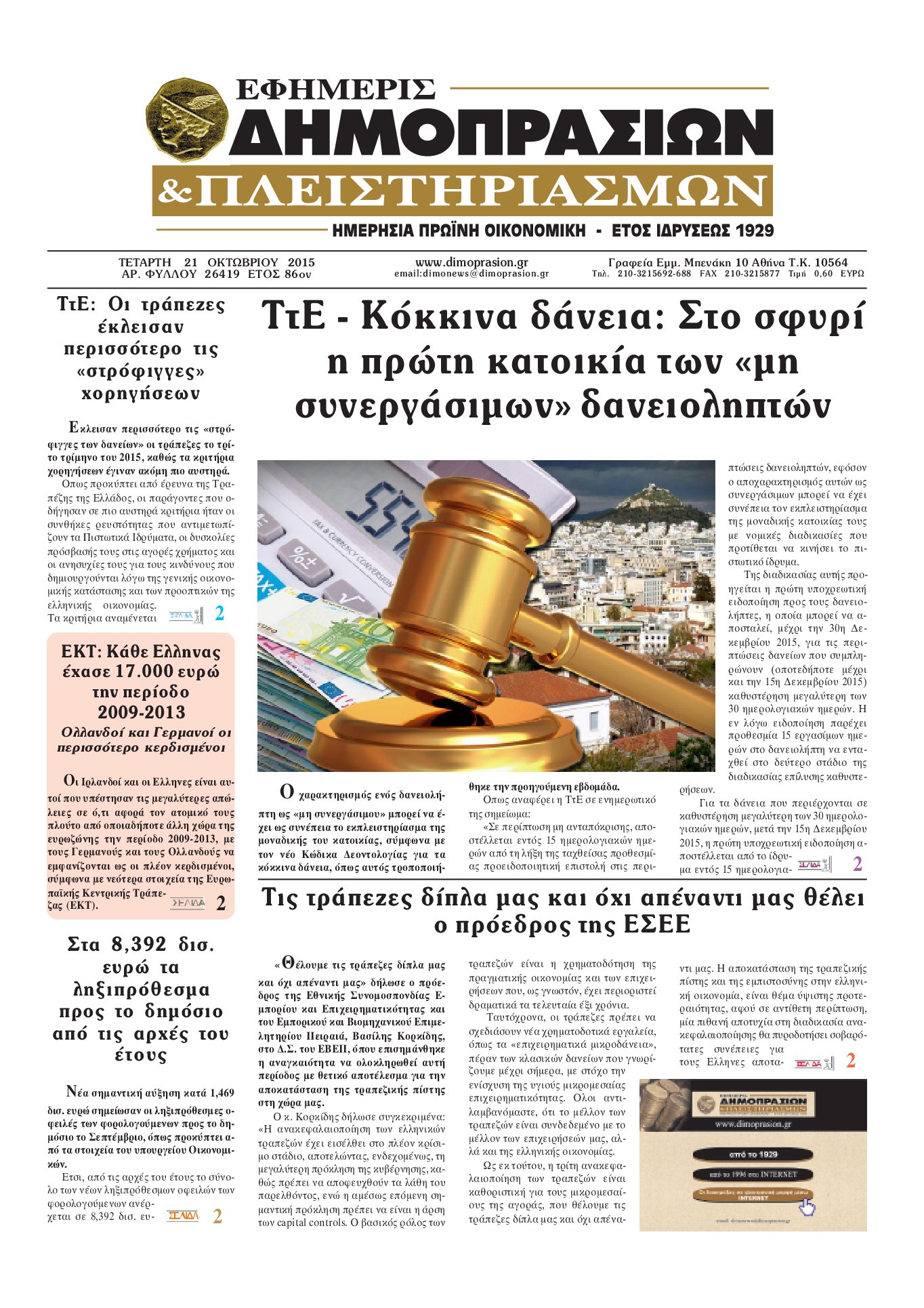 Οι οικονομικές εφημερίδες 21/10/2015 Enikos Newsroom 05:48, Τετάρτη 21 Οκτωβρίου 2015 Media Διαβάστε τα σημερινά πρωτοσέλιδα των οικονομικών εφημερίδων ΕΦΗΜΕΡΙΔΕΣ ΟΙΚΟΝΟΜΙΚΕΣ ΕΦΗΜΕΡΙΔΕΣ ΠΡΩΤΟΣΕΛΙΔΑ Μοιράσου το: σχολίασε κι εσύ (0 σχόλια) Ακολουθήστε το enikos.gr στο Google News και μάθετε πρώτοι όλες τις ειδήσεις Δείτε όλες τις τελευταίες ειδήσεις από την Ελλάδα και τον Κόσμο στο enikos.gr Ειδήσεις Ροή Ειδήσεων 2 ώρες πριν Κυριάκος Μητσοτάκης μετά την Σύνοδο Κορυφής στις Βρυξέλλες: «Η Ευρώπη στέκεται έμπρακτα στο πλευρό της Ουκρανίας» 7 ώρες πριν ΟΠΕΚΕΠΕ: Προφυλακιστέος ο φερόμενος αρχηγός και ο λογιστής της εγκληματικής οργάνωσης 8 ώρες πριν Αυξάνουν την πίεση προς την κυβέρνηση οι αγρότες: Κλείνουν παρακαμπτήριους και ανοίγουν διόδια – Τι θα γίνει τις γιορτές 8 ώρες πριν Φοινικούντα: Το Σάββατο απολογείται ο 30χρονος γιος γνωστού επιχειρηματία της Πλάκας που παραδόθηκε – Όσα είπε στους αστυνομικούς και ο ρόλος του στο έγκλημα 7 ώρες πριν ΑΕΚ – Κραϊόβα 3-2: Επική ανατροπή και πρόκριση στους «16» του Conference League η Ένωση 8 ώρες πριν Αρχαιολόγοι ανακάλυψαν ρωμαϊκά τεχνουργήματα από μια πόλη που δεν υπήρξε ποτέ – Τα τρία εντυπωσιακά κτίρια και ο αμφορέας με τις… σαρδέλες 9 ώρες πριν Ύπνος: Η απλή βραδινή ρουτίνα για να προστατεύσετε τα μαλλιά σας από το κρύο κατά τη διάρκεια του χειμώνα 10 ώρες πριν Manifesting: Πώς να συναντήσετε τον σύντροφο της ζωής σας, ανάλογα με τον μήνα γέννησής σας 2 ημέρες πριν 20 χρόνια τα Χριστούγεννα ξεκινούν στα Public με μεγάλη ποικιλία σε δώρα! 7 λεπτά πριν Πέντε νεκροί σε πλήγματα των ΗΠΑ κατά δύο σκαφών που φέρεται να μετέφεραν ναρκωτικά στον Ανατολικό Ειρηνικό 15 λεπτά πριν ΕΥΔΑΠ: Αλλάζουν τα τιμολόγια του νερού 23 λεπτά πριν Οπτική ψευδαίσθηση: Μόνο αν έχεις αετίσια ματιά θα βρεις τον παπαγάλο σε 12 δευτερόλεπτα 30 λεπτά πριν Αθήνα: Βρέθηκε η 16χρονη που είχε εξαφανιστεί από τις 6 Δεκεμβρίου – Η ανακοίνωση από το «Χαμόγελο του Παιδιού» 38 λεπτά πριν Κρύα χέρια και πόδια: Γιατρός εξηγεί ποια είναι η αίτια και πότε πρέπει να ανησυχήσετε ENIKOS NETWORK Σε περίοδο αυξημένης δραστηριότητας η γρίπη στην Ελλάδα-Μέτρα προστασίας από τον ΕΟΔΥ Σκέφτεστε συνέχεια συζητήσεις που έχετε κάνει; Τι σημαίνει αυτό, σύμφωνα με ειδικό Στεγαστικό: Τι λέει η ΠΟΜΙΔΑ για τα νέα μέτρα που ανακοίνωσε ο Κυριάκος Μητσοτάκης Λαγκάρντ: Αισιόδοξη για την ανάπτυξη της Ευρωζώνης, αβέβαιη για τον πληθωρισμό Χαρτογραφώντας το «σημείο χωρίς επιστροφή»: Για πρώτη φορά αποκαλύπτεται με λεπτομέρεια το ακανθώδες όριο της ατμόσφαιρας τ... Η Google καταργεί τη λειτουργία «dark web report» – Πώς θα μπορούν οι χρήστες να διαγράφουν τα δεδομένα τους περισσότερα 05:48 , Παρασκευή 19 Δεκεμβρίου 2025 Οι οικονομικές εφημερίδες 19/12/2025 Διαβάστε τα πρωτοσέλιδα από τις οικονομικές εφημερίδες, σήμερα 19/12/2025. 05:43 , Παρασκευή 19 Δεκεμβρίου 2025 Οι αθλητικές εφημερίδες 19/12/2025 Διαβάστε τα πρωτοσέλιδα από τις αθλητικές εφημερίδες, σήμερα 19/12/2025. 05:38 , Παρασκευή 19 Δεκεμβρίου 2025 Οι πολιτικές εφημερίδες 19/12/2025 Διαβάστε τα πρωτοσέλιδα από τις πολιτικές εφημερίδες, σήμερα 19/12/2025. 02:50 , Παρασκευή 19 Δεκεμβρίου 2025 GNTM: «Κλείδωσαν» οι τέσσερις φιναλίστ – Μεγάλη ανατροπή στις τελευταίες αποχωρήσεις Για προτελευταία φορά εμφανίστηκαν στο πλατό του GNTM οι φιναλίστ του φετινού κύκλου, το βράδυ... ΤΕΛΕΥΤΑΙΕΣ ΕΙΔΗΣΕΙΣ 7 λεπτά πριν Πέντε νεκροί σε πλήγματα των ΗΠΑ κατά δύο σκαφών που... 15 λεπτά πριν ΕΥΔΑΠ: Αλλάζουν τα τιμολόγια του νερού 23 λεπτά πριν Οπτική ψ