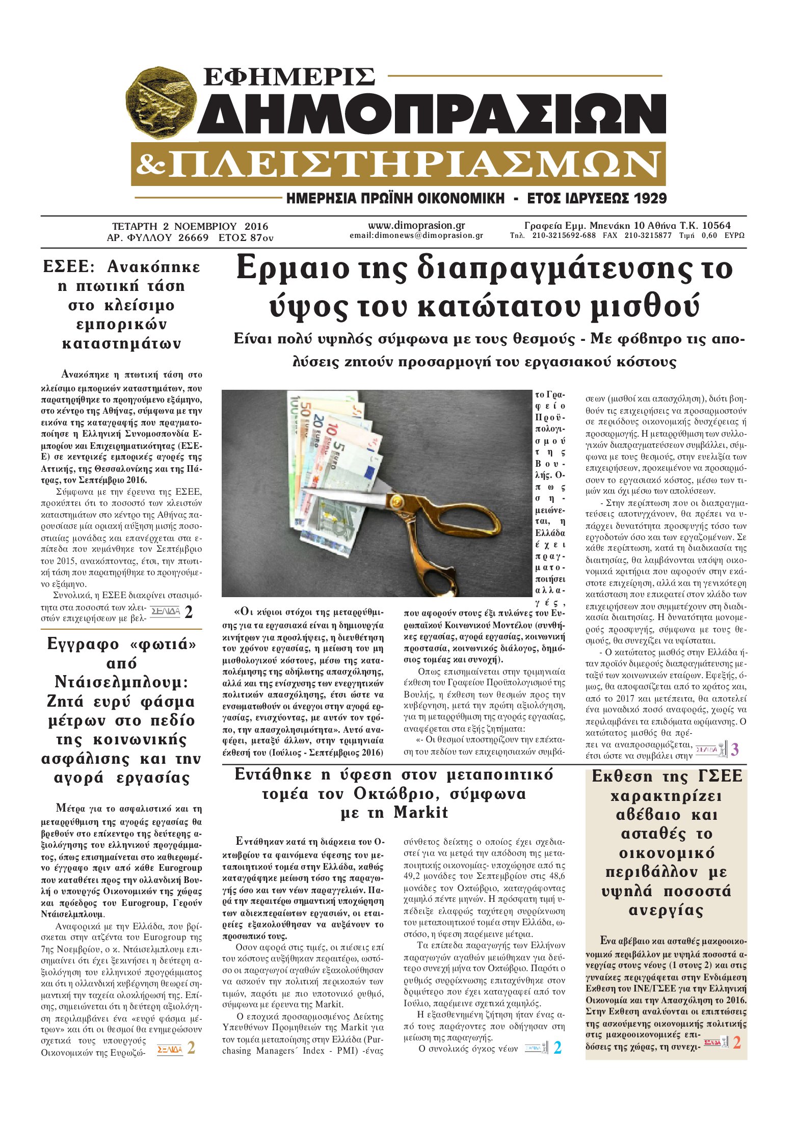 Οι οικονομικές εφημερίδες 2/11/2016 Enikos Newsroom 06:31, Τετάρτη 02 Νοεμβρίου 2016 Media Διαβάστε τα σημερινά πρωτοσέλιδα των οικονομικών εφημερίδων: ΟΙΚΟΝΟΜΙΚΕΣ ΕΦΗΜΕΡΙΔΕΣ ΠΡΩΤΟΣΕΛΙΔΑ Μοιράσου το: σχολίασε κι εσύ (0 σχόλια) Ακολουθήστε το enikos.gr στο Google News και μάθετε πρώτοι όλες τις ειδήσεις Δείτε όλες τις τελευταίες ειδήσεις από την Ελλάδα και τον Κόσμο στο enikos.gr Ειδήσεις Ροή Ειδήσεων 8 ώρες πριν Μητσοτάκης: Αναγκαία η μεταρρύθμιση του πρωτογενούς τομέα – Τα 6 νέα μέτρα για το στεγαστικό και οι αναφορές σε «Ιθάκη» και «πολιτικούς του καναπέ» 7 ώρες πριν Δάνεια σε ελβετικό φράγκο: Τα βασικά σημεία της ρύθμισης – ανάσας για 40.000 δανειολήπτες – Αναλυτικός οδηγός με ερωτήσεις και απαντήσεις 7 ώρες πριν Κυψέλη: Εξιτήριο πήρε η 14χρονη μαθήτρια που μαχαιρώθηκε από την 16χρονη σε σχολείο – «Θέλω να βοηθήσω το παιδί, έχει μπλέξει με κακές παρέες» 6 ώρες πριν Τραμπ: Γιατί κατέθεσε τώρα την αγωγή κατά του BBC – Πώς η κίνησή του εξυπηρετεί το νέο δόγμα του για «αντίσταση» στην Ευρώπη, υπέρ των συντηρητικών 7 ώρες πριν ΟΠΕΚΕΠΕ – Παράνομες επιδοτήσεις: Ελεύθεροι με περιοριστικούς όρους και οι 7 κατηγορούμενοι που απολογήθηκαν σήμερα 7 ώρες πριν Ανακαλύφθηκε βυθισμένη πέτρινη κατασκευή ανοιχτά της Κριμαίας – Αποτελεί μέρος αρχαίας ελληνικής αποικίας 8 ώρες πριν Ύπνος: Αυτό μπορεί να είναι το χειρότερο λάθος για το βιολογικό ρολόι σας, σύμφωνα με ειδικό 9 ώρες πριν Αριθμολογία: Οι άνθρωποι που έχουν γεννηθεί αυτές τις 3 ημερομηνίες, προσελκύουν μεγάλη τύχη πριν από το τέλος του 2025 11 ώρες πριν Οι 7 συμπεριφορές που μαρτυρούν ότι ένας άνδρας επενδύει μακροπρόθεσμα σε μια σχέση 5 λεπτά πριν Τα ζώδια σήμερα, Τετάρτη 17 Δεκεμβρίου: Κριοί, η αυτοπεποίθησή σας ενισχύεται 13 λεπτά πριν Εφημερεύοντα φαρμακεία σε Αθήνα και Θεσσαλονίκη (17/12) 19 λεπτά πριν Κόστα Ρίκα: Το Κογκρέσο απέρριψε το αίτημα για άρση της ασυλίας του προέδρου Τσάβες 27 λεπτά πριν Κολομβία: Νεκροί τέσσερις αστυνομικοί σε βομβιστικές επιθέσεις ανταρτών 35 λεπτά πριν Στάση εργασίας 11:00 – 17:00 σήμερα στα λεωφορεία του ΟΑΣΑ – Ποιες γραμμές θα λειτουργήσουν ENIKOS NETWORK Αίτημα ΙΣΑ για την εξαίρεση των προσωπικών γιατρών από τις κατ’ οίκον επισκέψεις Η σκανδιναβική μέθοδος στον ύπνο που μπορεί να σώσει έναν γάμο Πιερρακάκης: Ο προϋπολογισμός συμβάλλει ουσιαστικά στην ενίσχυση της αγοραστικής δύναμης της πλειονότητας των εργαζομένων e-ΕΦΚΑ: Παρατείνεται η προθεσμία για την υποβολή ΑΠΔ – Ποιους αφορά Σύγχρονος Νοστράδαμος: Προειδοποιεί για «μεγάλο γεγονός» τους επόμενους μήνες που θα συγκλονίσει τη Βρετανία και τον κόσμο Τεστ παρατηρητικότητας: Μπορείτε να βρείτε τις 3 διαφορές στις εικόνες με έναν πιγκουίνο σε 14 δευτερόλεπτα περισσότερα 20:06 , Τρίτη 16 Δεκεμβρίου 2025 Ο ΣΚΑΙ καταγγέλλει τον ΕΚΚΟΜΕΔ Επιστολή με την οποία καταγράφει την έντονη διαμαρτυρία του προς τον διευθύνοντα σύμβουλο του... 17:40 , Τρίτη 16 Δεκεμβρίου 2025 Eurovision: Στις 4 Ιανουαρίου αποκαλύπτονται τα 28 τραγούδια του ελληνικού τελικού Η αγωνία τελειώνει, η γιορτή της Eurovision αρχίζει στην ΕΡΤ από τις πρώτες ημέρες της νέας χρ... 17:09 , Τρίτη 16 Δεκεμβρίου 2025 Alter Ego Media: Βαθύτατη θλίψη και ειλικρινή συλλυπητήρια για την απώλεια της Ειρήνης Μαρινάκη Τη βαθύτατη θλίψη και τα ειλικρινή συλλυπητήριά της εκφράζει η Alter Ego Media για τον θάνατο ... 13:00 , Τρίτη 16 Δεκεμβρίου 2025 «Στο Παρά Πέντε – 20 Χρόνια Μετά»: Κυκλοφόρησε το τρέιλερ του επετειακού επεισοδίου της θρυλικής σειράς – Πότε θα 