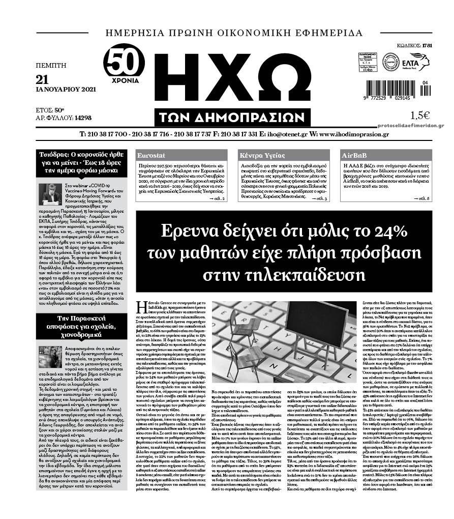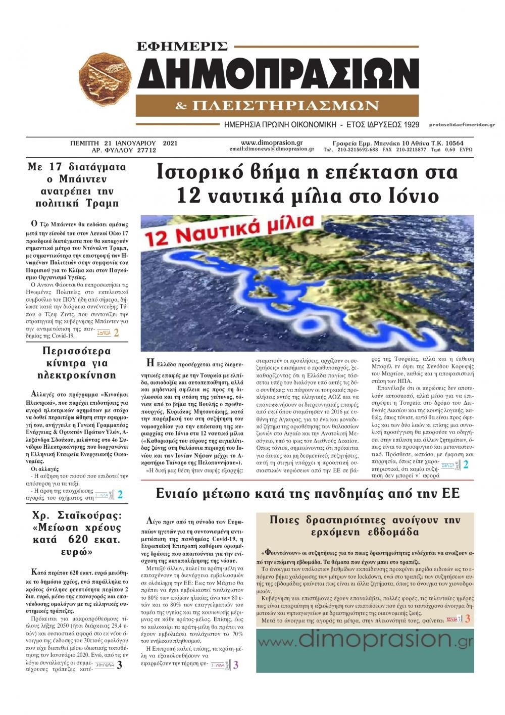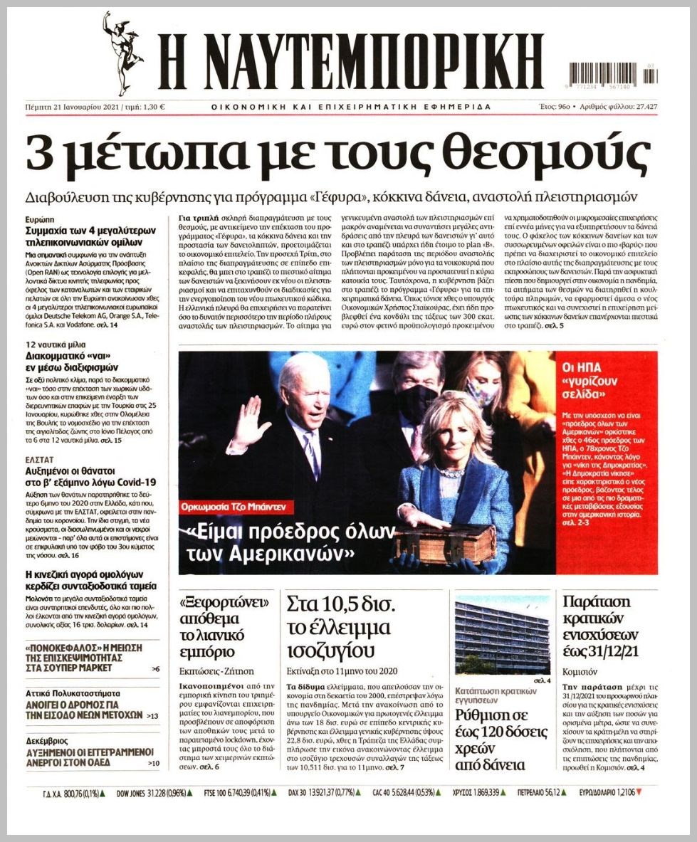 Οι οικονομικές εφημερίδες 21/1/2021 Διονύσης Νίκκας 06:29, Πέμπτη 21 Ιανουαρίου 2021 Media Διαβάστε τα πρωτοσέλιδα των οικονομικών εφημερίδων… ΟΙΚΟΝΟΜΙΚΕΣ ΕΦΗΜΕΡΙΔΕΣ Μοιράσου το: σχολίασε κι εσύ (0 σχόλια) Ακολουθήστε το enikos.gr στο Google News και μάθετε πρώτοι όλες τις ειδήσεις Δείτε όλες τις τελευταίες ειδήσεις από την Ελλάδα και τον Κόσμο στο enikos.gr Ειδήσεις Ροή Ειδήσεων 41 λεπτά πριν Ευρωπαϊκή Ένωση: Χωρίς συμφωνία, για την μακροπρόθεσμη χρηματοδότηση της Ουκρανίας, ολοκληρώθηκε η Σύνοδος Κορυφής στις Βρυξέλλες 4 ώρες πριν ΟΠΕΚΕΠΕ: Προφυλακιστέος ο φερόμενος αρχηγός και ο λογιστής της εγκληματικής οργάνωσης 5 ώρες πριν Αυξάνουν την πίεση προς την κυβέρνηση οι αγρότες: Κλείνουν παρακαμπτήριους και ανοίγουν διόδια – Τι θα γίνει τις γιορτές 5 ώρες πριν Φοινικούντα: Το Σάββατο απολογείται ο 30χρονος γιος γνωστού επιχειρηματία της Πλάκας που παραδόθηκε – Όσα είπε στους αστυνομικούς και ο ρόλος του στο έγκλημα 4 ώρες πριν ΑΕΚ – Κραϊόβα 3-2: Επική ανατροπή και πρόκριση στους «16» του Conference League η Ένωση 5 ώρες πριν Αρχαιολόγοι ανακάλυψαν ρωμαϊκά τεχνουργήματα από μια πόλη που δεν υπήρξε ποτέ – Τα τρία εντυπωσιακά κτίρια και ο αμφορέας με τις… σαρδέλες 6 ώρες πριν Ύπνος: Η απλή βραδινή ρουτίνα για να προστατεύσετε τα μαλλιά σας από το κρύο κατά τη διάρκεια του χειμώνα 7 ώρες πριν Manifesting: Πώς να συναντήσετε τον σύντροφο της ζωής σας, ανάλογα με τον μήνα γέννησής σας 2 ημέρες πριν 20 χρόνια τα Χριστούγεννα ξεκινούν στα Public με μεγάλη ποικιλία σε δώρα! 42 δευτερόλεπτα πριν Σίσσυ Τουμάση: «Είμαι ασθενοφοβική πάρα πολύ και με πιάνει μια παράνοια μ’ αυτό» 25 λεπτά πριν Ντόναλντ Τραμπ: Δεν χρειάζομαι την έγκριση του Κογκρέσου για να διατάξω στρατιωτικά πλήγματα στη Βενεζουέλα 41 λεπτά πριν Ευρωπαϊκή Ένωση: Χωρίς συμφωνία, για την μακροπρόθεσμη χρηματοδότηση της Ουκρανίας, ολοκληρώθηκε η Σύνοδος Κορυφής στις Βρυξέλλες 56 λεπτά πριν GNTM: «Κλείδωσαν» οι τέσσερις φιναλίστ – Μεγάλη ανατροπή στις τελευταίες αποχωρήσεις 1 ώρα πριν Γιώργος Μαζωνάκης: Αποθεώθηκε στην πρεμιέρα του στην «Ακτή Πειραιώς» λίγες ώρες μετά τις καταγγελίες – «Είμαι αληθινός», είπε με νόημα ENIKOS NETWORK Σε περίοδο αυξημένης δραστηριότητας η γρίπη στην Ελλάδα-Μέτρα προστασίας από τον ΕΟΔΥ Σκέφτεστε συνέχεια συζητήσεις που έχετε κάνει; Τι σημαίνει αυτό, σύμφωνα με ειδικό Στεγαστικό: Τι λέει η ΠΟΜΙΔΑ για τα νέα μέτρα που ανακοίνωσε ο Κυριάκος Μητσοτάκης Λαγκάρντ: Αισιόδοξη για την ανάπτυξη της Ευρωζώνης, αβέβαιη για τον πληθωρισμό Χαρτογραφώντας το «σημείο χωρίς επιστροφή»: Για πρώτη φορά αποκαλύπτεται με λεπτομέρεια το ακανθώδες όριο της ατμόσφαιρας τ... Η Google καταργεί τη λειτουργία «dark web report» – Πώς θα μπορούν οι χρήστες να διαγράφουν τα δεδομένα τους περισσότερα 02:50 , Παρασκευή 19 Δεκεμβρίου 2025 GNTM: «Κλείδωσαν» οι τέσσερις φιναλίστ – Μεγάλη ανατροπή στις τελευταίες αποχωρήσεις Για προτελευταία φορά εμφανίστηκαν στο πλατό του GNTM οι φιναλίστ του φετινού κύκλου, το βράδυ... 17:45 , Πέμπτη 18 Δεκεμβρίου 2025 ROUK ZOUK: Εορταστικό επεισόδιο με καλεσμένους τους πρωταγωνιστές του «Γιατί ρε πατέρα» Το Σάββατο 20 Δεκεμβρίου στις 21:00, η Ζέτα Μακρυπούλια υποδέχεται εκλεκτούς ηθοποιούς που όλο... 17:20 , Πέμπτη 18 Δεκεμβρίου 2025 Άγιος έρωτας: Η Χριστίνα εξομολογείται στον πατέρα Νικόλαο, απόψε στις 21:00 στον Alpha Η Νότα αποφασίζει να εκδικηθεί τον Πέτρο και τον Στέφανο, για χάρη του Λούη, όμως τα πράγματα ... 16:50 , Πέμπτη 18 Δεκεμβρίου 2025 Να μ’ 