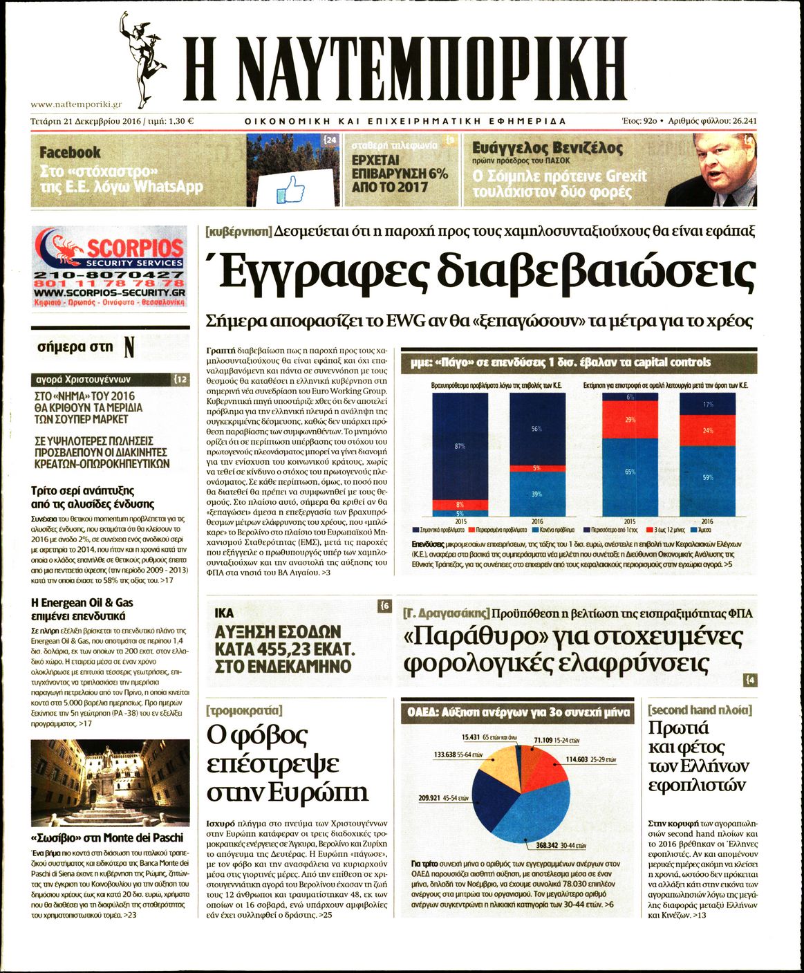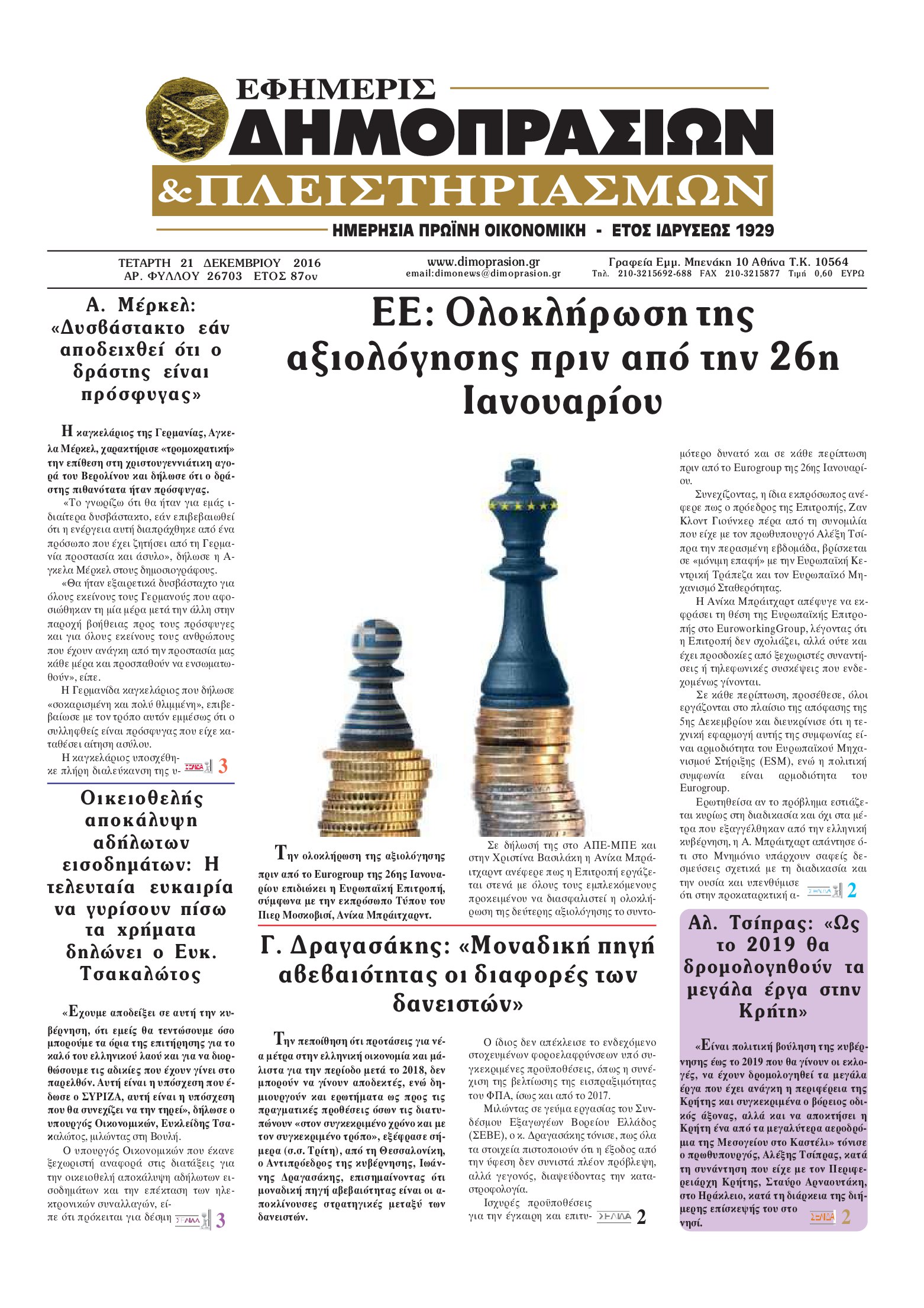 Οι οικονομικές εφημερίδες 21/12/2016 Enikos Newsroom 01:39, Τετάρτη 21 Δεκεμβρίου 2016 Media Διαβάστε τα σημερινά πρωτοσέλιδα των οικονομικών εφημερίδων: ΟΙΚΟΝΟΜΙΚΕΣ ΕΦΗΜΕΡΙΔΕΣ ΠΡΩΤΟΣΕΛΙΔΑ Μοιράσου το: σχολίασε κι εσύ (0 σχόλια) Ακολουθήστε το enikos.gr στο Google News και μάθετε πρώτοι όλες τις ειδήσεις Δείτε όλες τις τελευταίες ειδήσεις από την Ελλάδα και τον Κόσμο στο enikos.gr Ειδήσεις Ροή Ειδήσεων 3 ώρες πριν Ακίλα Σάλεχ: «Άκυρο» το τουρκολιβυκό μνημόνιο λέει ο πρόεδρος της λιβυκής Βουλής – Ανοίγει ο διάλογος με Ελλάδα, Αίγυπτο και Τουρκία 7 ώρες πριν Αγρότες: Την Τρίτη η απόφαση για διάλογο ή κλιμάκωση των κινητοποιήσεών τους – Πώς χαρακτηρίζουν τις ανακοινώσεις Τσιάρα και οι επόμενες κινήσεις 7 ώρες πριν Τραμπ για Ουκρανία: «Είμαστε πιο κοντά σε συμφωνία από ποτέ» – «Πολυεθνική δύναμη» προτείνουν οι Ευρωπαίοι 7 ώρες πριν Κυψέλη: Η 16χρονη που μαχαίρωσε την 14χρονη είχε συλληφθεί 3 φορές στο παρελθόν – Έβριζε καθηγητές, έβαζε φωτιές σε κάδους και εκβίαζε συμμαθητές της 6 ώρες πριν Τρομοκρατική επίθεση στο Σίδνεϊ: Θλίψη για τα 15 θύματα – Οργή στην εβραϊκή κοινότητα που προειδοποιούσε επί δύο χρόνια 7 ώρες πριν Επιστήμονες ίσως έλυσαν το μυστήριο γύρω από τα Χόμπιτ – Νέα έρευνα αποκαλύπτει πώς εξαφανίστηκαν 8 ώρες πριν Ύπνος: Η αρχαία μορφή άσκησης που αποδεικνύεται αποτελεσματική στην αντιμετώπιση της αϋπνίας, σύμφωνα με μελέτη 9 ώρες πριν Αριθμολογία: Ο τυχερός σας αριθμός, ανάλογα με τον μήνα γέννησής σας 10 ώρες πριν Πώς να μην μαραίνονται γρήγορα τα κομμένα λουλούδια: Το λάθος στην τοποθέτηση του βάζου που πρέπει να αποφεύγετε 31 δευτερόλεπτα πριν Οι οικονομικές εφημερίδες 16/12/2025 6 λεπτά πριν Οι αθλητικές εφημερίδες 16/12/2025 11 λεπτά πριν Οι πολιτικές εφημερίδες 16/12/2025 19 λεπτά πριν Τα ζώδια σήμερα, Τρίτη 16 Δεκεμβρίου: Ιχθύες, δεν χρειάζεται να έχετε όλες τις απαντήσεις 27 λεπτά πριν Εφημερεύοντα φαρμακεία σε Αθήνα και Θεσσαλονίκη (16/12) ENIKOS NETWORK Πότε το χρόνιο ροχαλητό να αποτελέσει ένδειξη κινδύνου για την καρδιά; Τι λένε οι ειδικοί Μάριος Θεμιστοκλέους: Το ΕΣΥ ενισχύεται, εκσυγχρονίζεται, αλλάζει ΕΒΕΠ για αγροτικές κινητοποιήσεις: Κάθε επιπλέον εβδομάδα προσθέτει περίπου 200 εκατ. ευρώ ζημιά Τι προβλέπει το νομοσχέδιο του υπουργείου Εθνικής Άμυνας – Oι αλλαγές στους μισθούς Σύγχρονος Νοστράδαμος: Προειδοποιεί για «μεγάλο γεγονός» τους επόμενους μήνες που θα συγκλονίσει τη Βρετανία και τον κόσμο Τεστ παρατηρητικότητας: Μπορείτε να βρείτε τις 3 διαφορές στις εικόνες με έναν πιγκουίνο σε 14 δευτερόλεπτα περισσότερα 05:48 , Τρίτη 16 Δεκεμβρίου 2025 Οι οικονομικές εφημερίδες 16/12/2025 Διαβάστε τα πρωτοσέλιδα από τις οικονομικές εφημερίδες, σήμερα 16/12/2025. 05:43 , Τρίτη 16 Δεκεμβρίου 2025 Οι αθλητικές εφημερίδες 16/12/2025 Διαβάστε τα πρωτοσέλιδα από τις αθλητικές εφημερίδες, σήμερα 16/12/2025. 05:38 , Τρίτη 16 Δεκεμβρίου 2025 Οι πολιτικές εφημερίδες 16/12/2025 Διαβάστε τα πρωτοσέλιδα από τις πολιτικές εφημερίδες, σήμερα 16/12/2025. 21:35 , Δευτέρα 15 Δεκεμβρίου 2025 Το Σπίτι Δίπλα Στο Ποτάμι: Η Ιουλία και ο Φωκάς μετακομίζουν στη Ρόδο – Δύο νέοι χαρακτήρες μπαίνουν στη σειρά Δύο νέοι, κομβικοί χαρακτήρες κάνουν την εμφάνισή τους αυτή την εβδομάδα στην αγαπημένη σειρά ... ΤΕΛΕΥΤΑΙΕΣ ΕΙΔΗΣΕΙΣ 6 λεπτά πριν Οι αθλητικές εφημερίδες 16/12/2025 11 λεπτά πριν Οι πολιτικές εφημερίδες 16/12/2025 19 λεπτά πριν Τα ζώδια σήμερα, Τρίτη 16 Δεκεμβρίου: Ιχθύες, δεν... 27 λεπτά πριν Εφημερεύοντα φαρμακεία σε Αθήνα και Θεσσαλονίκη (16/12) 33 λεπτά πριν 