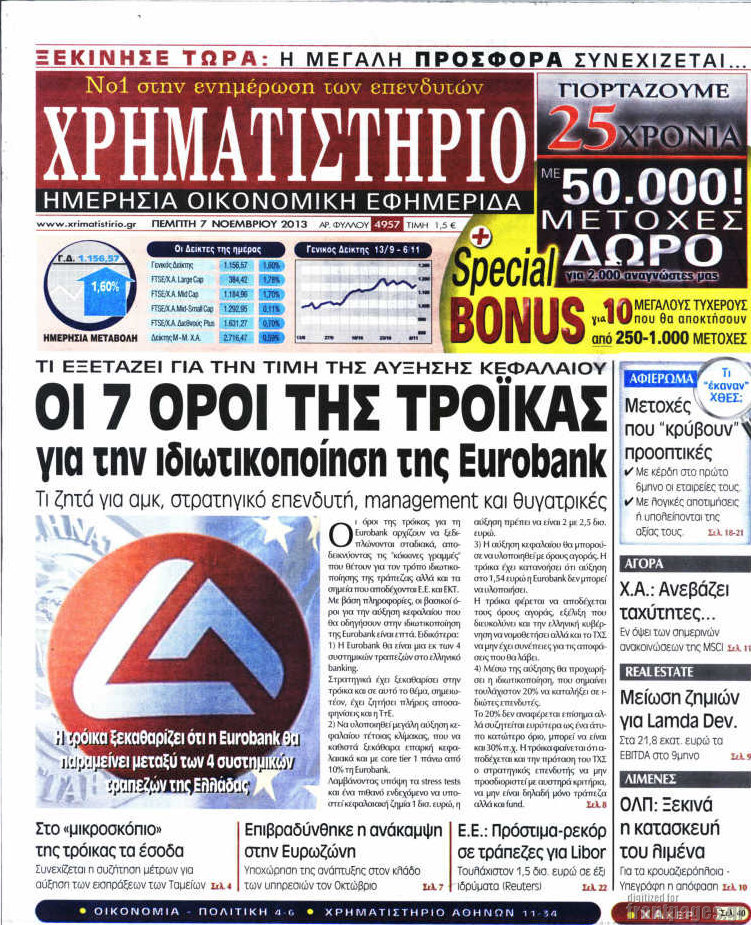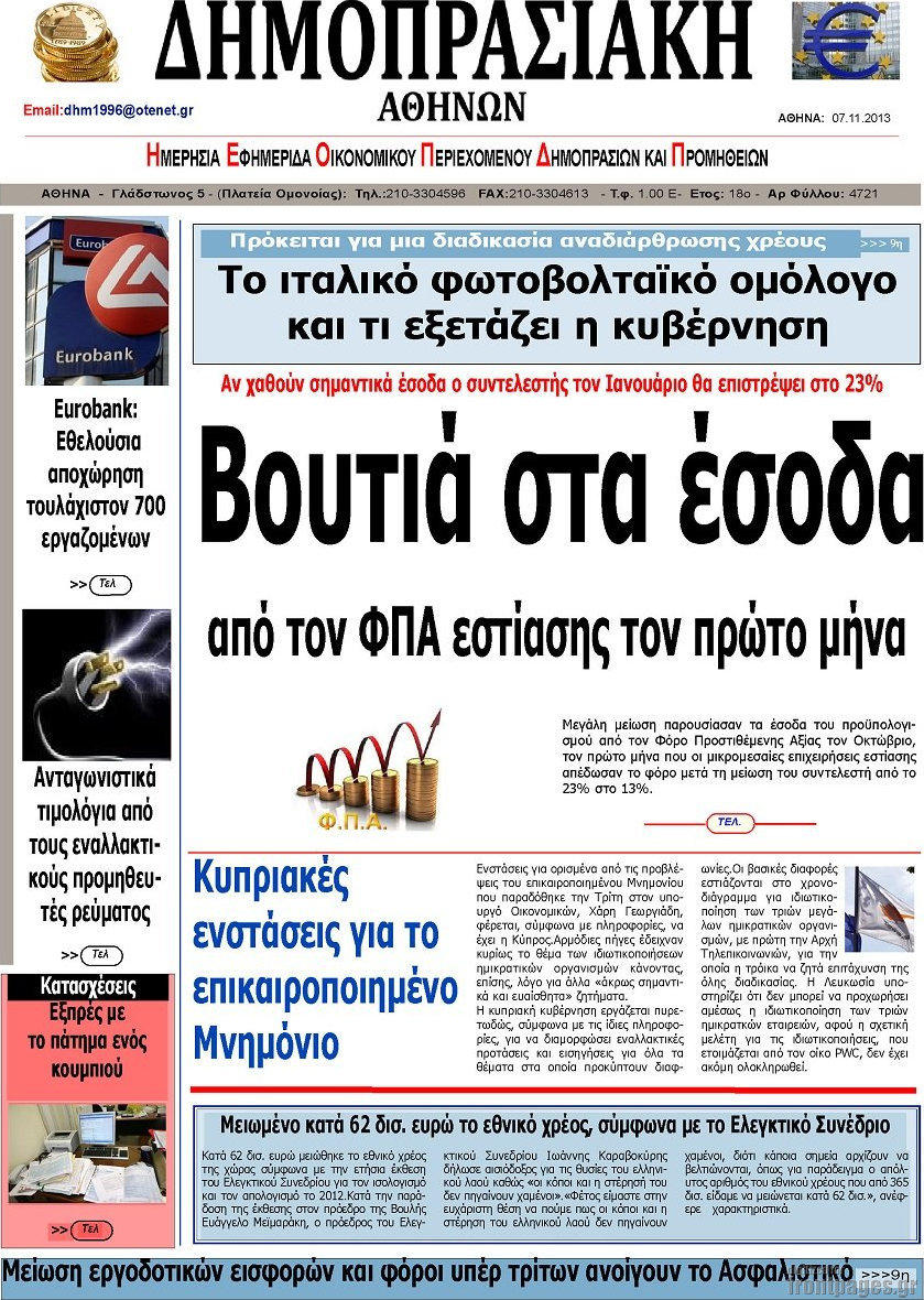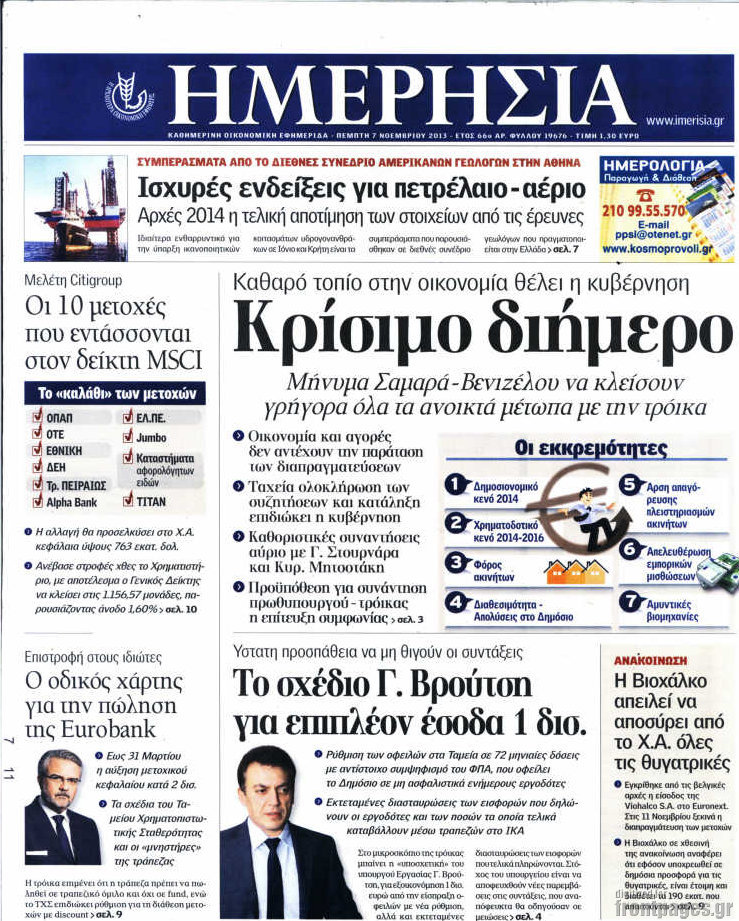 Οι oικονομικές εφημερίδες Enikos Newsroom 09:26, Πέμπτη 07 Νοεμβρίου 2013 Media Οι oικονομικές εφημερίδες Διαβάστε τα πρωτοσέλιδα των οικονομικών εφημερίδων: ΕΦΗΜΕΡΙΔΕΣ ΟΙΚΟΝΟΜΙΚΕΣ ΕΦΗΜΕΡΙΔΕΣ ΠΡΩΤΟΣΕΛΙΔΑ Μοιράσου το: σχολίασε κι εσύ (0 σχόλια) Ακολουθήστε το enikos.gr στο Google News και μάθετε πρώτοι όλες τις ειδήσεις Δείτε όλες τις τελευταίες ειδήσεις από την Ελλάδα και τον Κόσμο στο enikos.gr Ειδήσεις Ροή Ειδήσεων 13 λεπτά πριν LIVE από Λοριάν: Η ύψωση της ελληνικής σημαίας στην πρώτη φρεγάτα FDI Belharra ΚΙΜΩΝ 25 λεπτά πριν Στην Ευελπίδων ο 22χρονος που καταγγέλλει τον Γιώργο Μαζωνάκη για ασελγείς πράξεις – «Έχουμε εμπιστοσύνη στη Δικαιοσύνη, καμία εκβίαση» λέει ο δικηγόρος του 2 ώρες πριν Νίκος Παππάς: Άφαντος παραμένει ο ευρωβουλευτής μετά την επίθεση στον Νίκο Γιαννόπουλο 1 ώρα πριν Βρυξέλλες: Ένταση με τους αγρότες – Πέταξαν πατάτες και κροτίδες 3 ώρες πριν Συναγερμός και στην Ελλάδα για τη «σούπερ γρίπη»: Πόσο σοβαρή είναι και ποιοι θεωρούνται πιο ευάλωτοι – 3 ειδικοί μιλούν στο enikos.gr 3 ώρες πριν Τα 4 ζώδια που λαμβάνουν ένα ισχυρό σημάδι από το σύμπαν – «Αποκαλύπτεται κάτι που μπορεί να αλλάξει τη ζωή μας» 4 ώρες πριν Η σύζυγός του παραπονιέται για τα χρήματα που της δίνει για ψώνια κάθε μήνα – «Λέει ότι νιώθει φτωχή και της είπα να βρει δουλειά» 2 ώρες πριν Αν κάνετε συνεχώς αυτά τα 8 πράγματα με τα κατοικίδιά σας, σας λείπει η ανθρώπινη επαφή 1 ημέρα πριν 20 χρόνια τα Χριστούγεννα ξεκινούν στα Public με μεγάλη ποικιλία σε δώρα! 4 λεπτά πριν Κατερίνα Καινούργιου για Γιώργο Μαζωνάκη: «Θεωρώ φρικτό αυτό το τσίρκο που έχει συμβεί τις τελευταίες μέρες στα Μέσα» 10 λεπτά πριν Μαρινάκης για Νίκο Παππά: Να δώσει απαντήσεις ο άνθρωπος που τον έβαλε στην πολιτική – Ήταν προσωπική επιλογή Τσίπρα 13 λεπτά πριν LIVE από Λοριάν: Η ύψωση της ελληνικής σημαίας στην πρώτη φρεγάτα FDI Belharra ΚΙΜΩΝ 15 λεπτά πριν Θεσσαλονίκη: Υπό κράτηση ο 48χρονος που κατηγορείται για φοροδιαφυγή ύψους 29,6 εκατ. ευρώ στη Γερμανία 20 λεπτά πριν Φίλης στον Realfm 97,8: «Δεν πρέπει να είμαστε τόσο γενναιόδωροι στην εξωτερική μας πολιτική» ENIKOS NETWORK Όμιλος ΙΑΤΡΟΠΟΛΙΣ: Πρωτοπόροι στη μοριακή απεικόνιση και στην πυρηνική ιατρική Τι περιλαμβάνει το σχέδιο της ΕΕ για την καρδιαγγειακή υγεία-Οι προτάσεις της Ελληνικής Καρδιολογικής Εταιρείας Ενοίκια: Τι αλλάζει με τη νέα τροπολογία στην πληρωμή Ειδικό επιδοτούμενο πρόγραμμα κατάρτισης από ΔΥΠΑ και ΕΛΓΟ – ΔΗΜΗΤΡΑ: Έως αύριο οι ενστάσεις – Όσα πρέπει να γνωρίζετε Χαρτογραφώντας το «σημείο χωρίς επιστροφή»: Για πρώτη φορά αποκαλύπτεται με λεπτομέρεια το ακανθώδες όριο της ατμόσφαιρας τ... Η Google καταργεί τη λειτουργία «dark web report» – Πώς θα μπορούν οι χρήστες να διαγράφουν τα δεδομένα τους περισσότερα 08:00 , Πέμπτη 18 Δεκεμβρίου 2025 Την Κυριακή με τη Realnews: Δωροεπιταγή 10€ Δωροεπιταγή αξίας 10€ για αγορές άνω των 60€ από τα πολυκαταστήματα FactoryOutlet H προσφορά ι... 07:50 , Πέμπτη 18 Δεκεμβρίου 2025 «Το σόι σου»: Backstage στα γυρίσματα για το εορταστικό επεισόδιο «Το σόι σου» φορά τα γιορτινά του για τα Χριστούγεννα και η Όλγα Λαφαζάνη, με την κάμερα του «... 07:36 , Πέμπτη 18 Δεκεμβρίου 2025 Οι αθλητικές μεταδόσεις 18/12/2025 – Πού θα δείτε τον αγώνα της ΑΕΚ με την Κραϊόβα για το Conference League Τα ματς ΑΕΚ – Ουνιβερσιτάτεα Κραϊόβα για το Conference League και Παναθηναϊκός – Χάποελ Τελ Αβ... 05:48 , Πέμπτη 18 Δεκεμβρίου 2025 Οι οικονομικές εφημερίδες 18/12/2025 Διαβάστε τα πρωτοσέλιδα από τις οικονομικές εφημερίδες, σήμερα 18/12/2025. ΤΕΛΕΥΤΑΙΕΣ