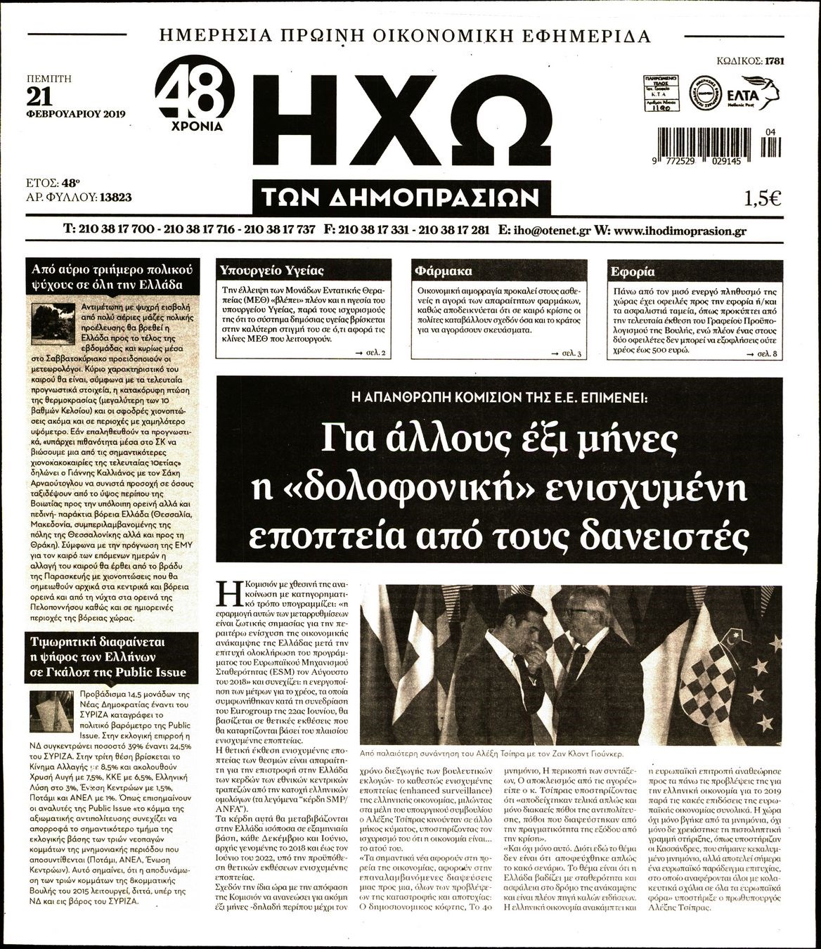 Οι οικονομικές εφημερίδες 21/2/19 Enikos Newsroom 06:37, Πέμπτη 21 Φεβρουαρίου 2019 Media Διαβάστε τα πρωτοσέλιδα των οικονομικών εφημερίδων: ΟΙΚΟΝΟΜΙΚΕΣ ΕΦΗΜΕΡΙΔΕΣ ΠΡΩΤΟΣΕΛΙΔΑ Μοιράσου το: σχολίασε κι εσύ (0 σχόλια) Ακολουθήστε το enikos.gr στο Google News και μάθετε πρώτοι όλες τις ειδήσεις Δείτε όλες τις τελευταίες ειδήσεις από την Ελλάδα και τον Κόσμο στο enikos.gr Ειδήσεις Ροή Ειδήσεων 43 λεπτά πριν Ευρωπαϊκή Ένωση: Χωρίς συμφωνία, για την μακροπρόθεσμη χρηματοδότηση της Ουκρανίας, ολοκληρώθηκε η Σύνοδος Κορυφής στις Βρυξέλλες 4 ώρες πριν ΟΠΕΚΕΠΕ: Προφυλακιστέος ο φερόμενος αρχηγός και ο λογιστής της εγκληματικής οργάνωσης 5 ώρες πριν Αυξάνουν την πίεση προς την κυβέρνηση οι αγρότες: Κλείνουν παρακαμπτήριους και ανοίγουν διόδια – Τι θα γίνει τις γιορτές 5 ώρες πριν Φοινικούντα: Το Σάββατο απολογείται ο 30χρονος γιος γνωστού επιχειρηματία της Πλάκας που παραδόθηκε – Όσα είπε στους αστυνομικούς και ο ρόλος του στο έγκλημα 4 ώρες πριν ΑΕΚ – Κραϊόβα 3-2: Επική ανατροπή και πρόκριση στους «16» του Conference League η Ένωση 5 ώρες πριν Αρχαιολόγοι ανακάλυψαν ρωμαϊκά τεχνουργήματα από μια πόλη που δεν υπήρξε ποτέ – Τα τρία εντυπωσιακά κτίρια και ο αμφορέας με τις… σαρδέλες 6 ώρες πριν Ύπνος: Η απλή βραδινή ρουτίνα για να προστατεύσετε τα μαλλιά σας από το κρύο κατά τη διάρκεια του χειμώνα 7 ώρες πριν Manifesting: Πώς να συναντήσετε τον σύντροφο της ζωής σας, ανάλογα με τον μήνα γέννησής σας 2 ημέρες πριν 20 χρόνια τα Χριστούγεννα ξεκινούν στα Public με μεγάλη ποικιλία σε δώρα! 4 λεπτά πριν Σίσσυ Τουμάση: «Είμαι ασθενοφοβική πάρα πολύ και με πιάνει μια παράνοια μ’ αυτό» 28 λεπτά πριν Ντόναλντ Τραμπ: Δεν χρειάζομαι την έγκριση του Κογκρέσου για να διατάξω στρατιωτικά πλήγματα στη Βενεζουέλα 43 λεπτά πριν Ευρωπαϊκή Ένωση: Χωρίς συμφωνία, για την μακροπρόθεσμη χρηματοδότηση της Ουκρανίας, ολοκληρώθηκε η Σύνοδος Κορυφής στις Βρυξέλλες 59 λεπτά πριν GNTM: «Κλείδωσαν» οι τέσσερις φιναλίστ – Μεγάλη ανατροπή στις τελευταίες αποχωρήσεις 1 ώρα πριν Γιώργος Μαζωνάκης: Αποθεώθηκε στην πρεμιέρα του στην «Ακτή Πειραιώς» λίγες ώρες μετά τις καταγγελίες – «Είμαι αληθινός», είπε με νόημα ENIKOS NETWORK Σε περίοδο αυξημένης δραστηριότητας η γρίπη στην Ελλάδα-Μέτρα προστασίας από τον ΕΟΔΥ Σκέφτεστε συνέχεια συζητήσεις που έχετε κάνει; Τι σημαίνει αυτό, σύμφωνα με ειδικό Στεγαστικό: Τι λέει η ΠΟΜΙΔΑ για τα νέα μέτρα που ανακοίνωσε ο Κυριάκος Μητσοτάκης Λαγκάρντ: Αισιόδοξη για την ανάπτυξη της Ευρωζώνης, αβέβαιη για τον πληθωρισμό Χαρτογραφώντας το «σημείο χωρίς επιστροφή»: Για πρώτη φορά αποκαλύπτεται με λεπτομέρεια το ακανθώδες όριο της ατμόσφαιρας τ... Η Google καταργεί τη λειτουργία «dark web report» – Πώς θα μπορούν οι χρήστες να διαγράφουν τα δεδομένα τους περισσότερα 02:50 , Παρασκευή 19 Δεκεμβρίου 2025 GNTM: «Κλείδωσαν» οι τέσσερις φιναλίστ – Μεγάλη ανατροπή στις τελευταίες αποχωρήσεις Για προτελευταία φορά εμφανίστηκαν στο πλατό του GNTM οι φιναλίστ του φετινού κύκλου, το βράδυ... 17:45 , Πέμπτη 18 Δεκεμβρίου 2025 ROUK ZOUK: Εορταστικό επεισόδιο με καλεσμένους τους πρωταγωνιστές του «Γιατί ρε πατέρα» Το Σάββατο 20 Δεκεμβρίου στις 21:00, η Ζέτα Μακρυπούλια υποδέχεται εκλεκτούς ηθοποιούς που όλο... 17:20 , Πέμπτη 18 Δεκεμβρίου 2025 Άγιος έρωτας: Η Χριστίνα εξομολογείται στον πατέρα Νικόλαο, απόψε στις 21:00 στον Alpha Η Νότα αποφασίζει να εκδικηθεί τον Πέτρο και τον Στέφανο, για χάρη του Λούη, όμως τα πράγματα ... 16:50 , Πέμπτη 18 Δεκεμβρίου 2025 Να μ’ αγαπ